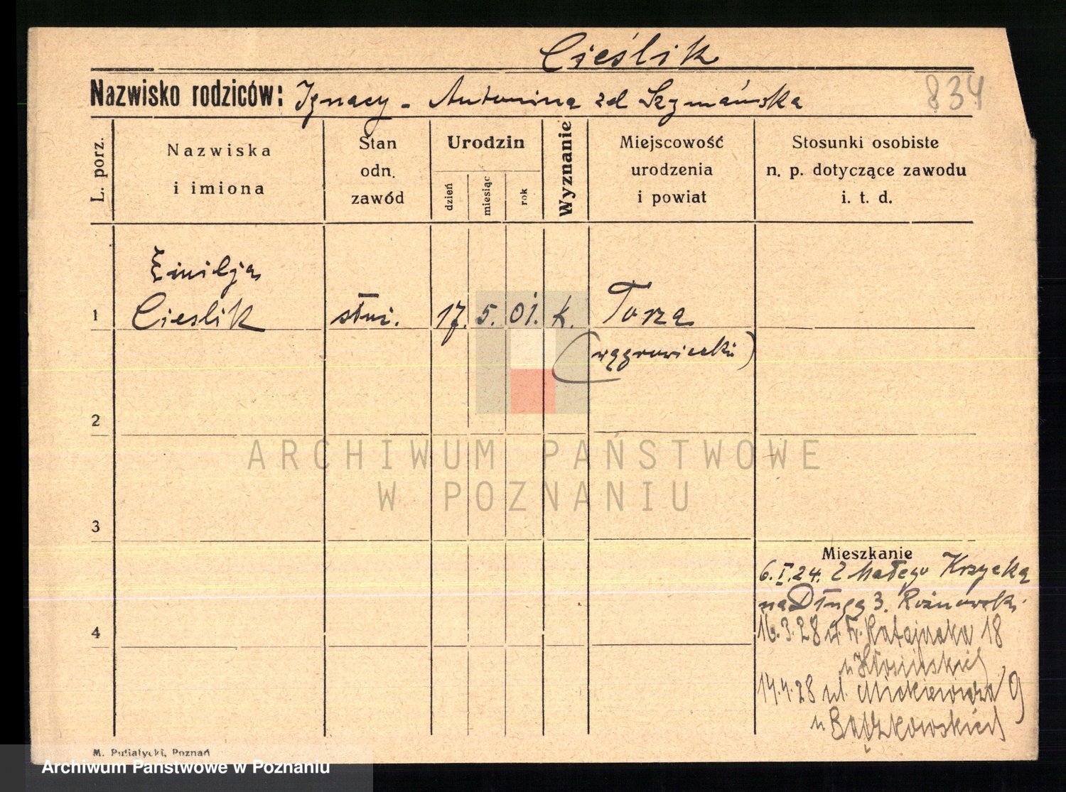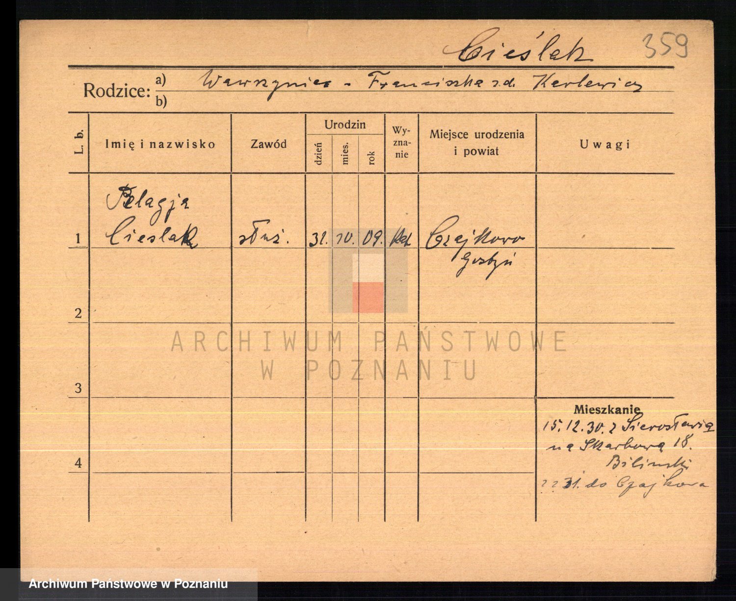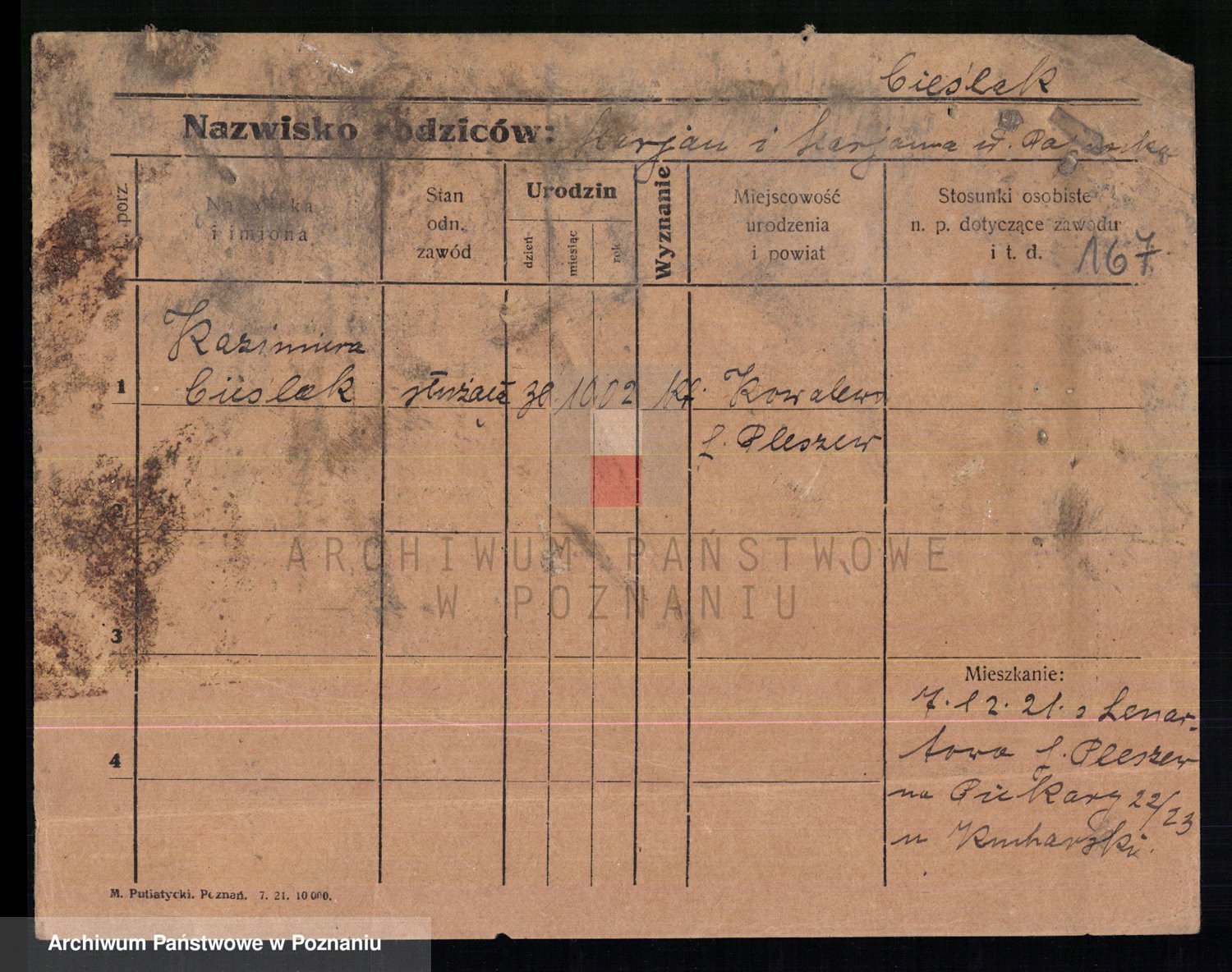 Cieślak, Kazimiera
