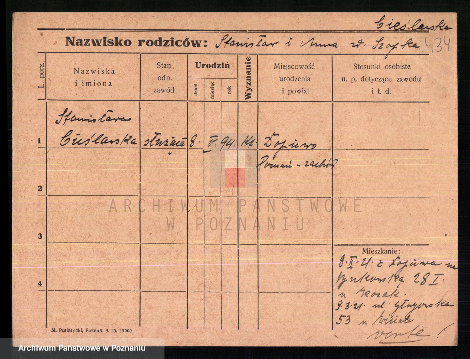 Cieslak z.d. Wojciechowska, Stanislawa