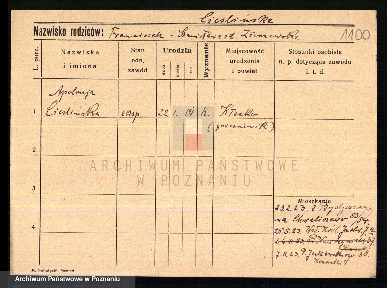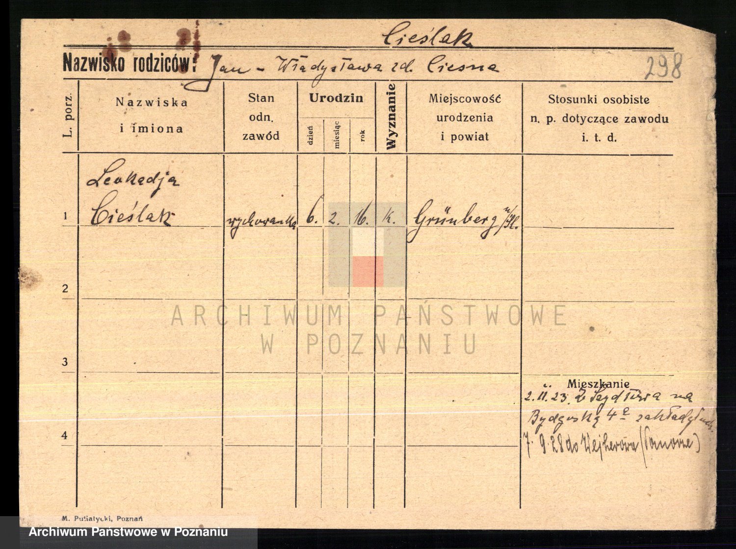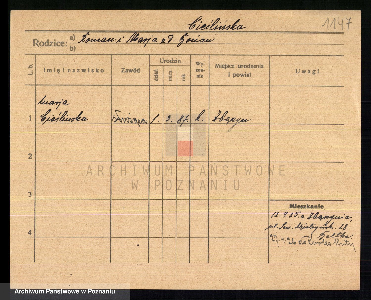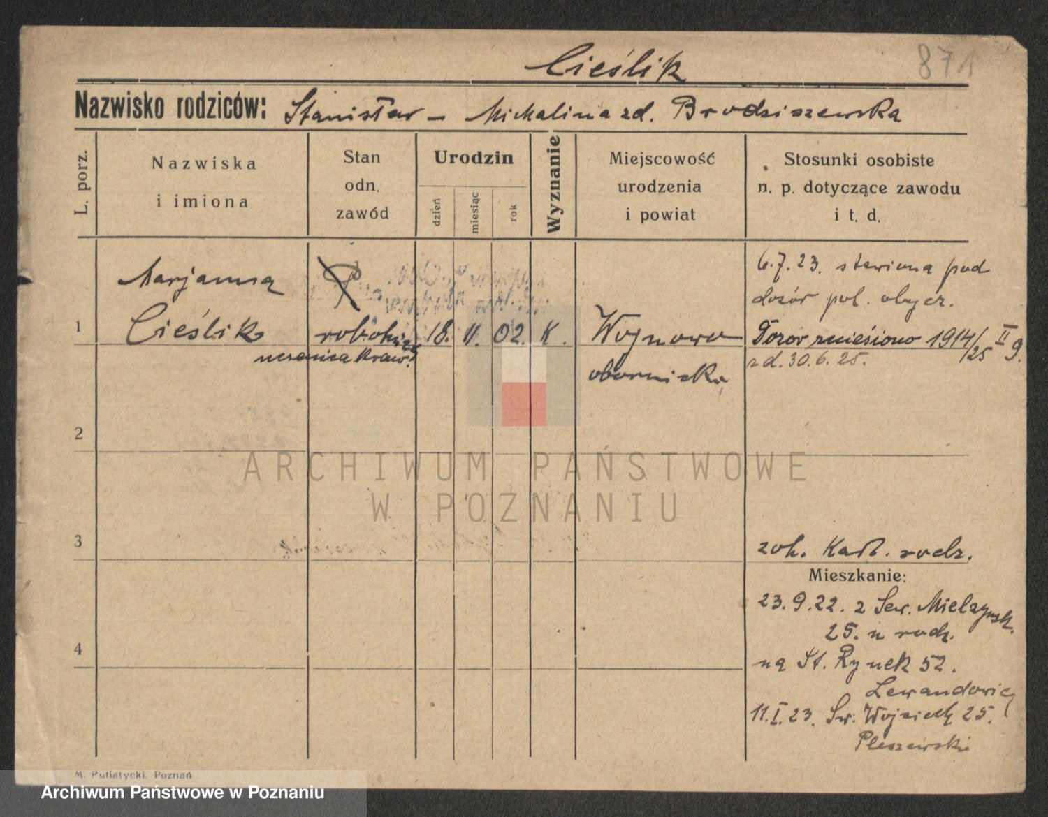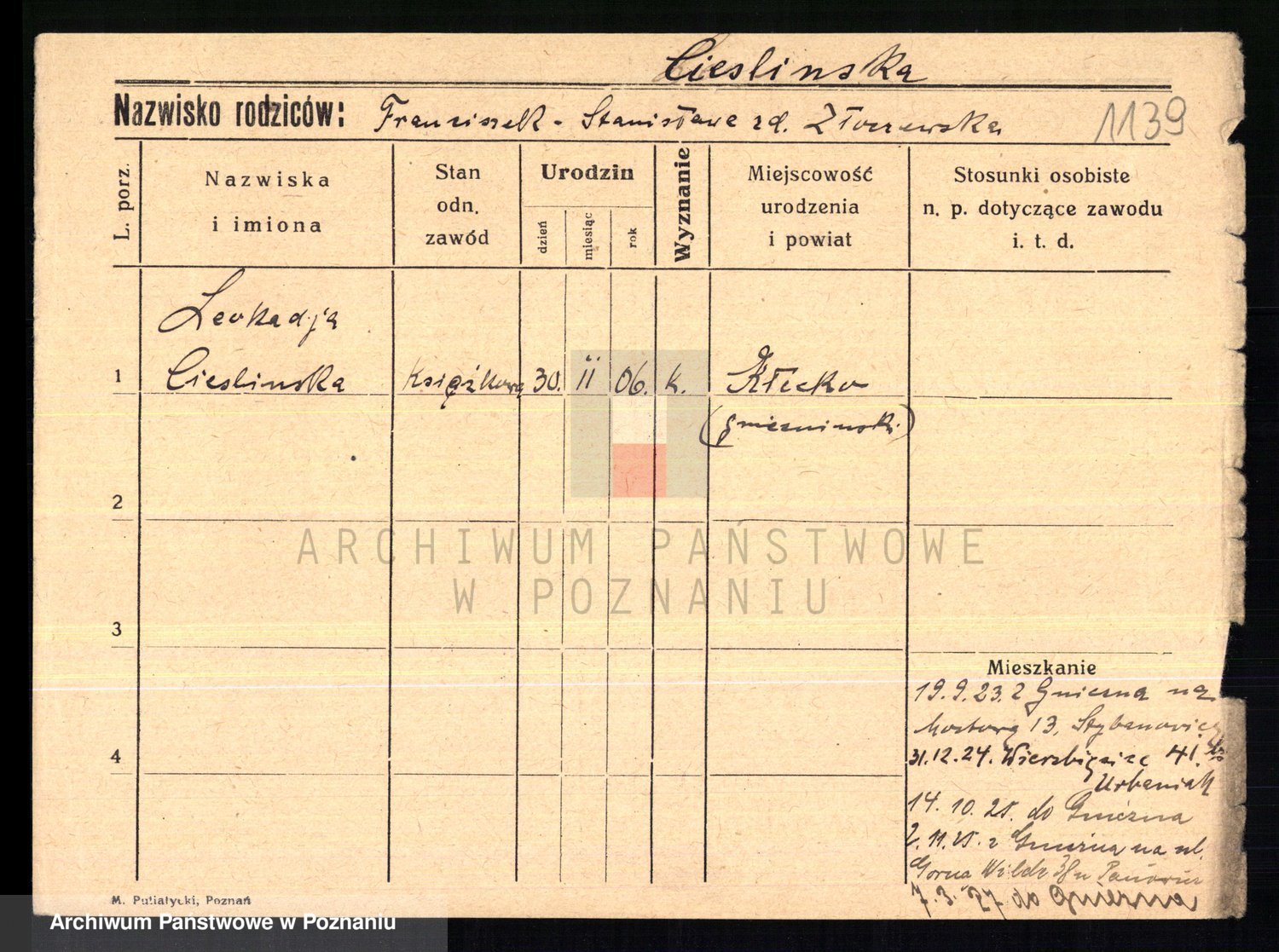 Cieszewski z.d. Brywczynska, Marja Stanisława