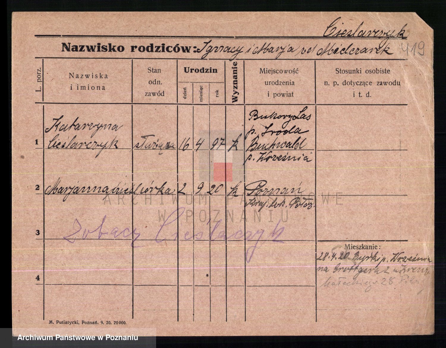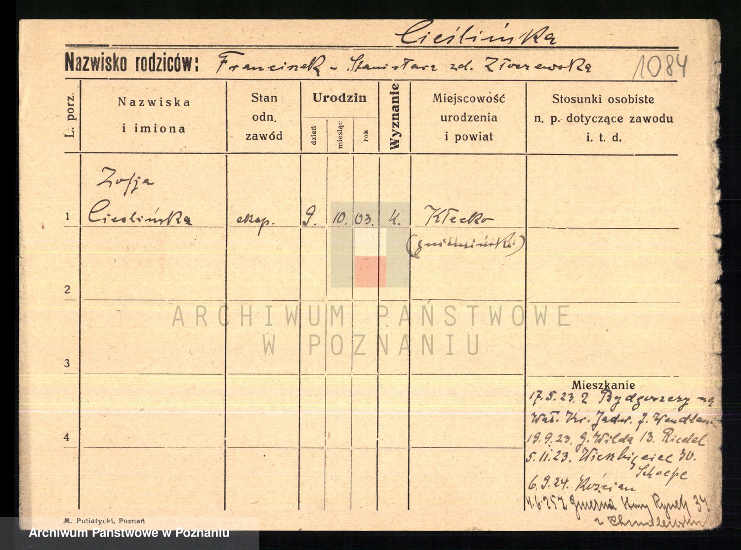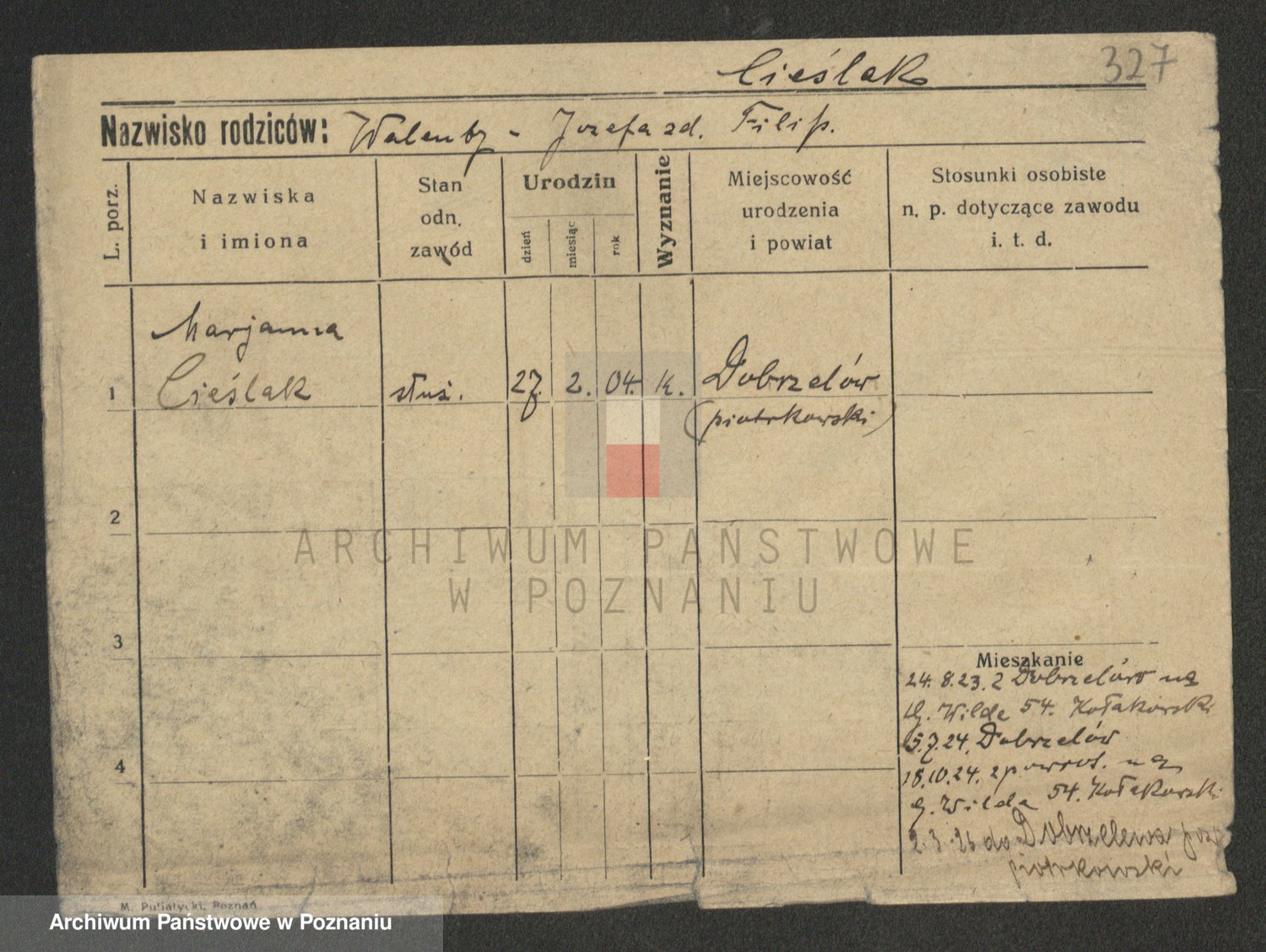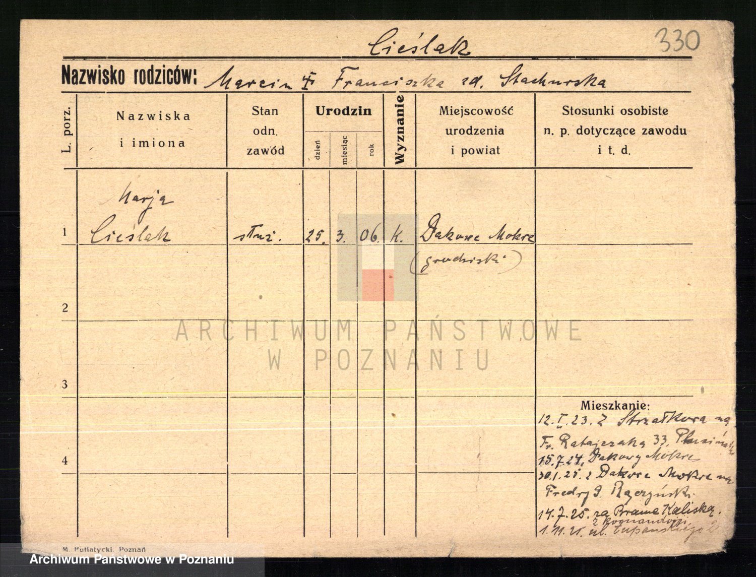 Cieszewski z.d. Brywczynska, Marja Stanisława