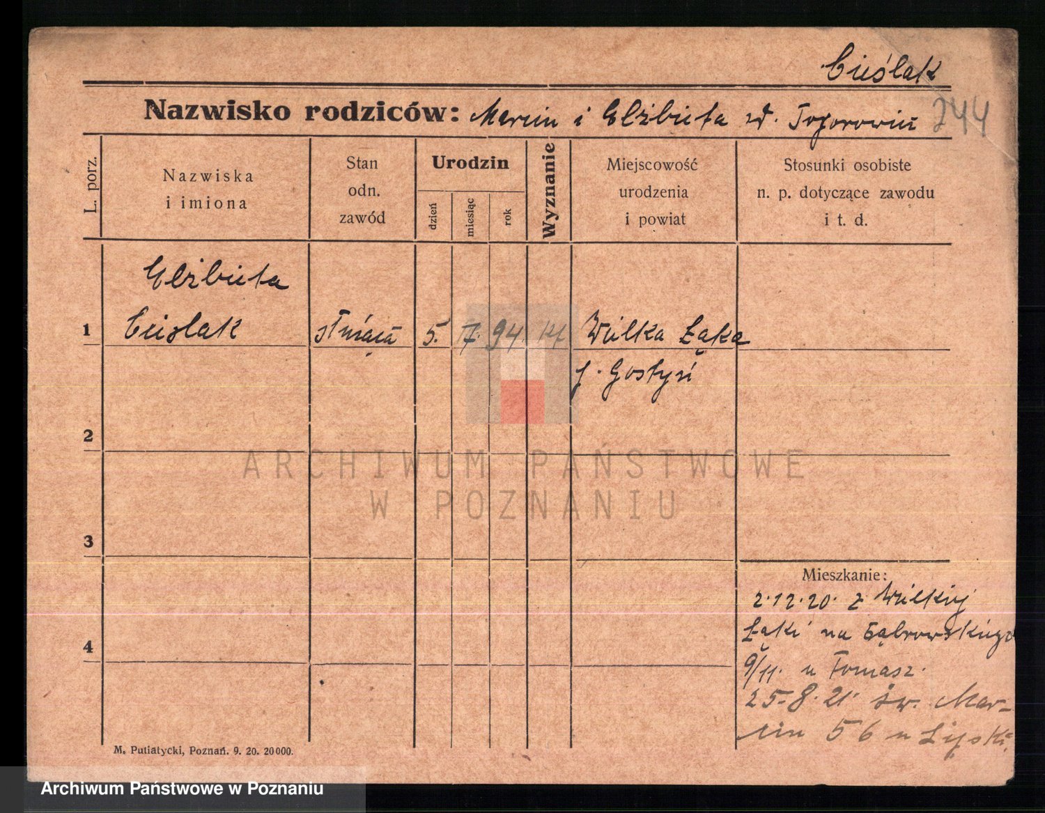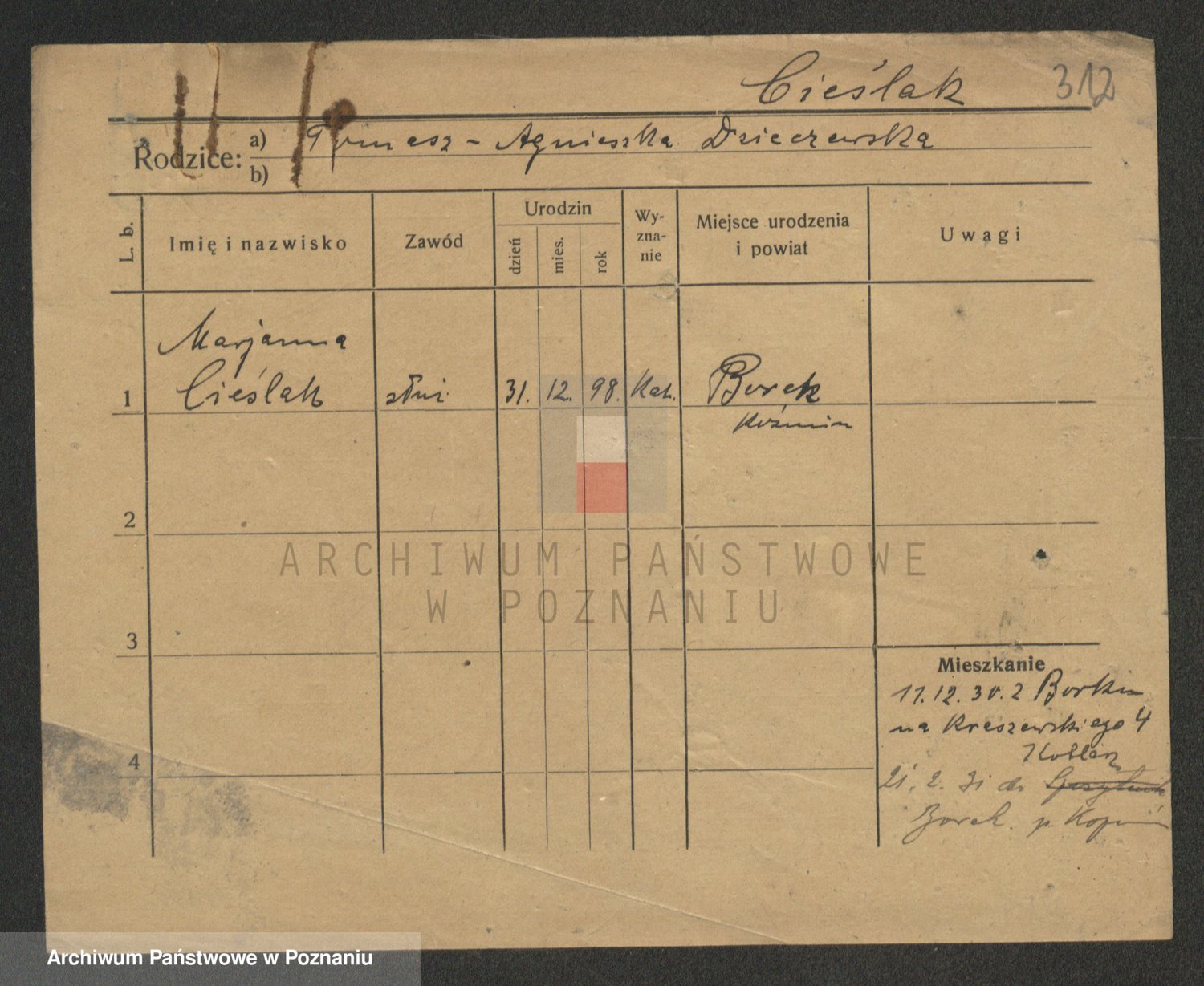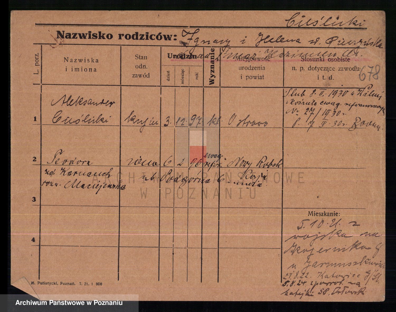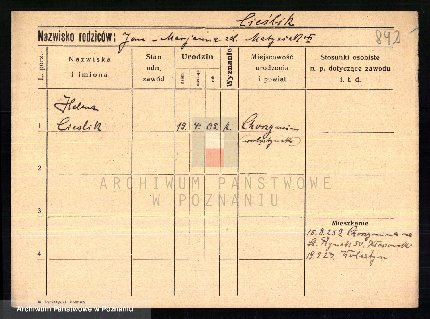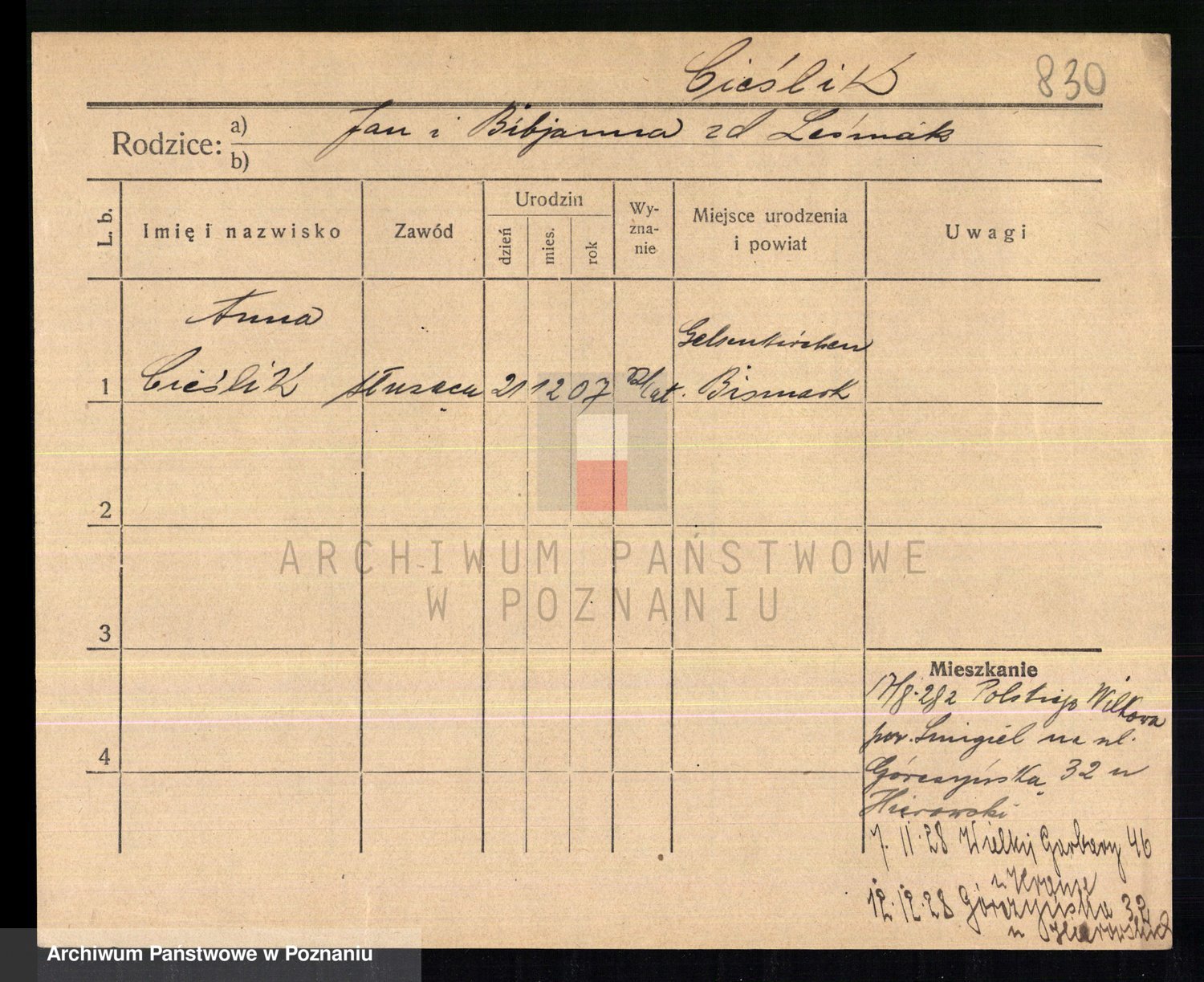 Cieszewski z.d. Brywczynska, Marja Stanisława