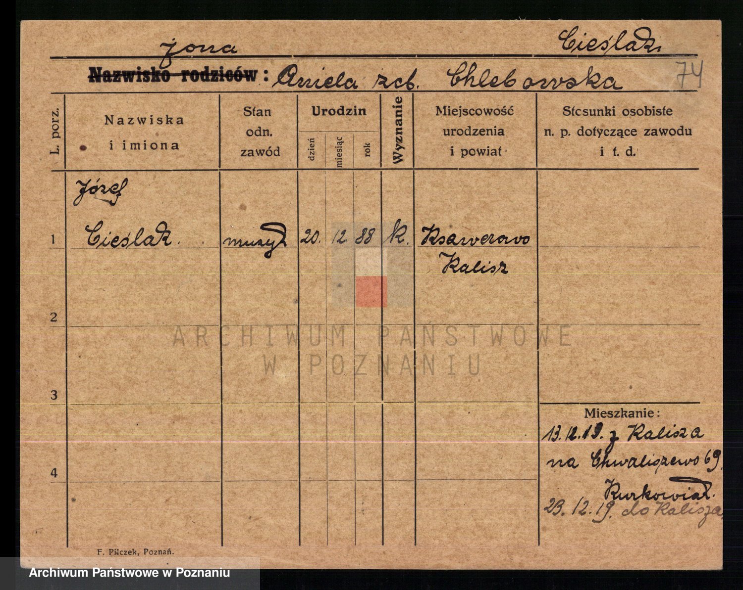 Cieśla z.d. Kulczak I voto Dobak Przybysz, Jozefa