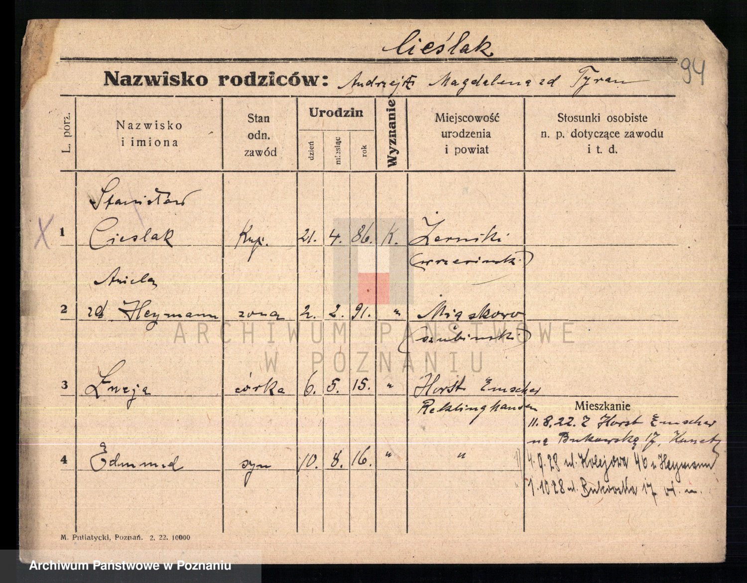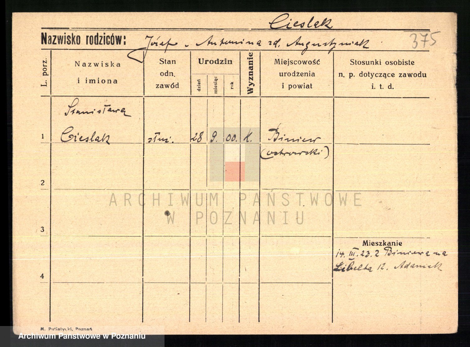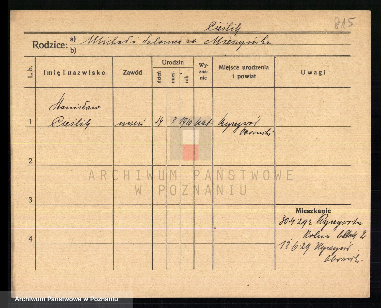 Cieszyk, Stanislaus