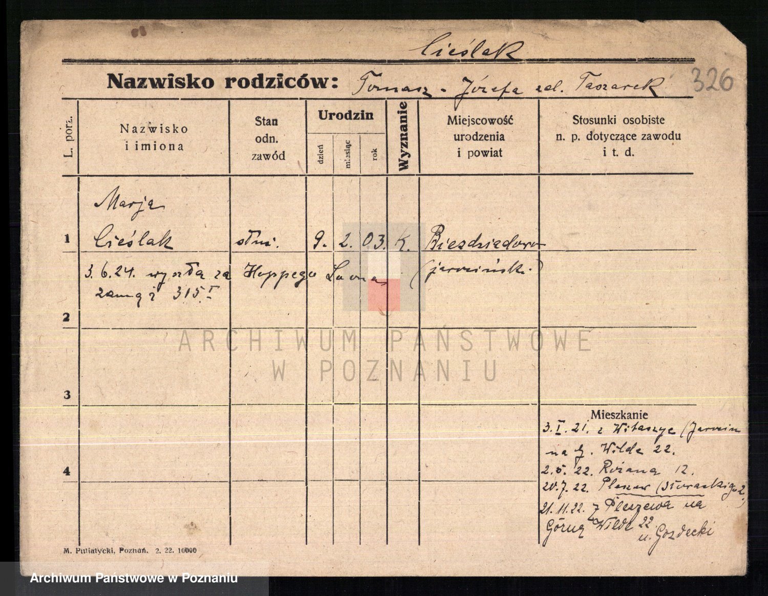 Cieślak z.d. Kijak, Marja Sabina