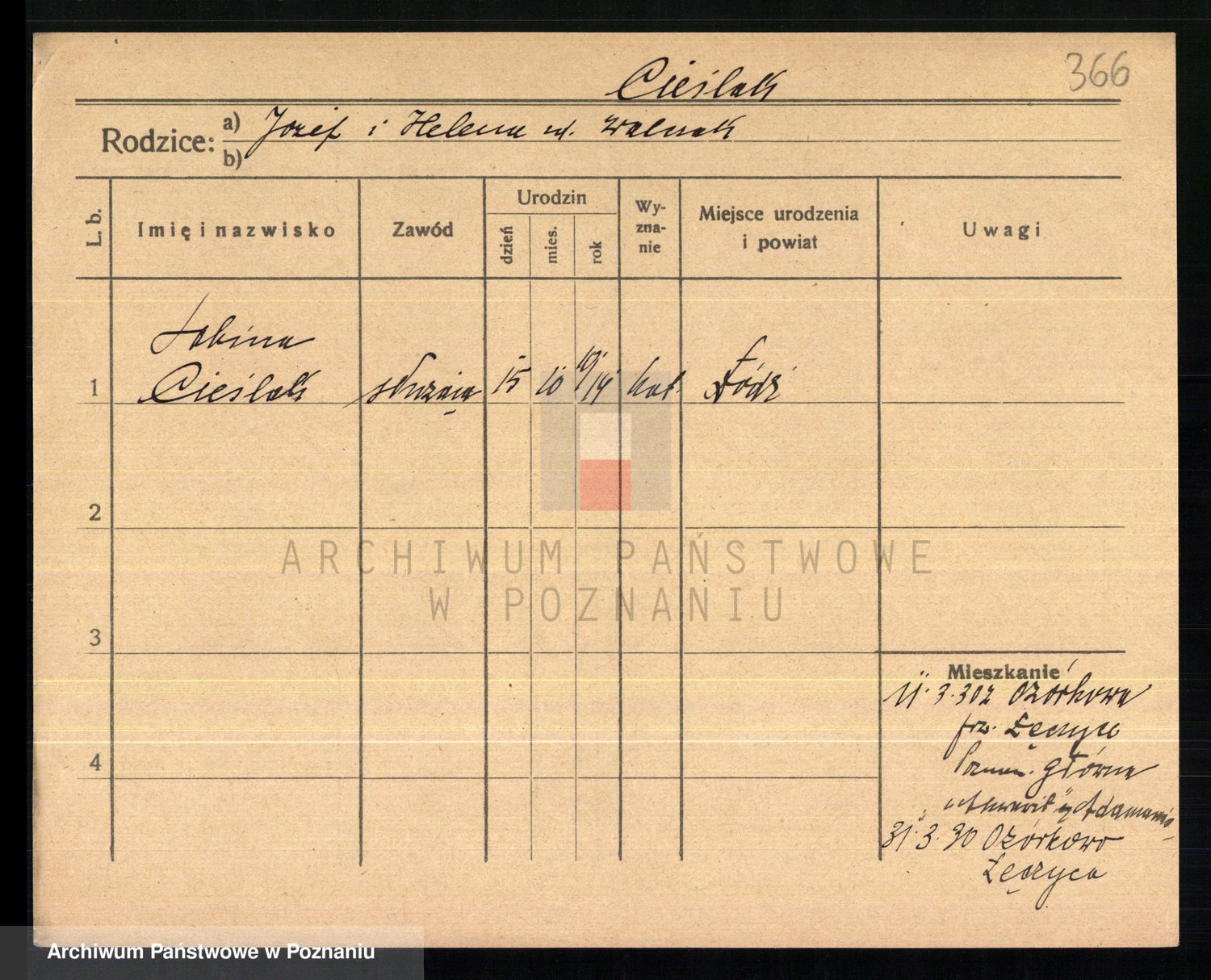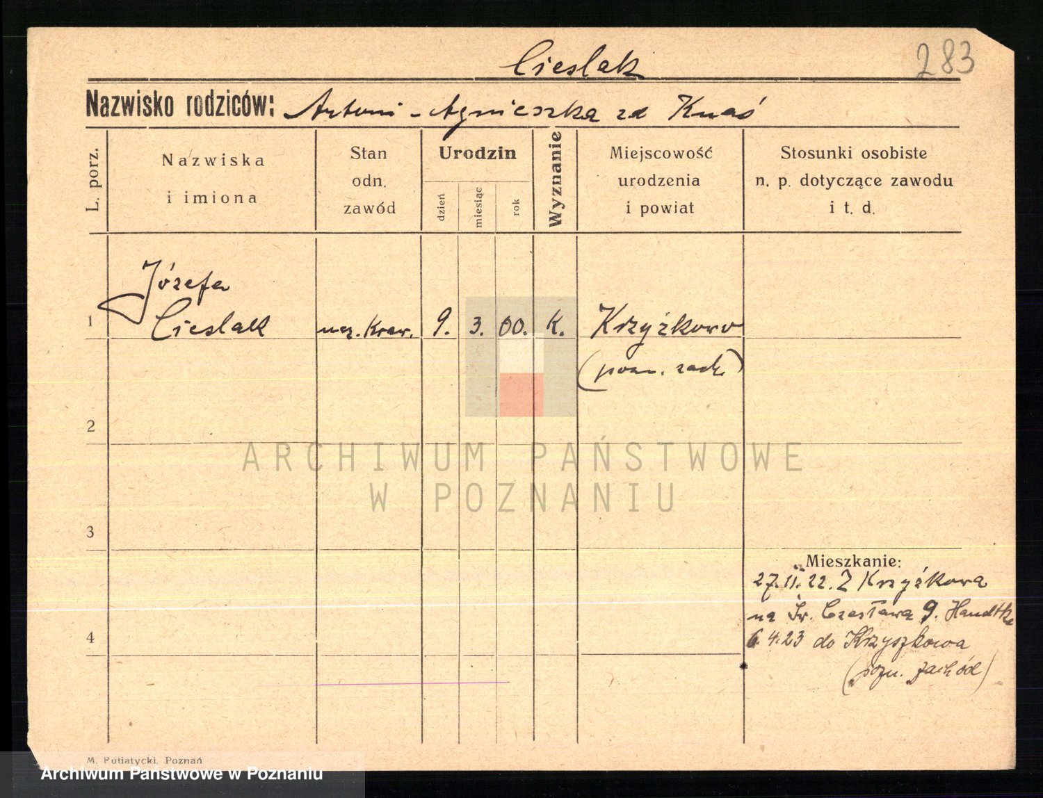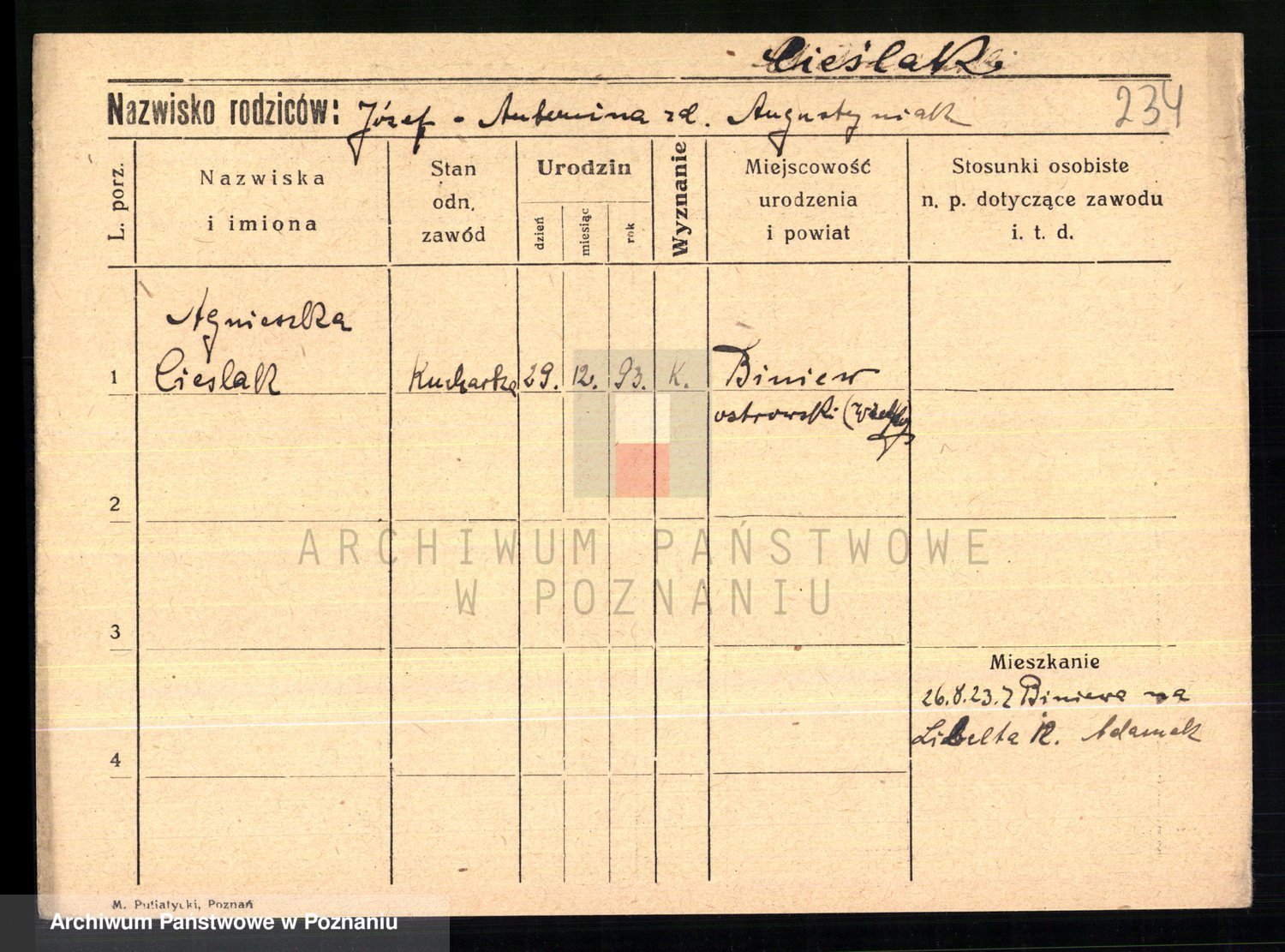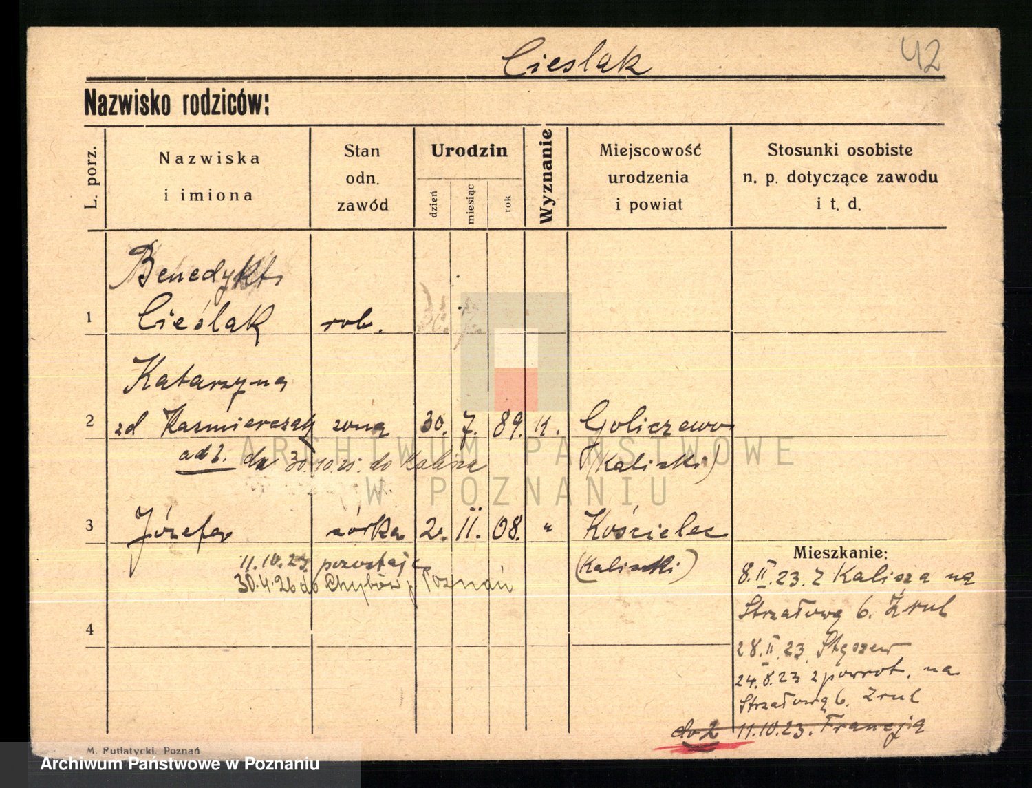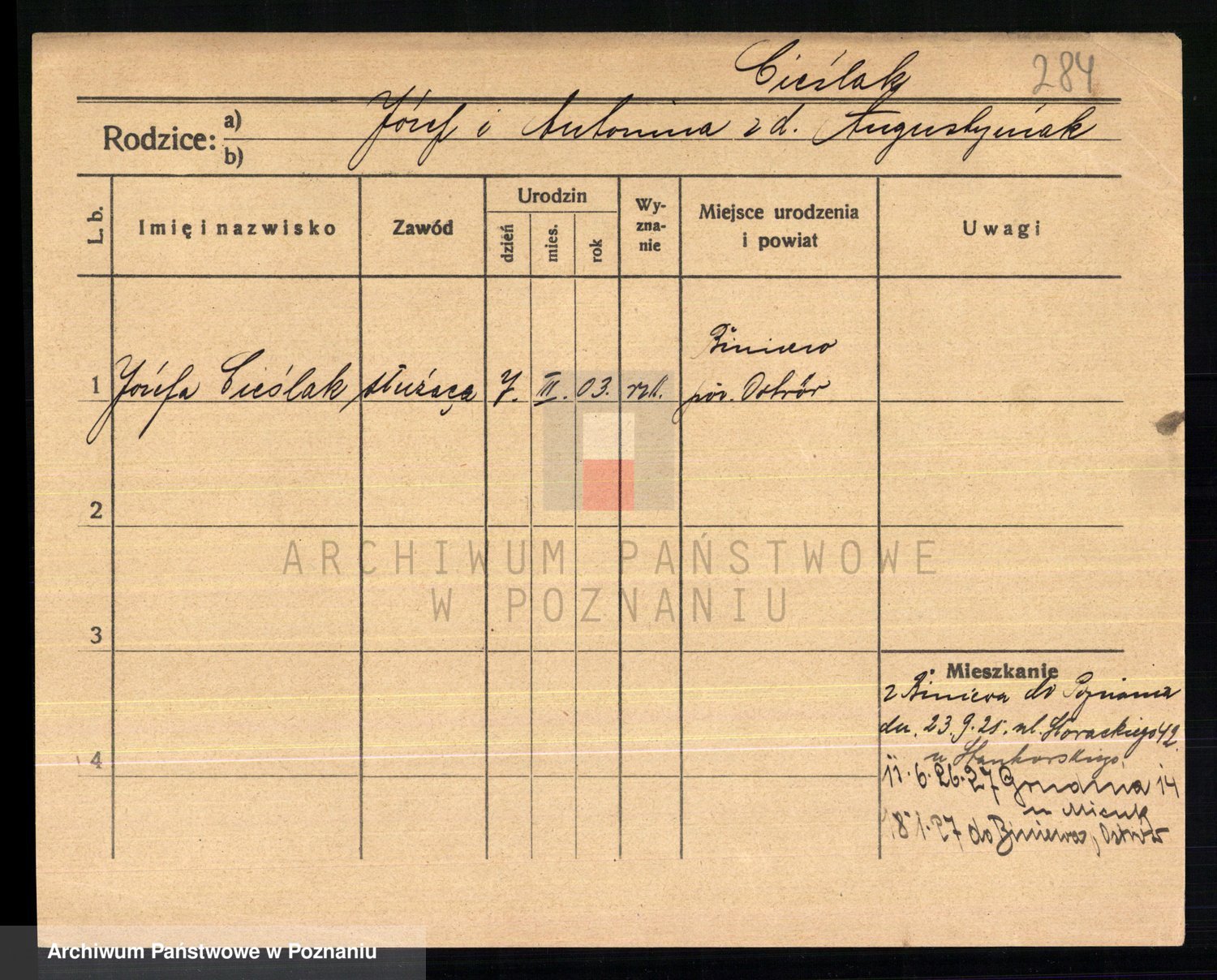 Cieślak, Józefa
