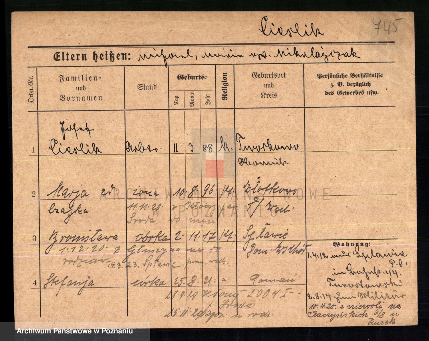 Cieslak z.d. Polodÿ, Michalina