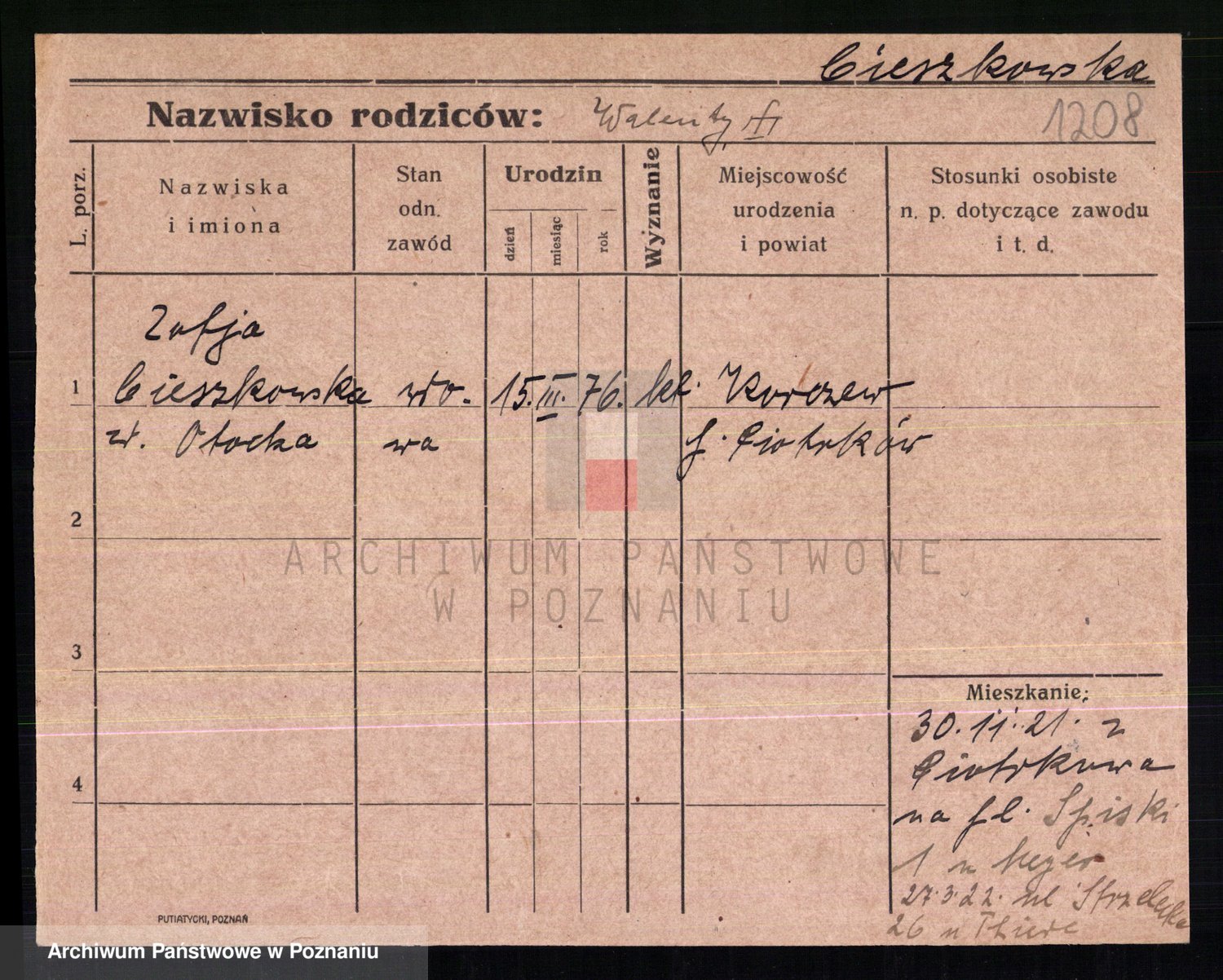 Cieszkowska z.d. Otocka, Zofja