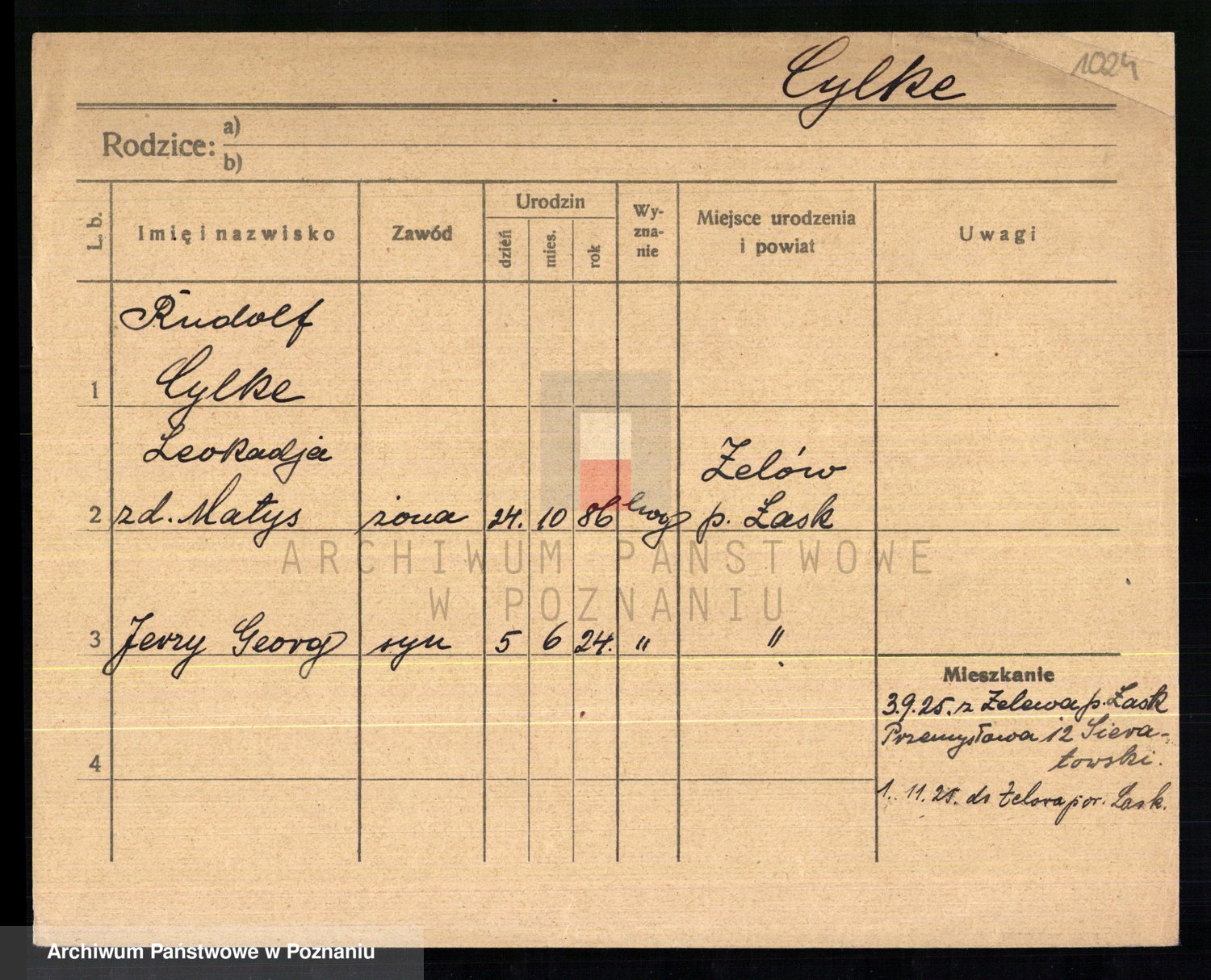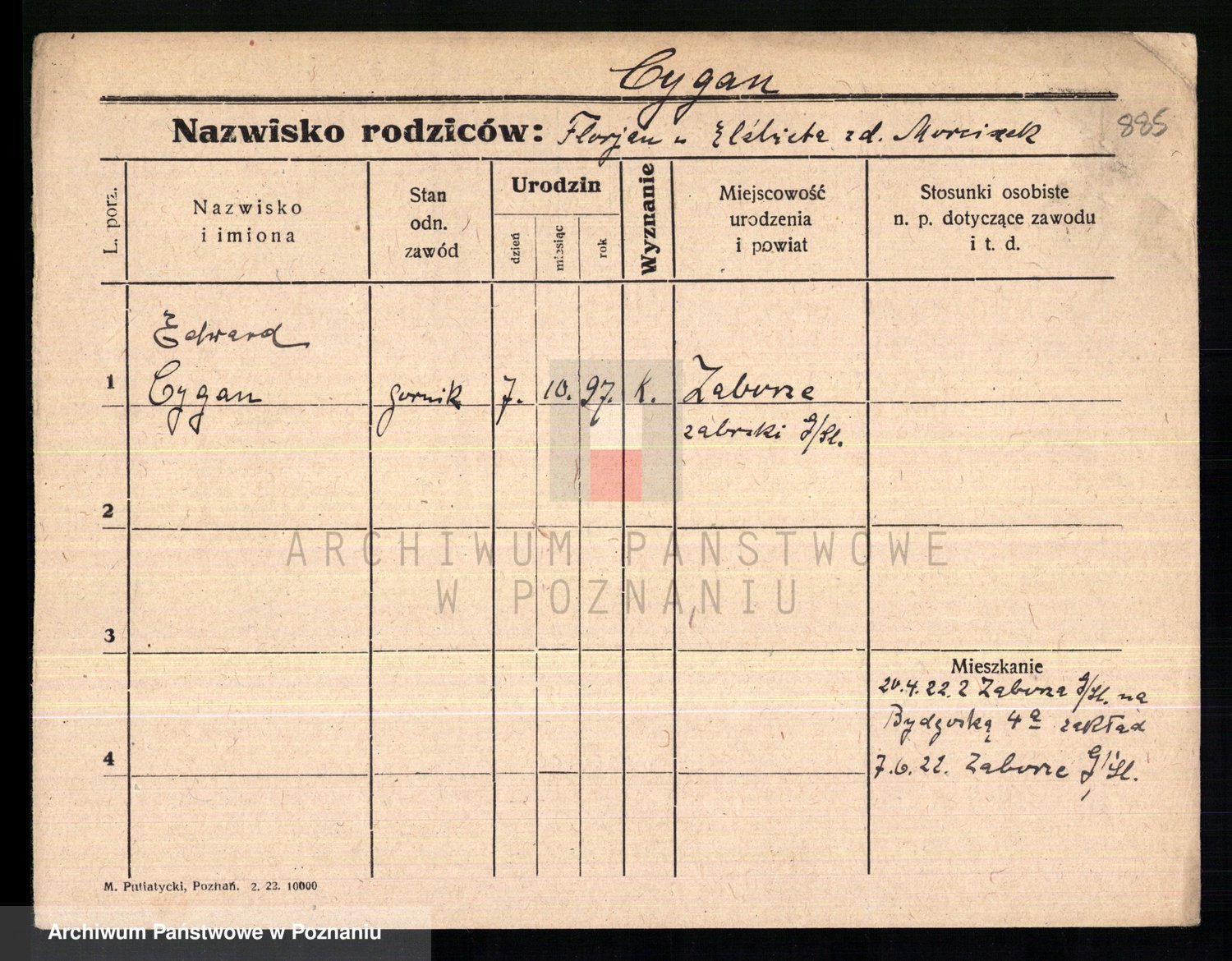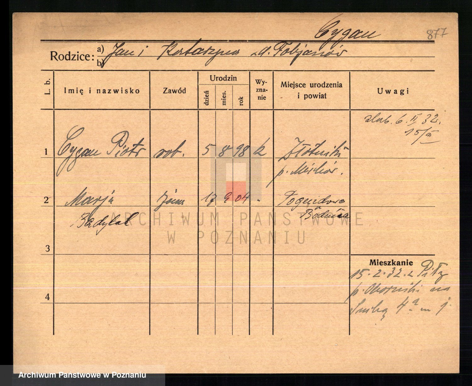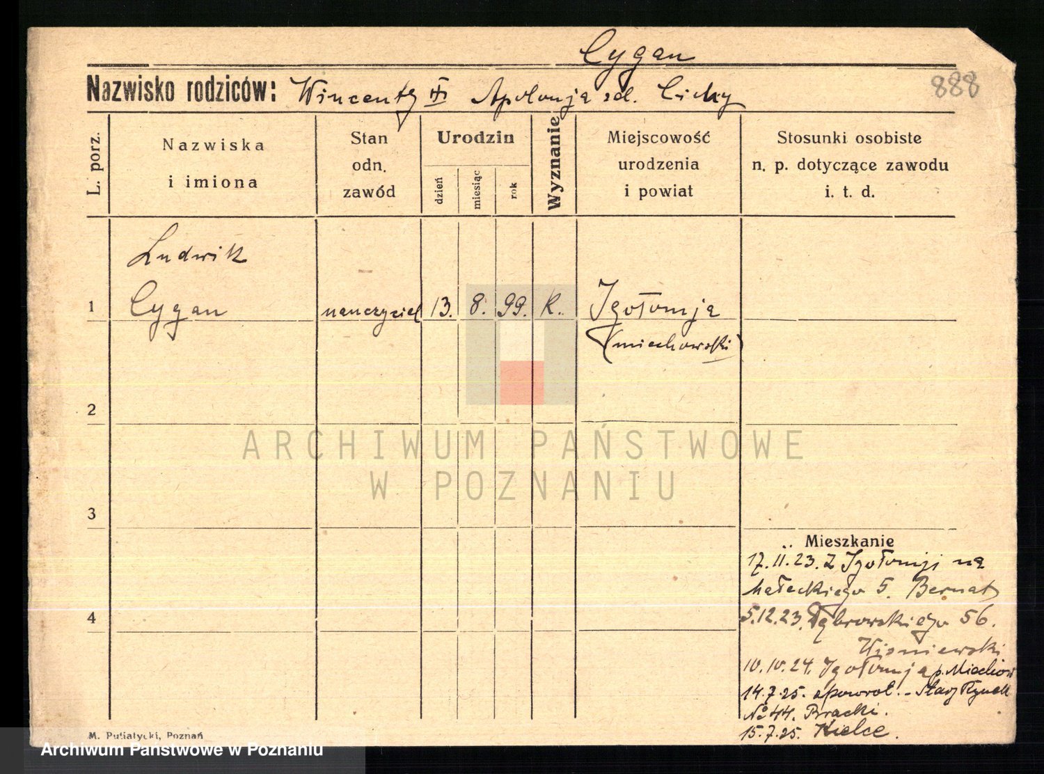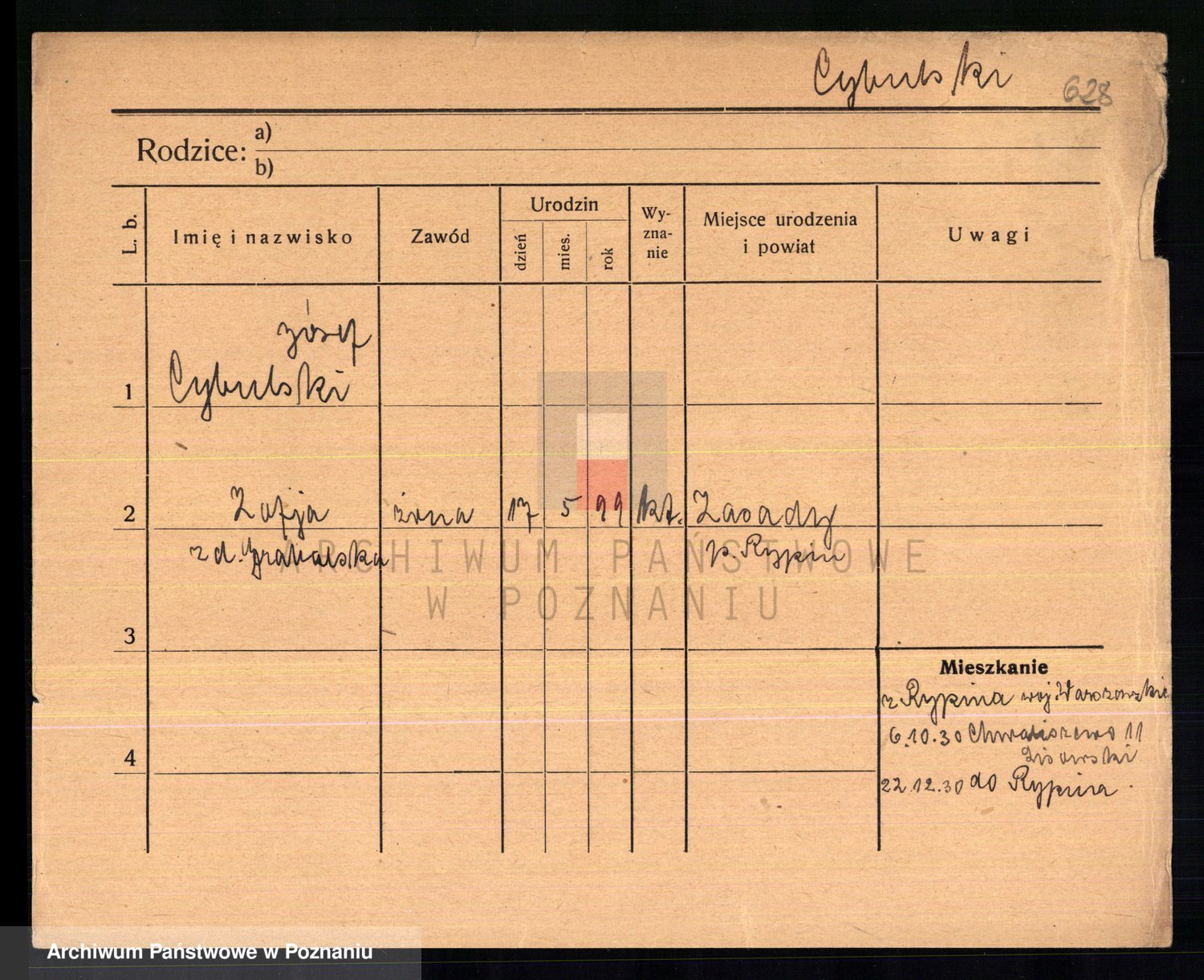 Podgląd karty osobowej dostępny jest po kliknięciu na nazwisko lub ikonkę karty. Można dokonywać powiększenia (ikony na górze) lub przechodzić między kolejnymi skanami (strzałki po bokach).