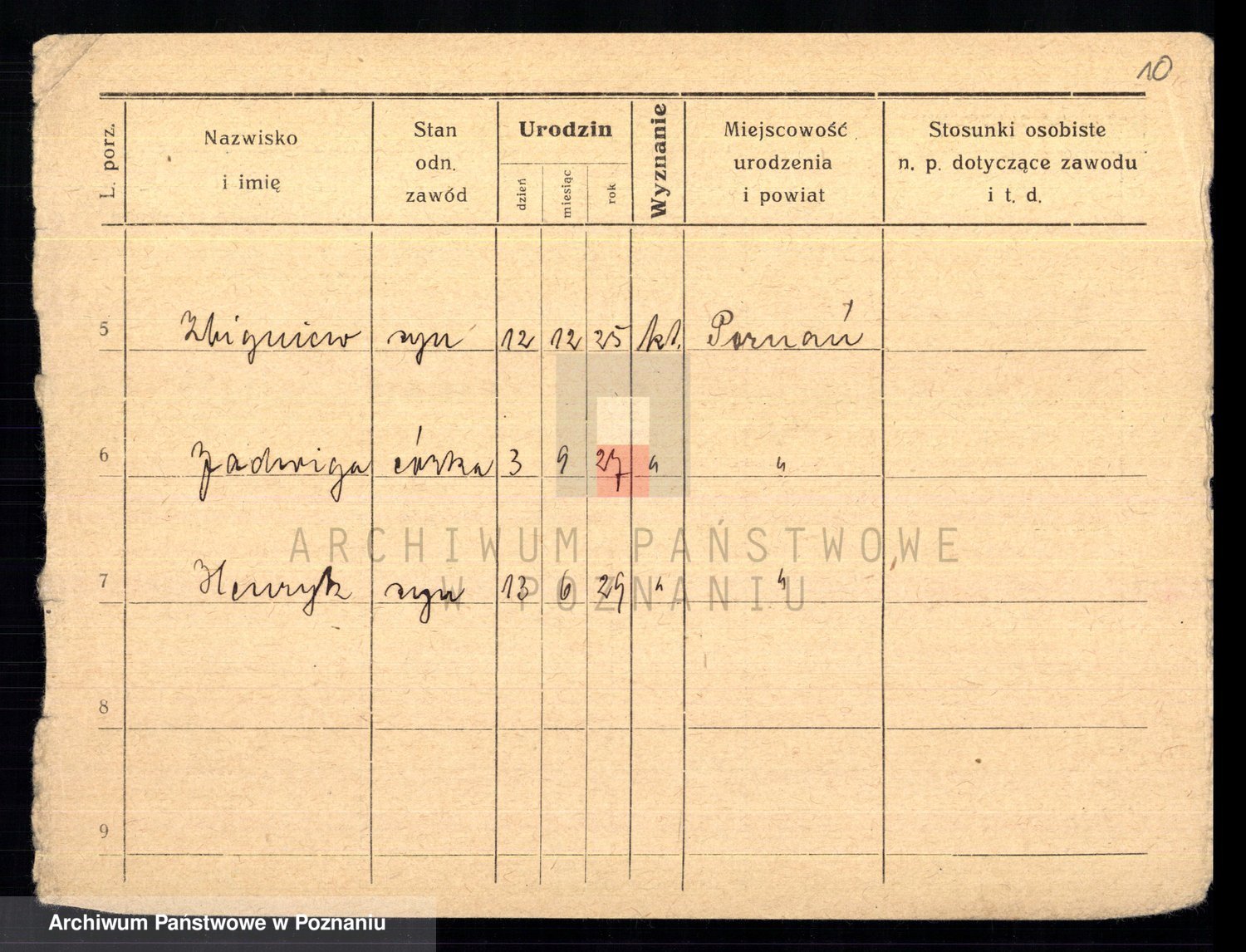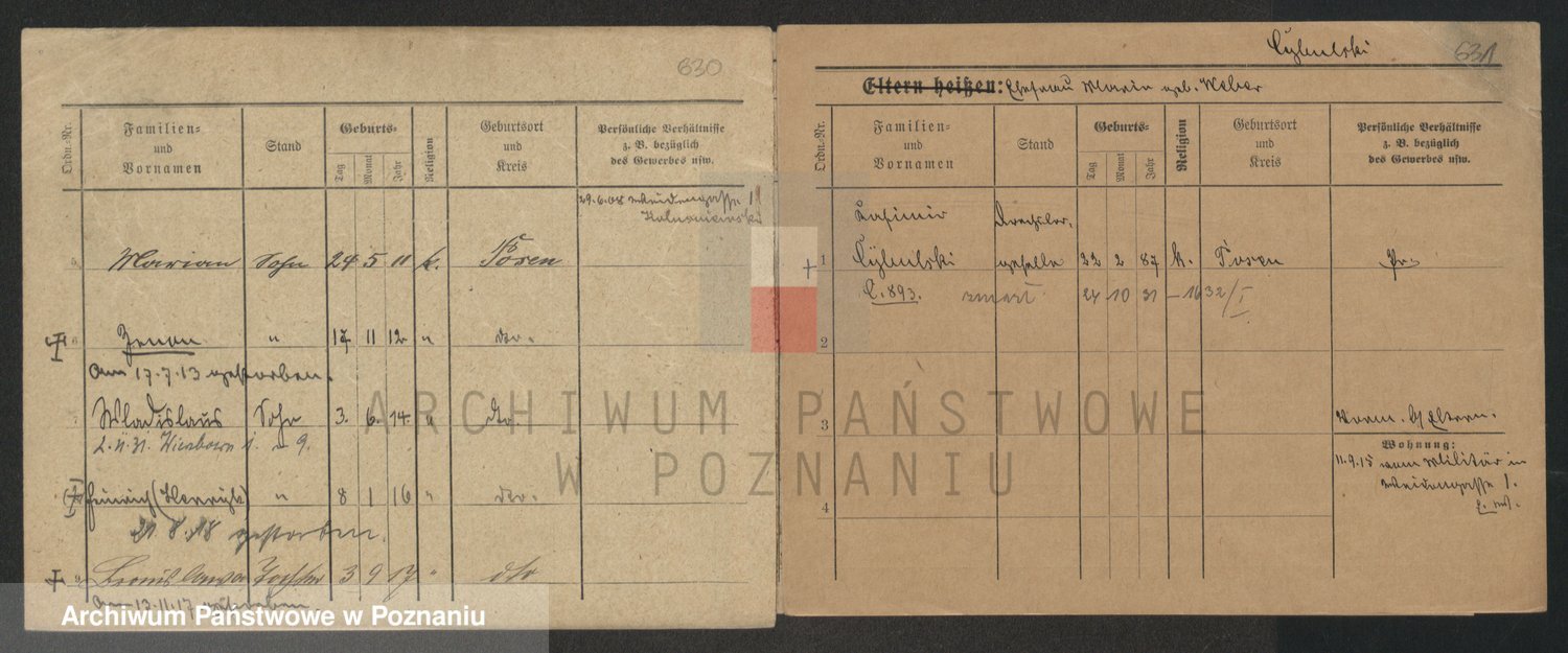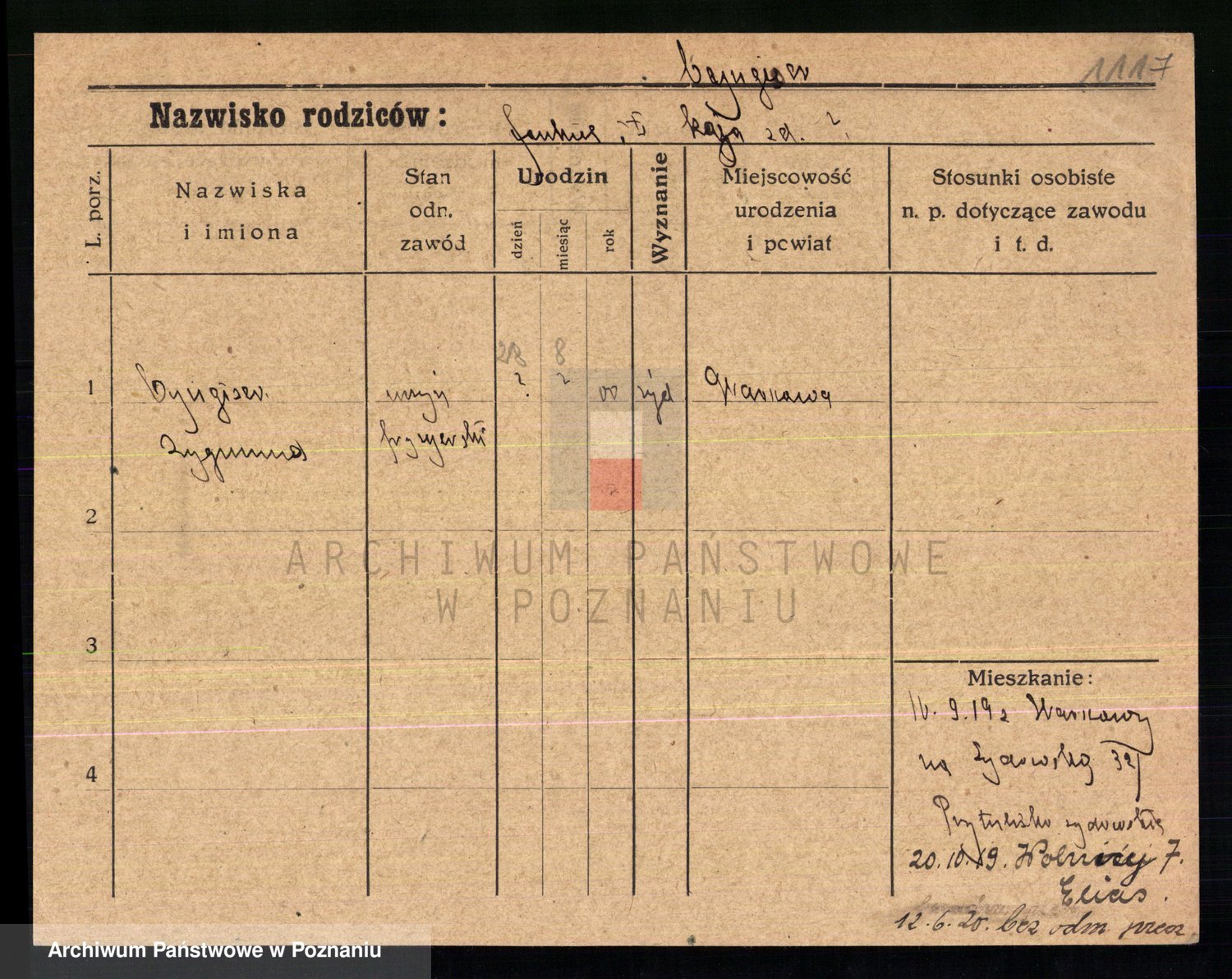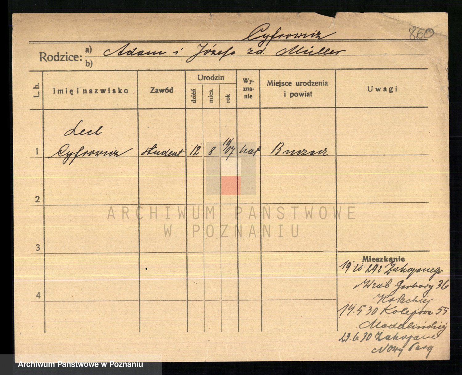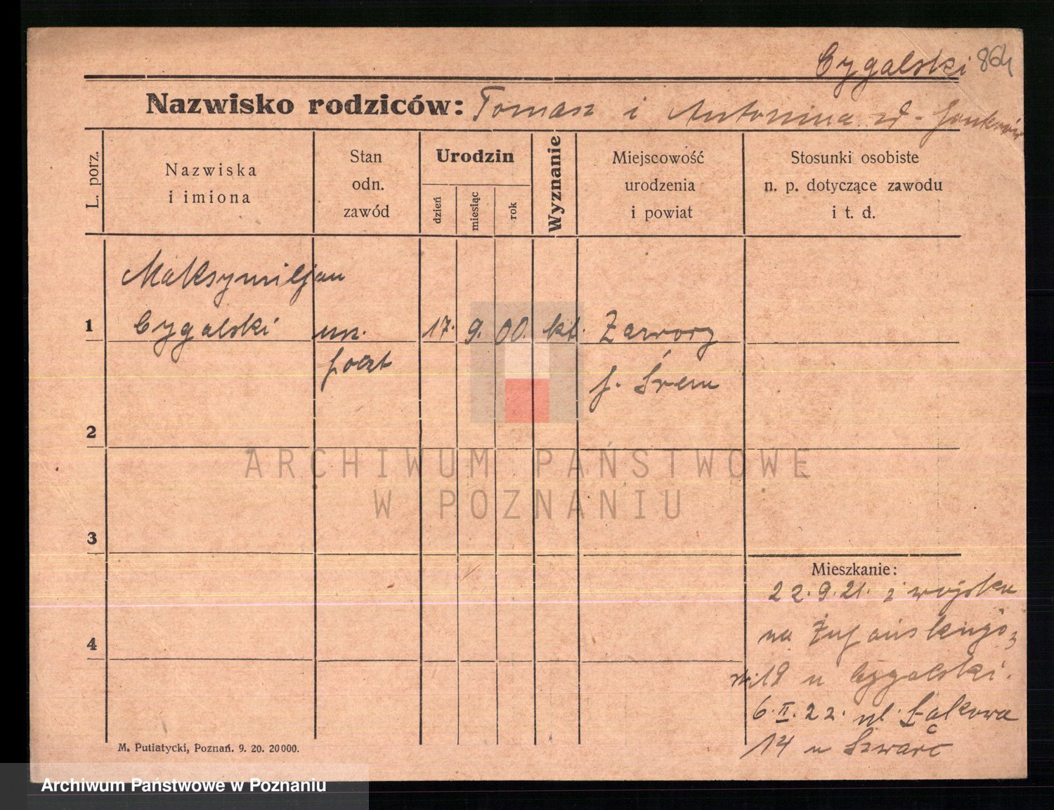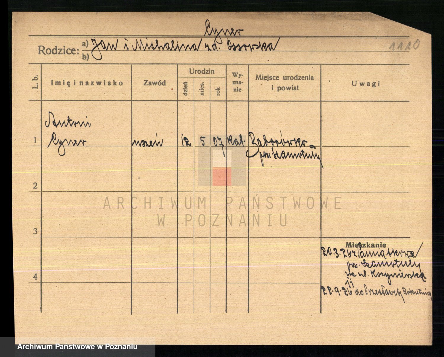 Podgląd karty osobowej dostępny jest po kliknięciu na nazwisko lub ikonkę karty. Można dokonywać powiększenia (ikony na górze) lub przechodzić między kolejnymi skanami (strzałki po bokach).