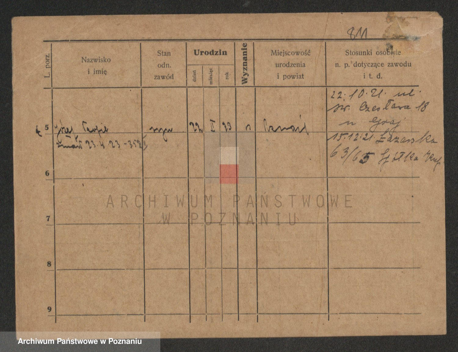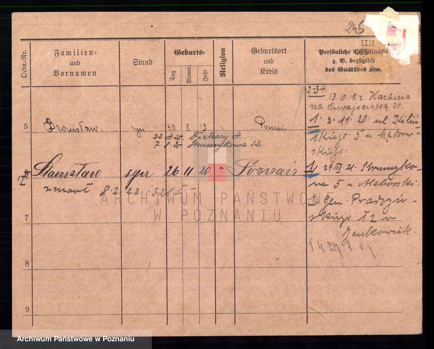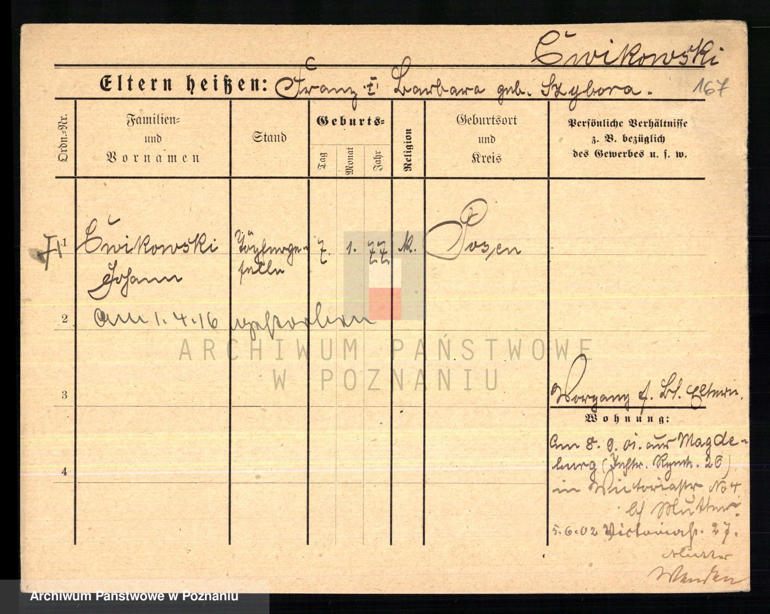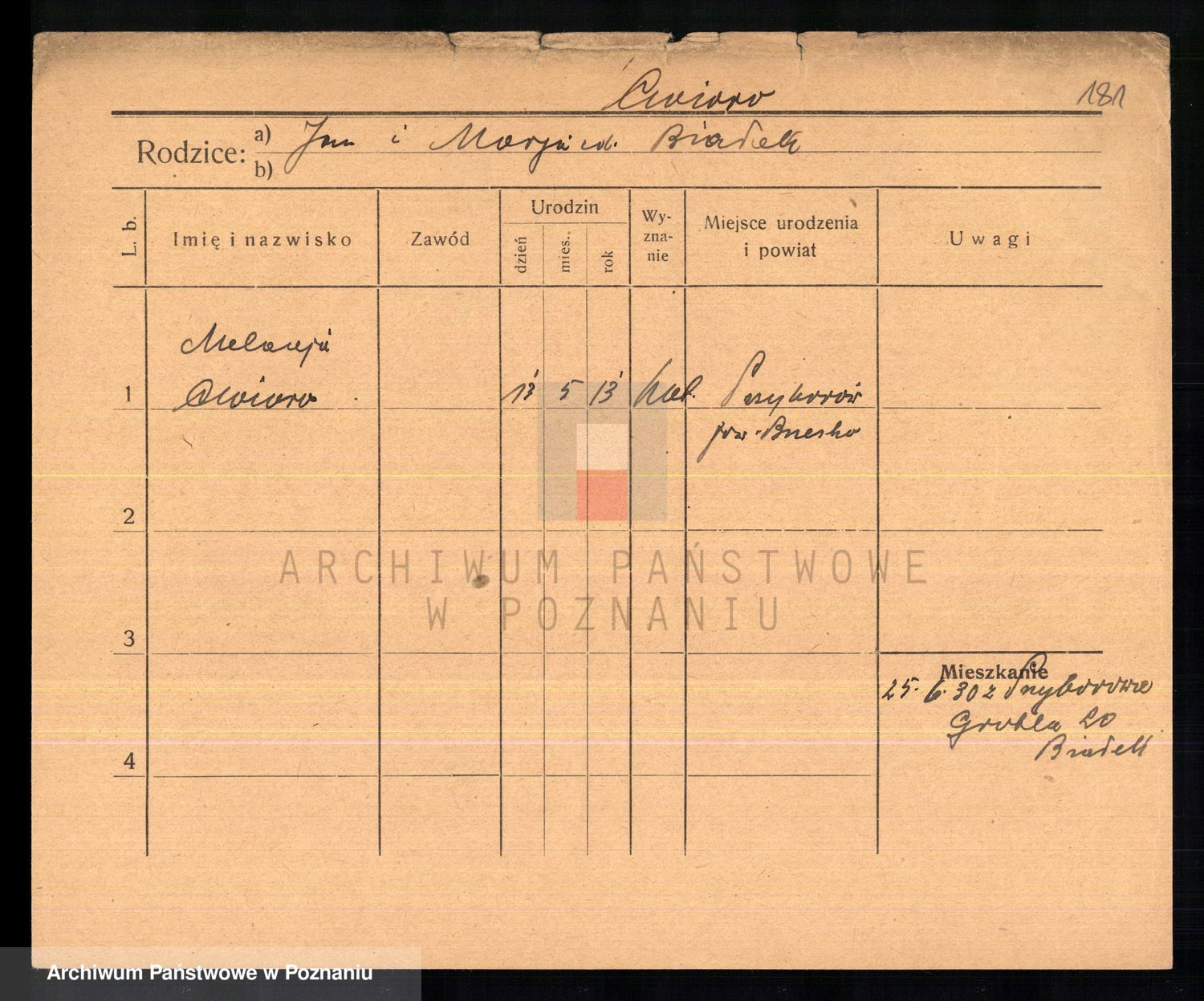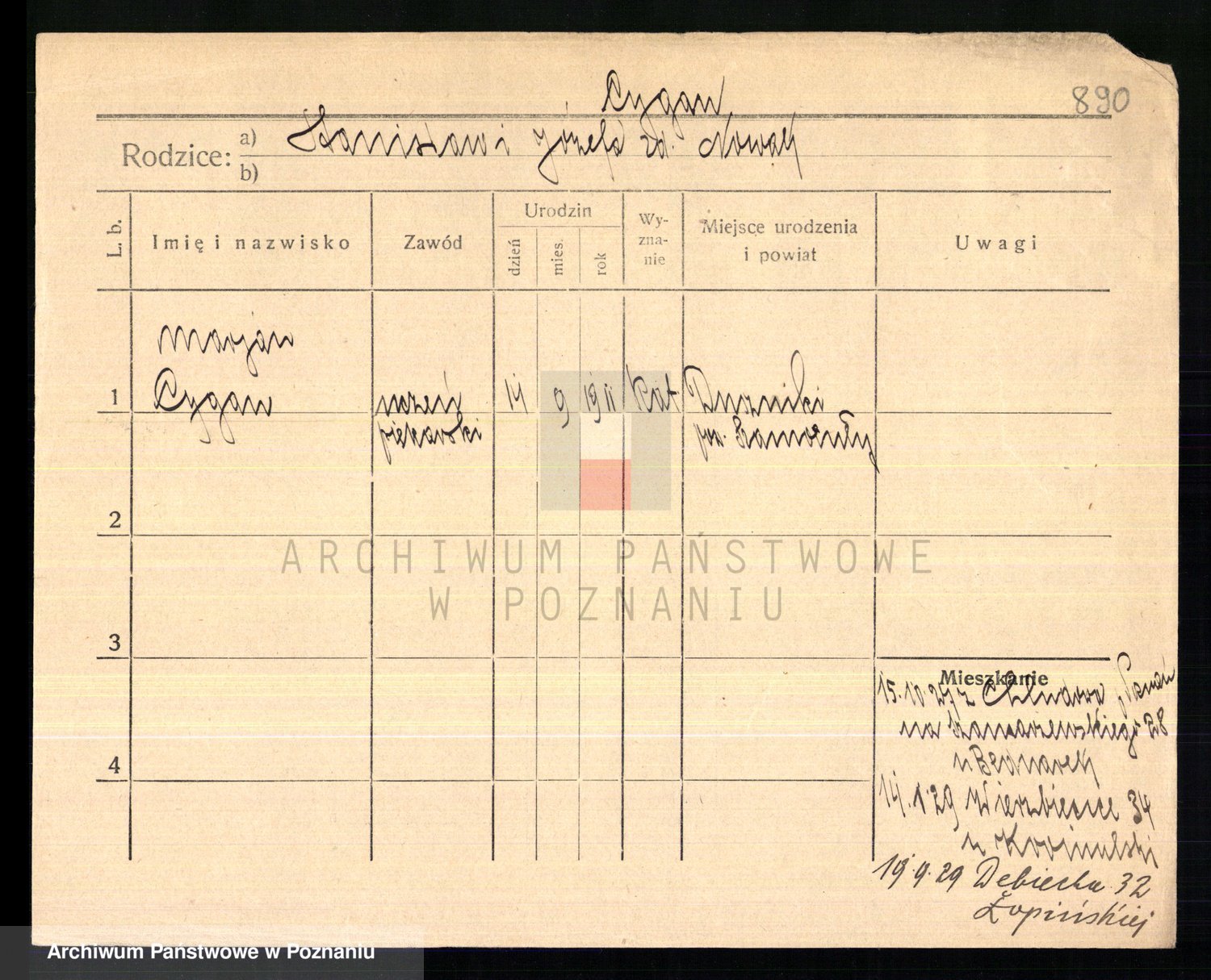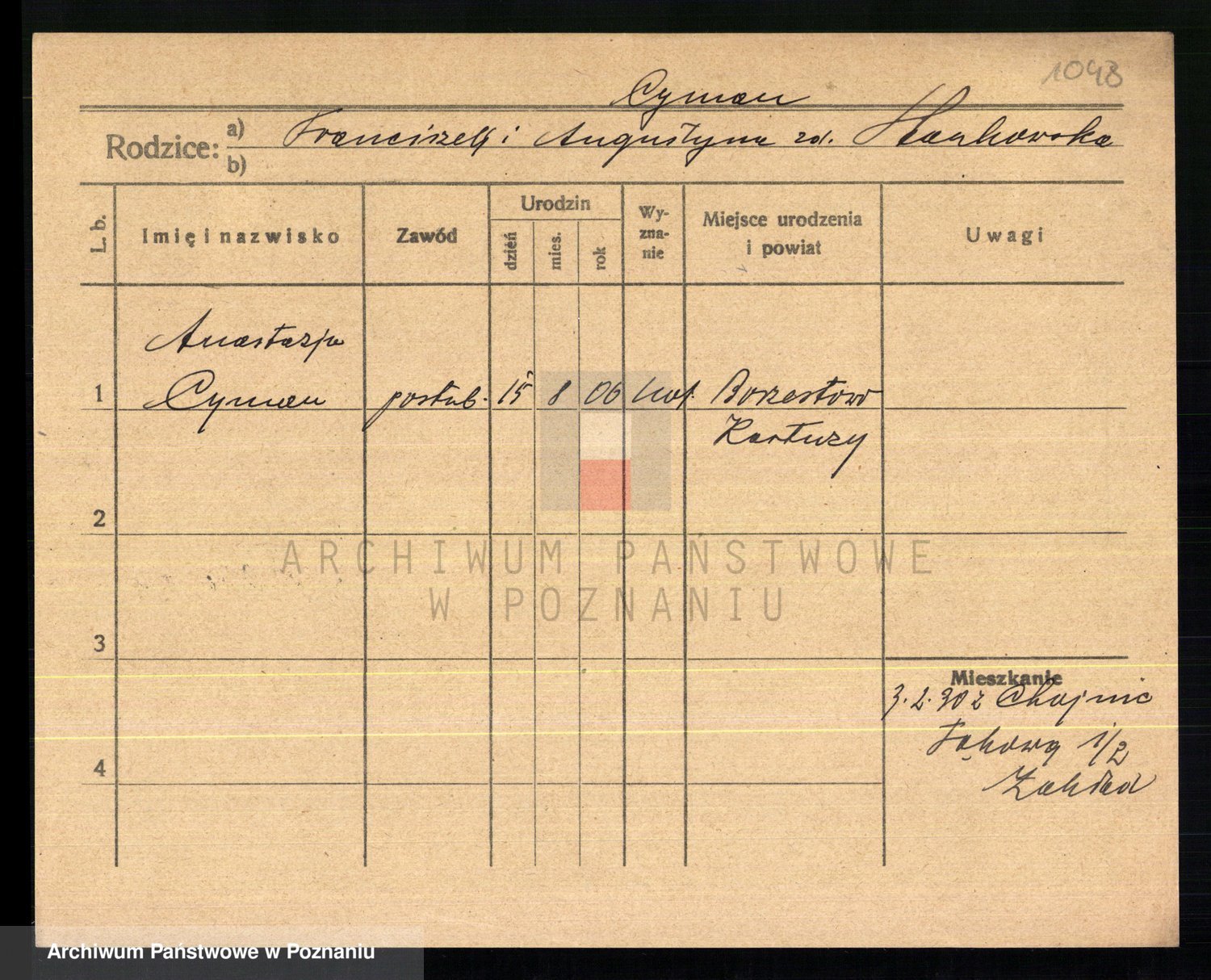Podgląd karty osobowej dostępny jest po kliknięciu na nazwisko lub ikonkę karty. Można dokonywać powiększenia (ikony na górze) lub przechodzić między kolejnymi skanami (strzałki po bokach).
