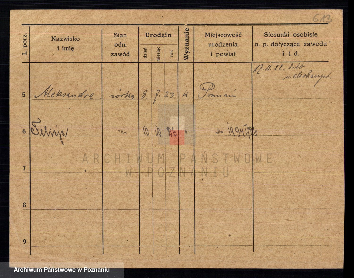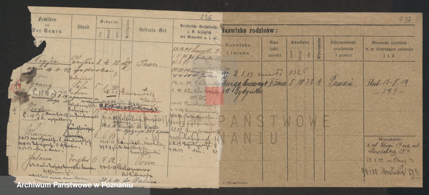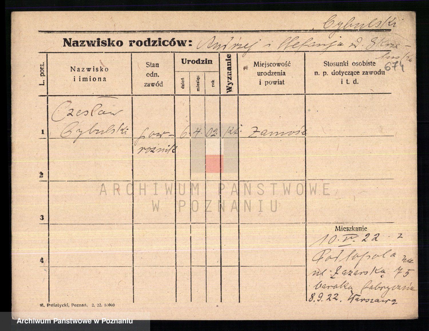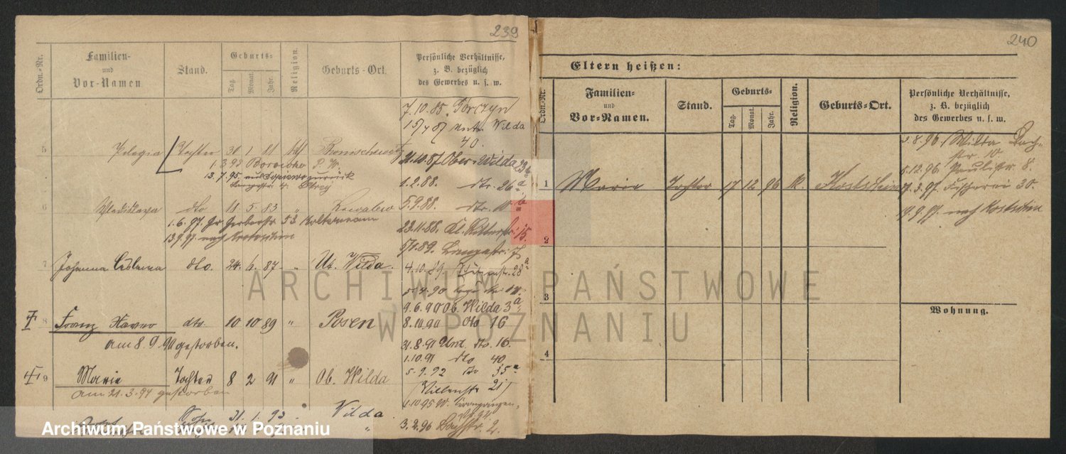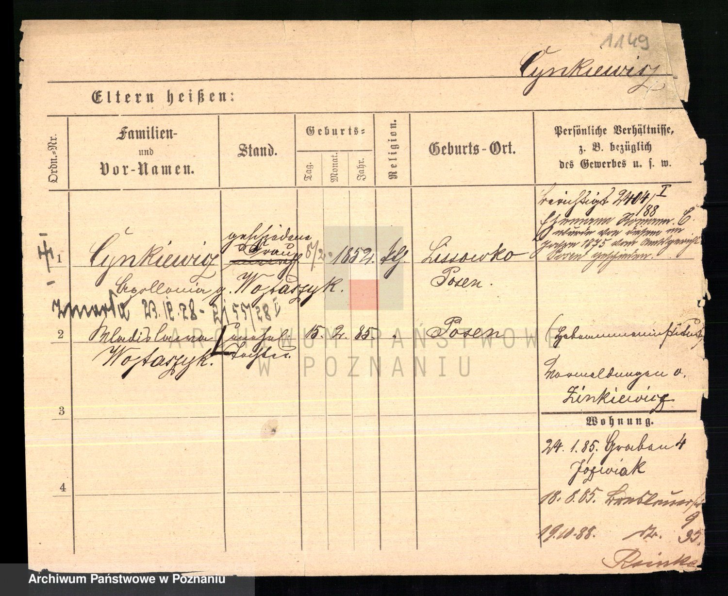 Podgląd karty osobowej dostępny jest po kliknięciu na nazwisko lub ikonkę karty. Można dokonywać powiększenia (ikony na górze) lub przechodzić między kolejnymi skanami (strzałki po bokach).