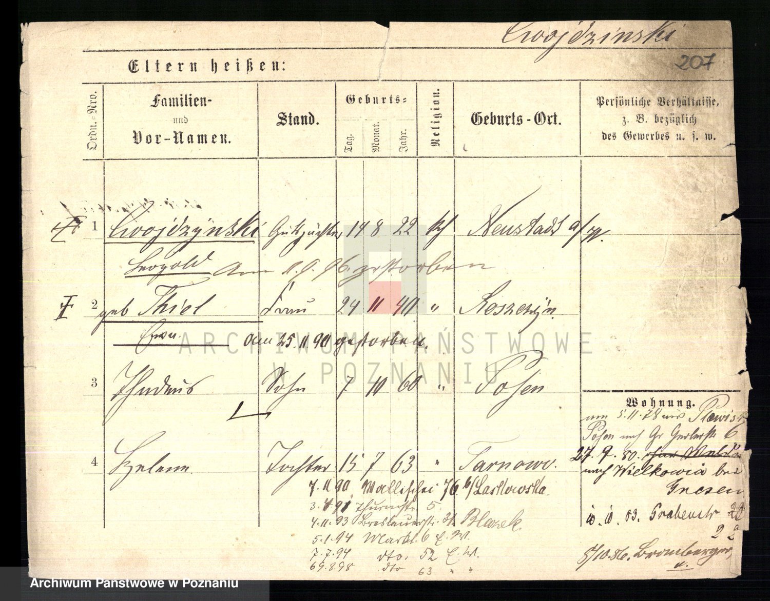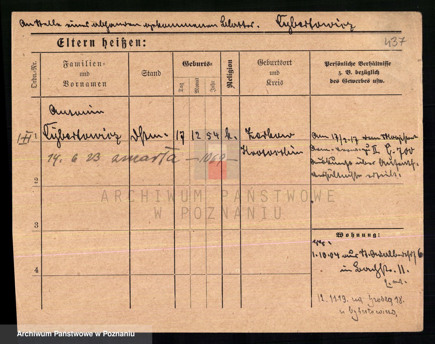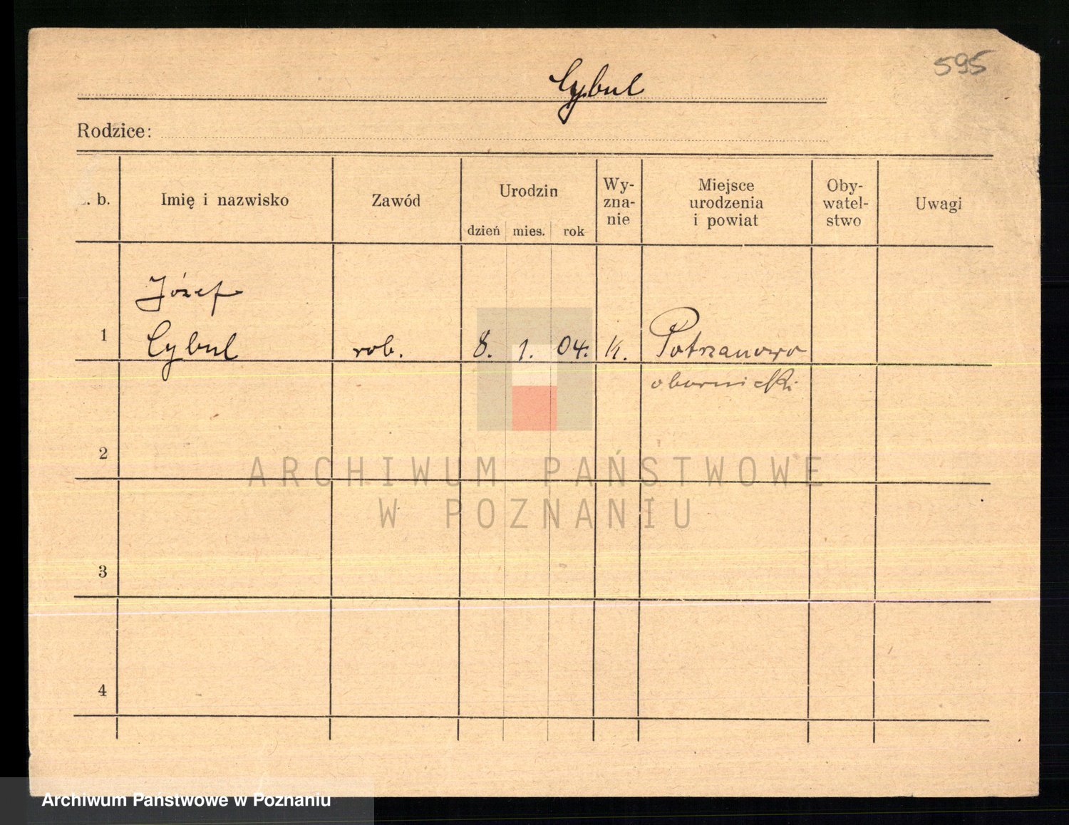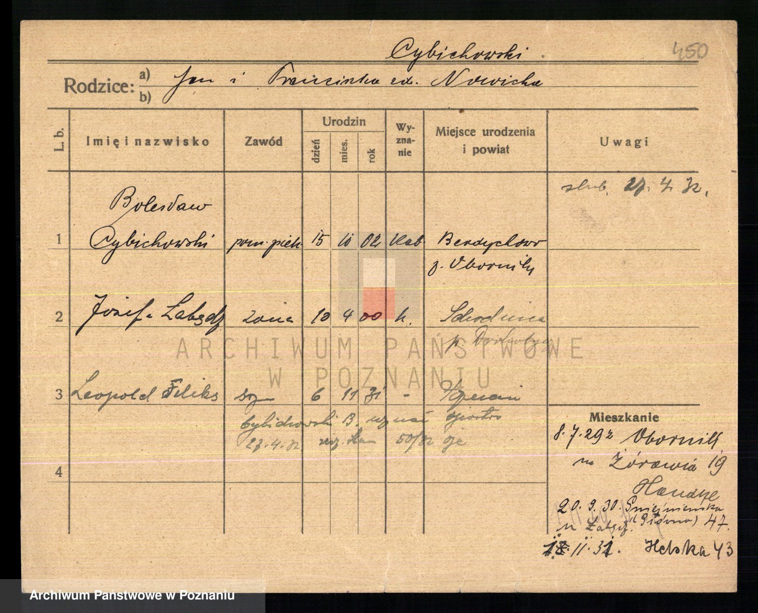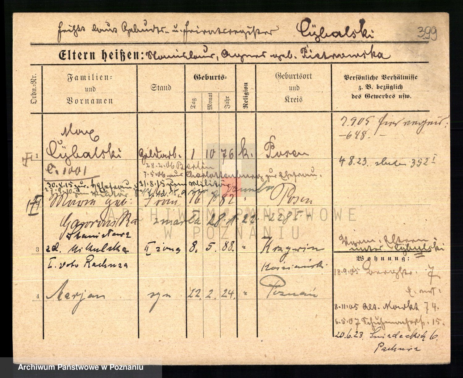 Podgląd karty osobowej dostępny jest po kliknięciu na nazwisko lub ikonkę karty. Można dokonywać powiększenia (ikony na górze) lub przechodzić między kolejnymi skanami (strzałki po bokach).