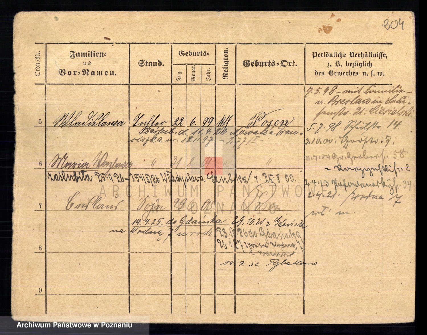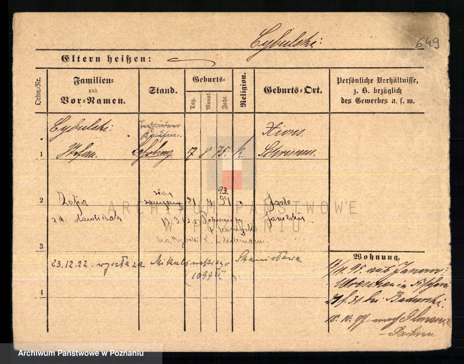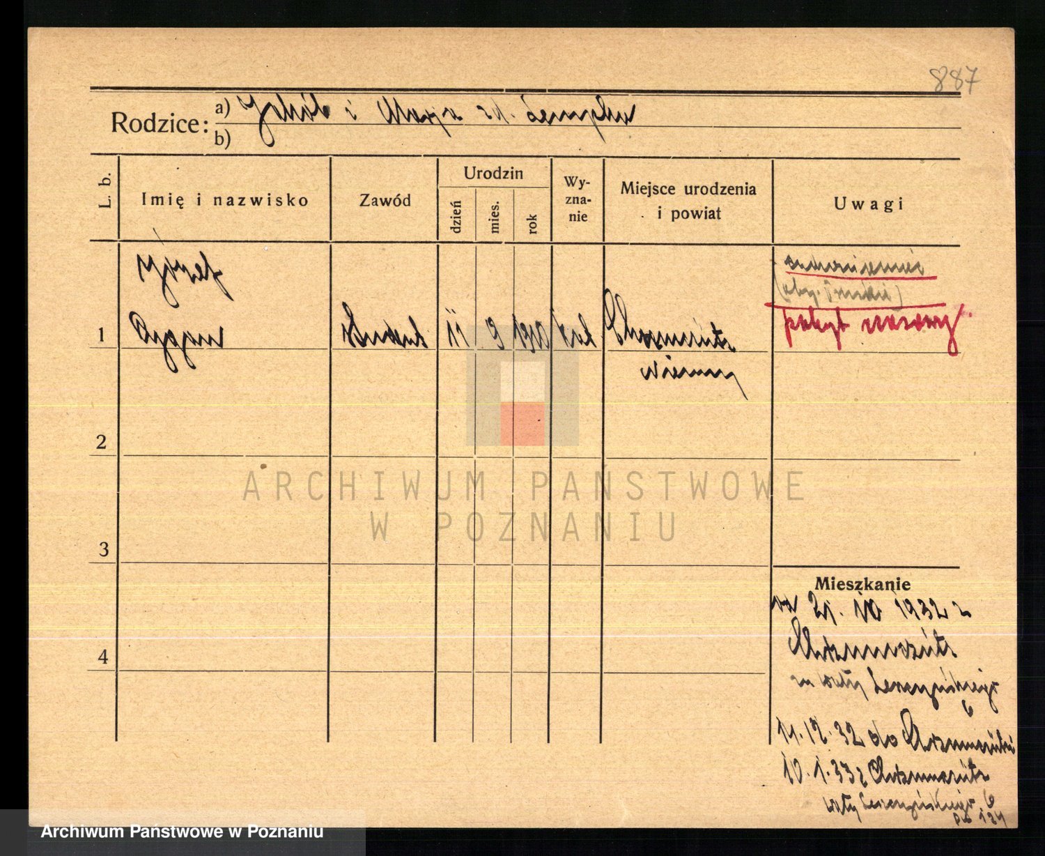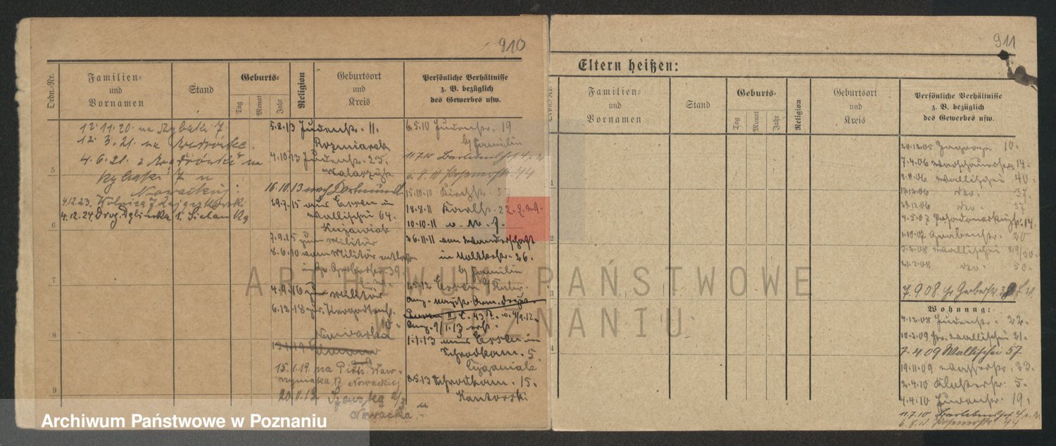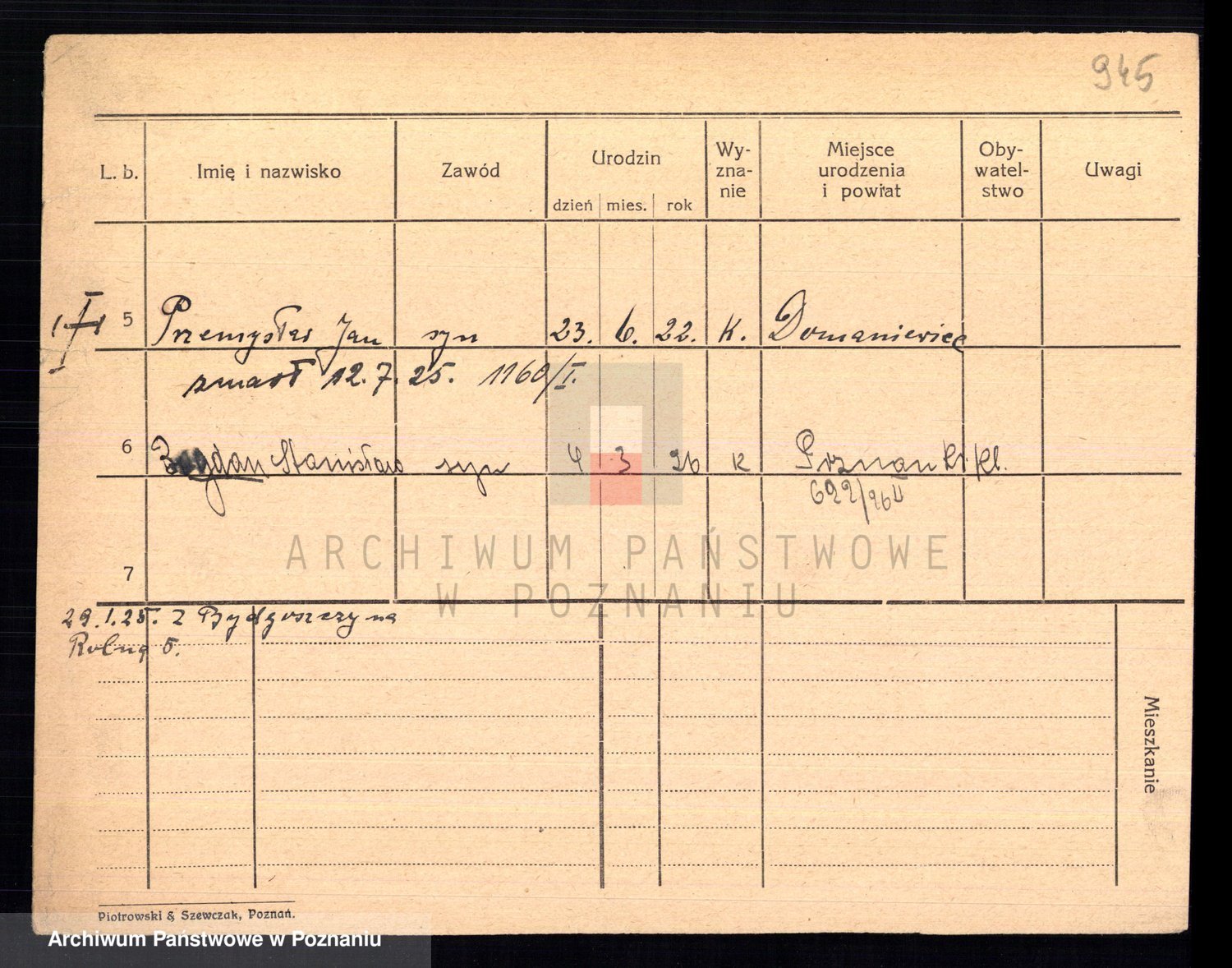 Podgląd karty osobowej dostępny jest po kliknięciu na nazwisko lub ikonkę karty. Można dokonywać powiększenia (ikony na górze) lub przechodzić między kolejnymi skanami (strzałki po bokach).