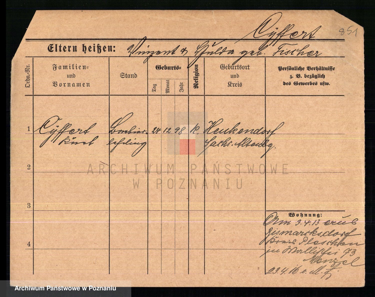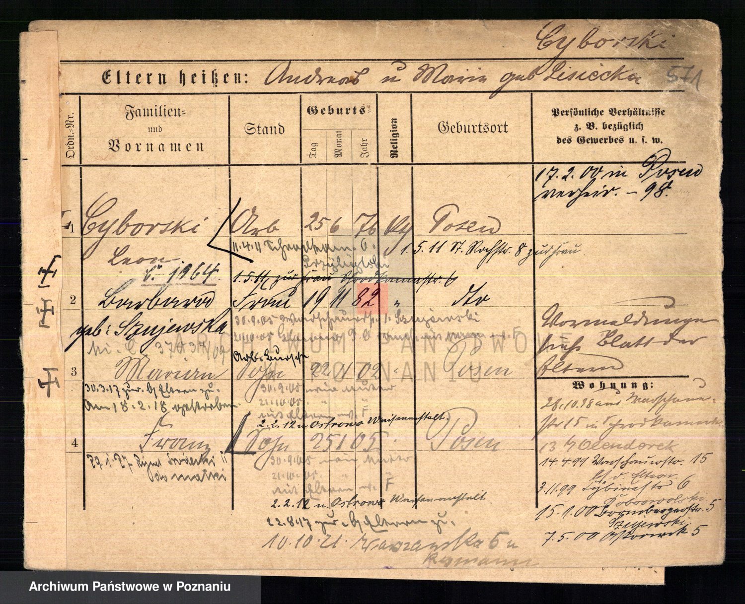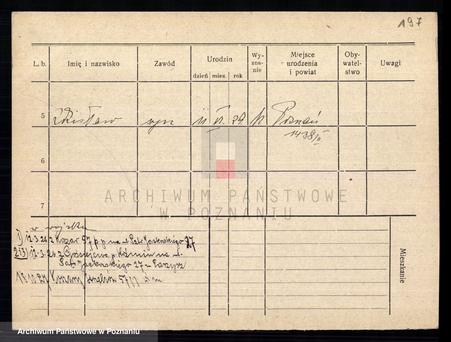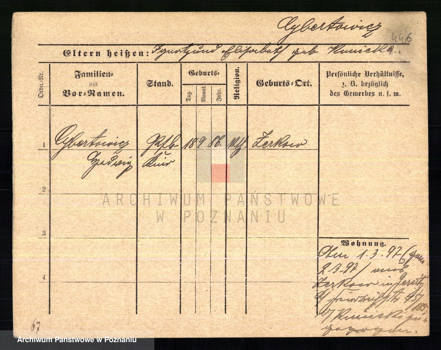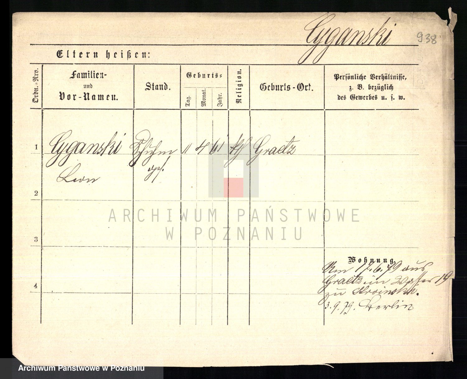 Podgląd karty osobowej dostępny jest po kliknięciu na nazwisko lub ikonkę karty. Można dokonywać powiększenia (ikony na górze) lub przechodzić między kolejnymi skanami (strzałki po bokach).