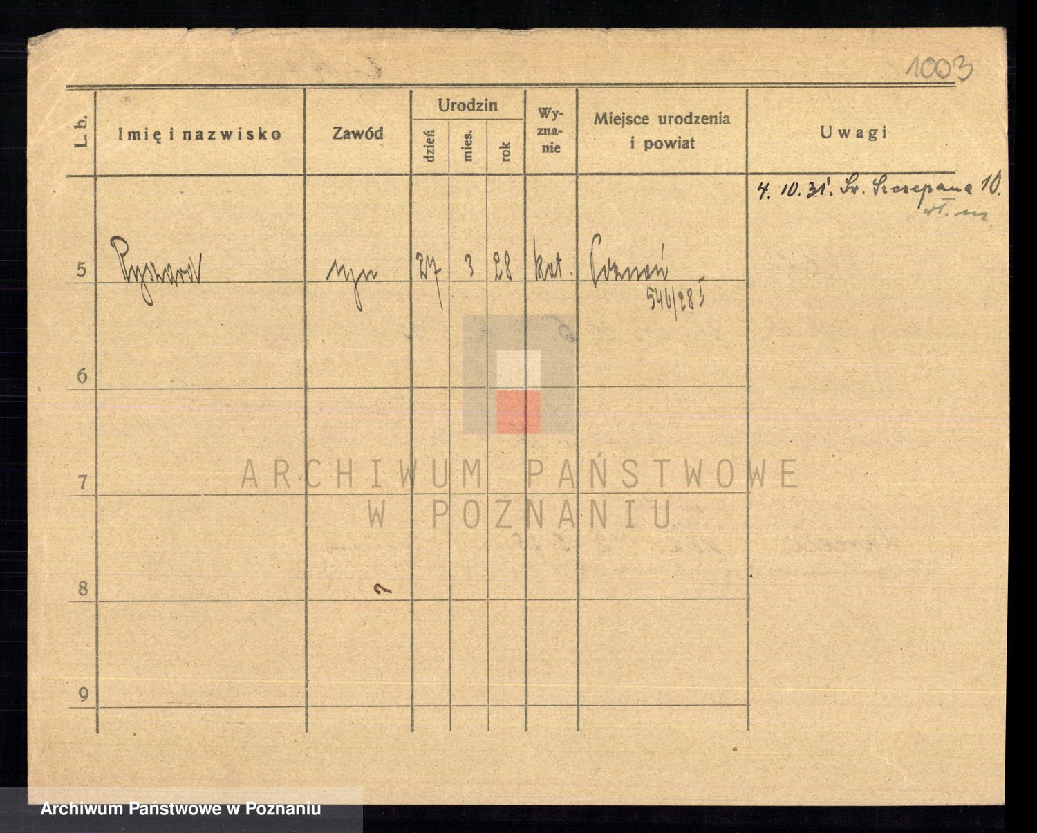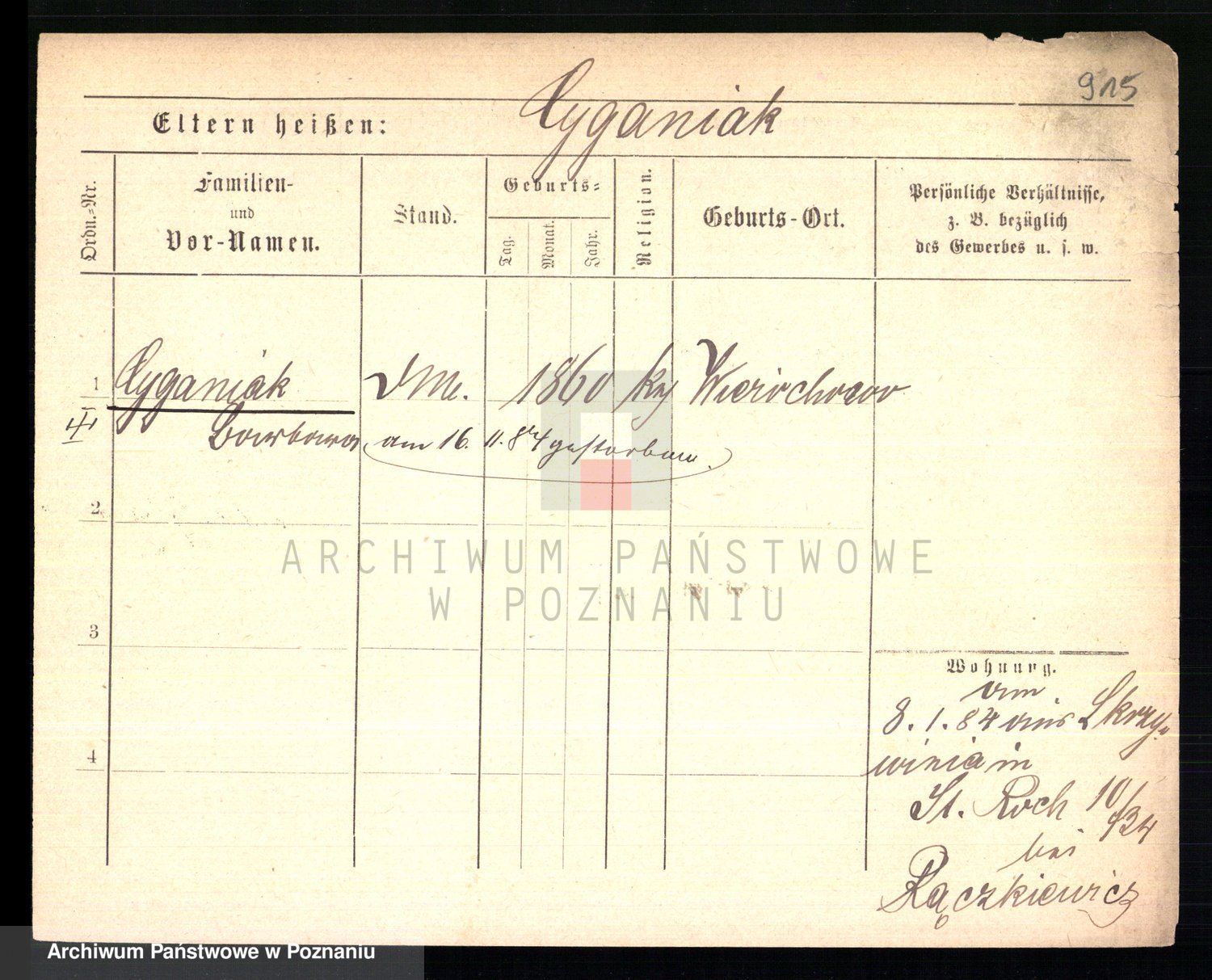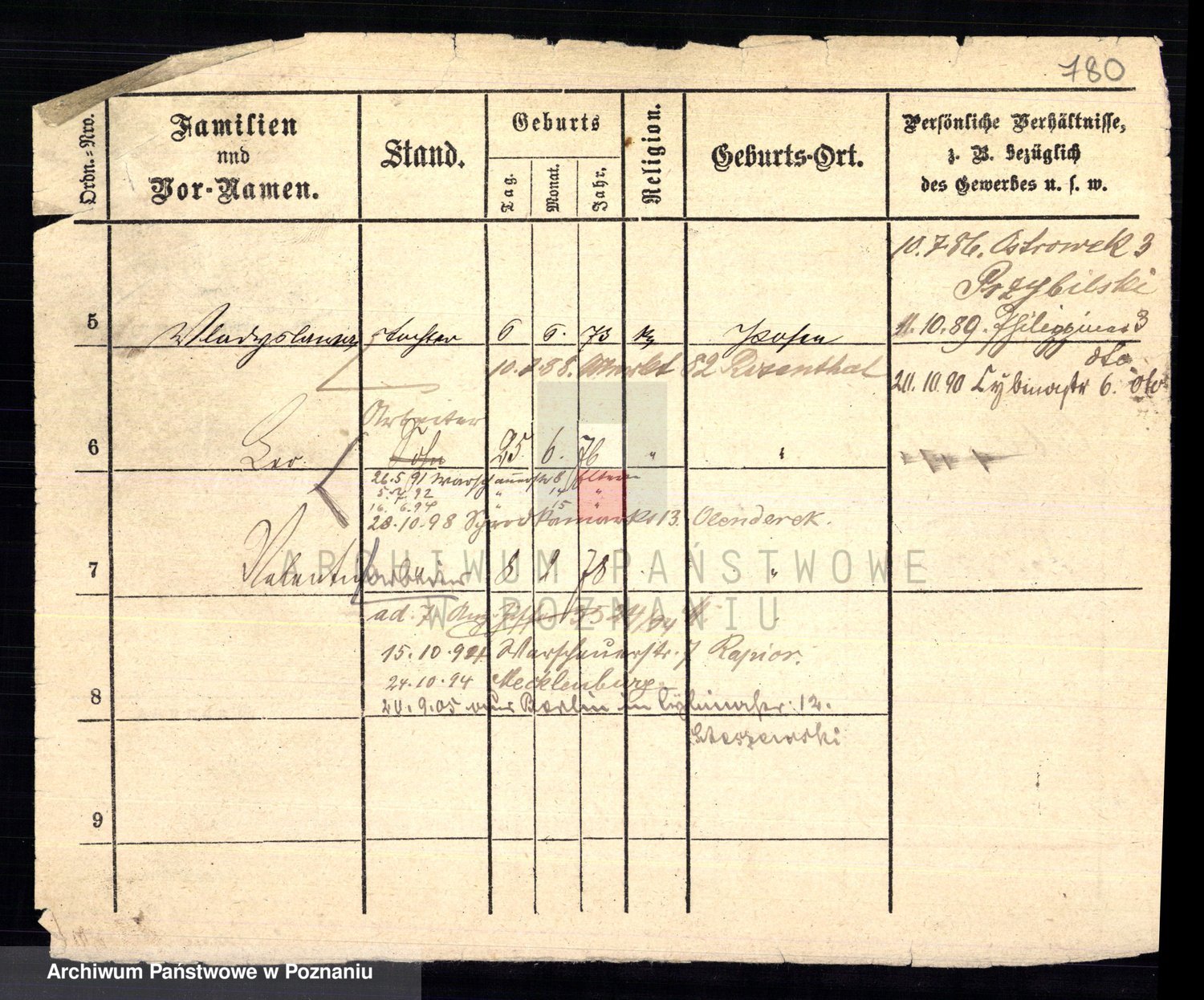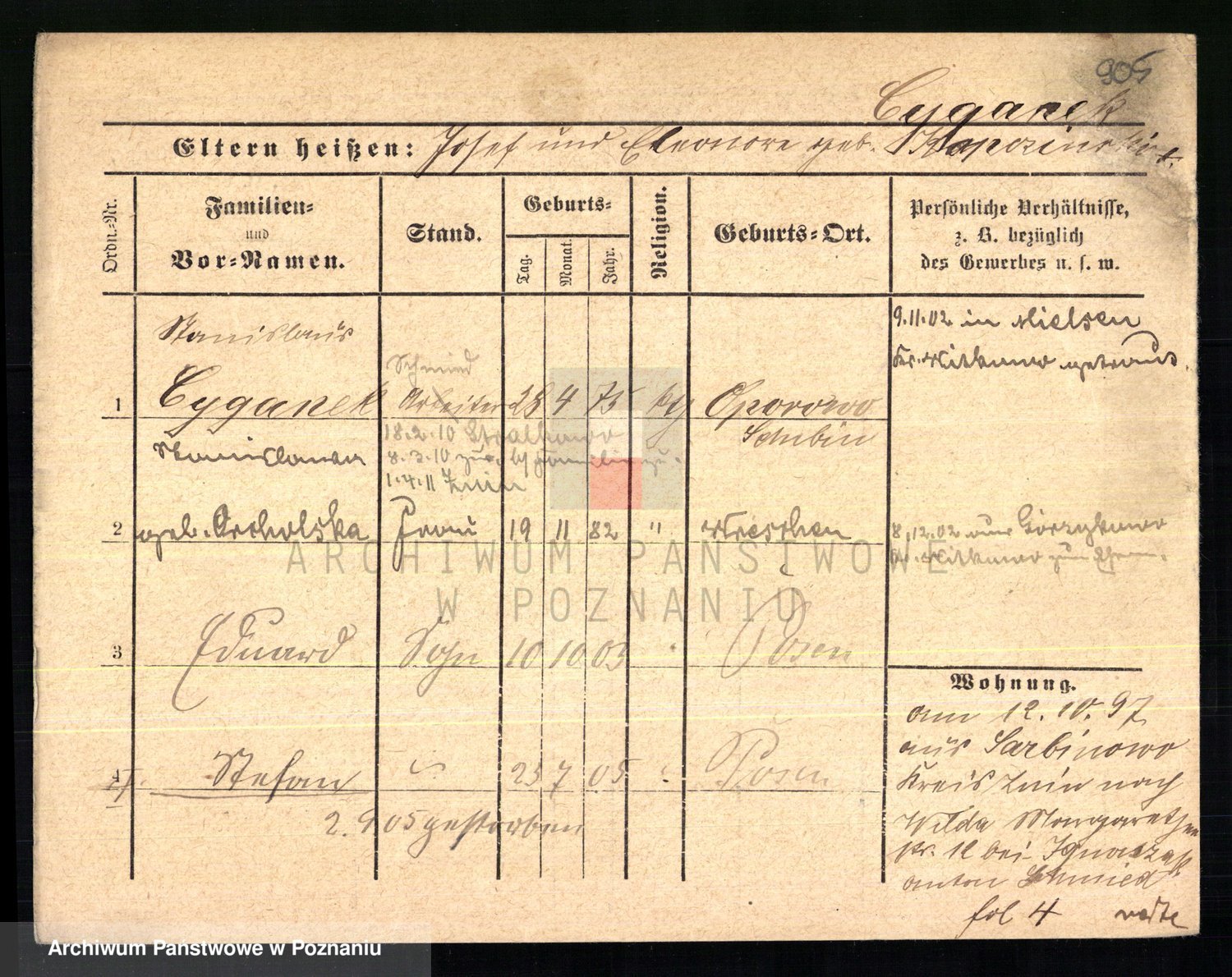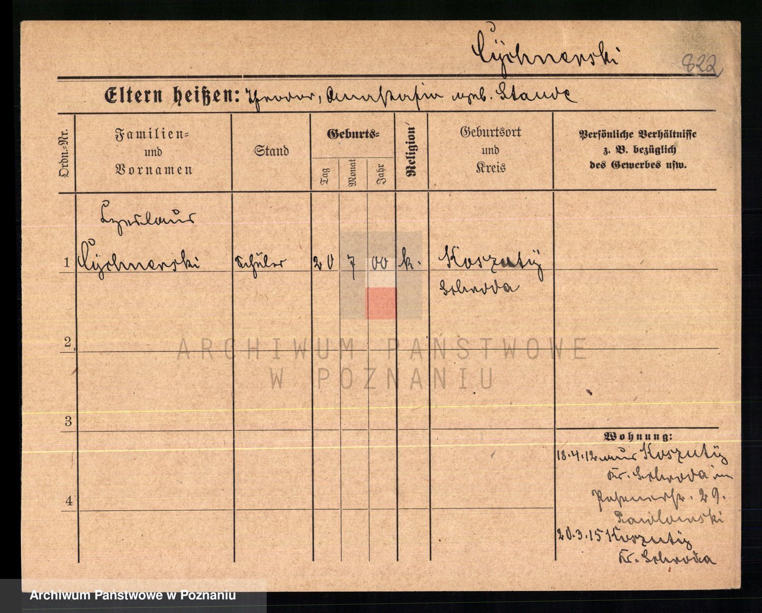 Podgląd karty osobowej dostępny jest po kliknięciu na nazwisko lub ikonkę karty. Można dokonywać powiększenia (ikony na górze) lub przechodzić między kolejnymi skanami (strzałki po bokach).
