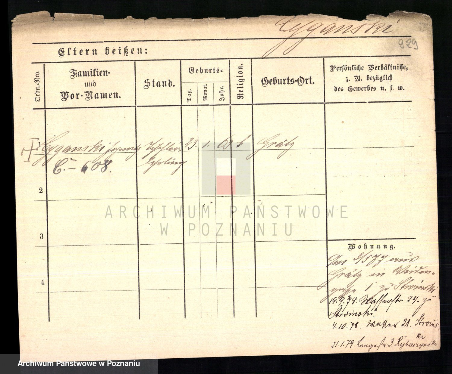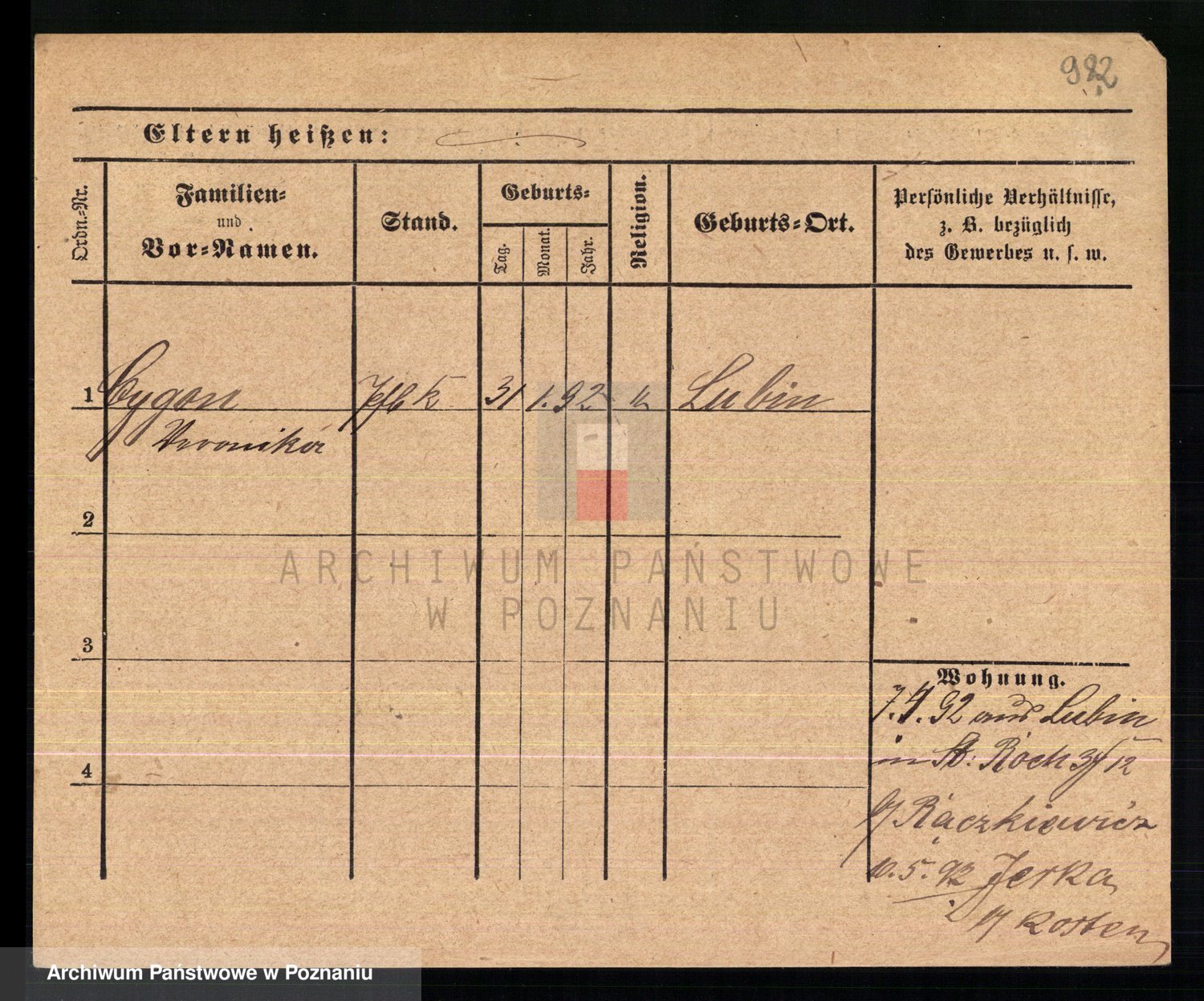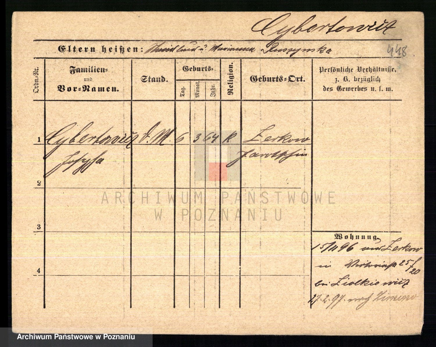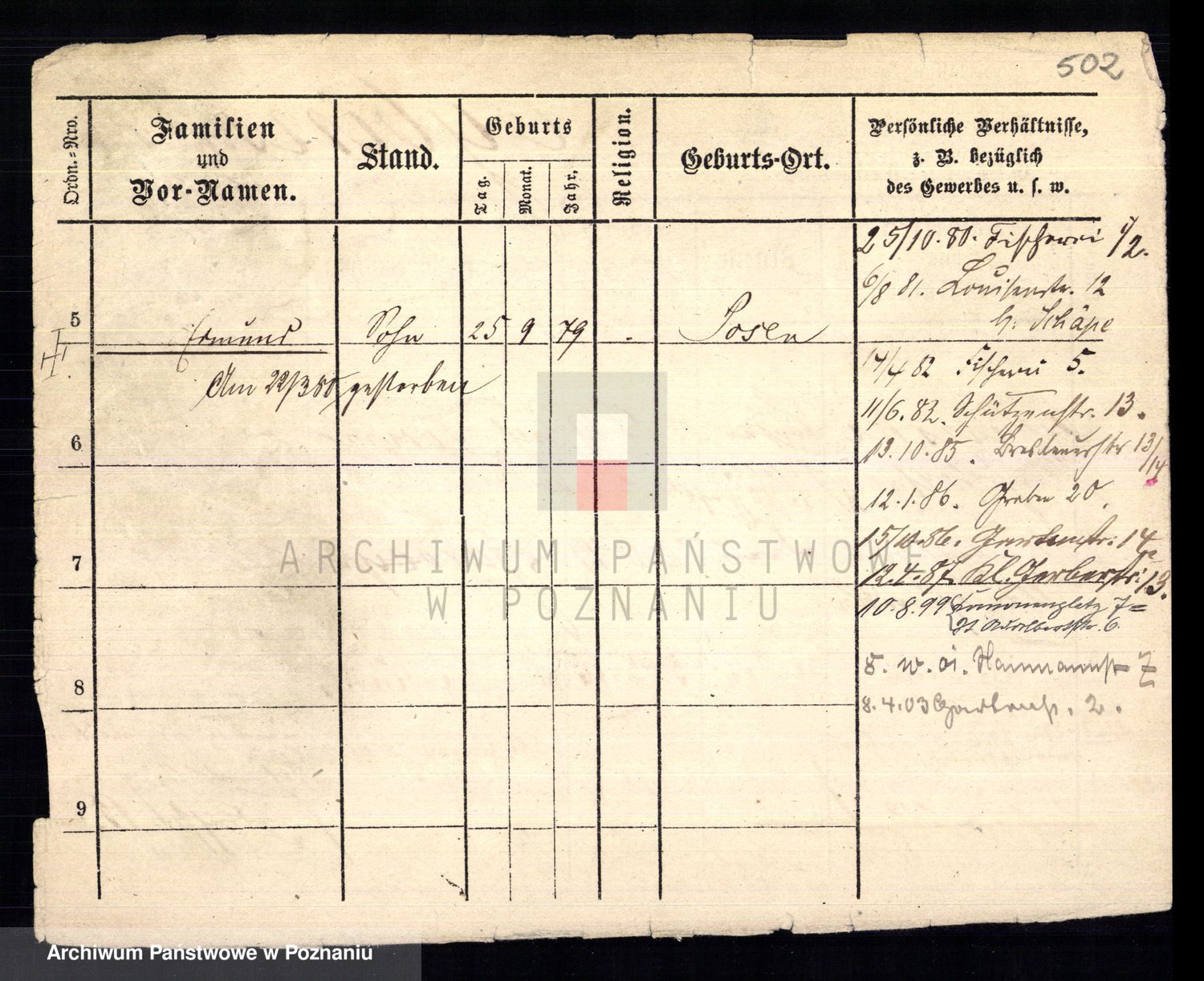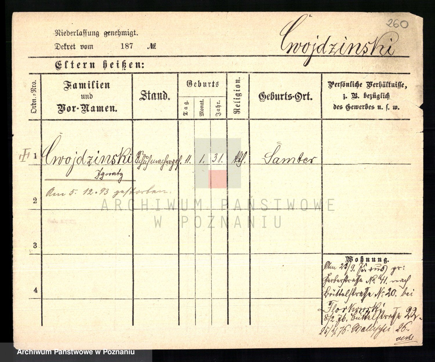 Podgląd karty osobowej dostępny jest po kliknięciu na nazwisko lub ikonkę karty. Można dokonywać powiększenia (ikony na górze) lub przechodzić między kolejnymi skanami (strzałki po bokach).