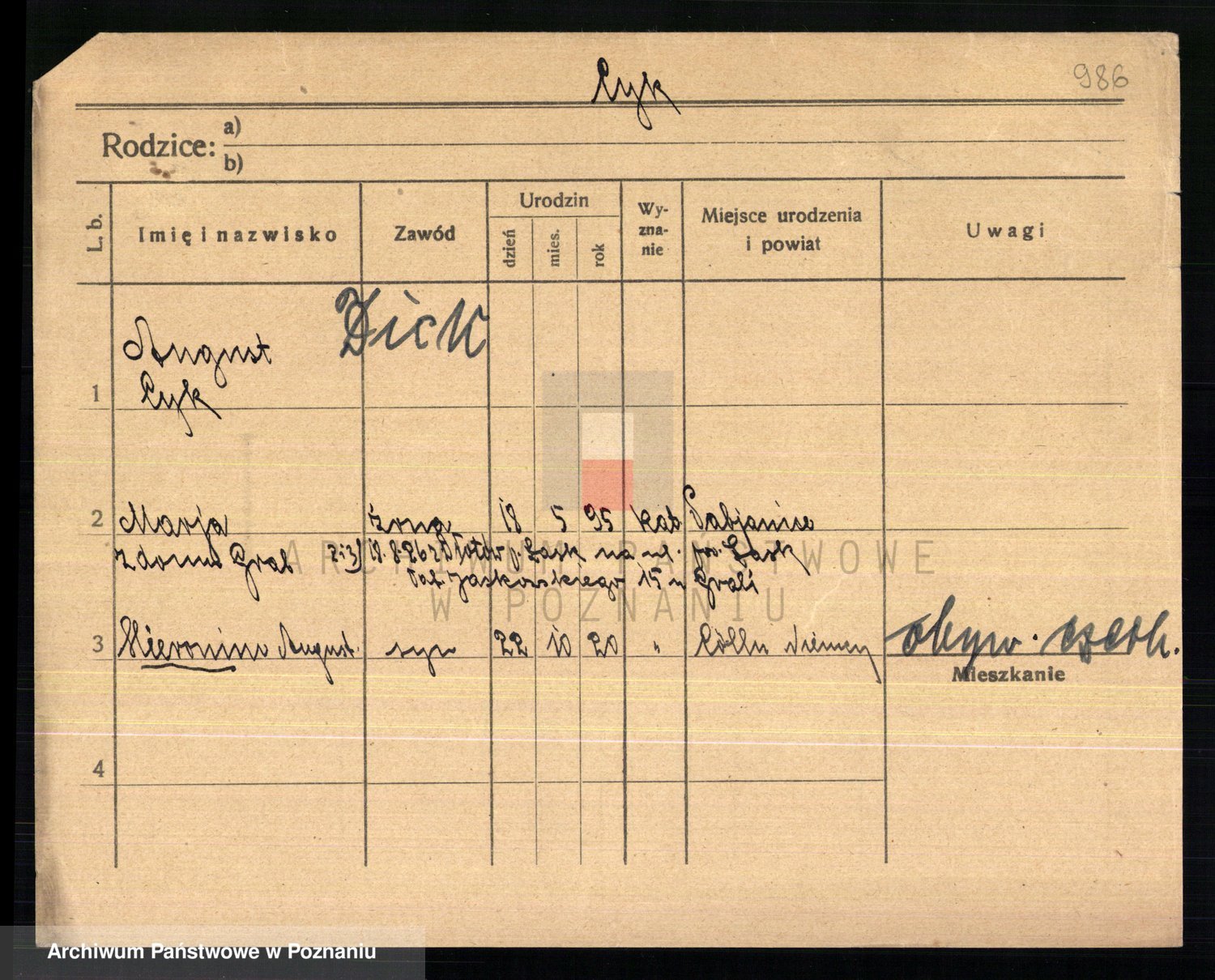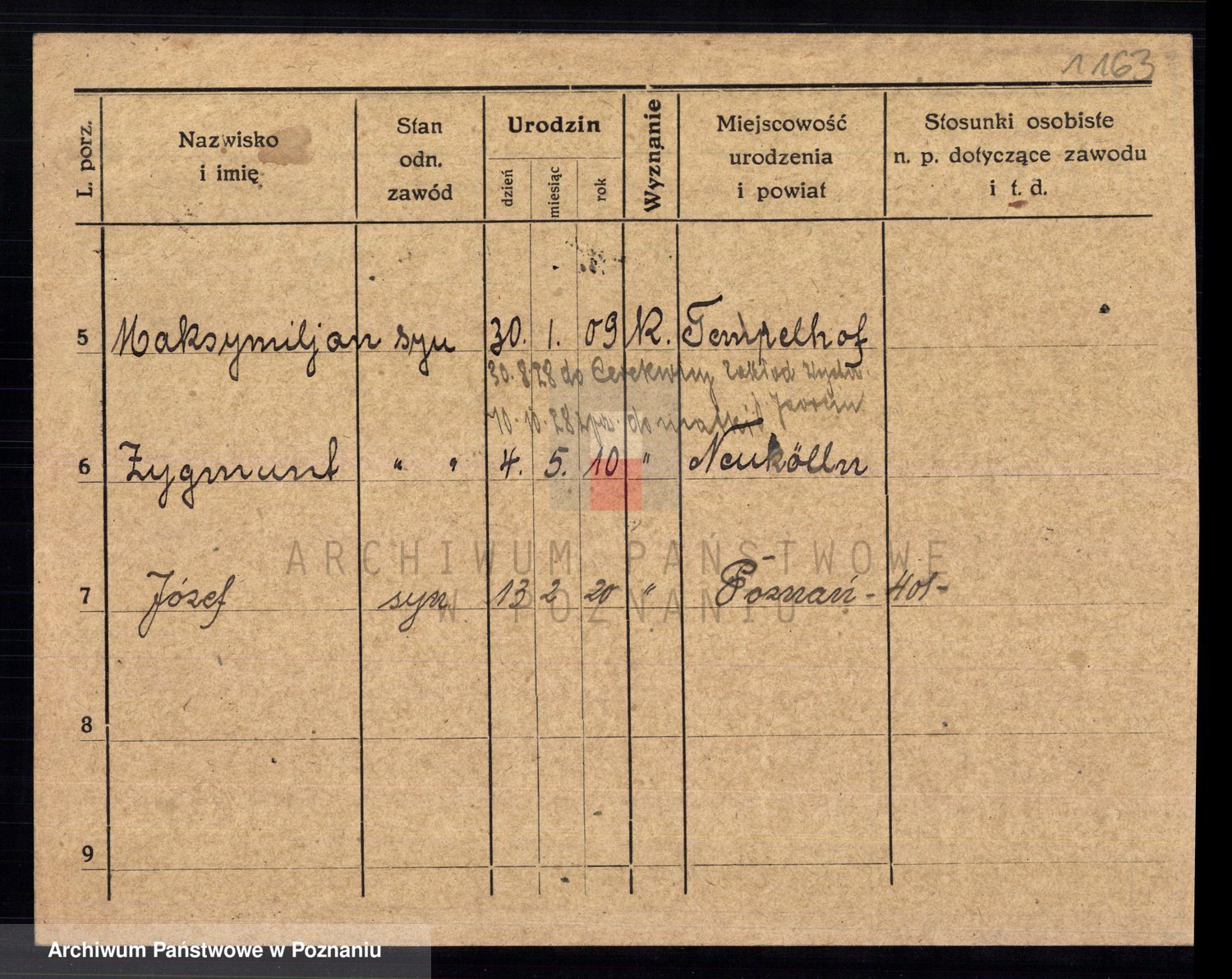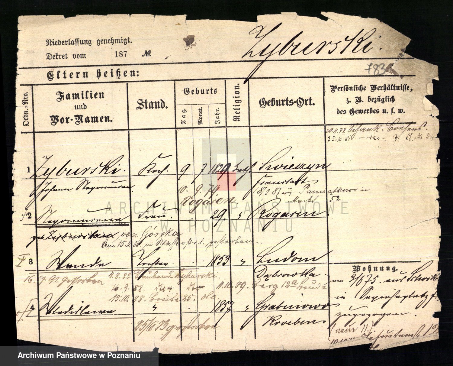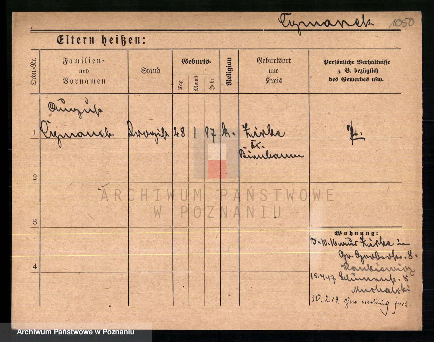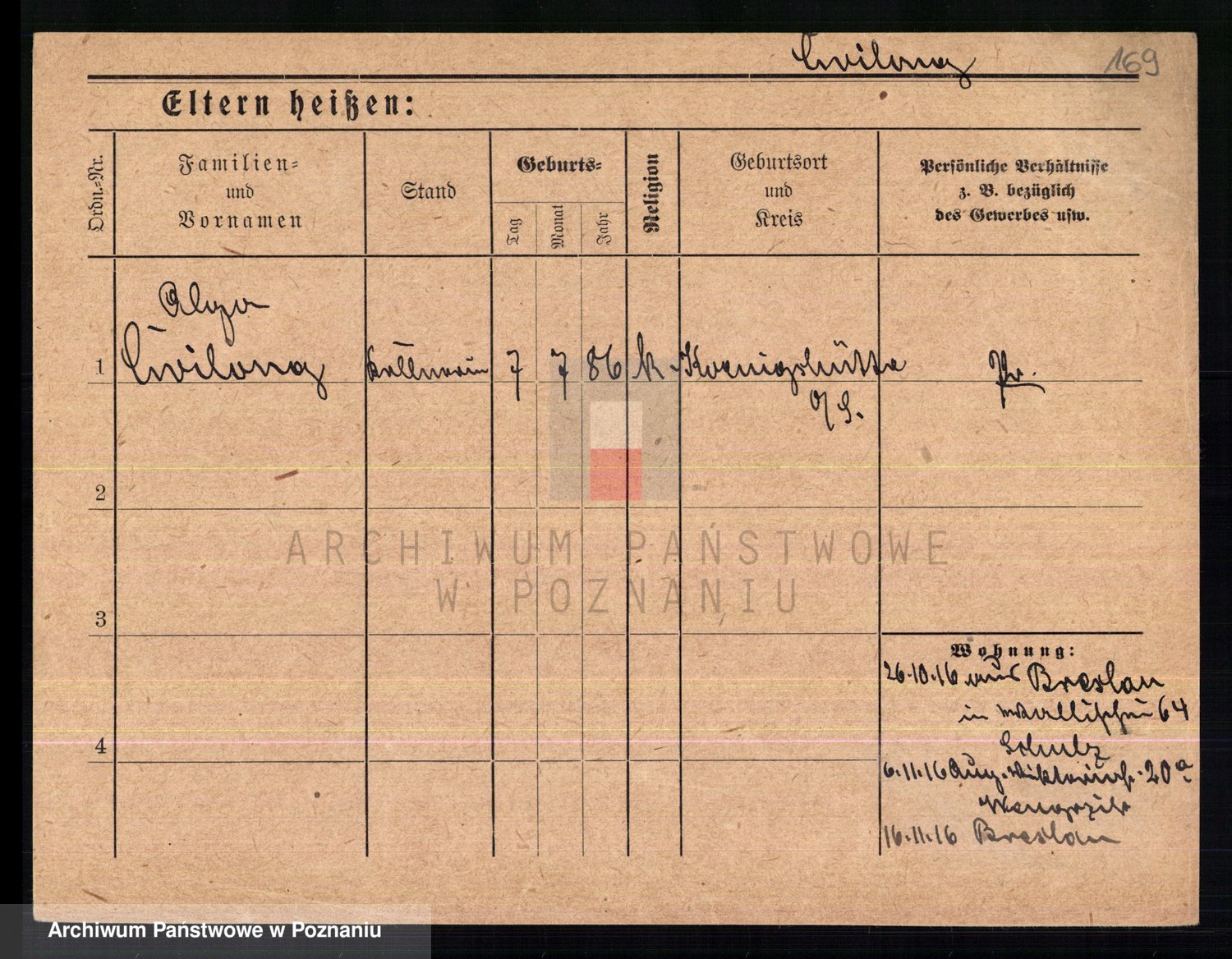 Podgląd karty osobowej dostępny jest po kliknięciu na nazwisko lub ikonkę karty. Można dokonywać powiększenia (ikony na górze) lub przechodzić między kolejnymi skanami (strzałki po bokach).