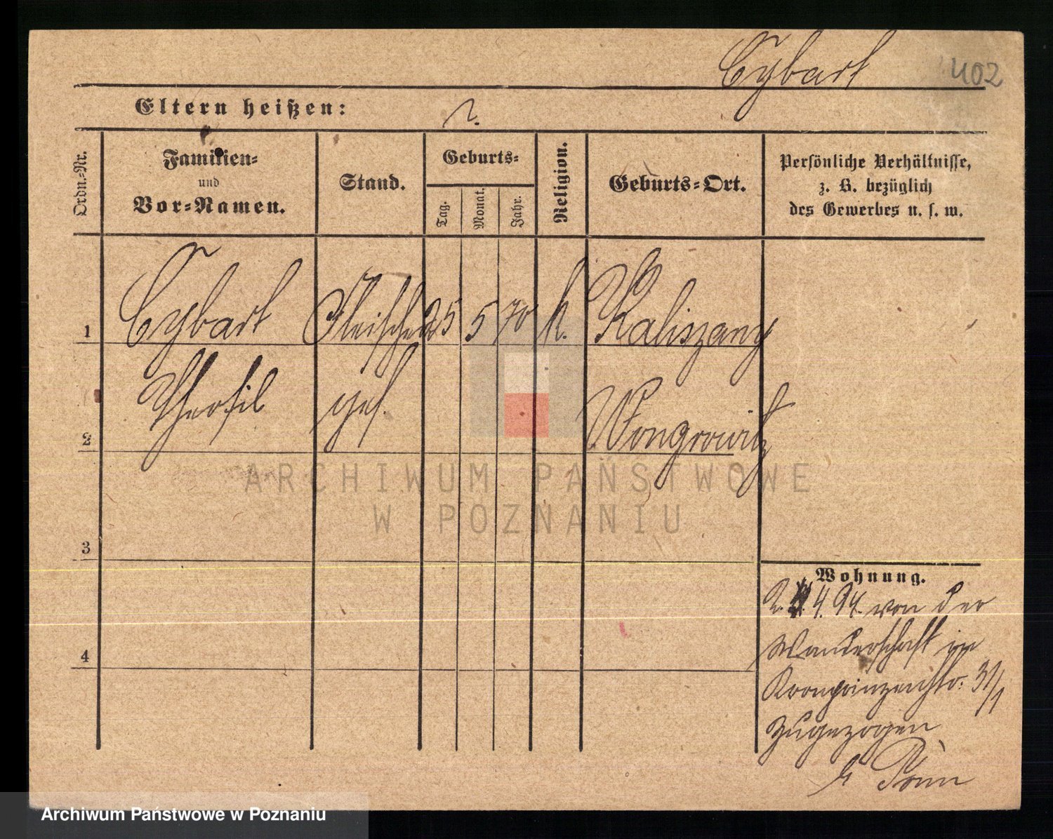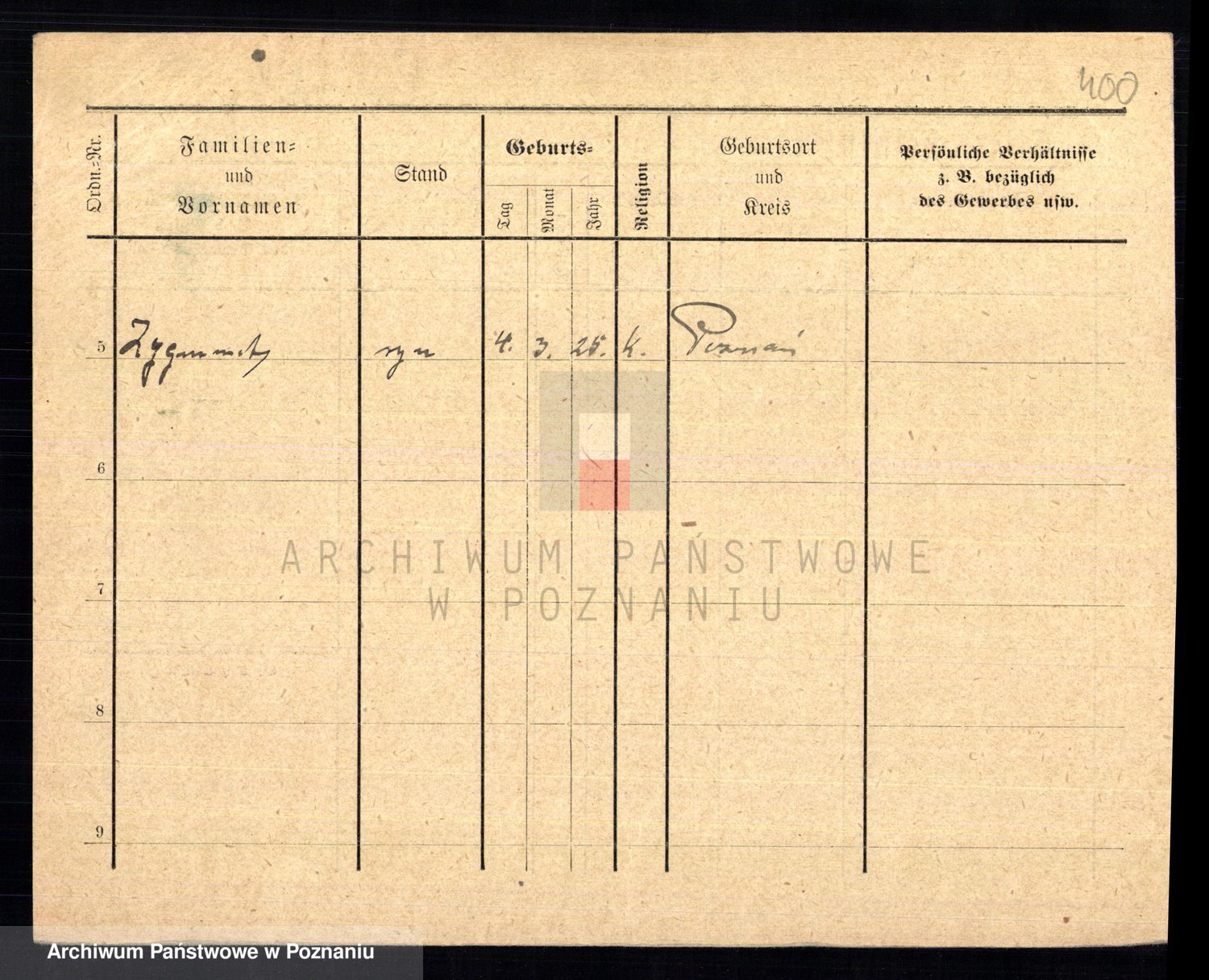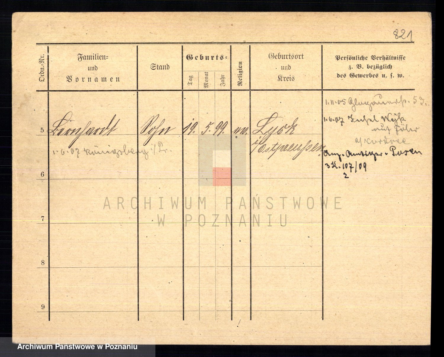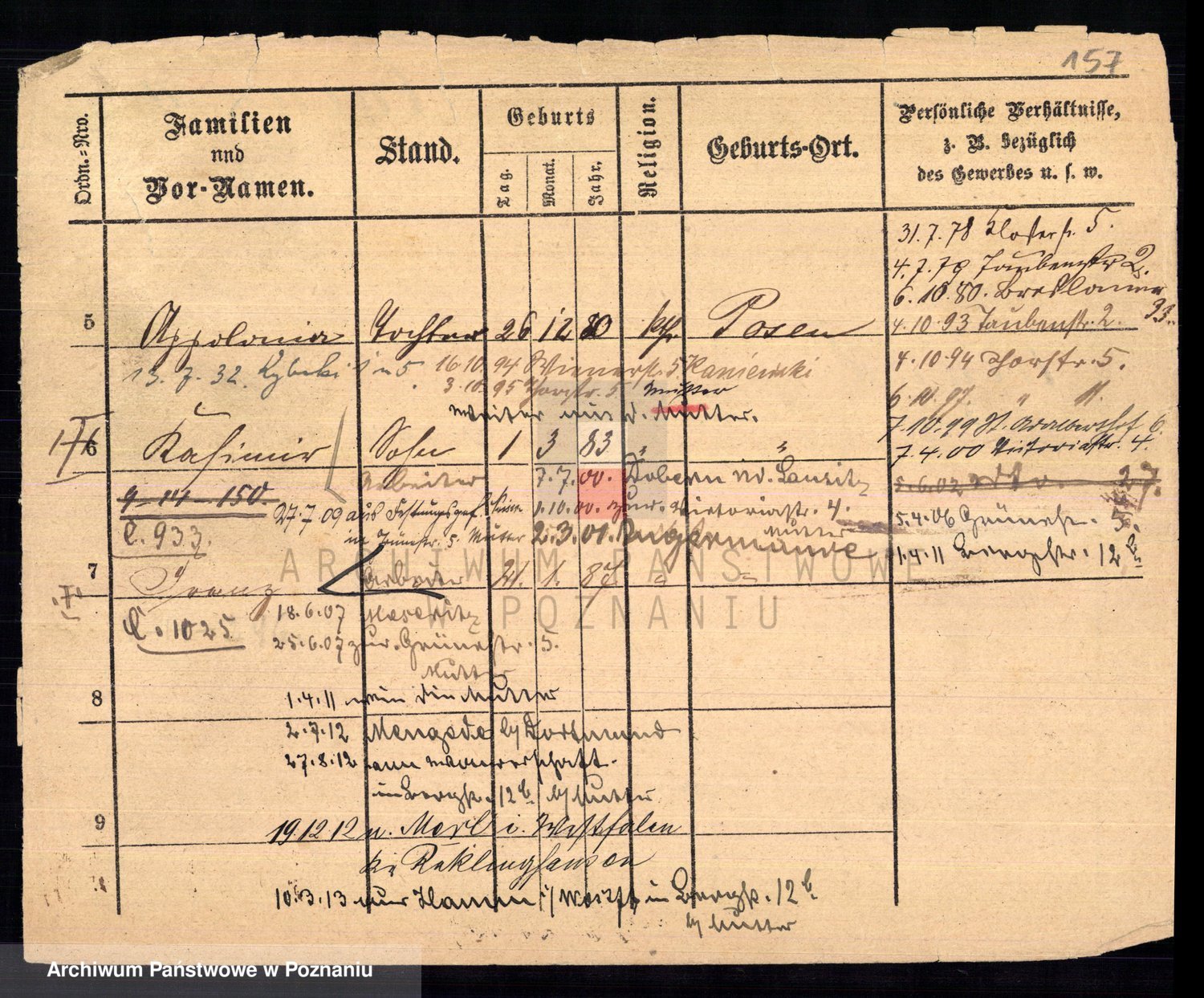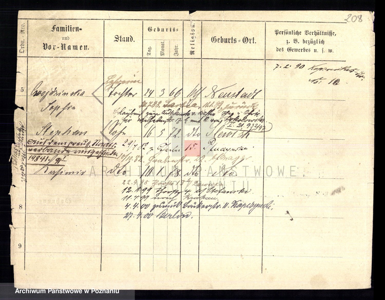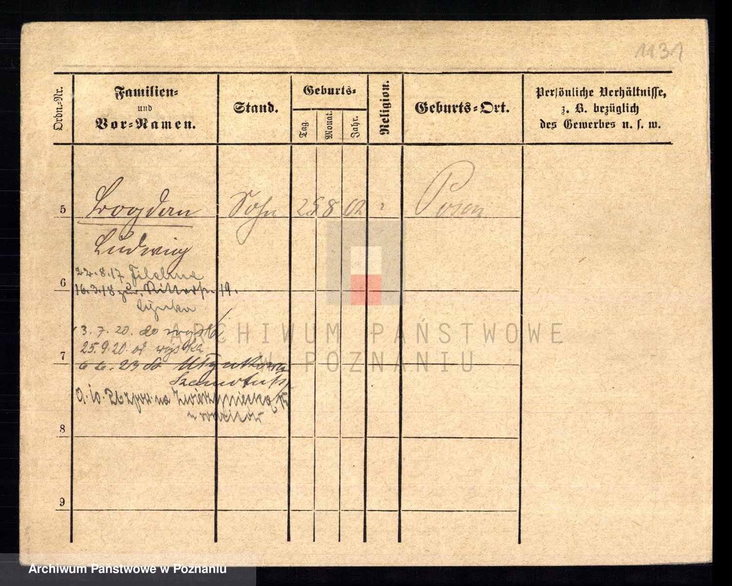 Podgląd karty osobowej dostępny jest po kliknięciu na nazwisko lub ikonkę karty. Można dokonywać powiększenia (ikony na górze) lub przechodzić między kolejnymi skanami (strzałki po bokach).