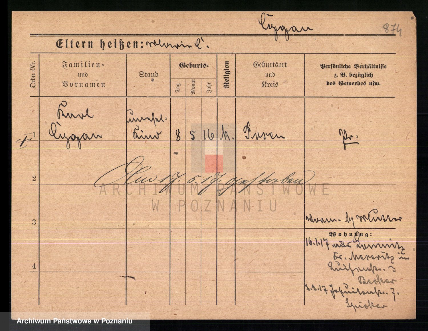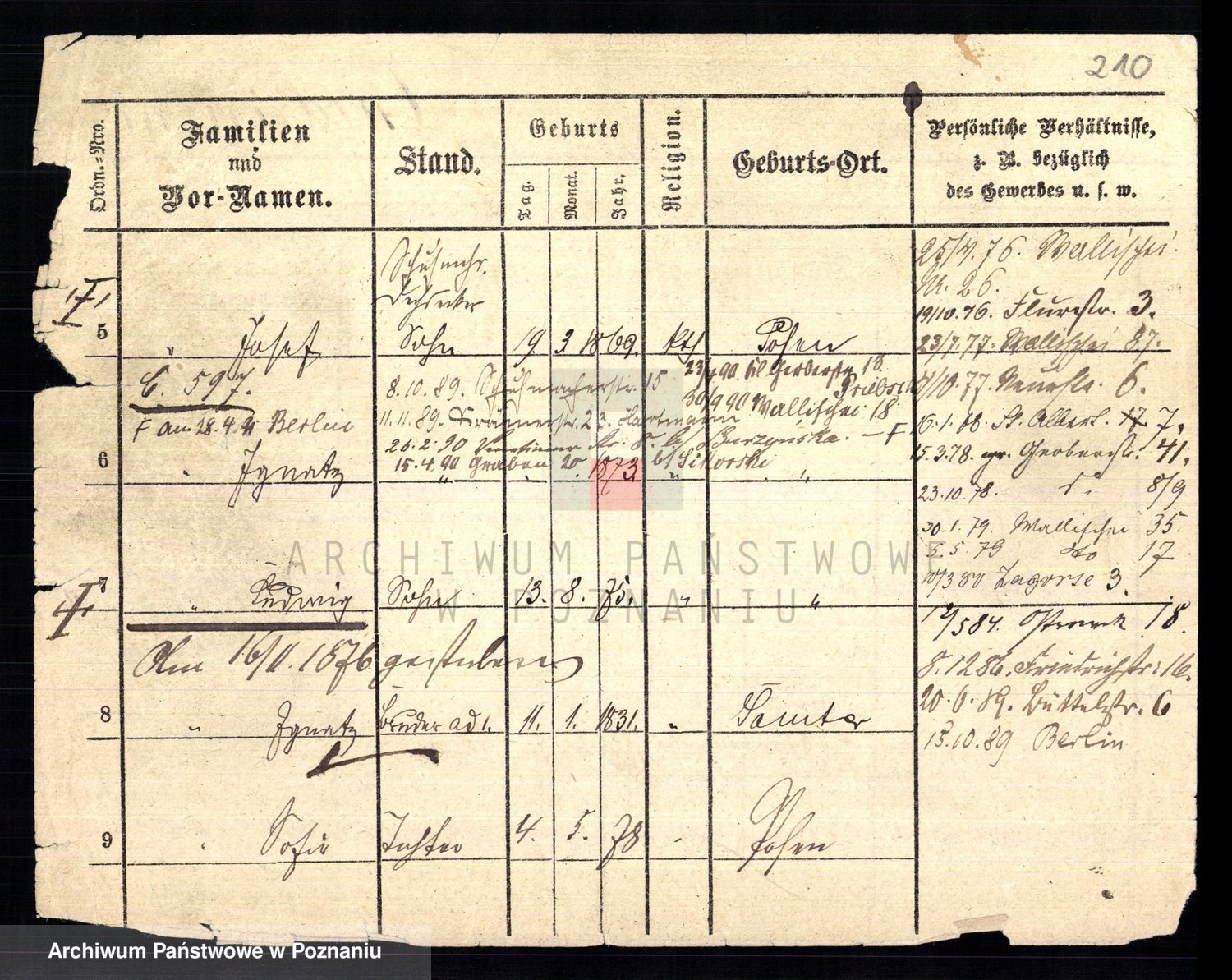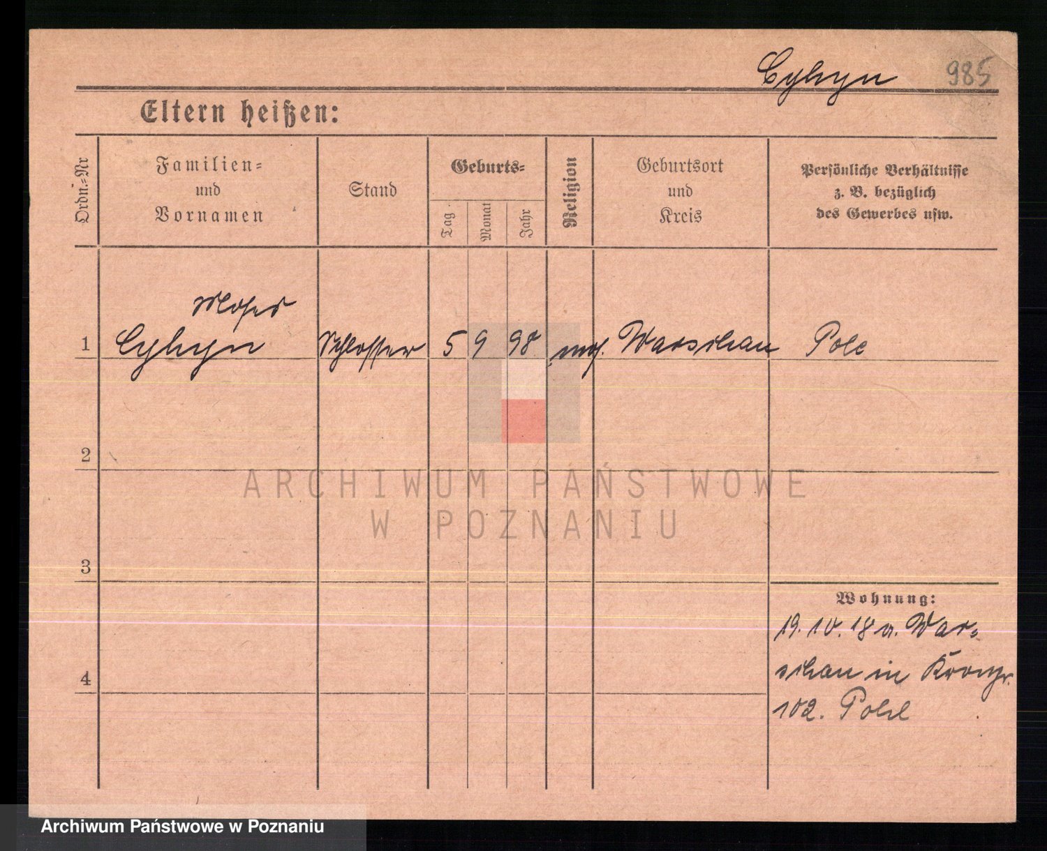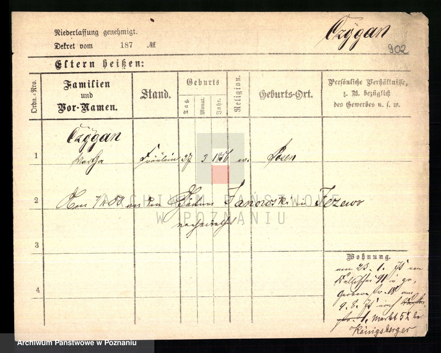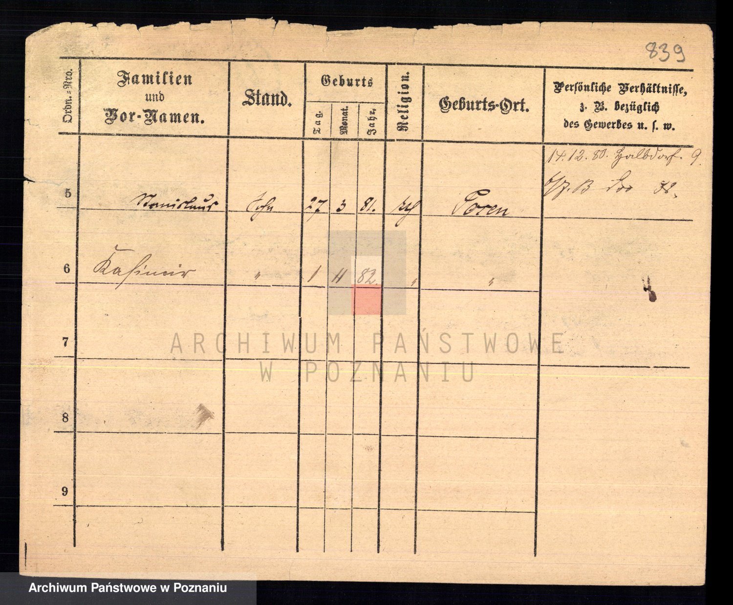 Podgląd karty osobowej dostępny jest po kliknięciu na nazwisko lub ikonkę karty. Można dokonywać powiększenia (ikony na górze) lub przechodzić między kolejnymi skanami (strzałki po bokach).
