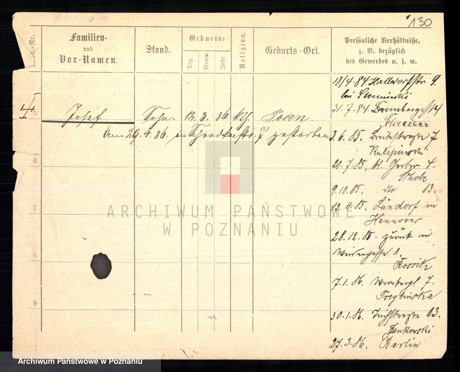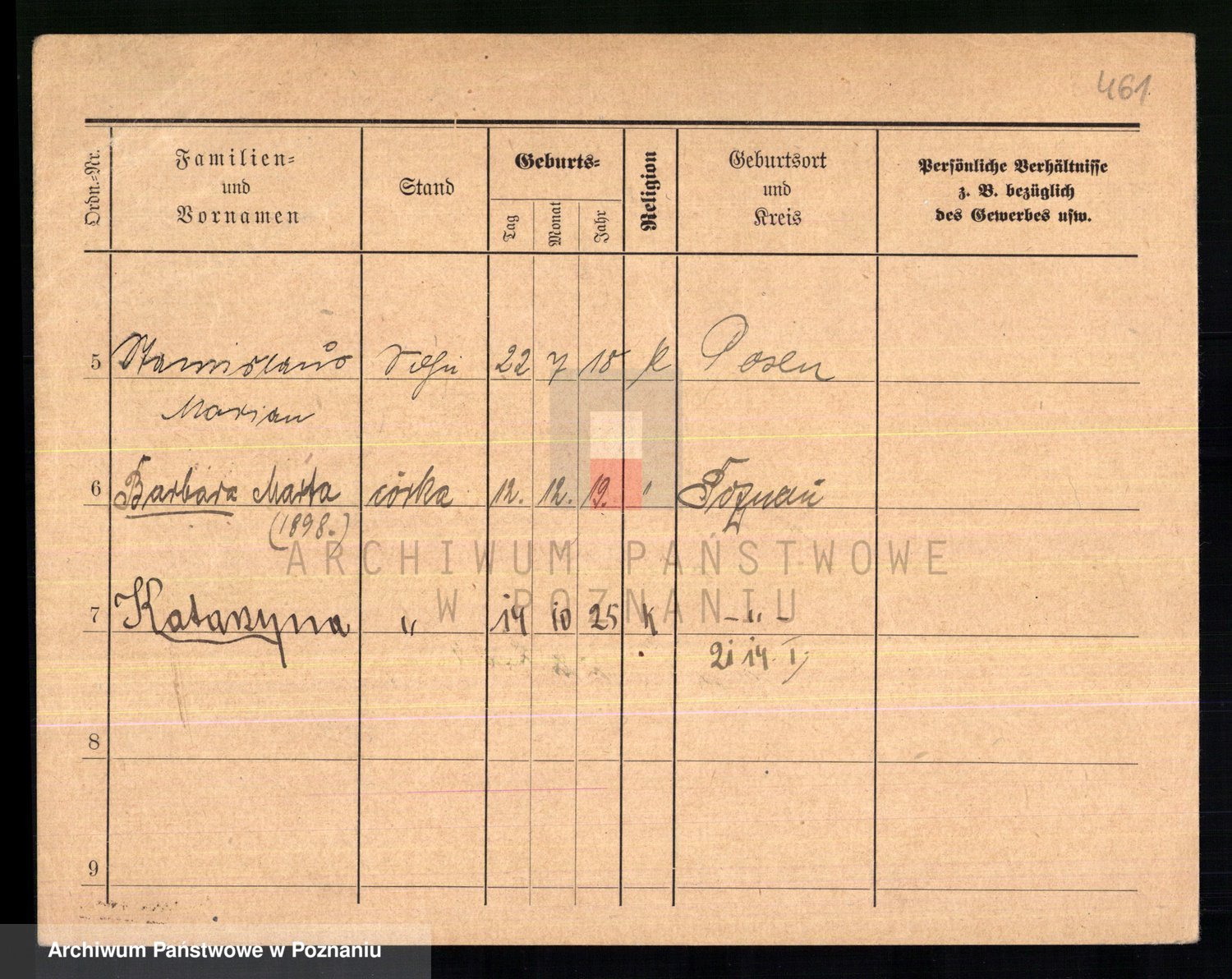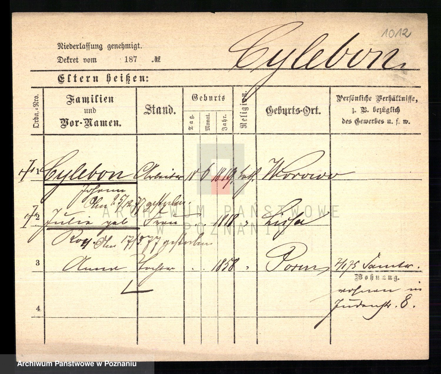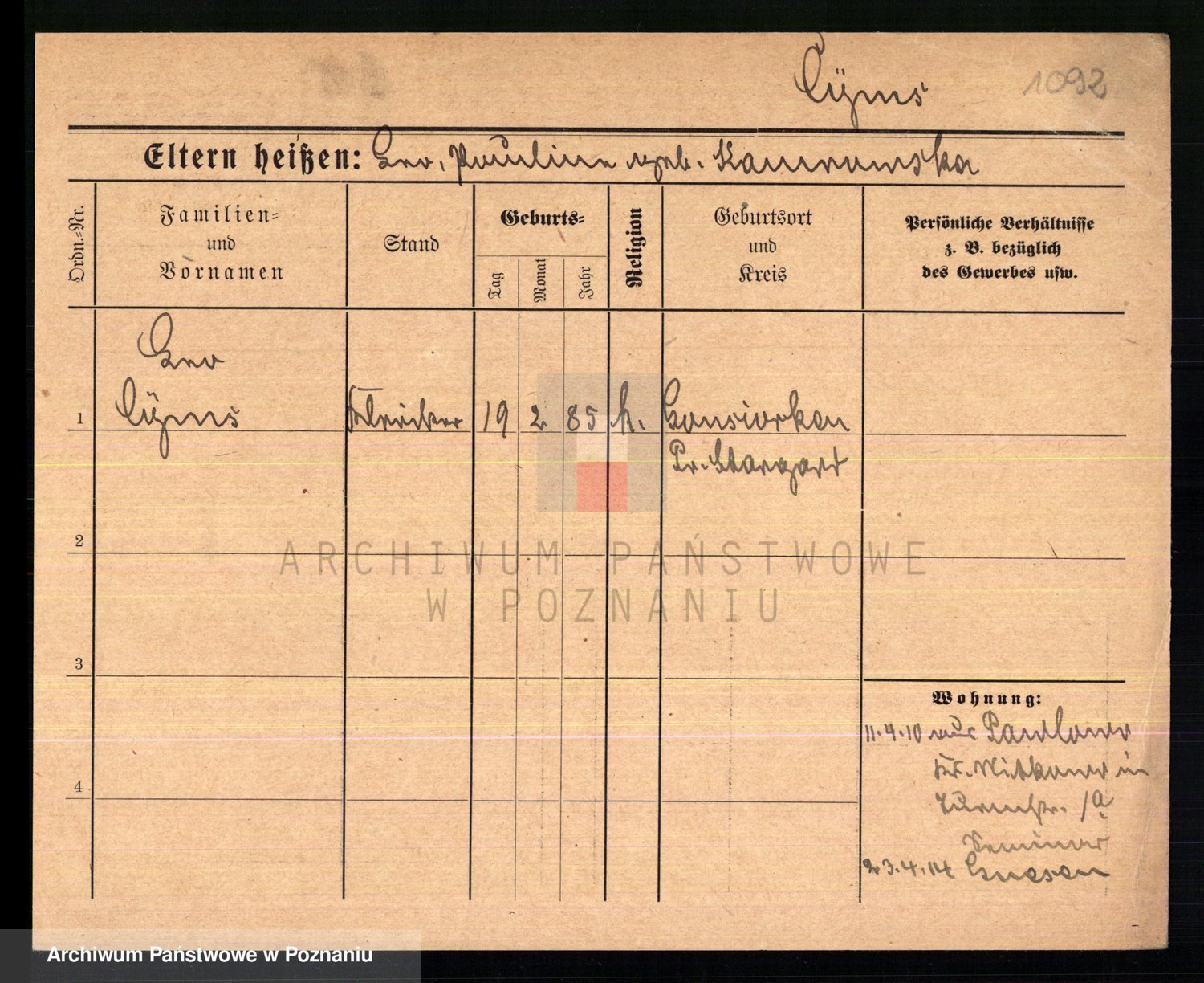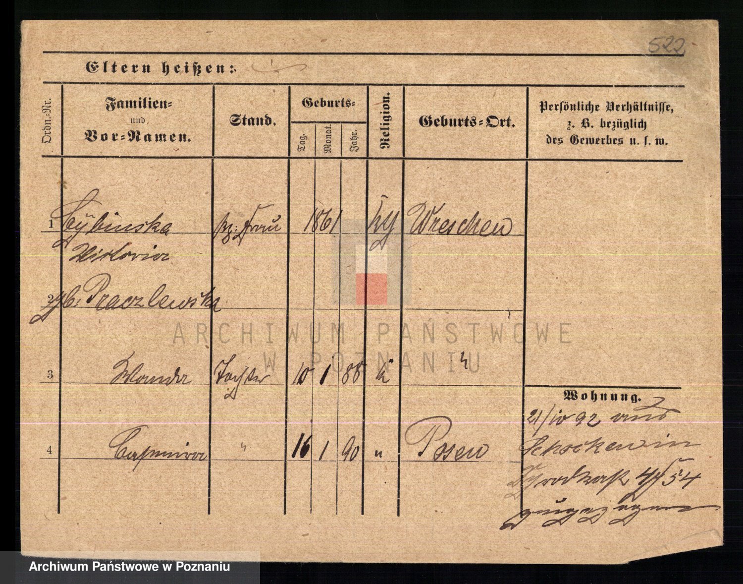 Podgląd karty osobowej dostępny jest po kliknięciu na nazwisko lub ikonkę karty. Można dokonywać powiększenia (ikony na górze) lub przechodzić między kolejnymi skanami (strzałki po bokach).