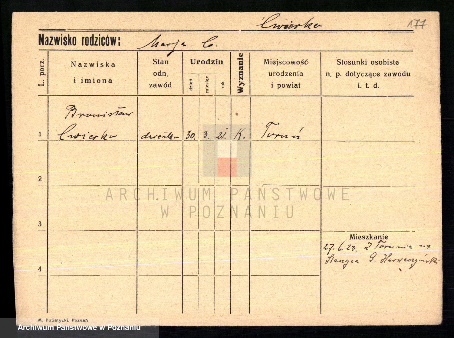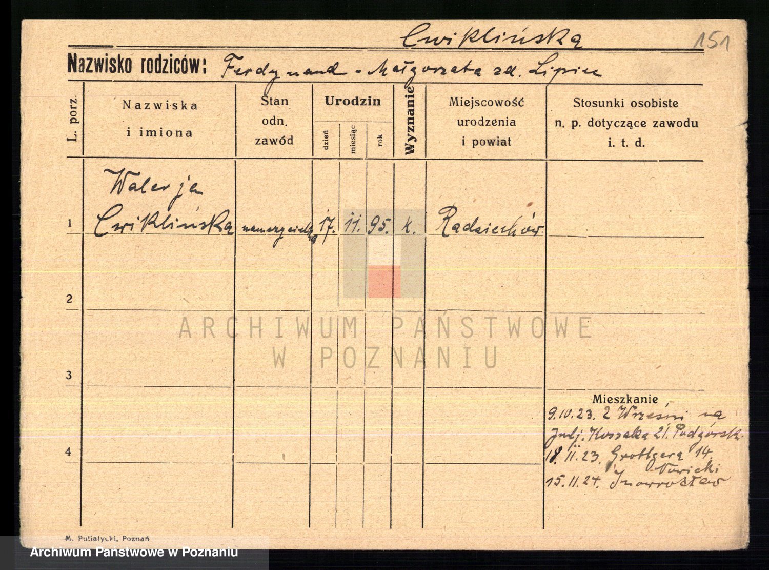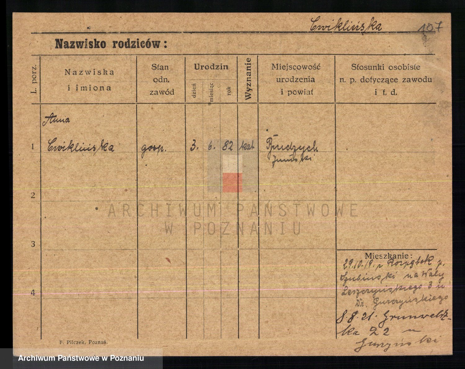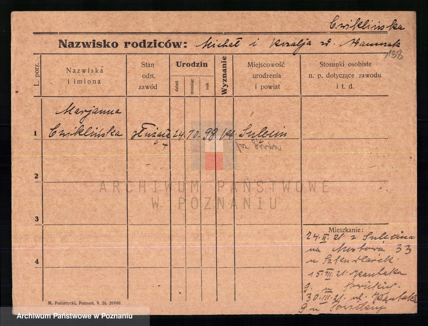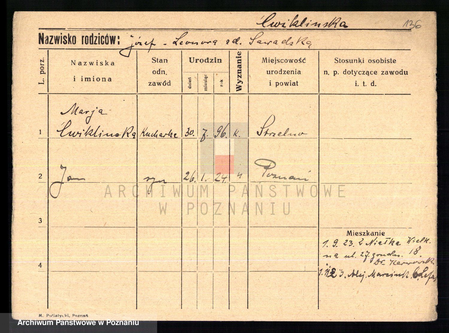 Cwikliński z.d. Przymuszińska, Marja