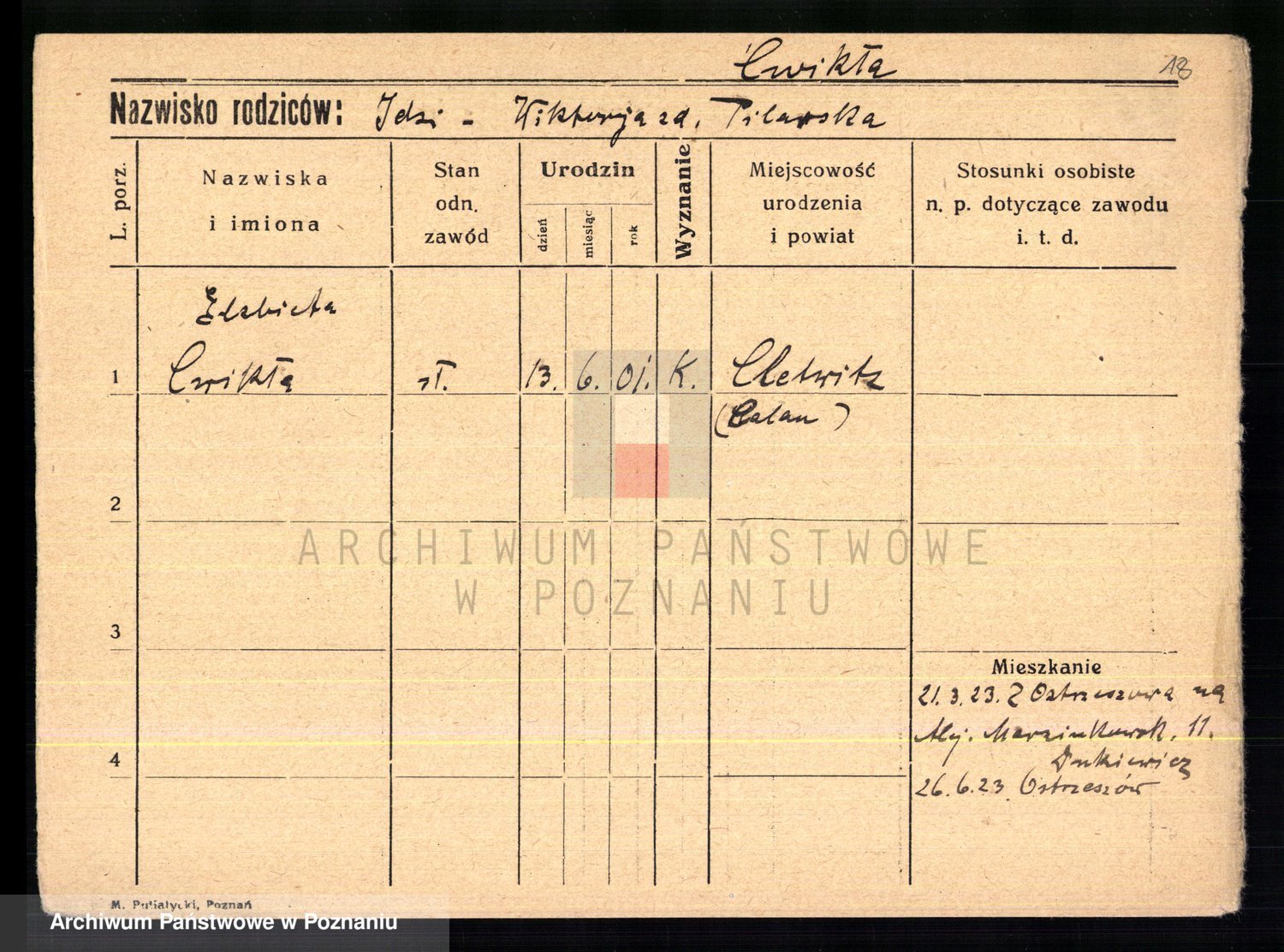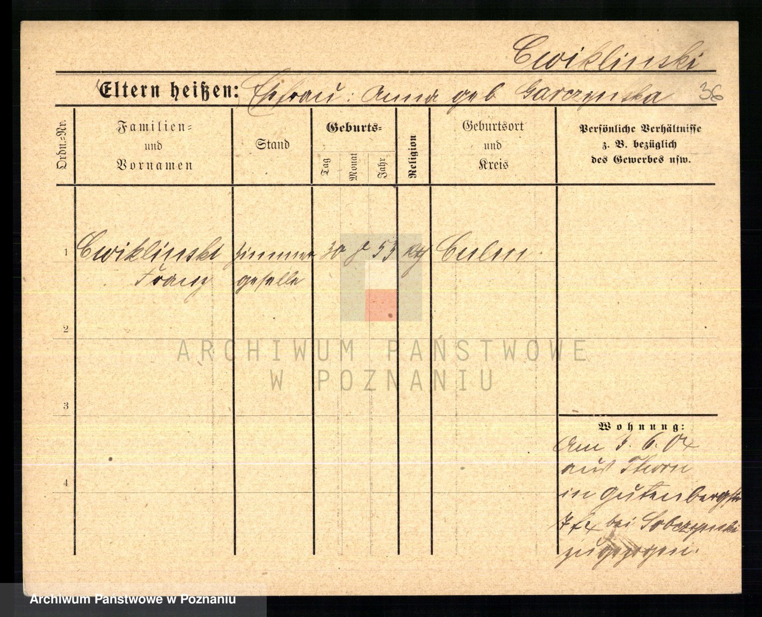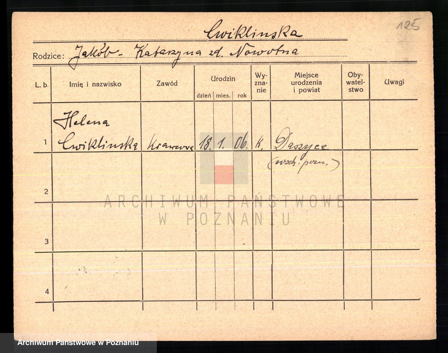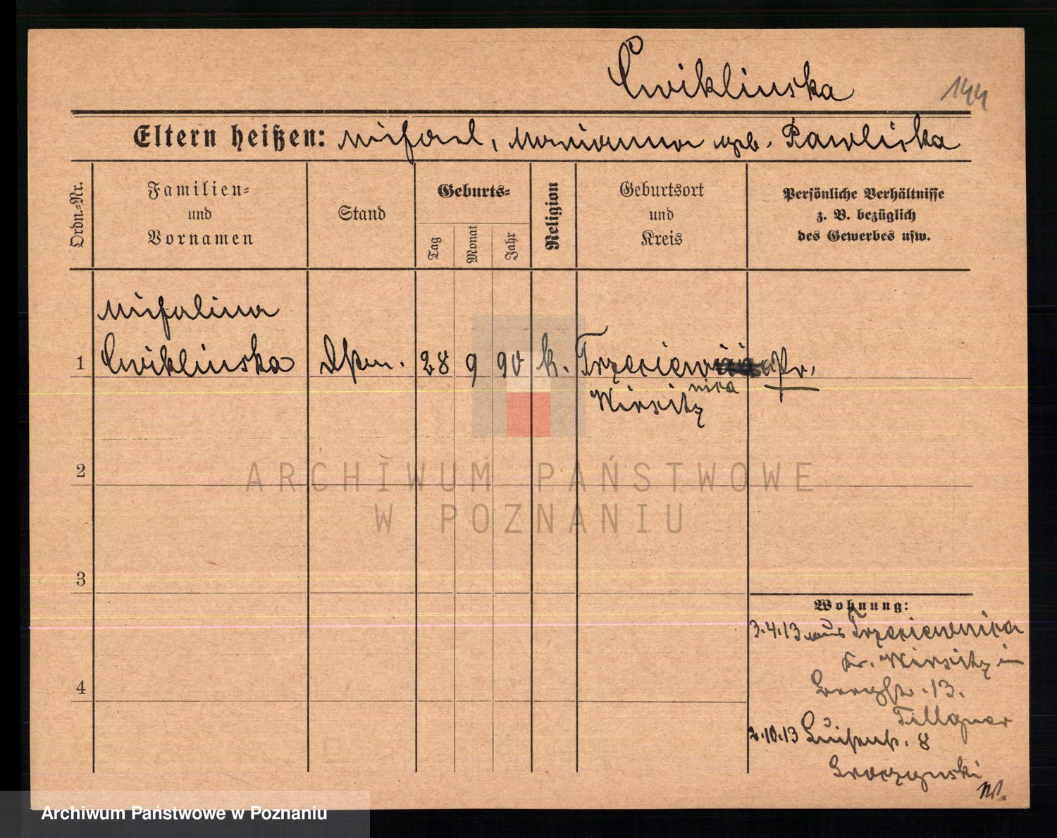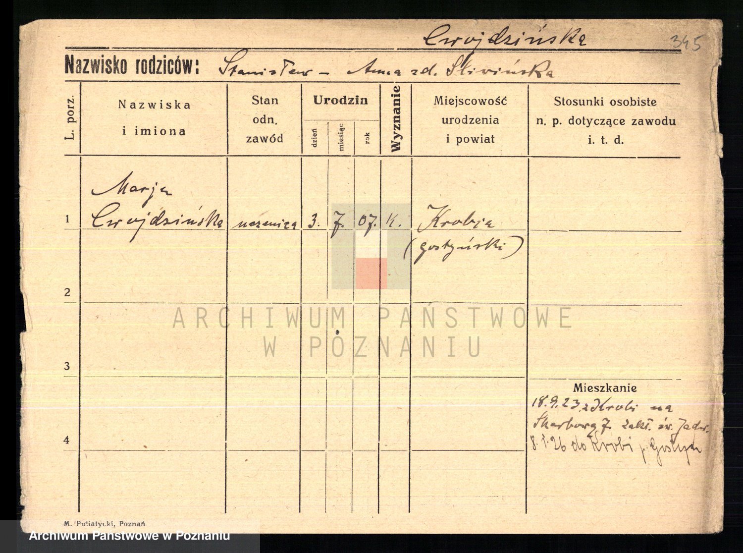Cwikliński z.d. Przymuszińska, Marja