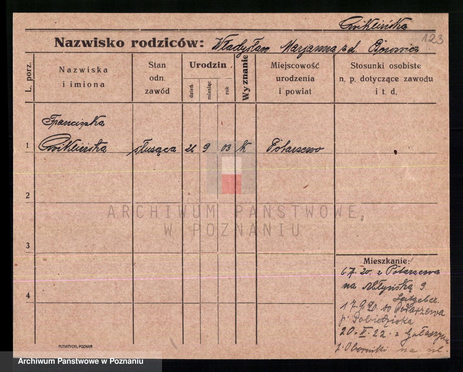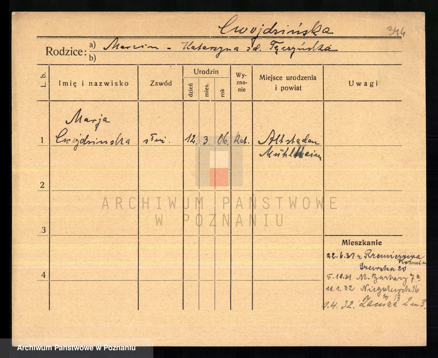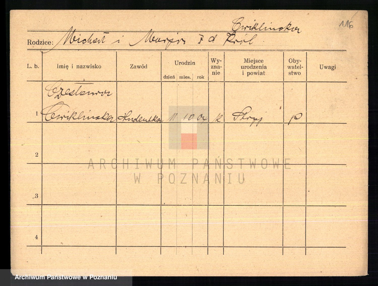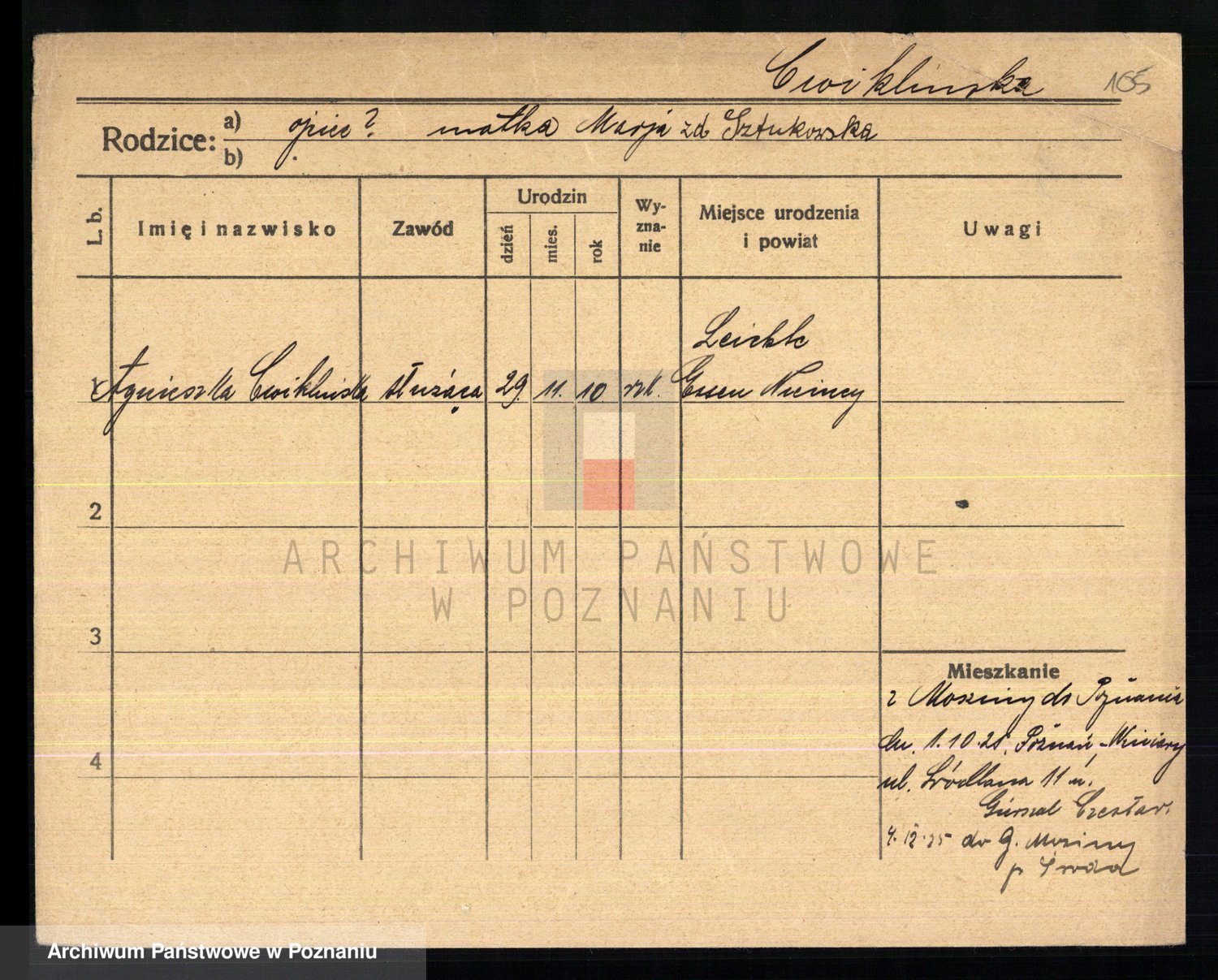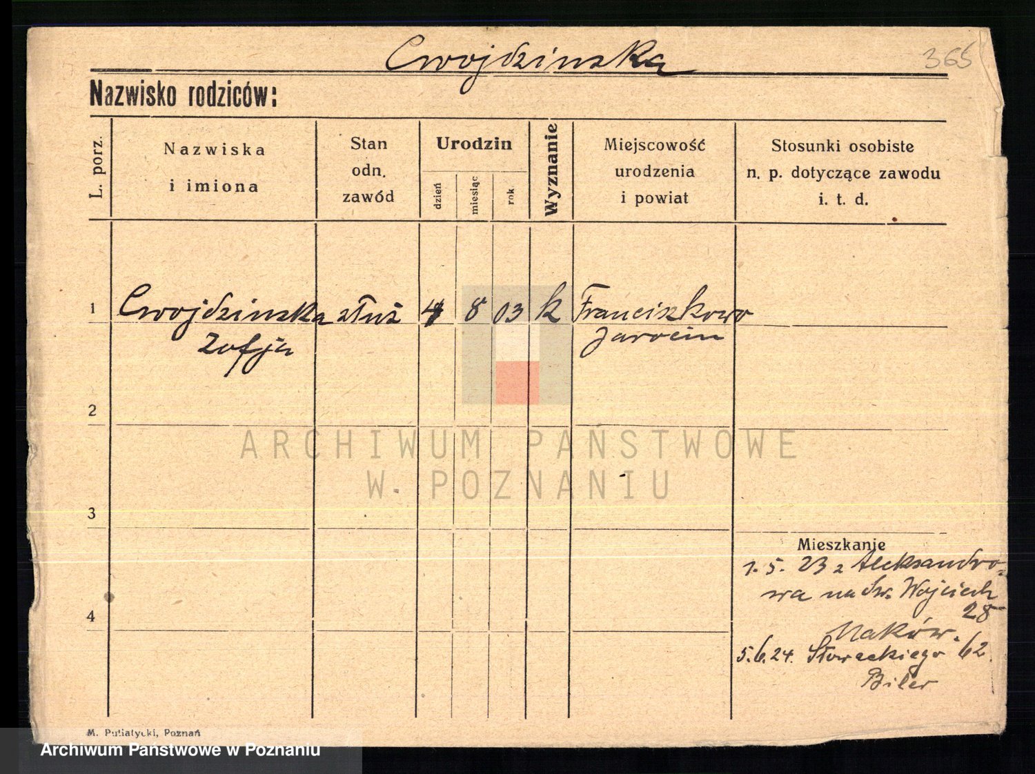 Cwikliński z.d. Przymuszińska, Marja