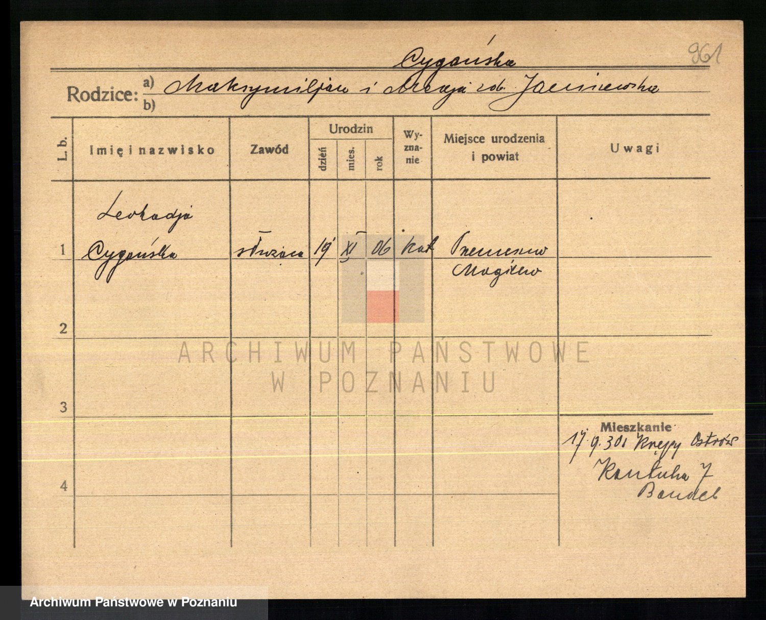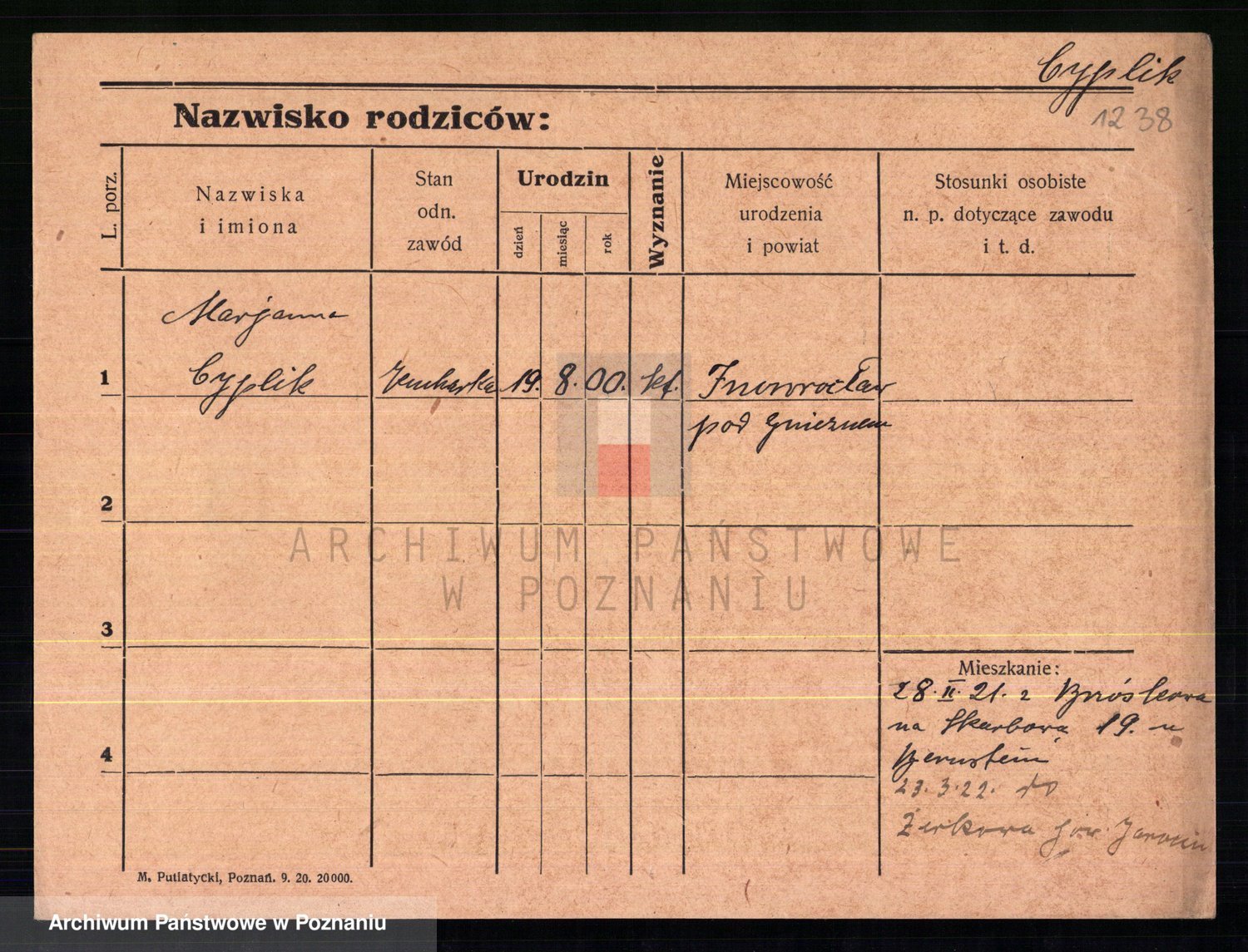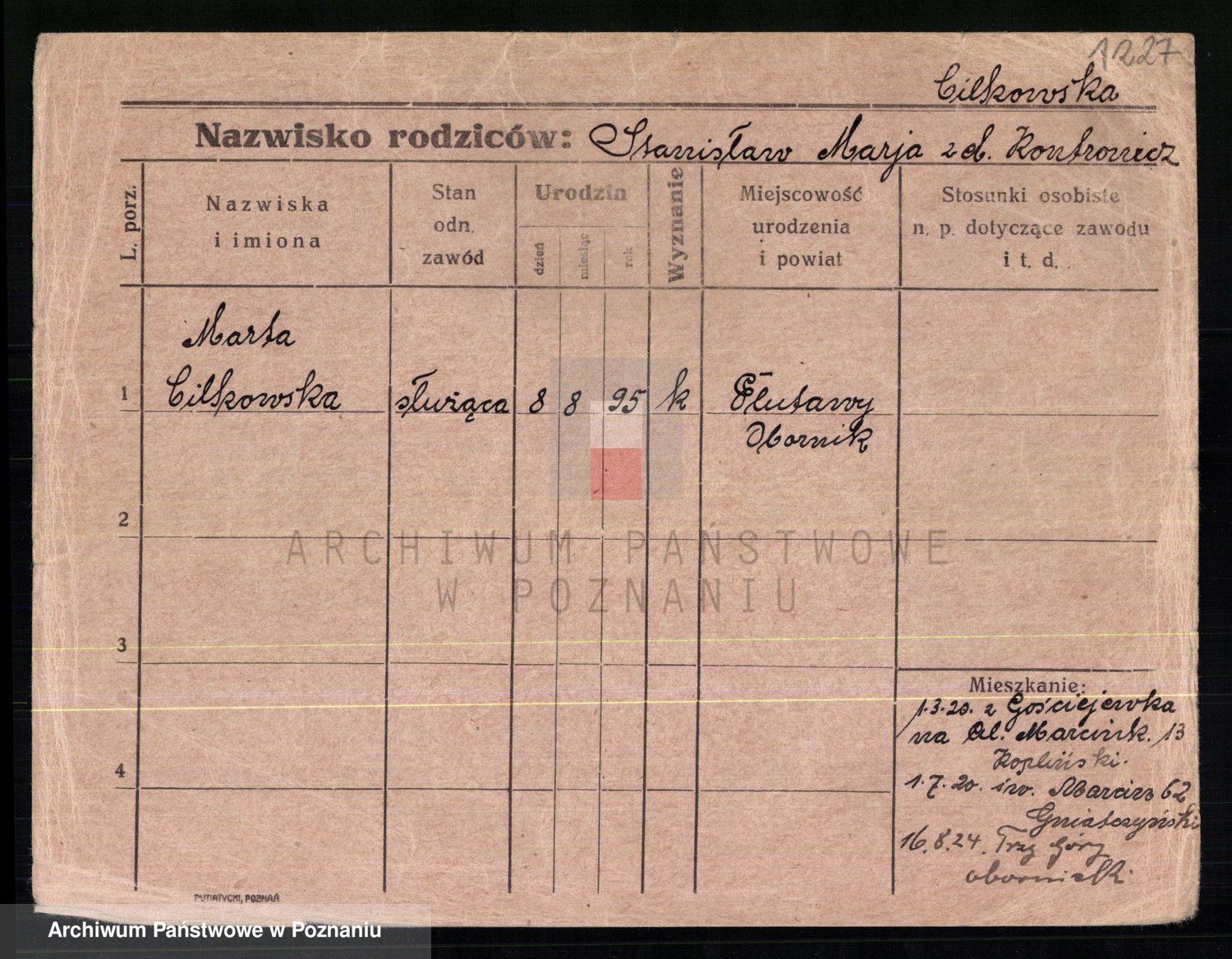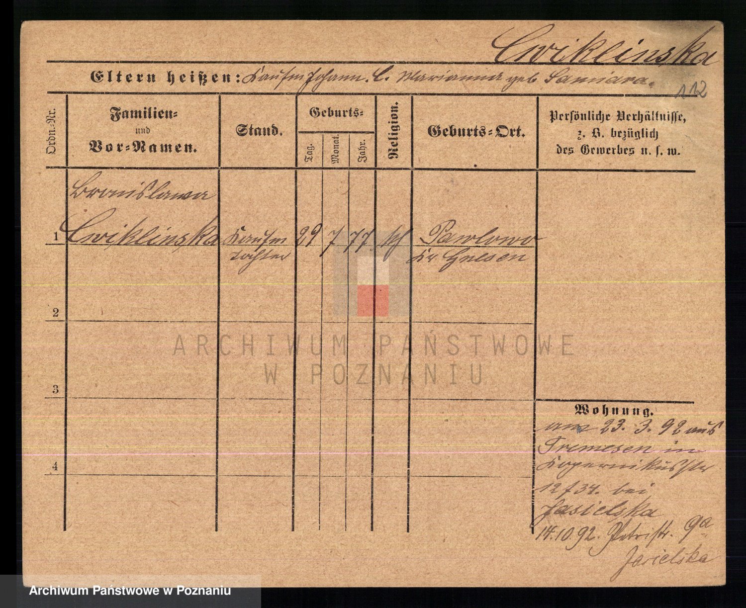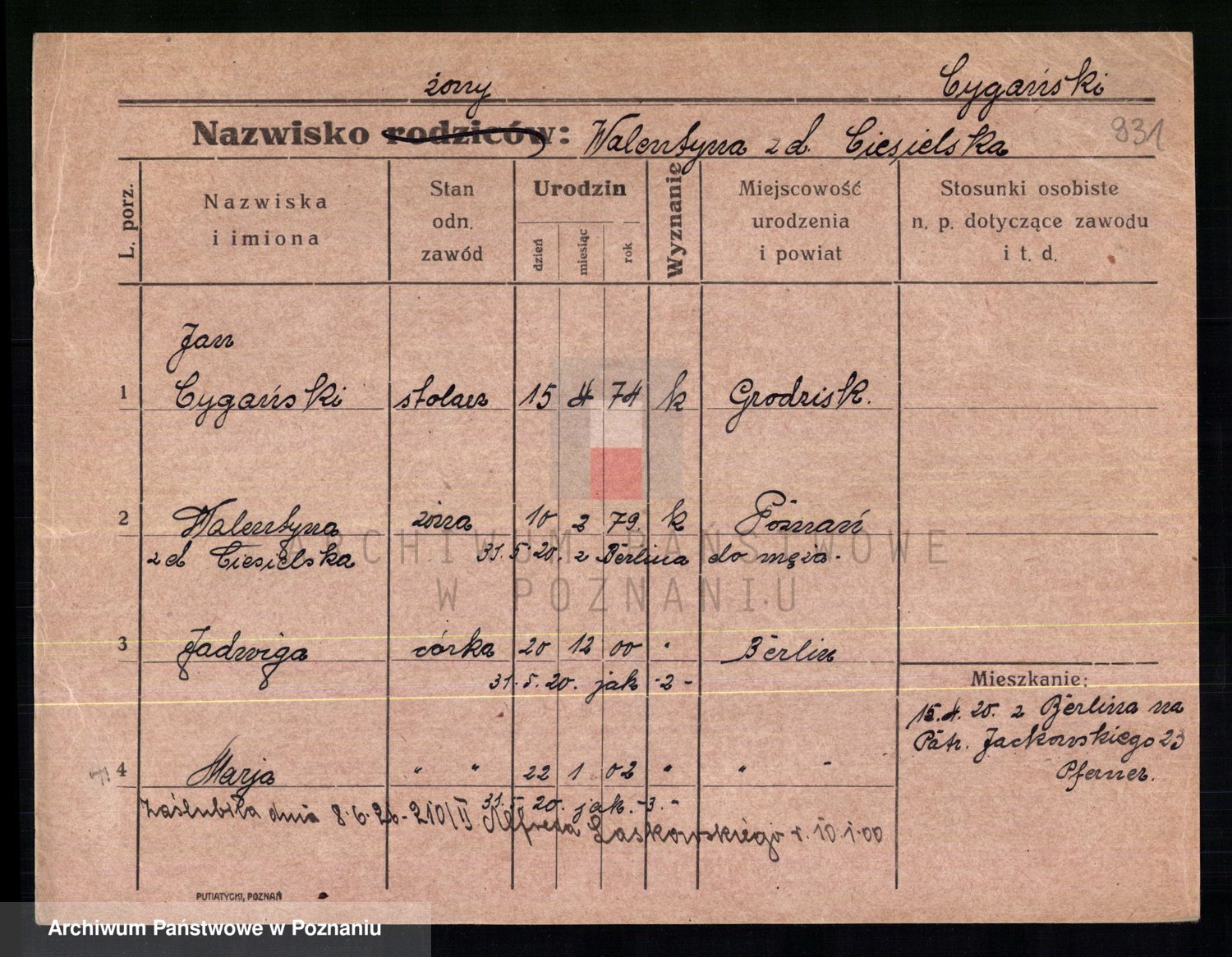 Cwikliński z.d. Przymuszińska, Marja