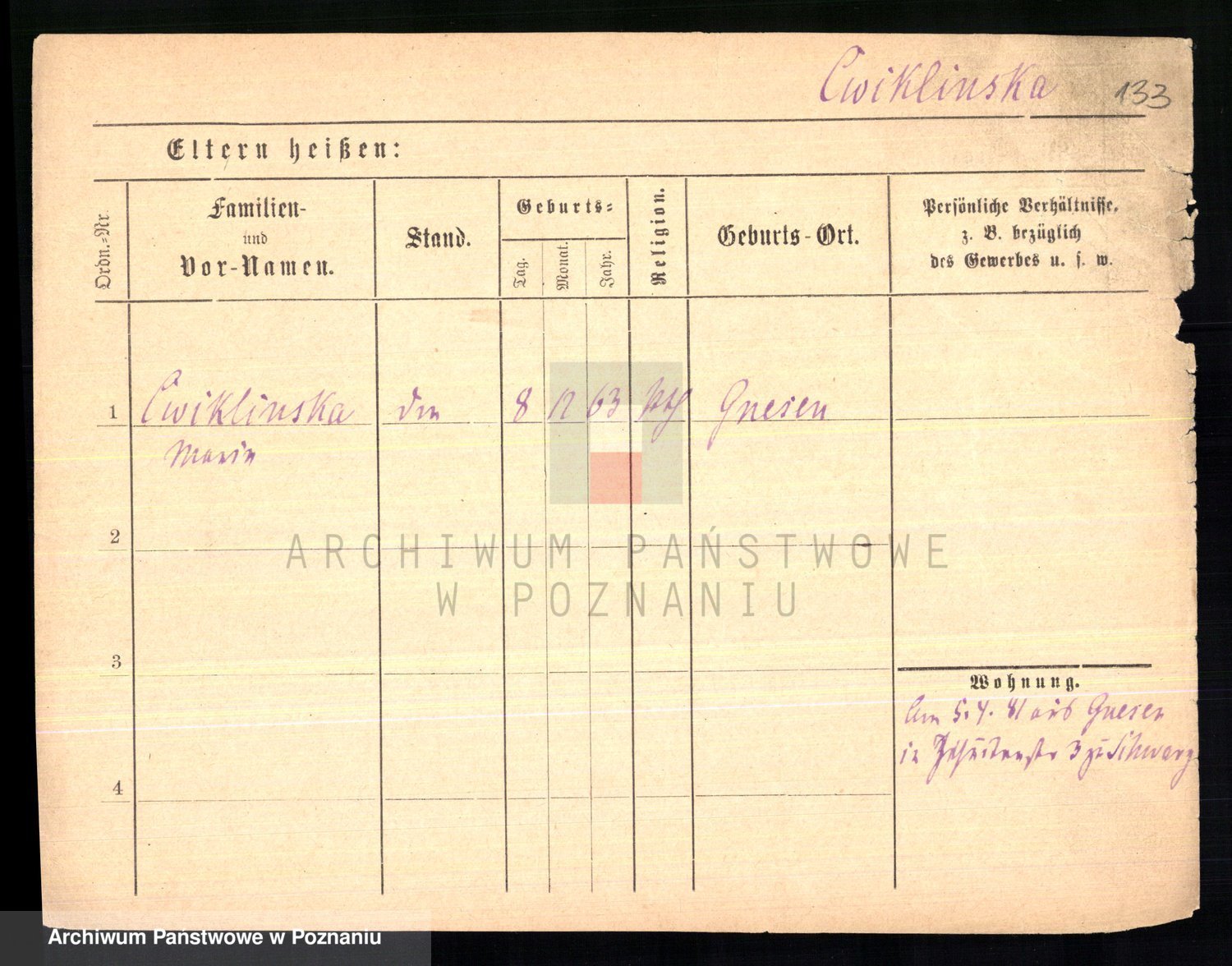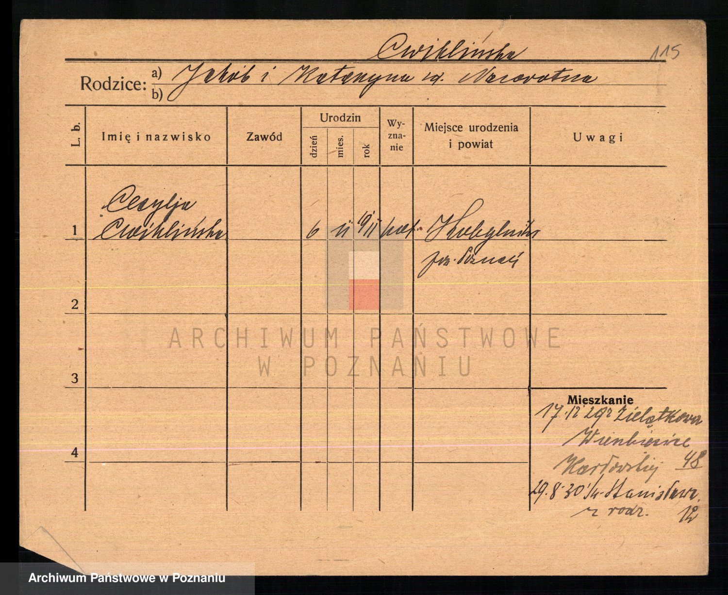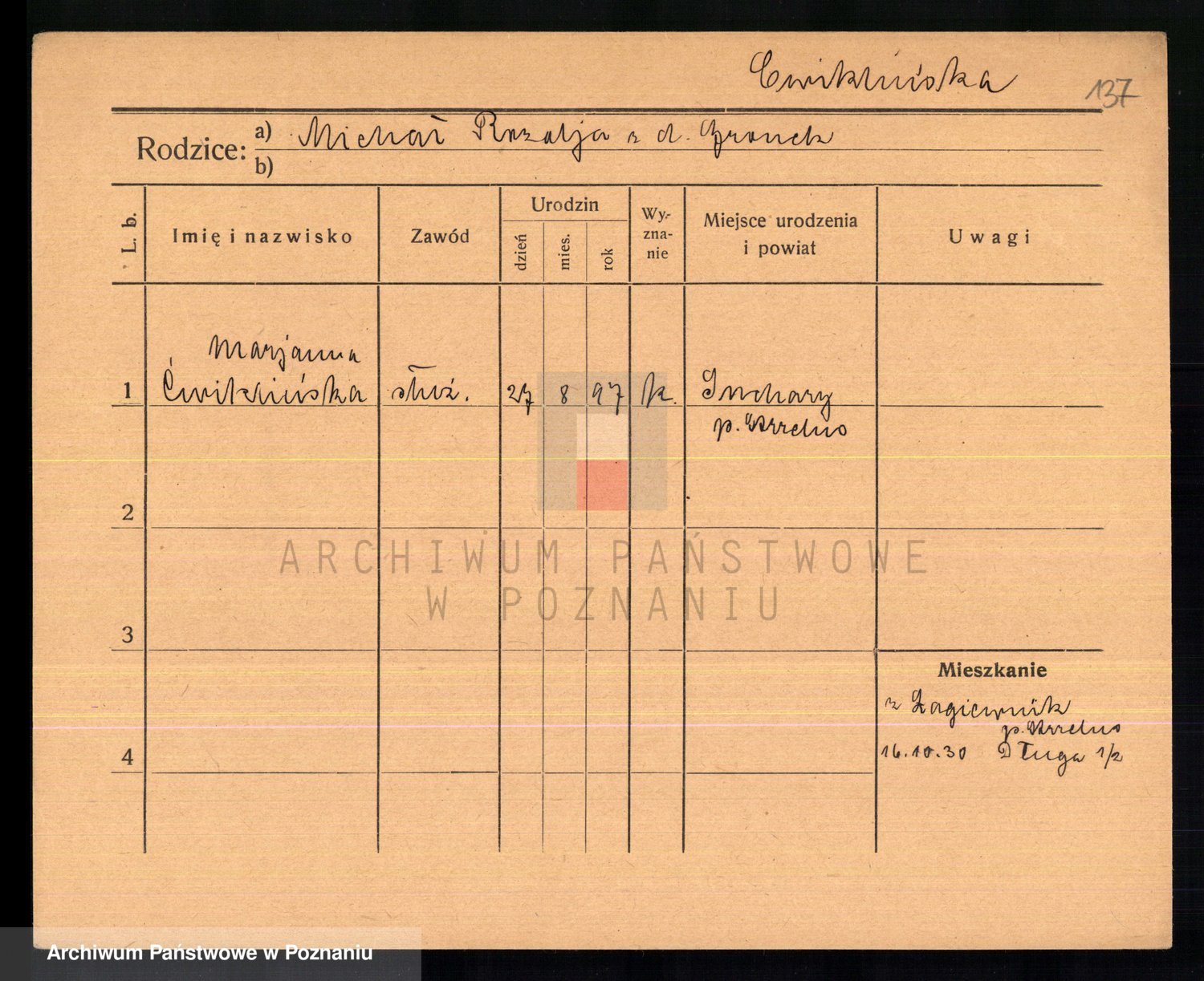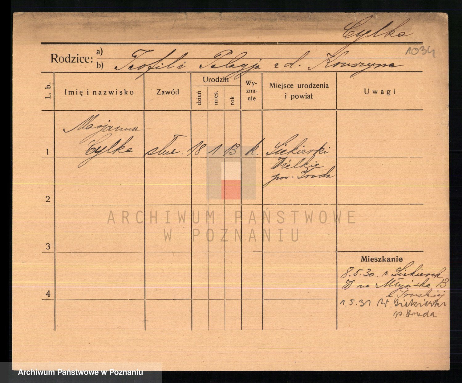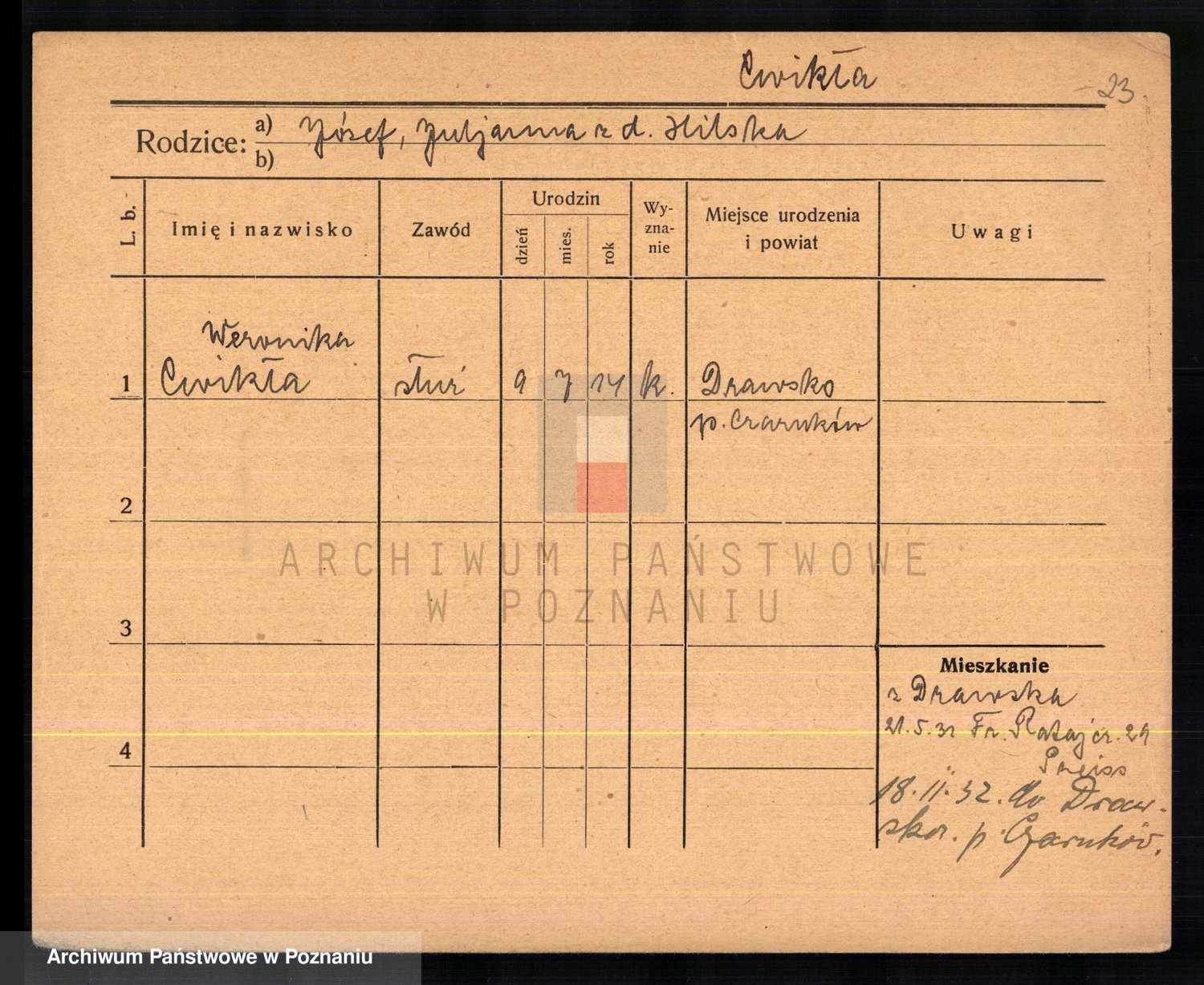 Cwikliński z.d. Przymuszińska, Marja