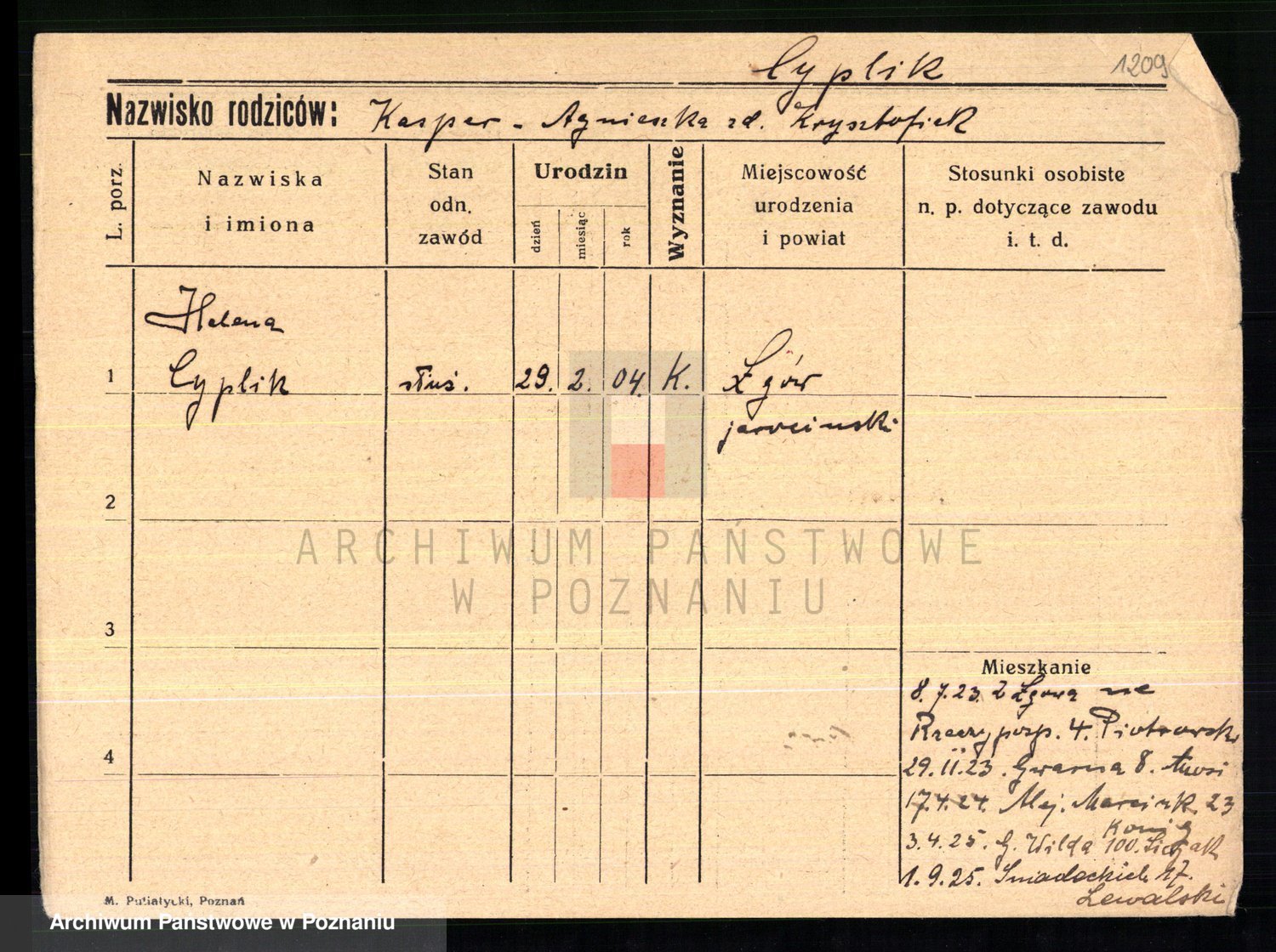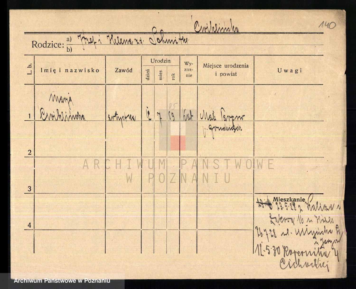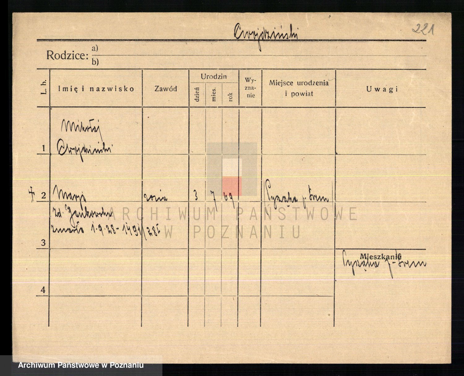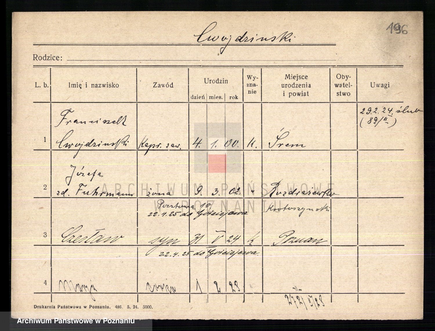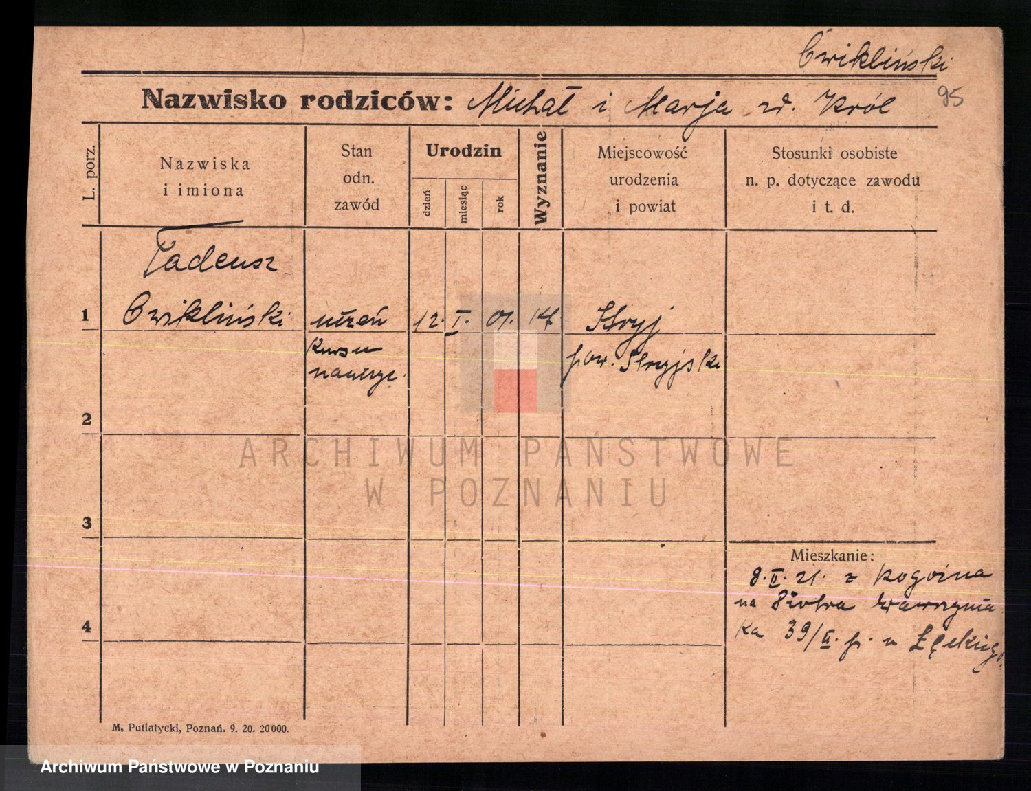 Cwikliński z.d. Przymuszińska, Marja