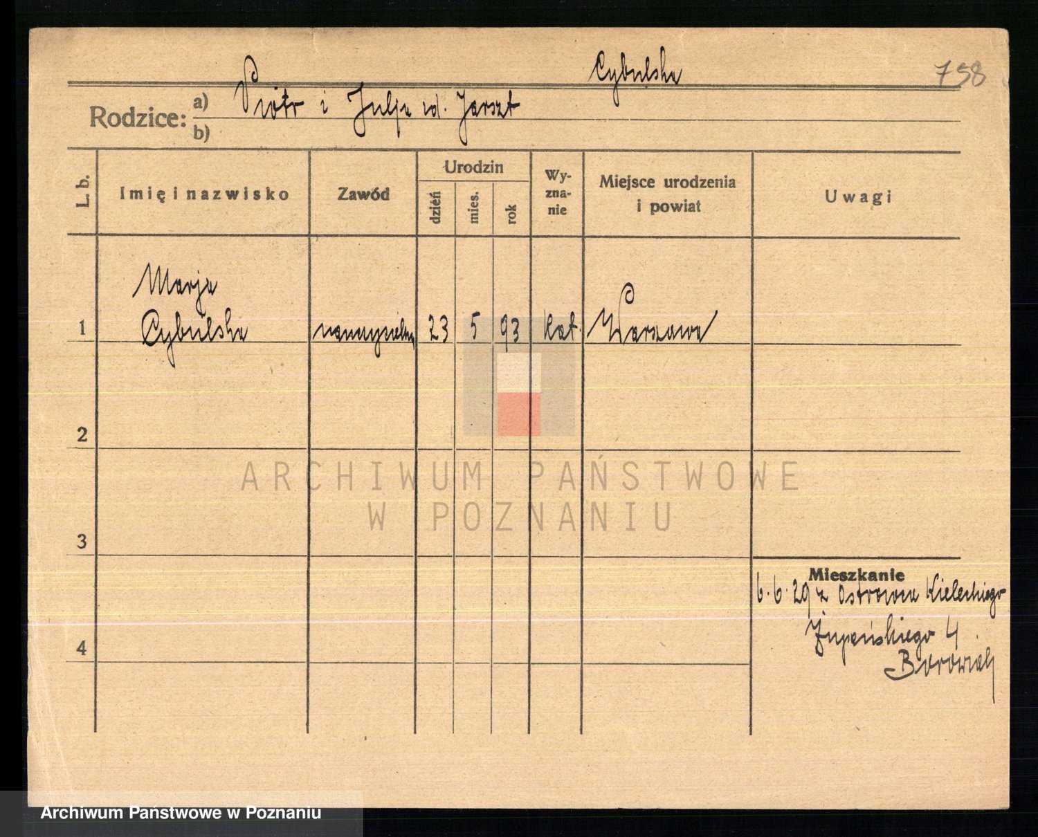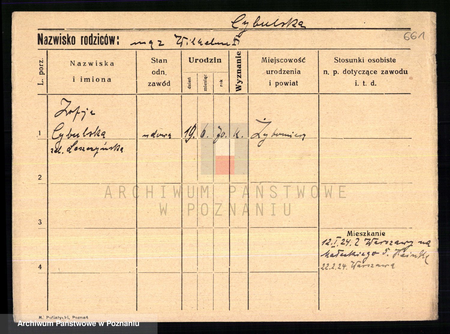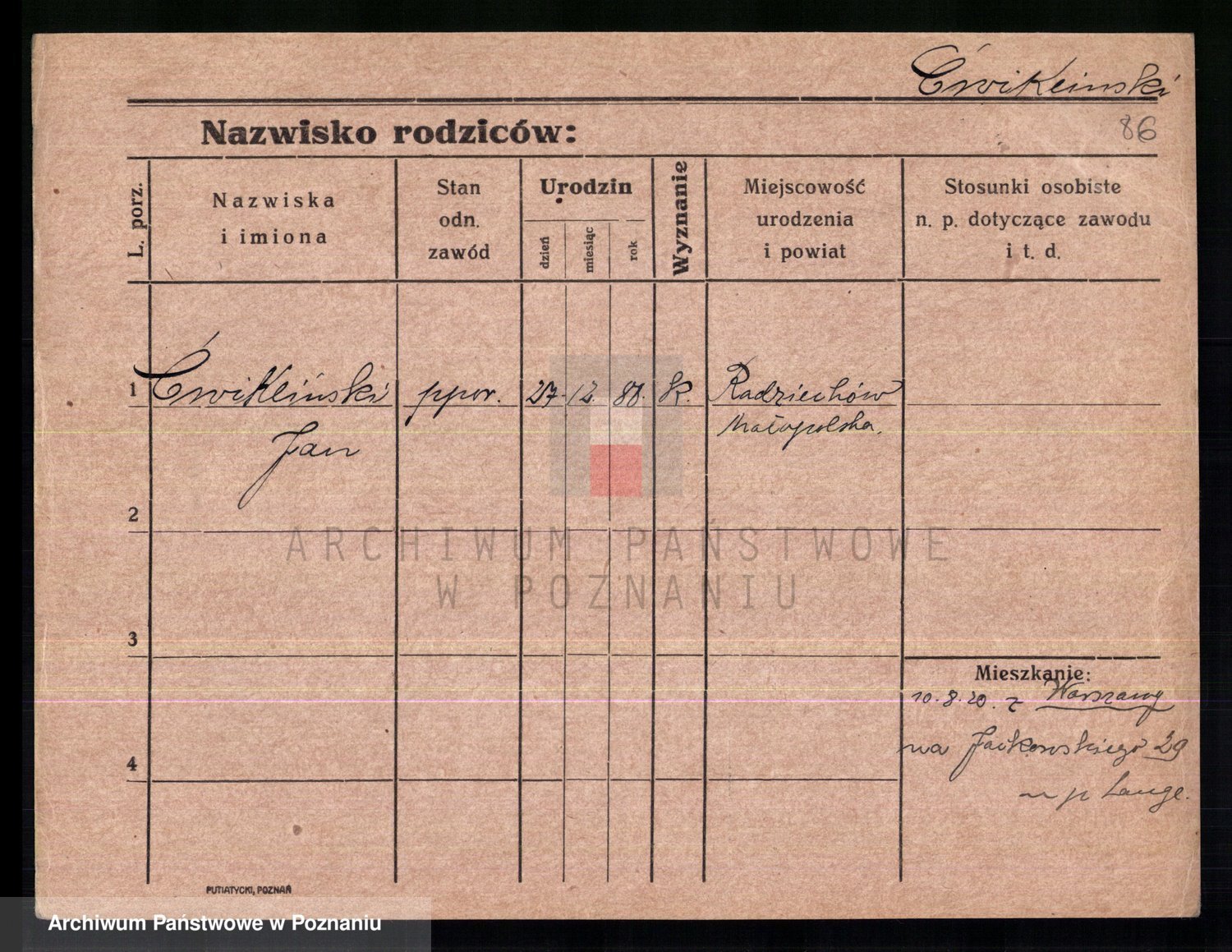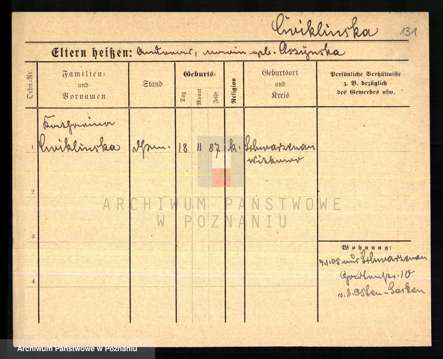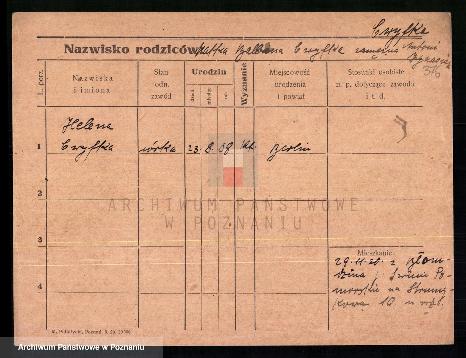 Cwikliński z.d. Przymuszińska, Marja