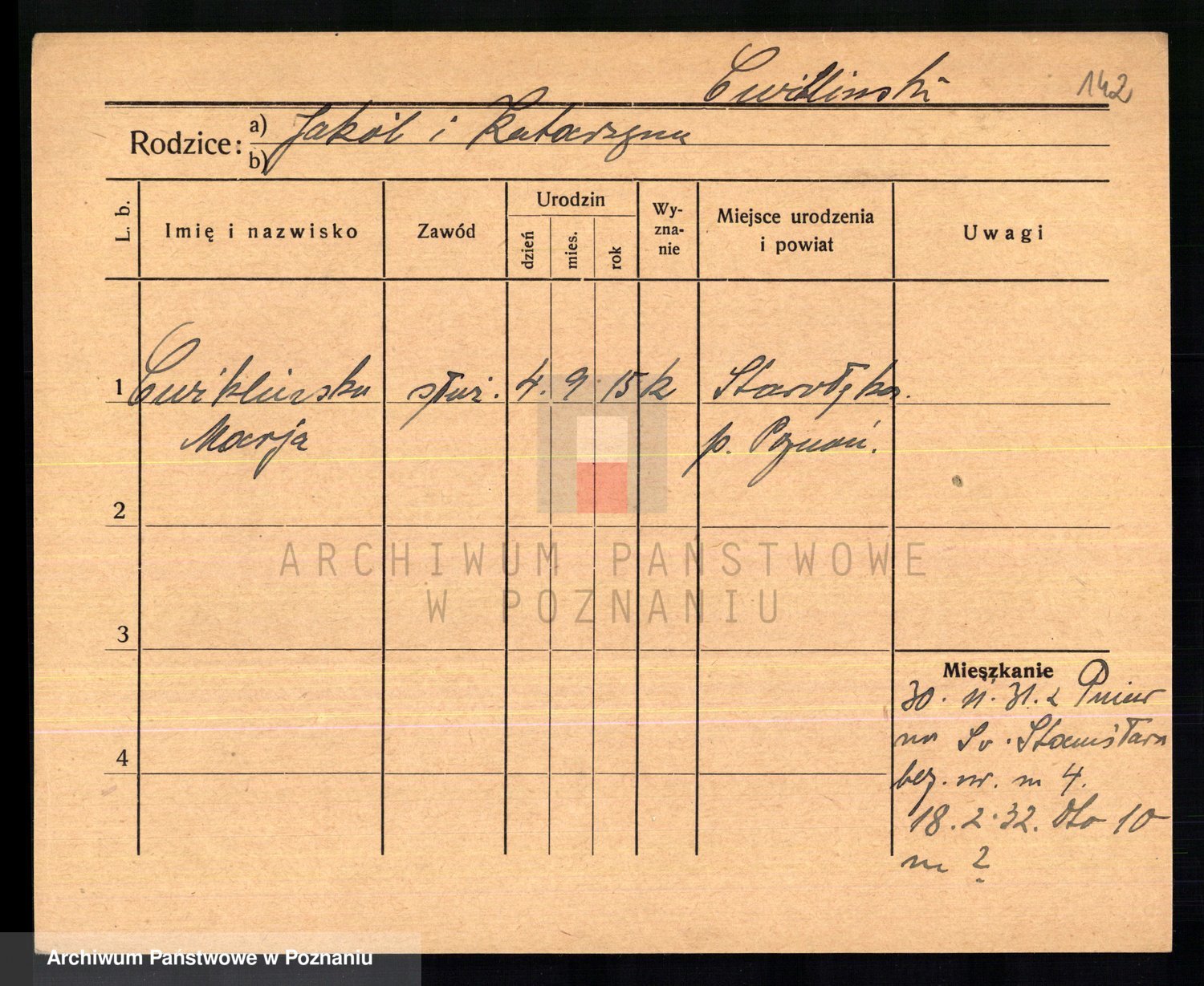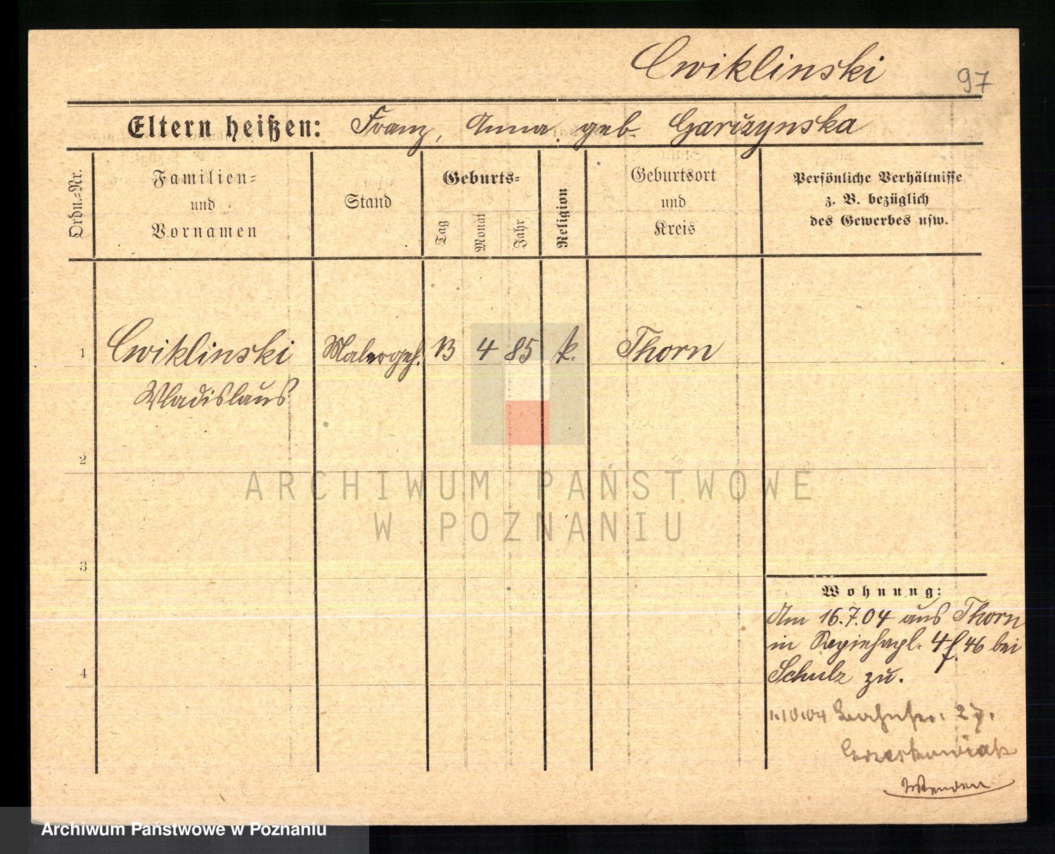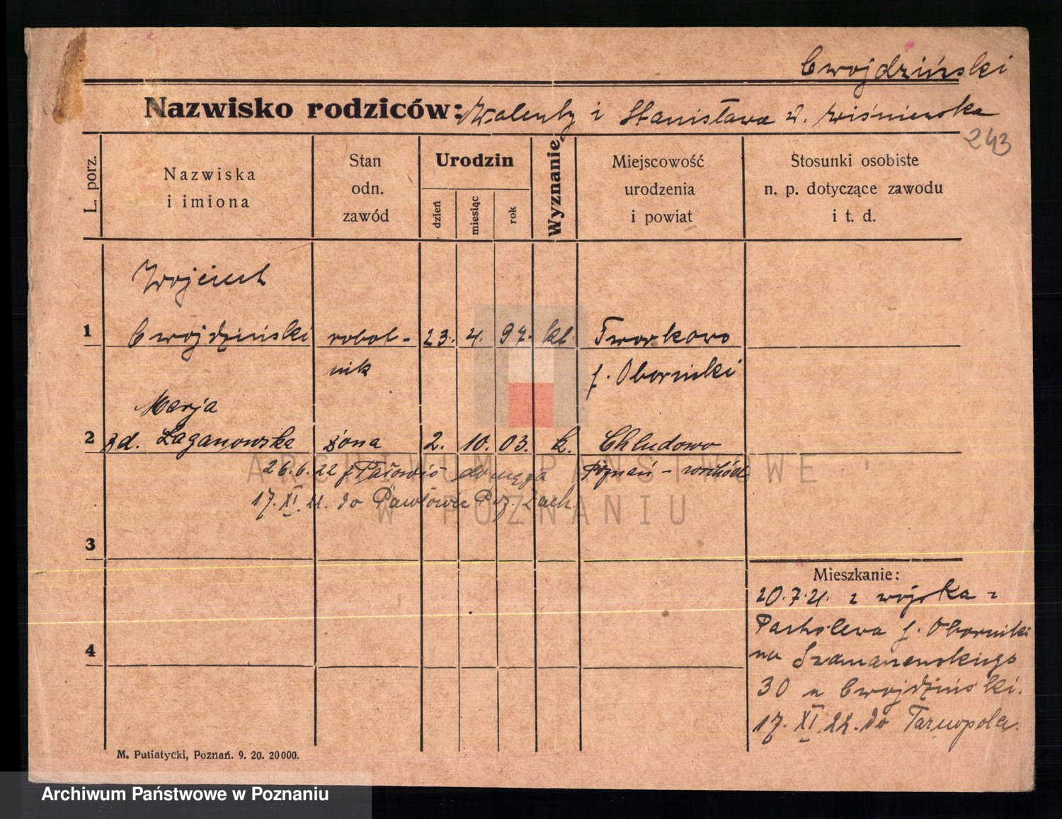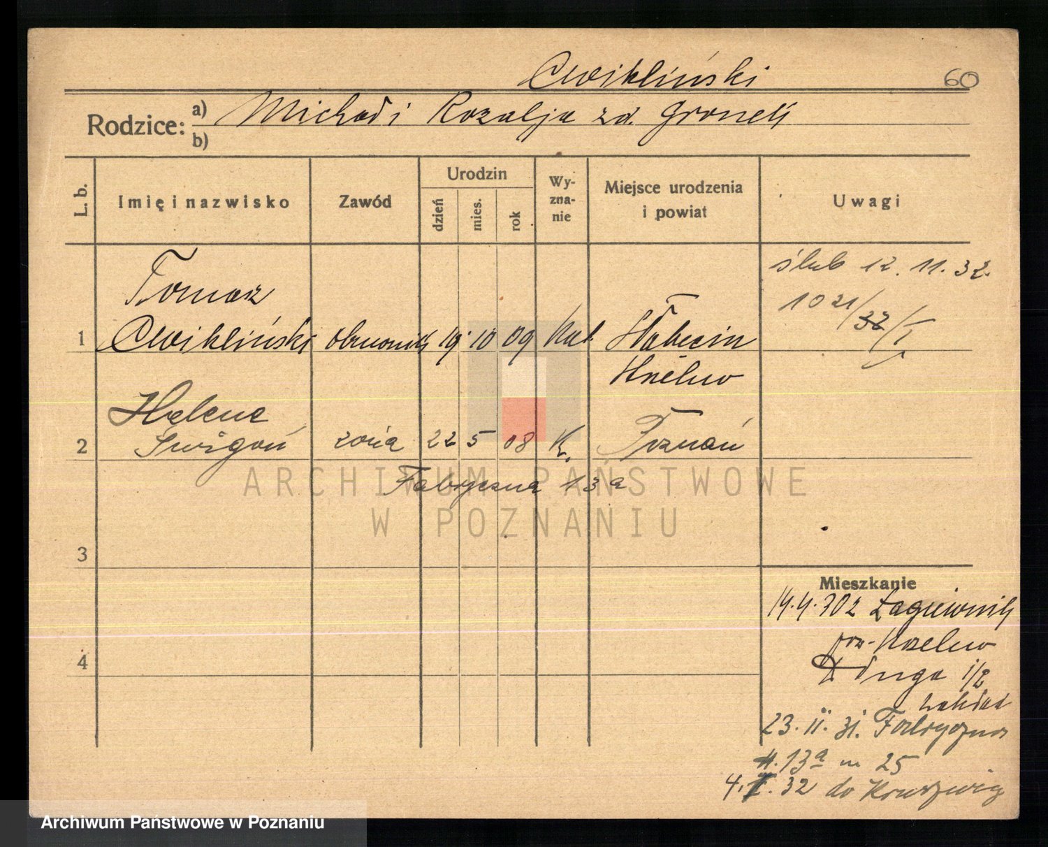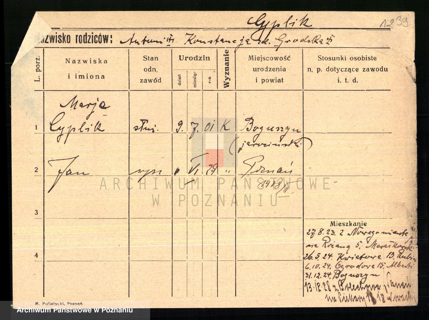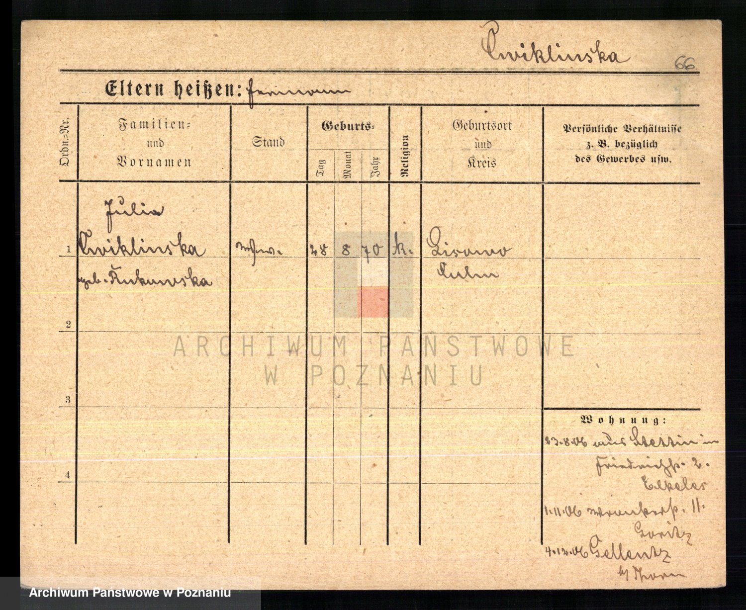 Cwikliński z.d. Przymuszińska, Marja