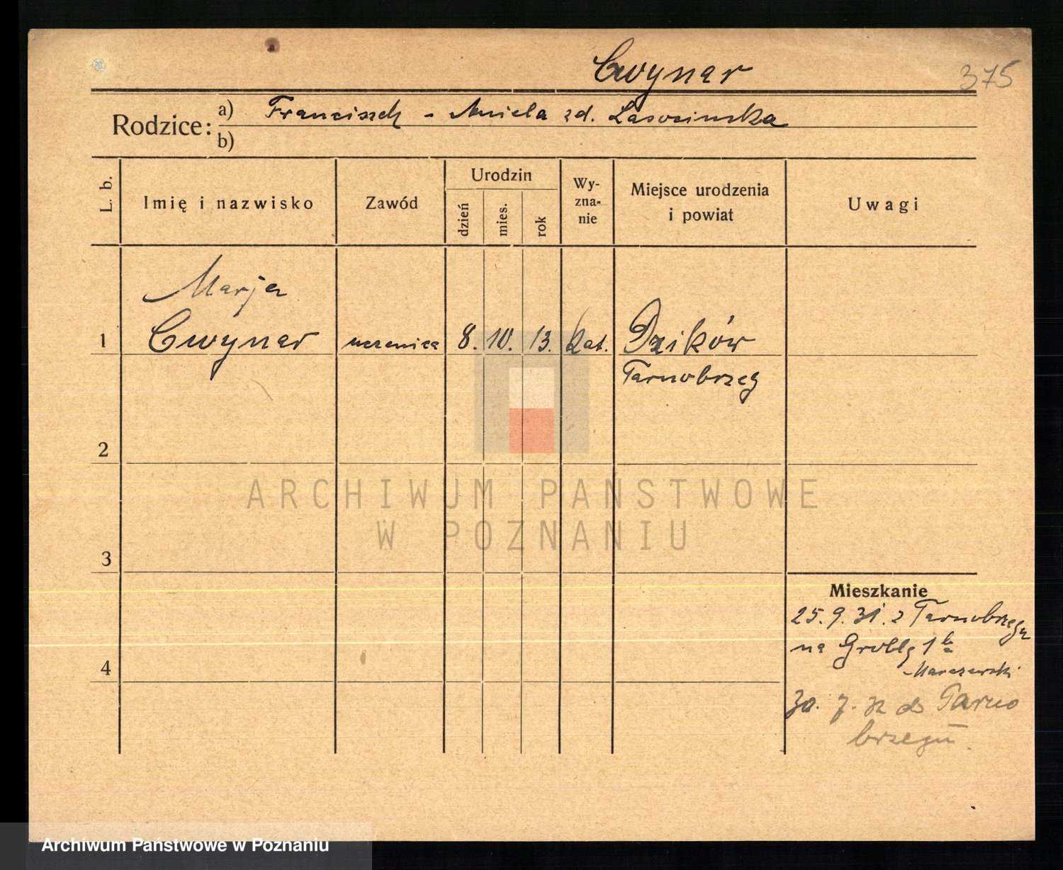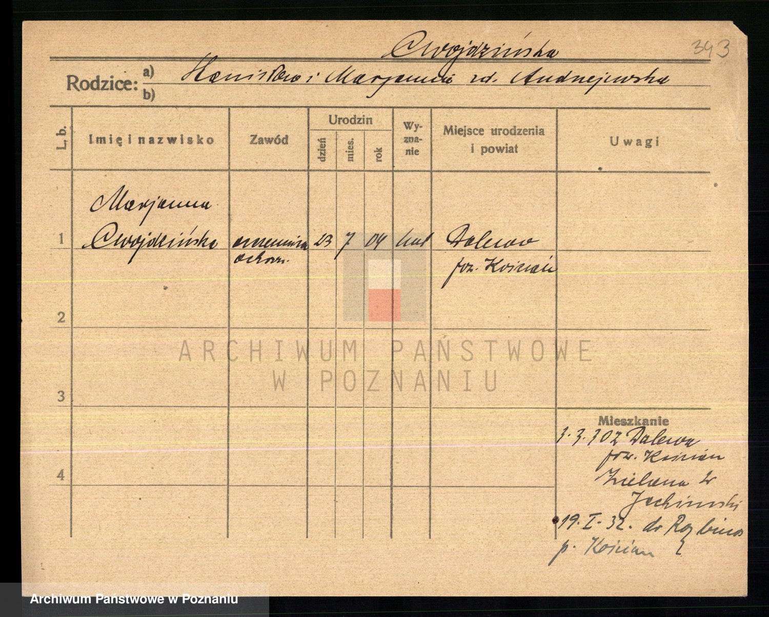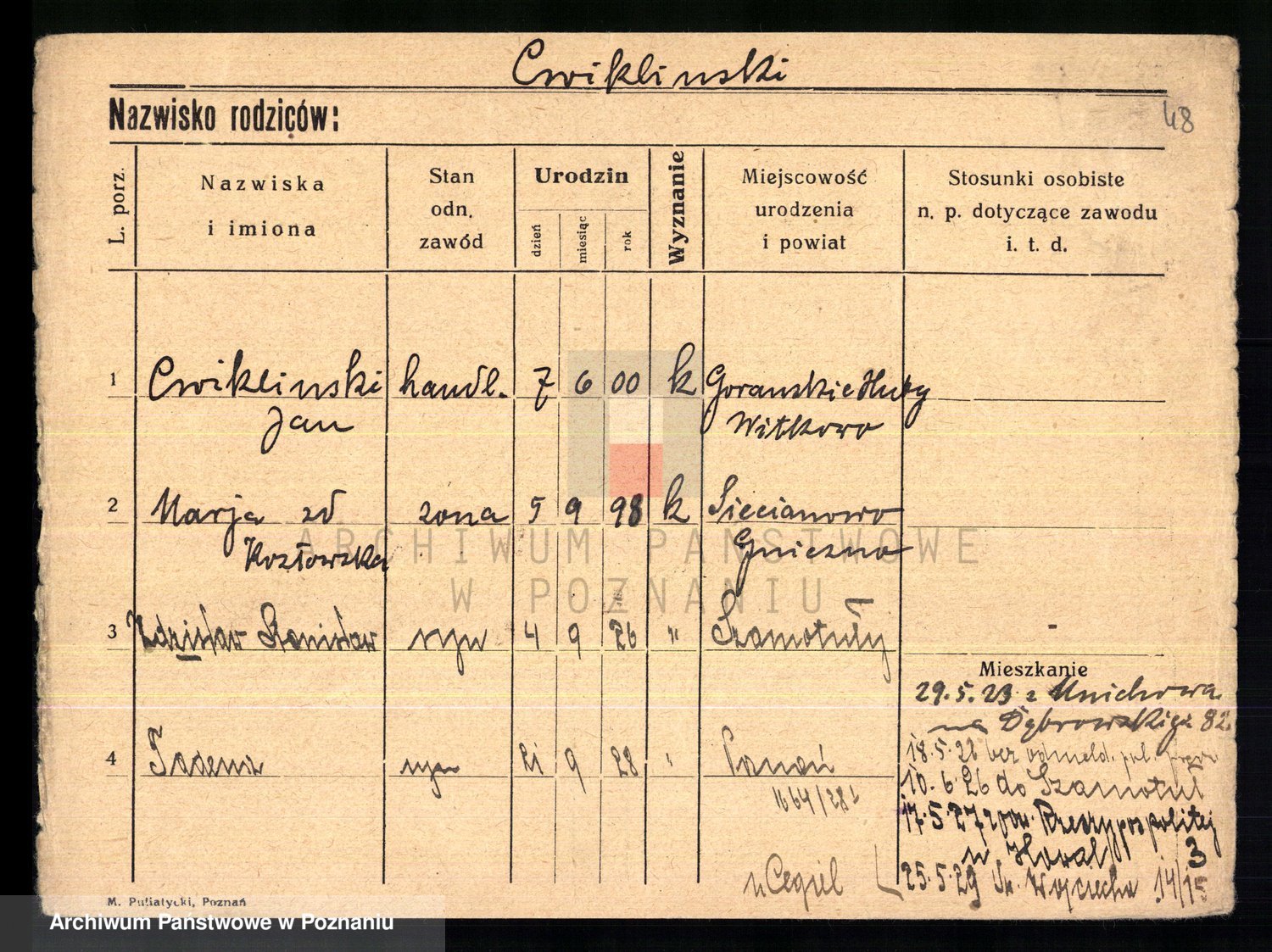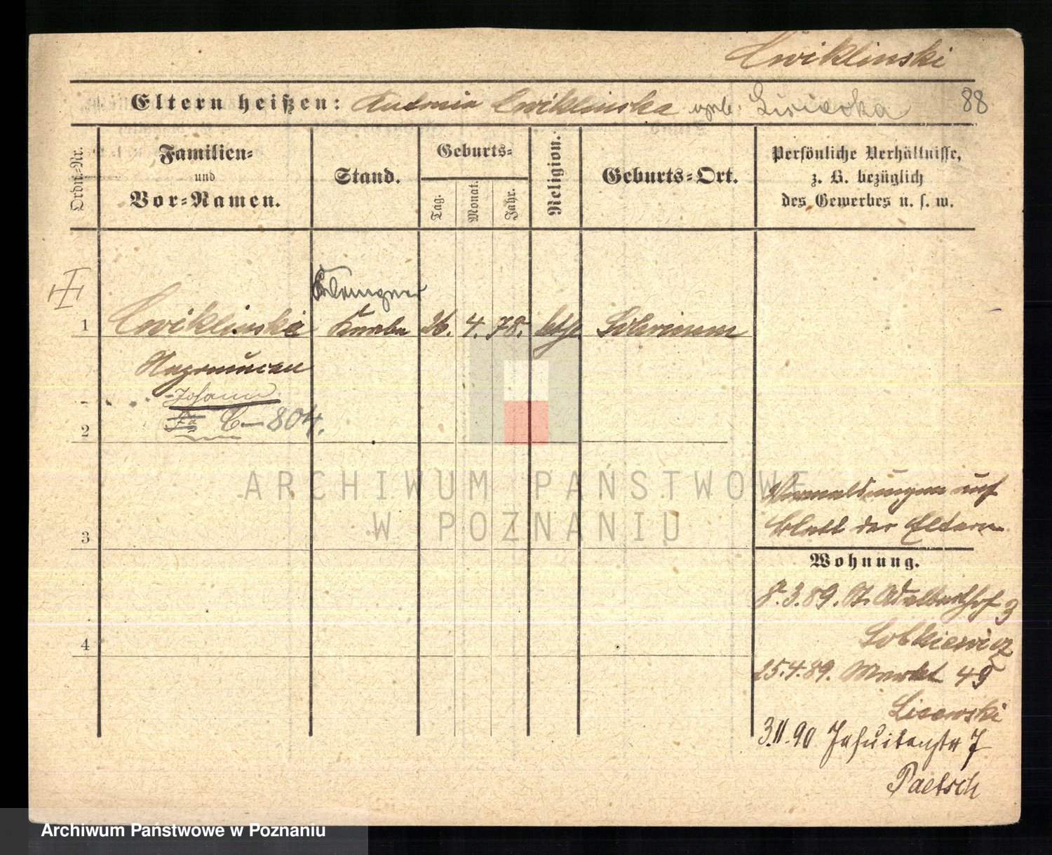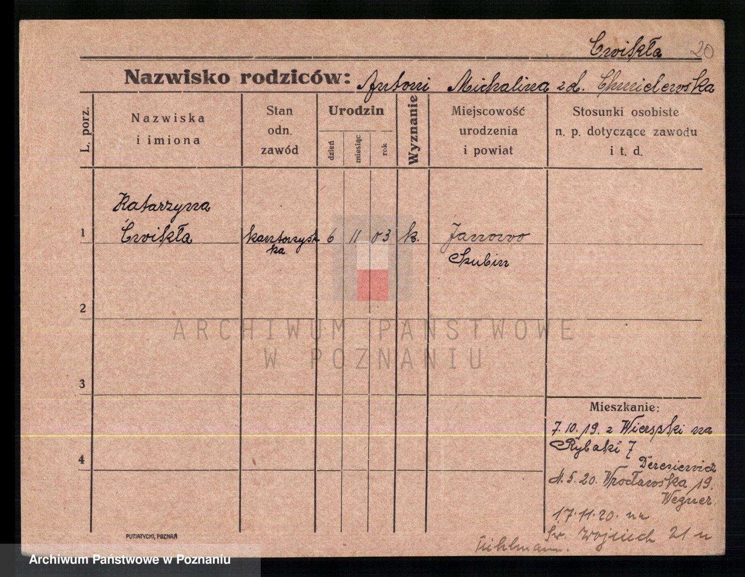 Cwikliński z.d. Przymuszińska, Marja