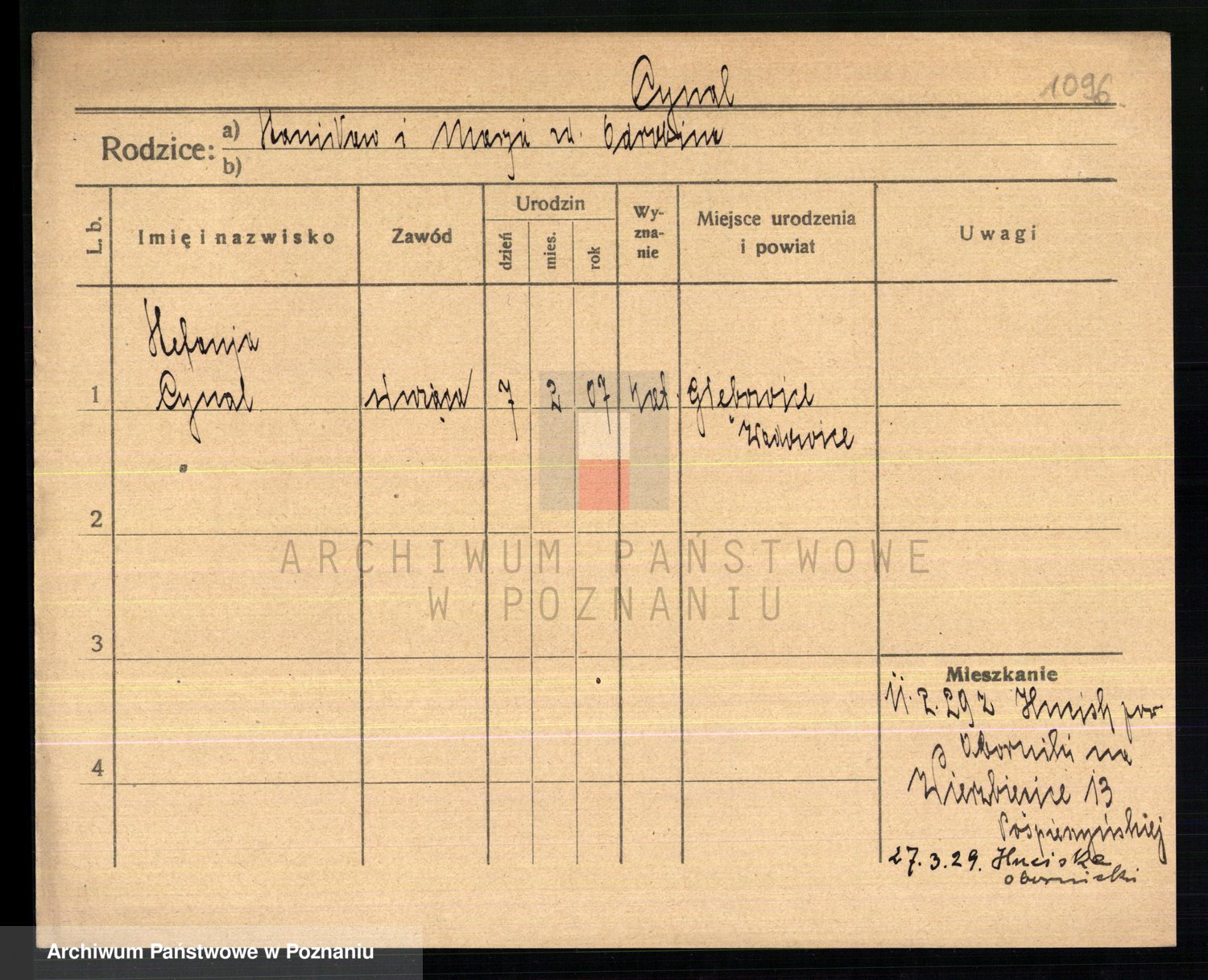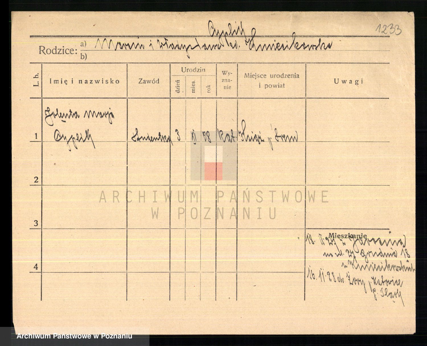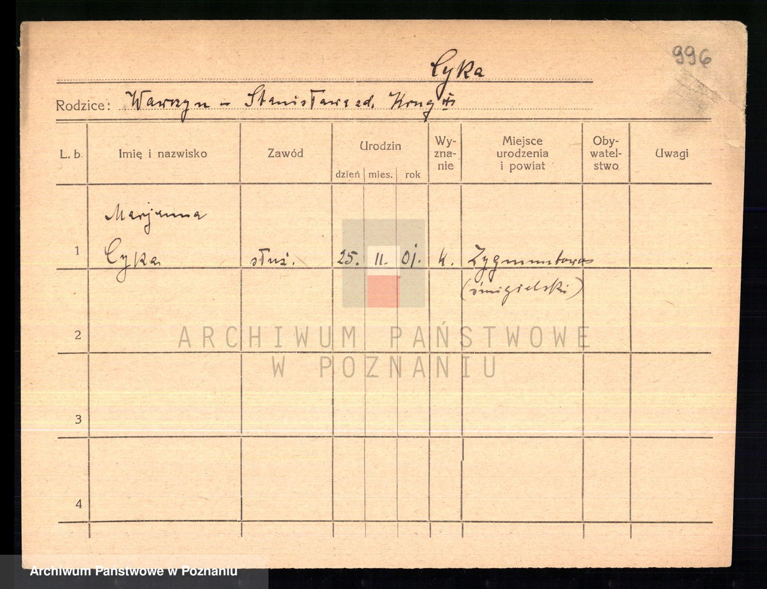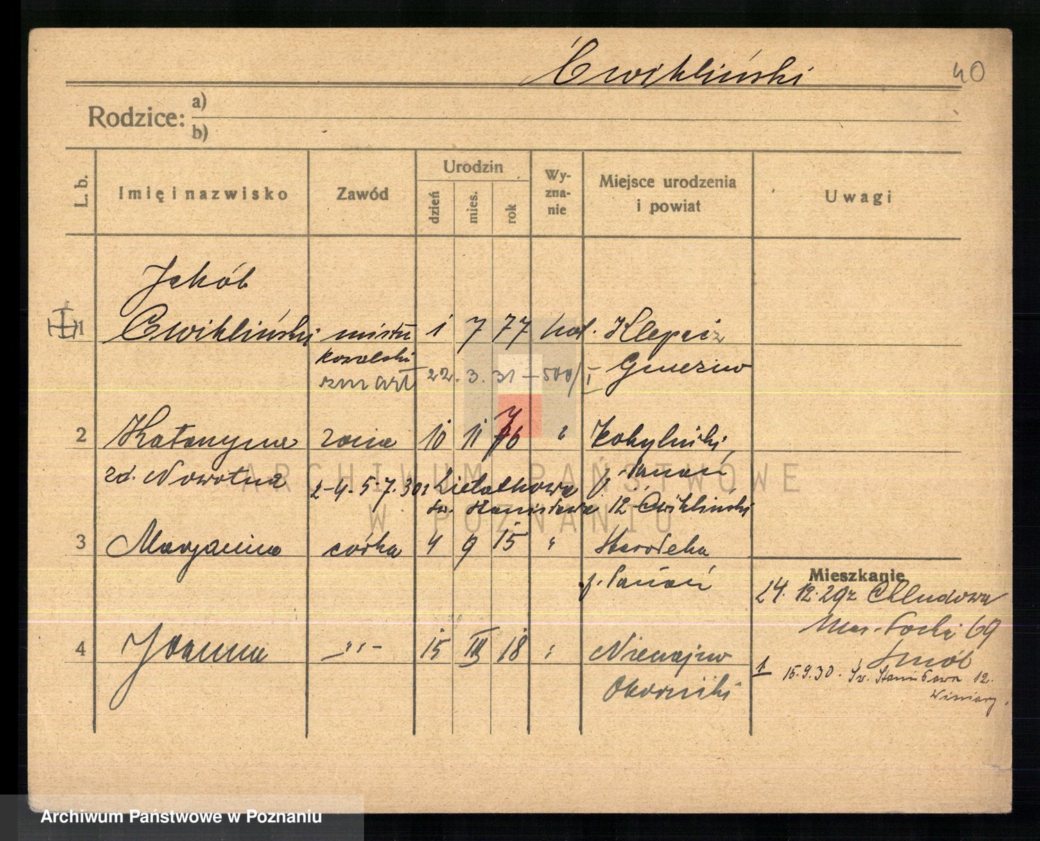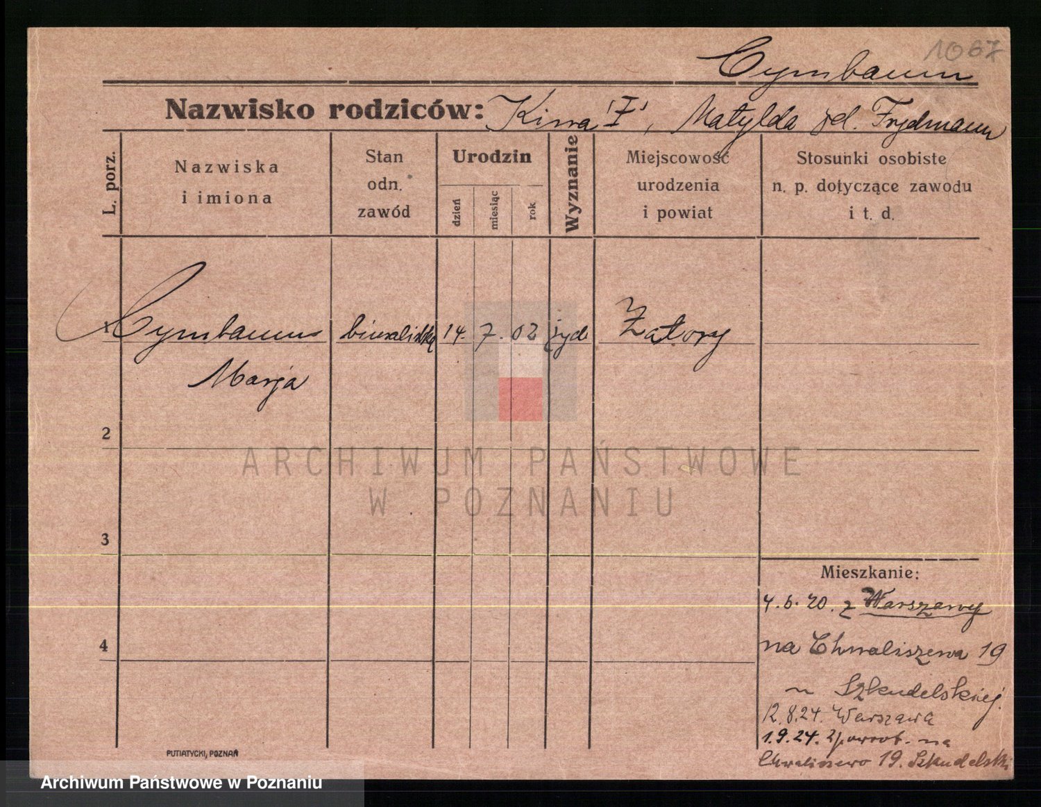 Cwikliński z.d. Przymuszińska, Marja