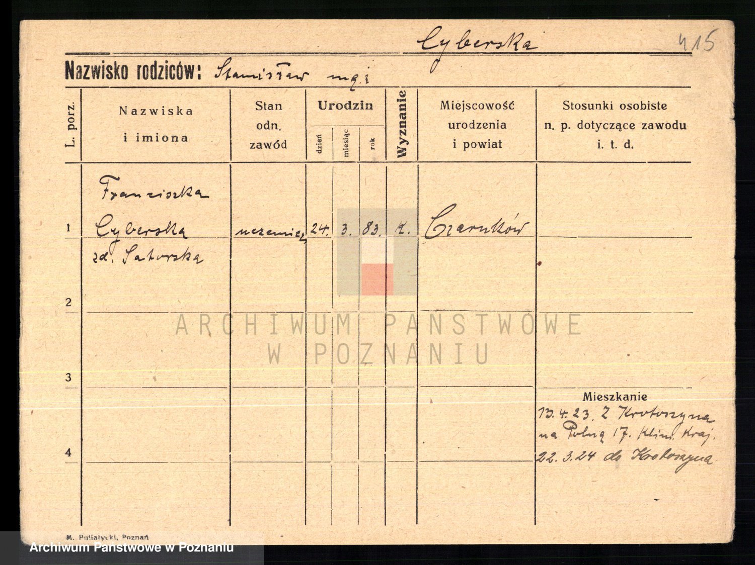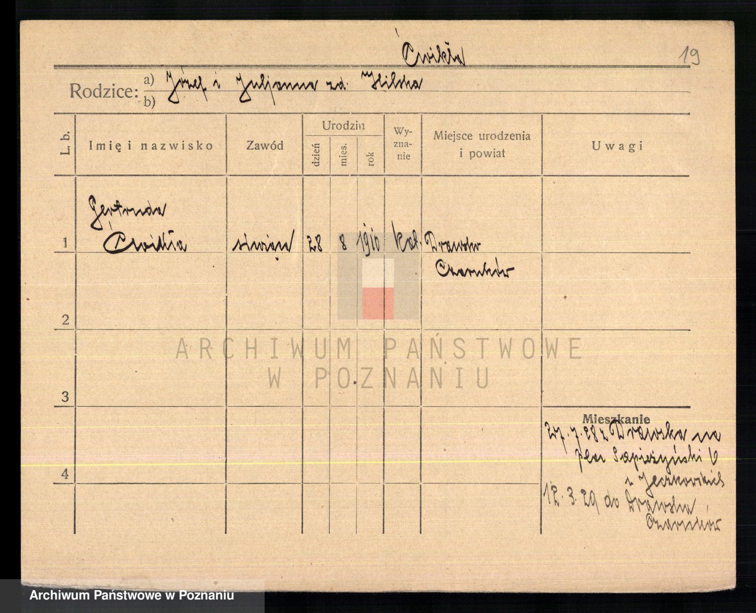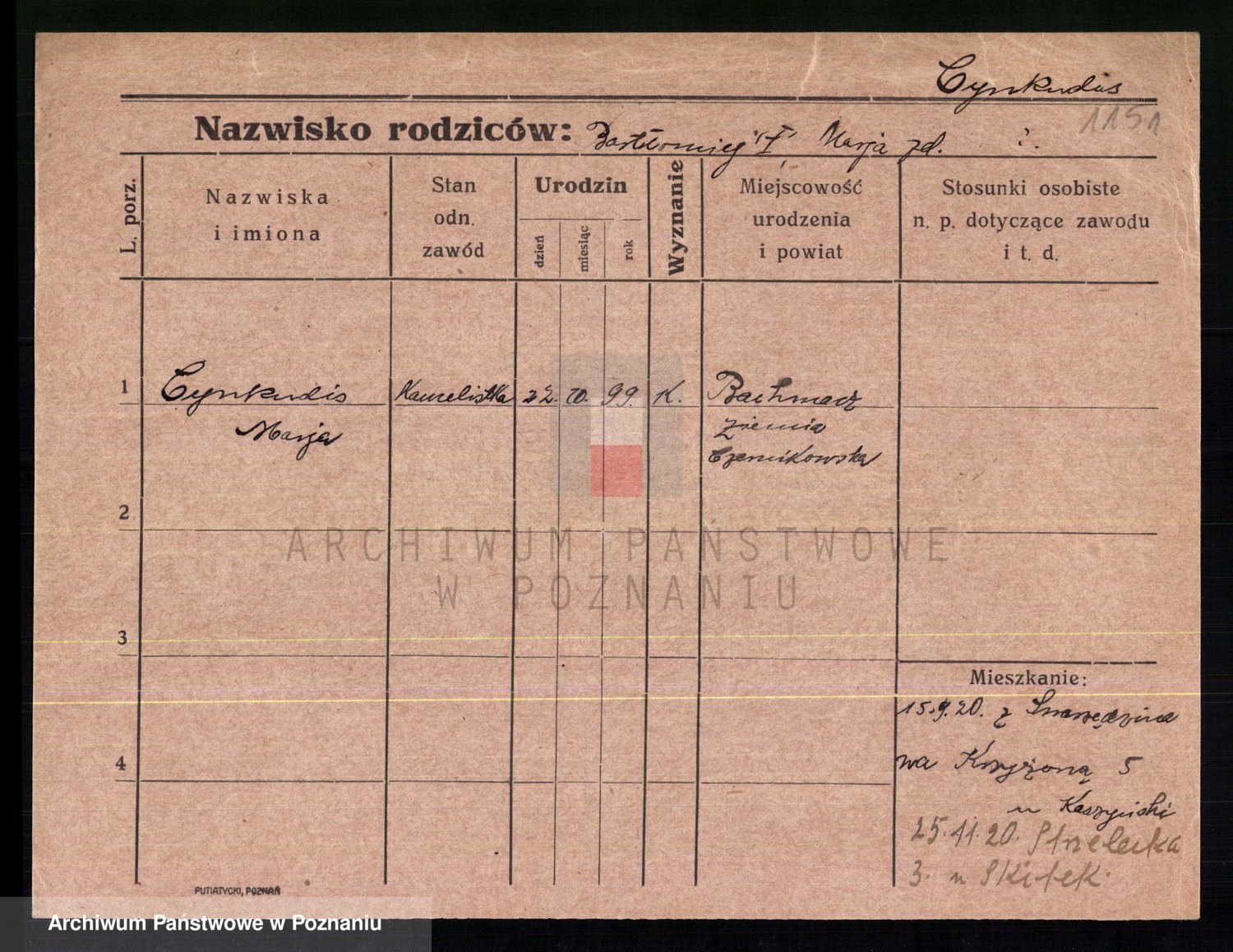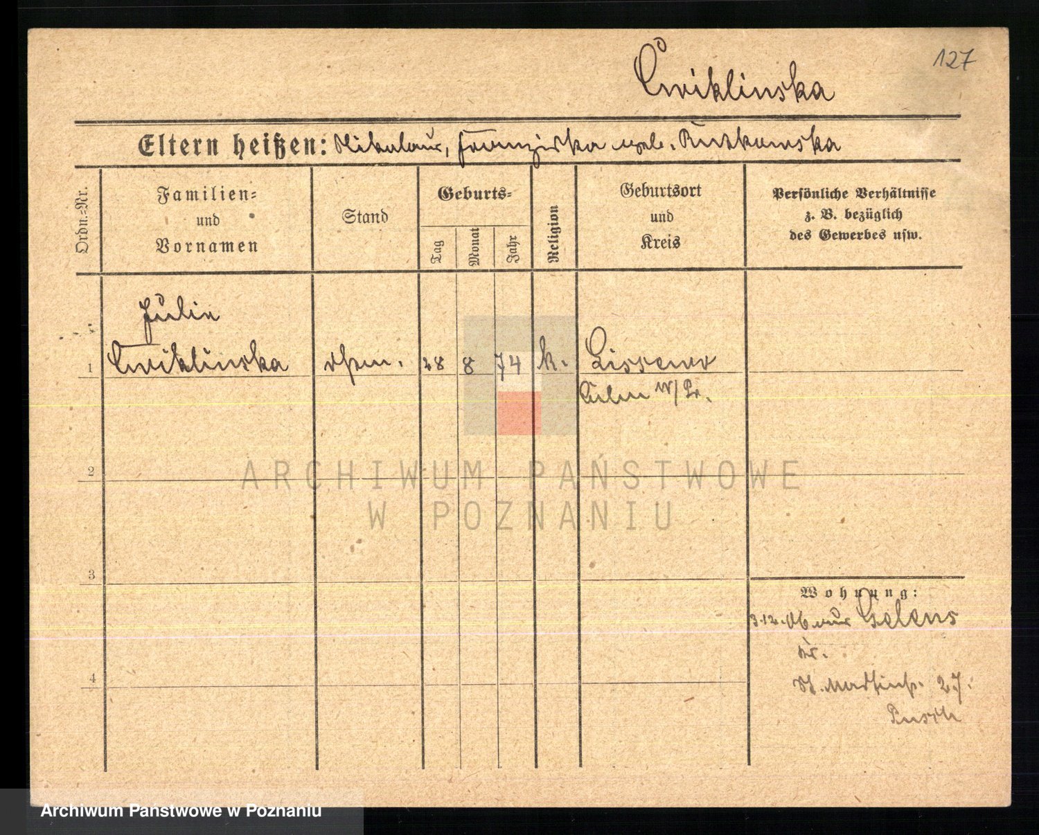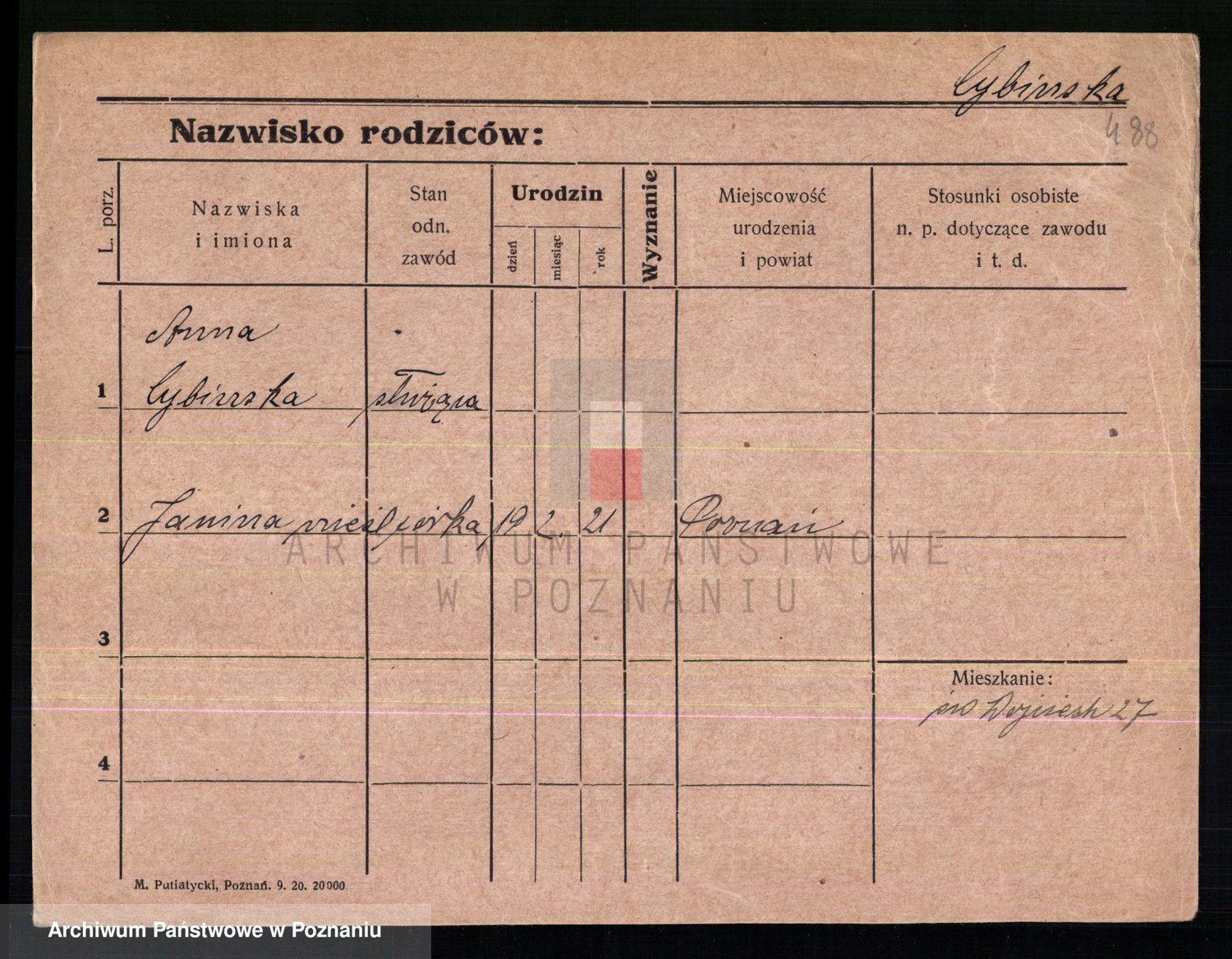 Cwikliński z.d. Przymuszińska, Marja
