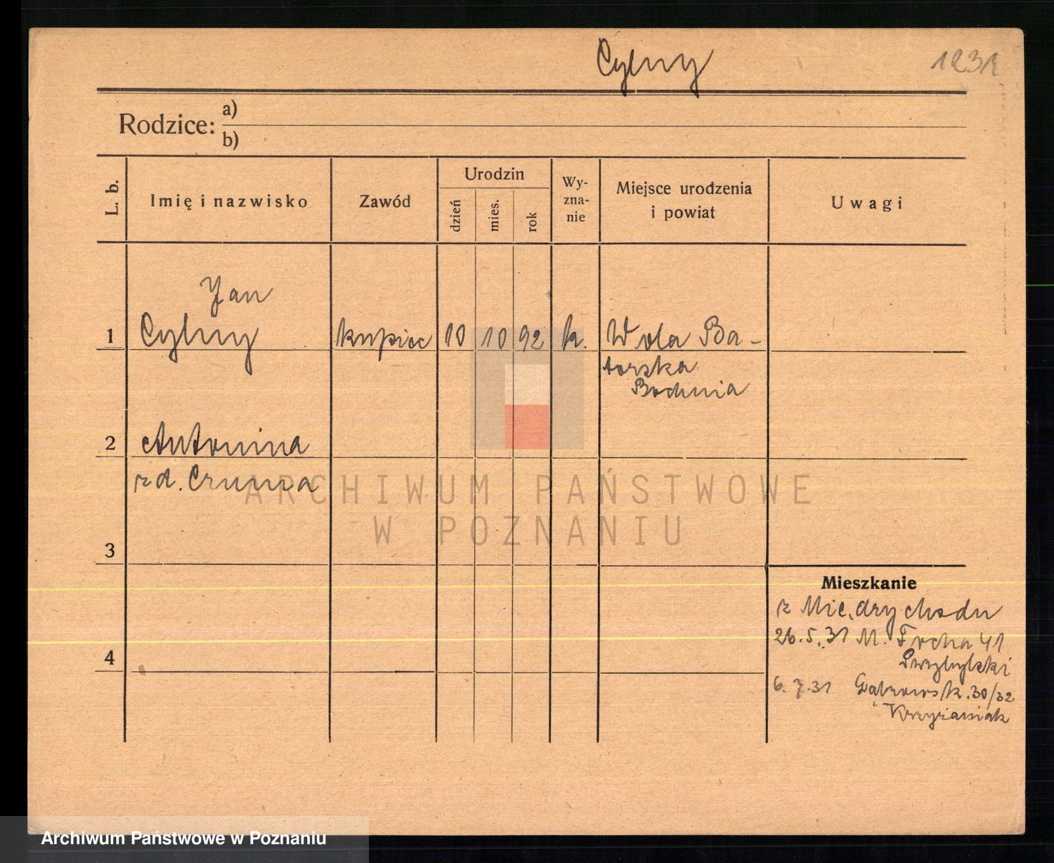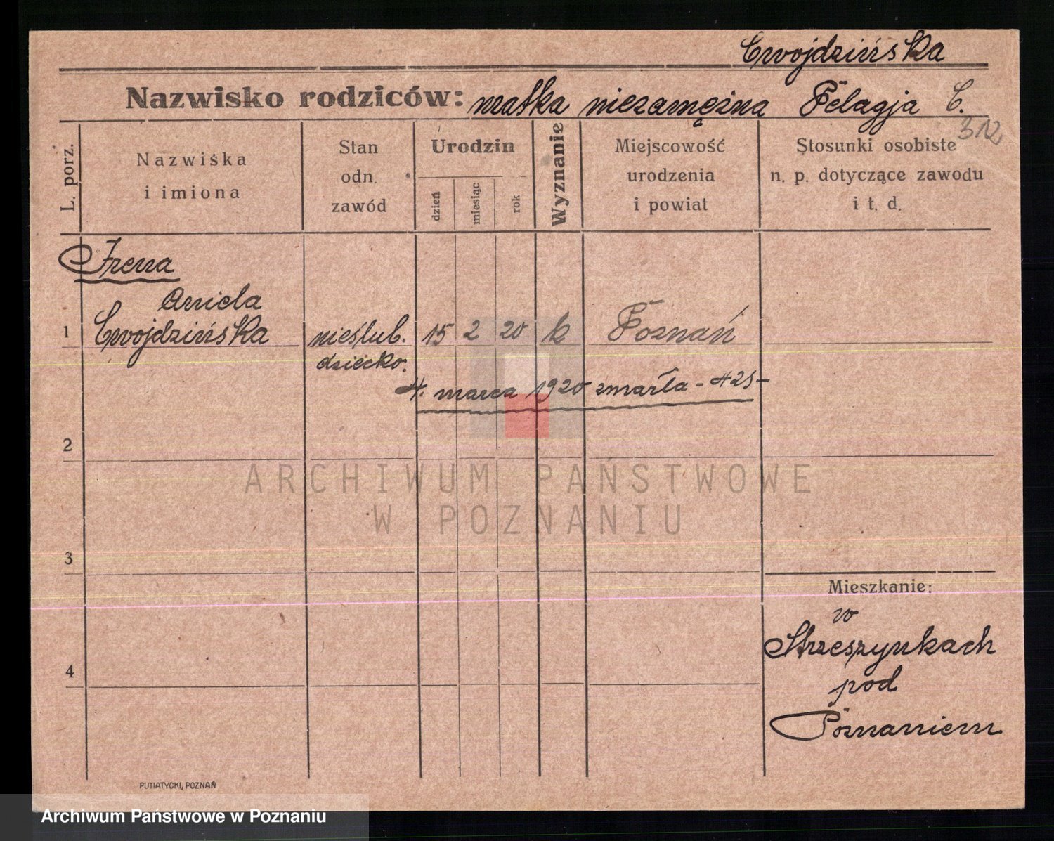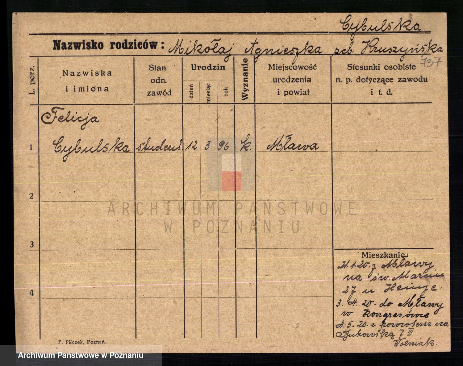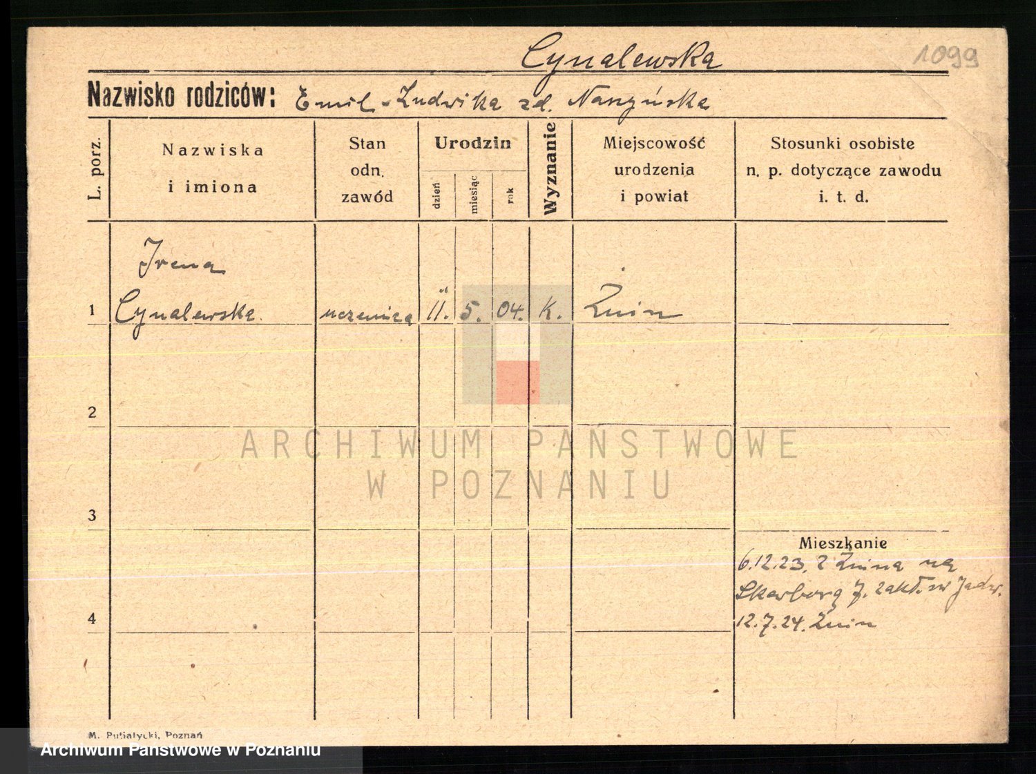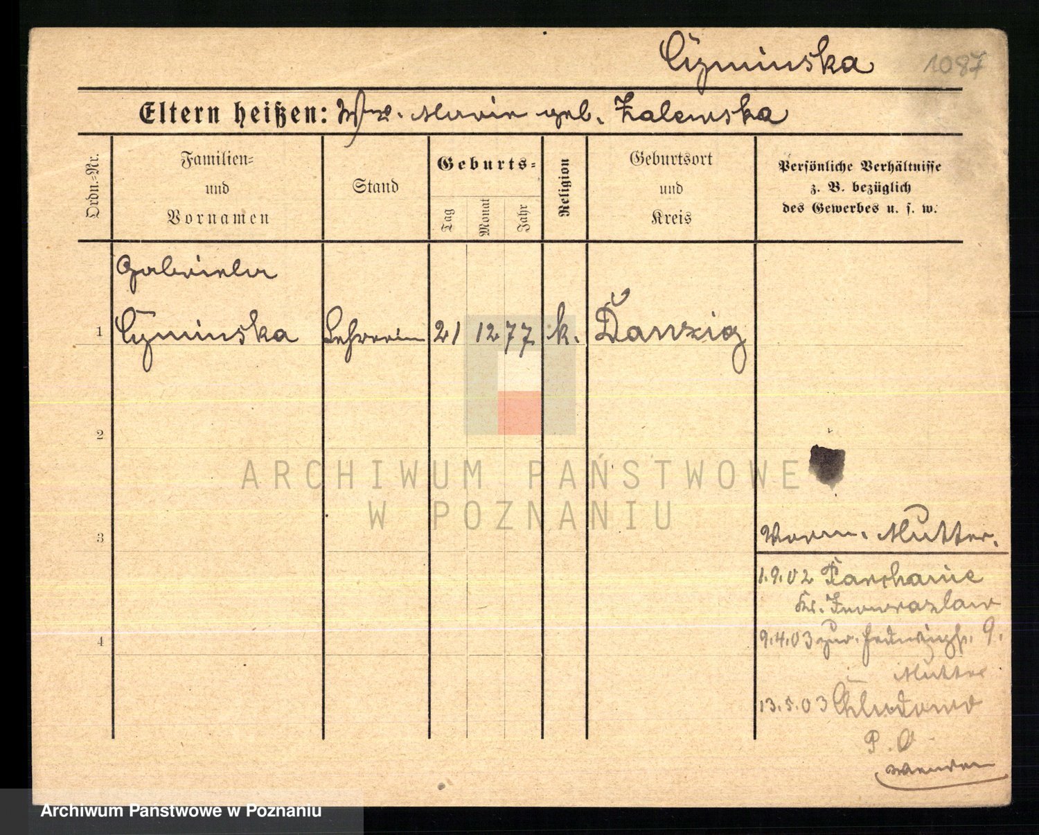 Cwikliński z.d. Przymuszińska, Marja