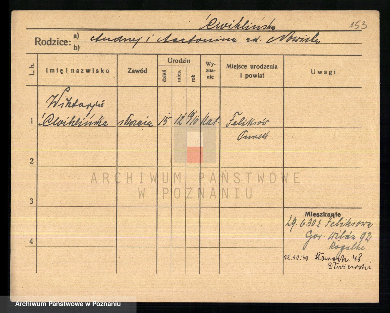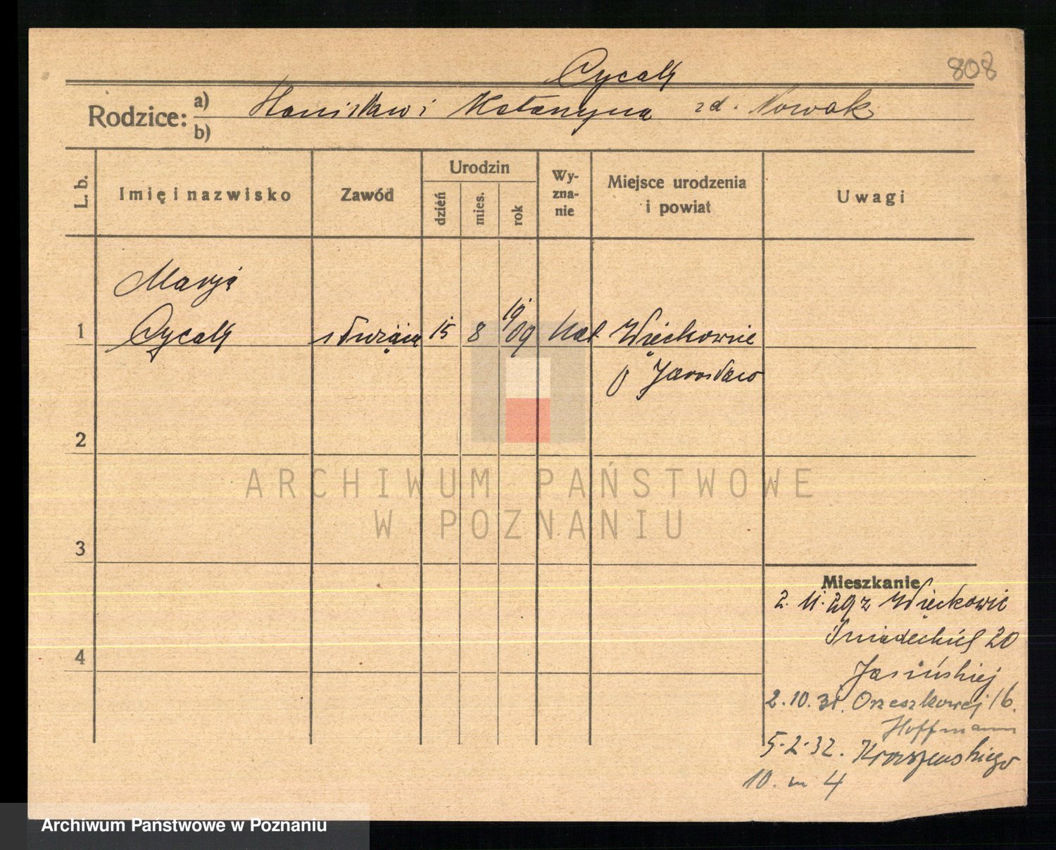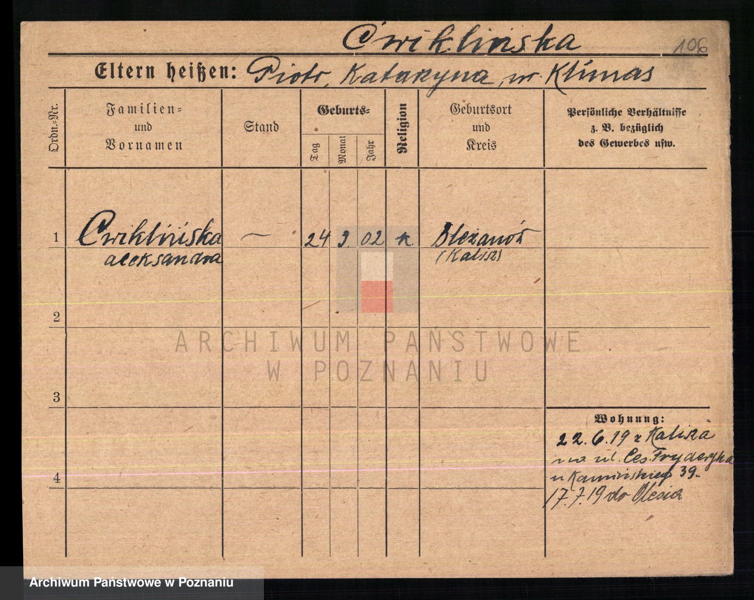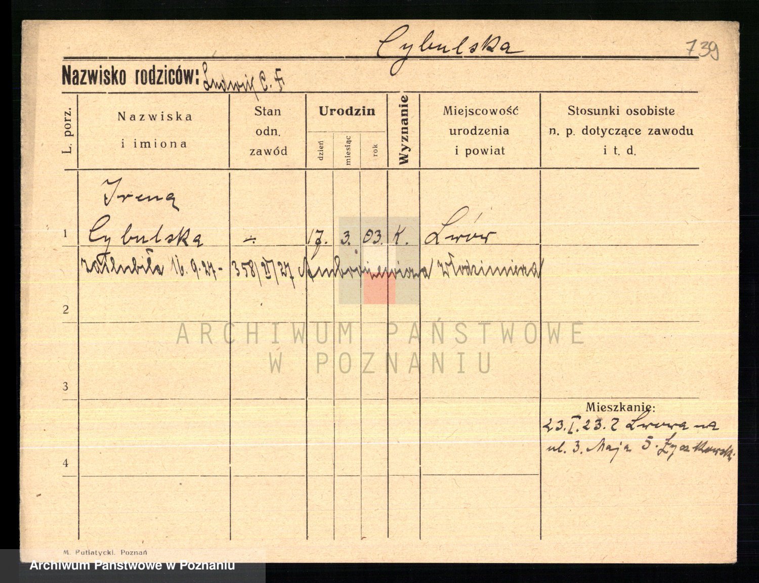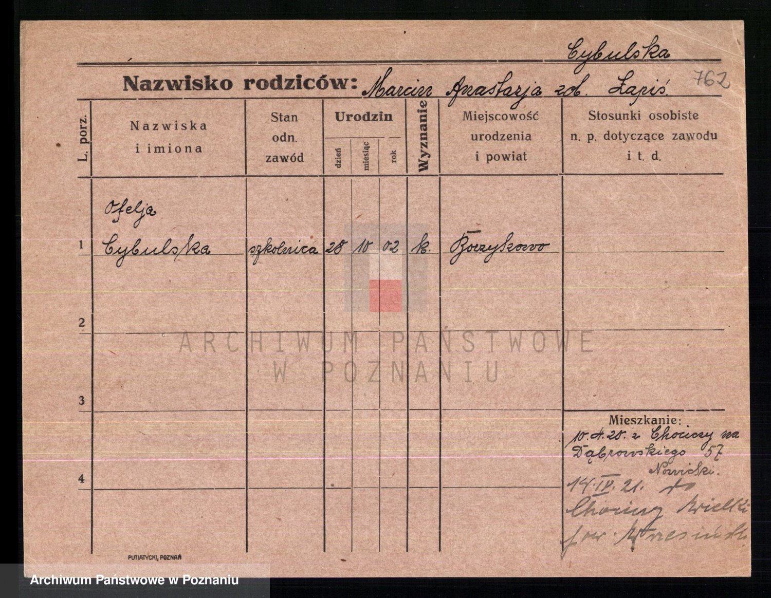 Cwikliński z.d. Przymuszińska, Marja
