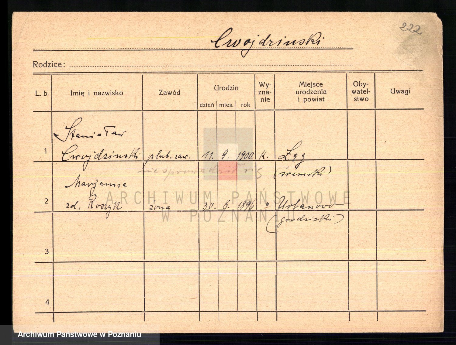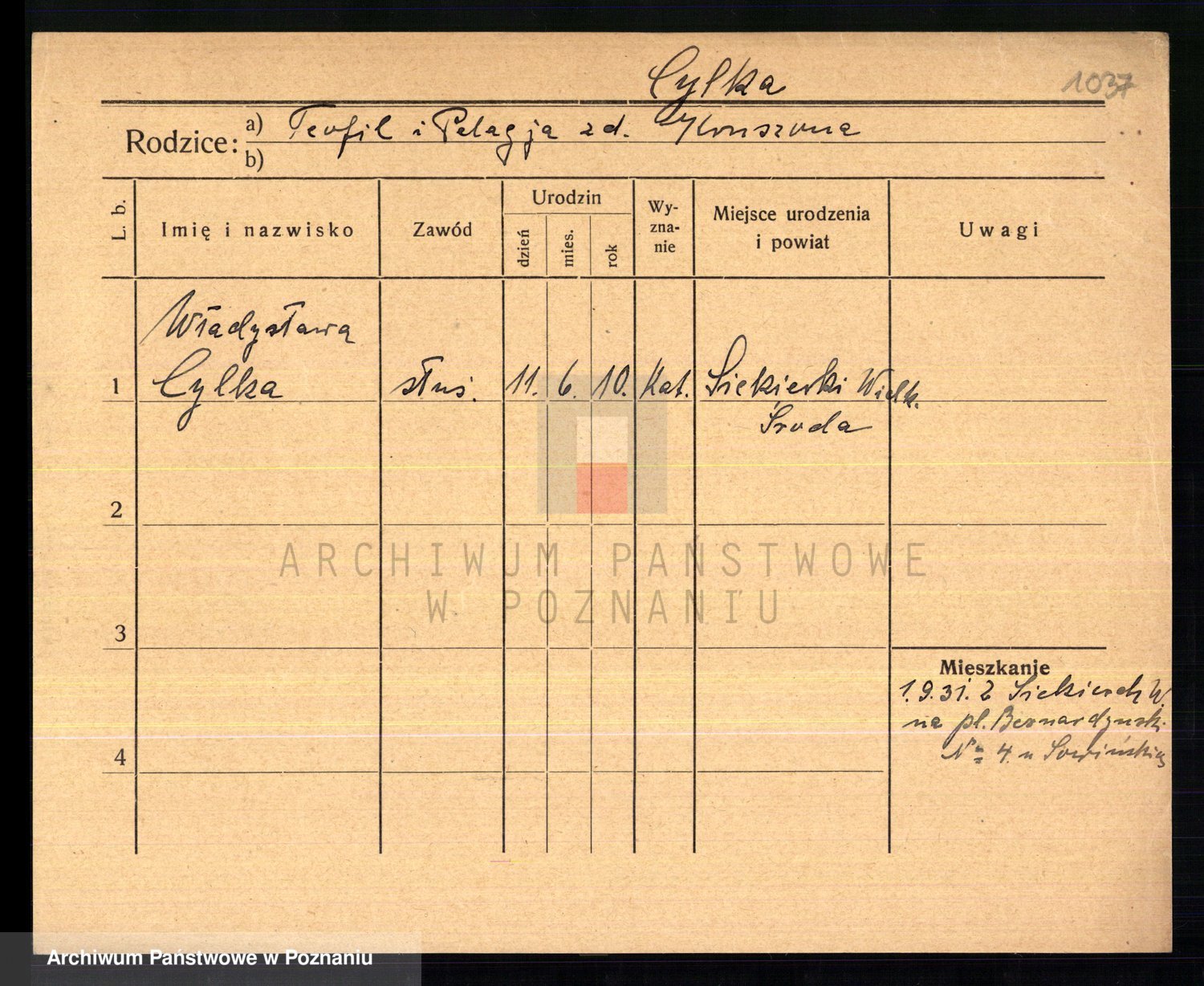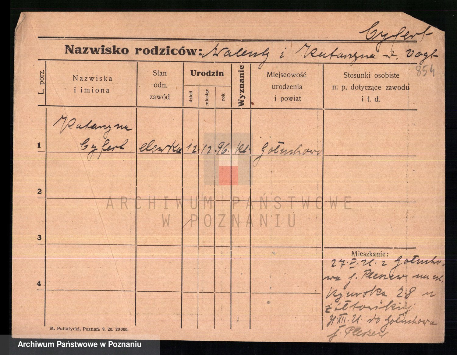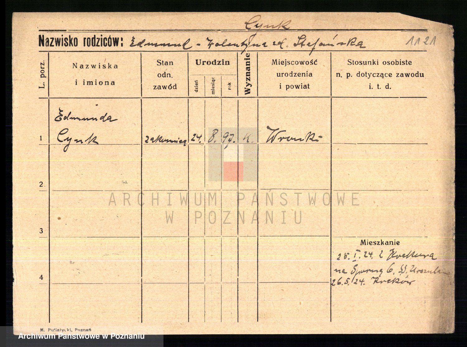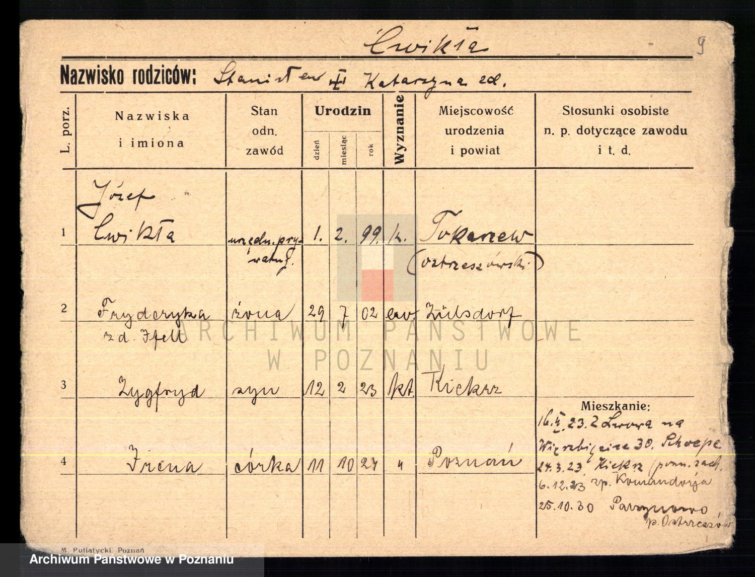 Cwikliński z.d. Przymuszińska, Marja