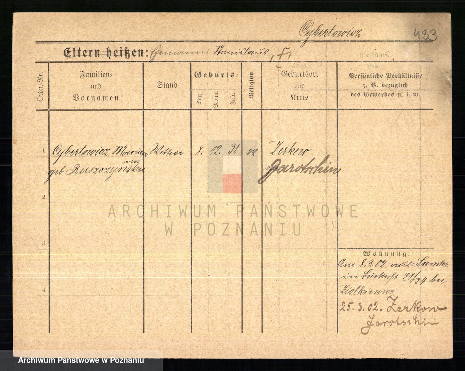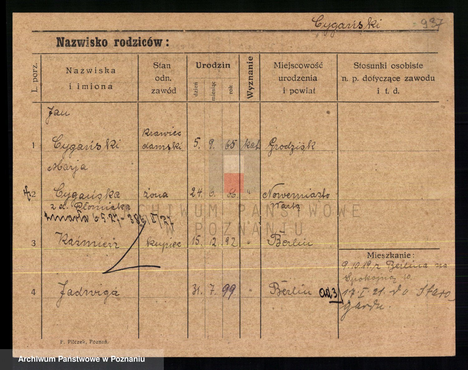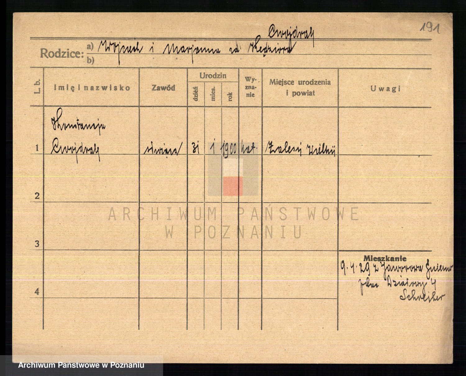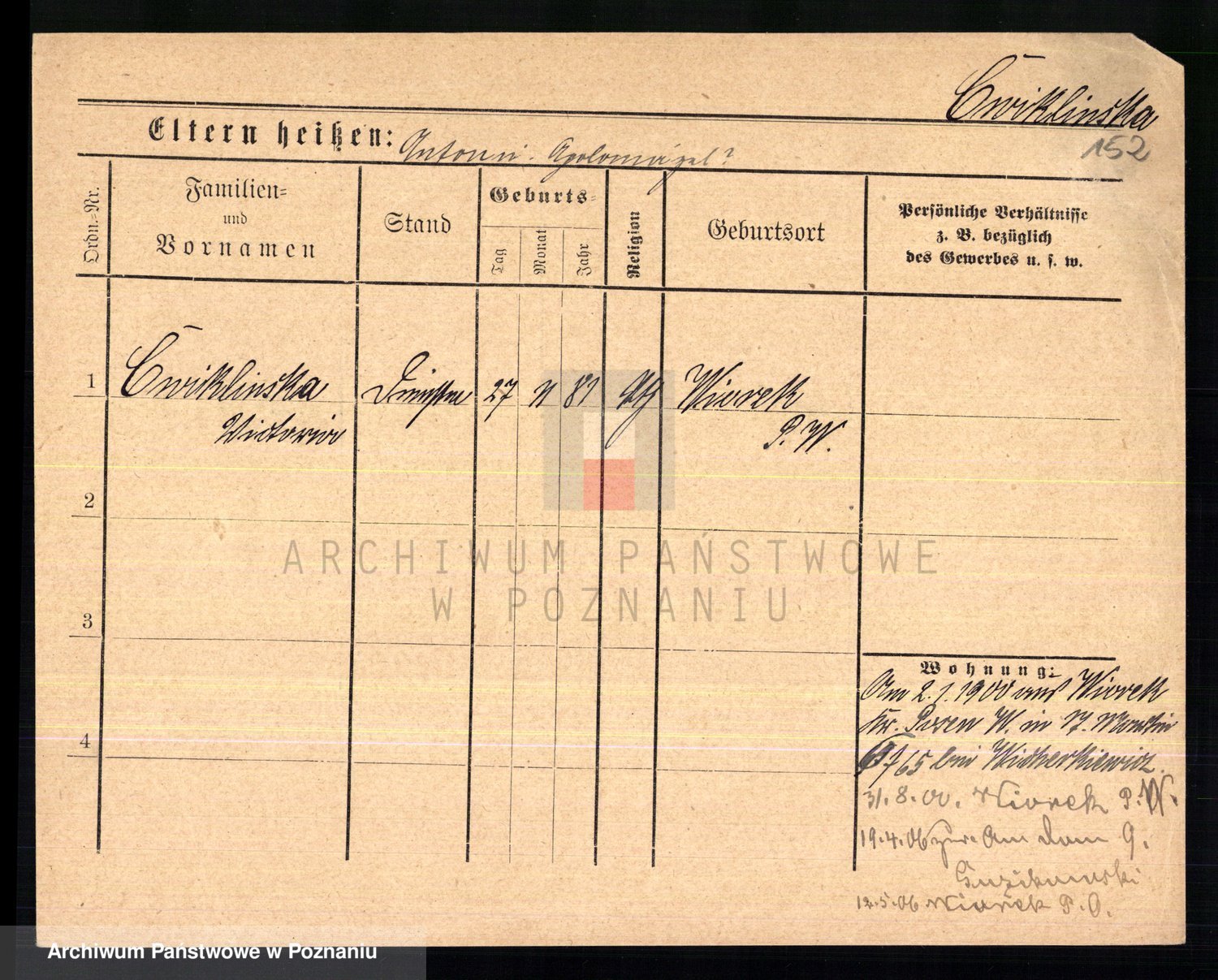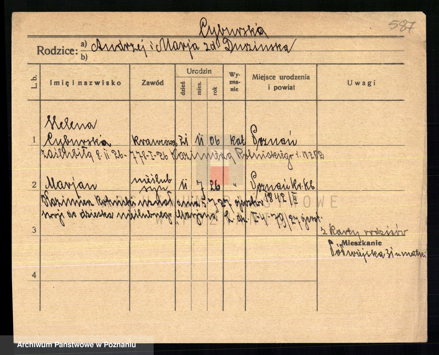 Cwikliński z.d. Przymuszińska, Marja