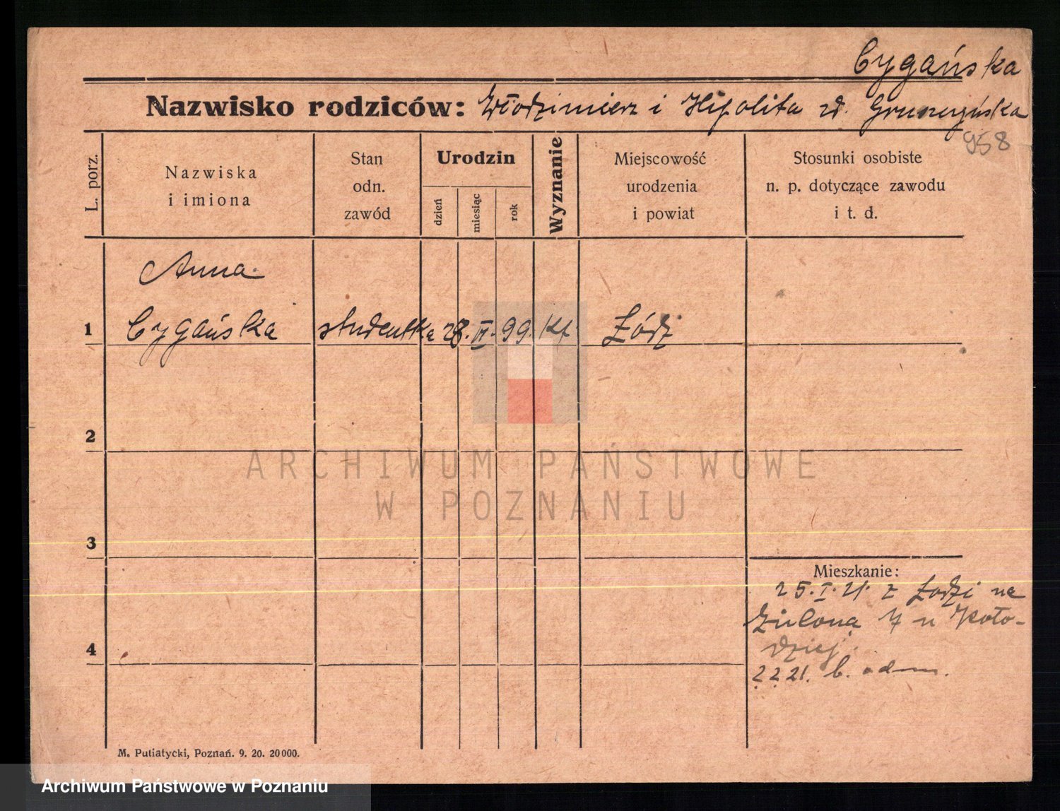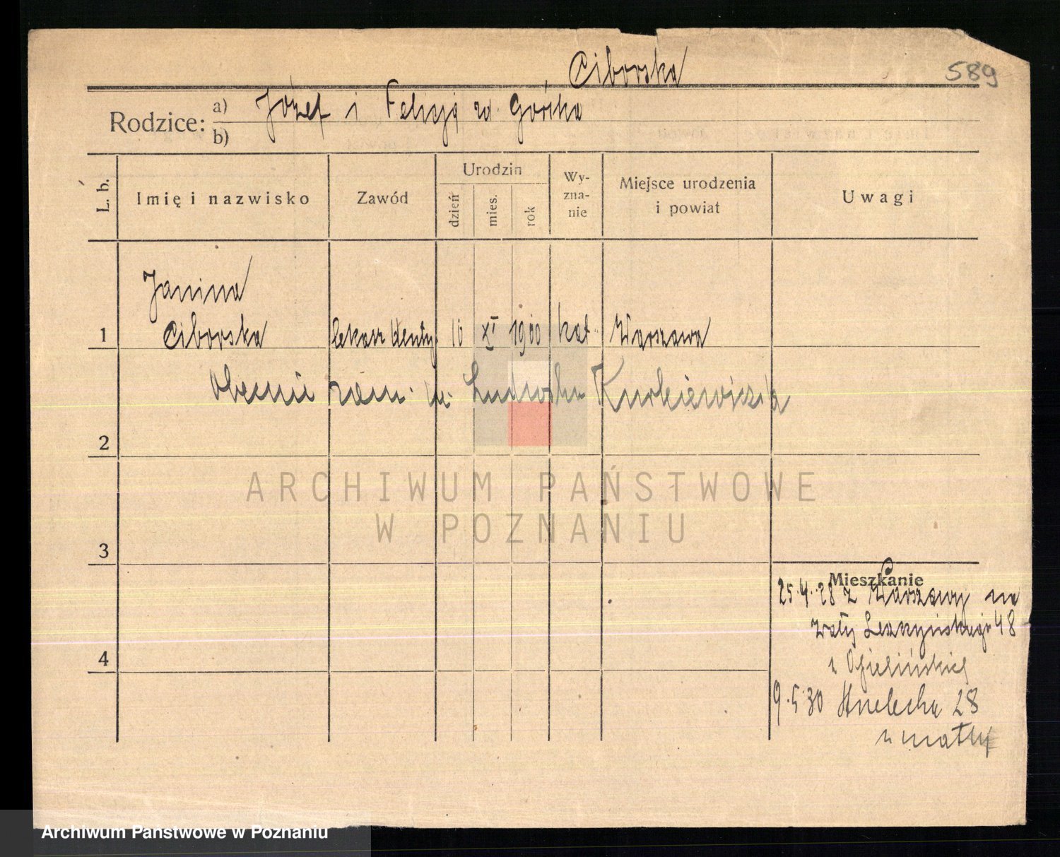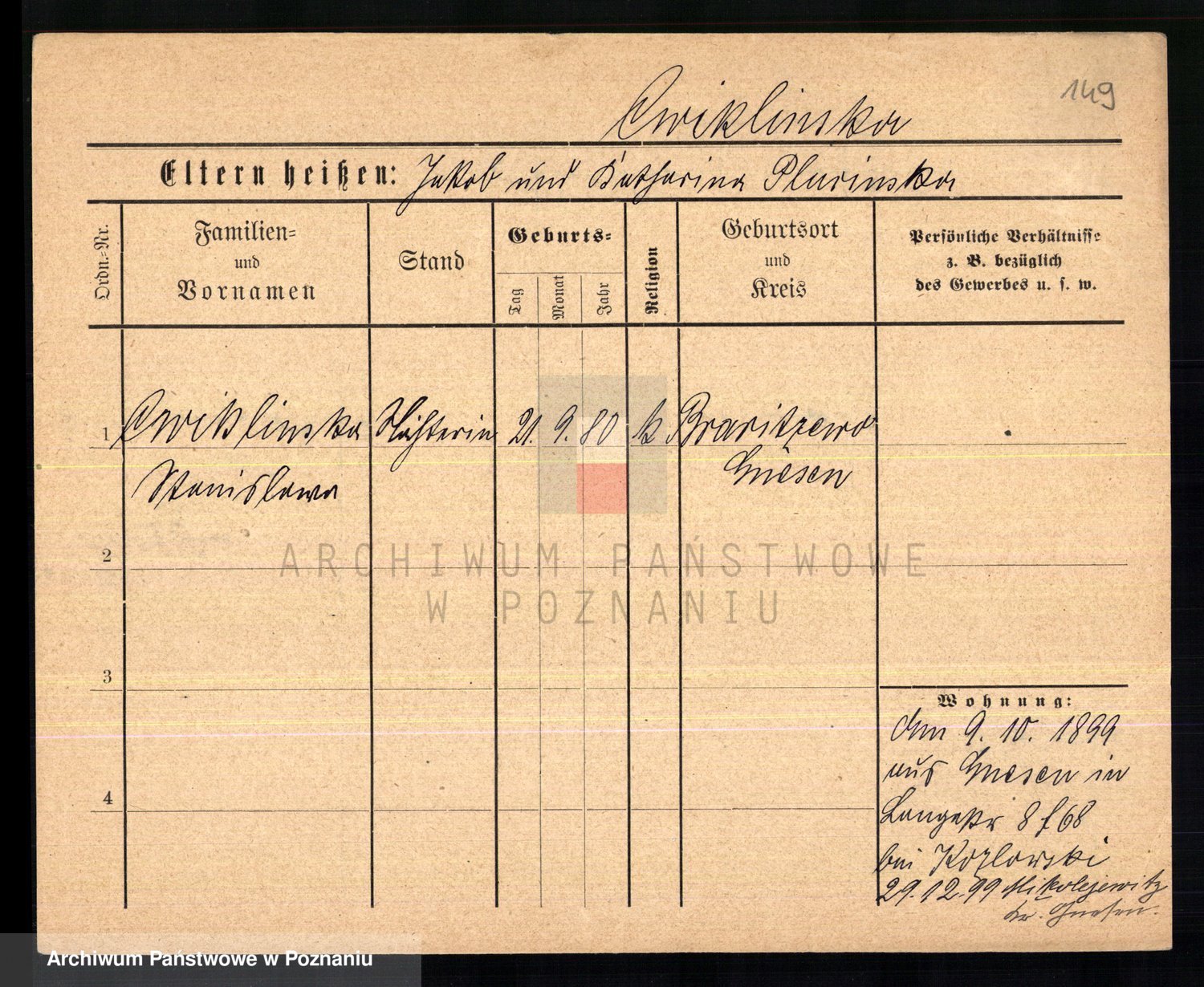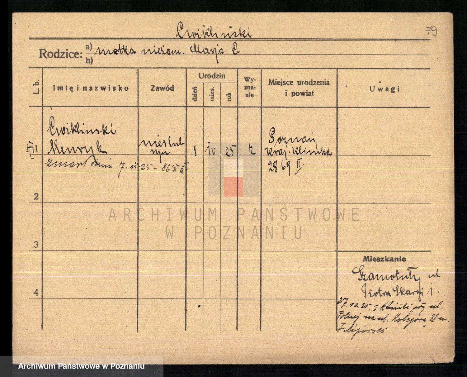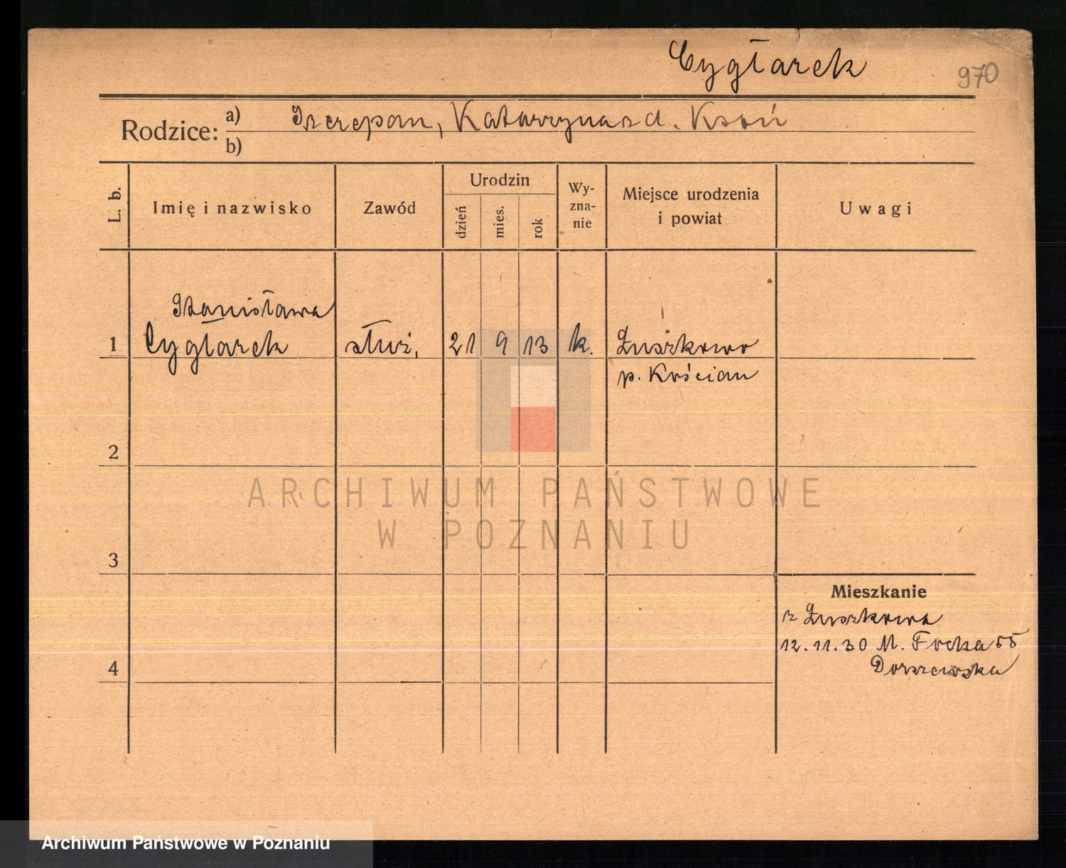 Cwikliński z.d. Przymuszińska, Marja
