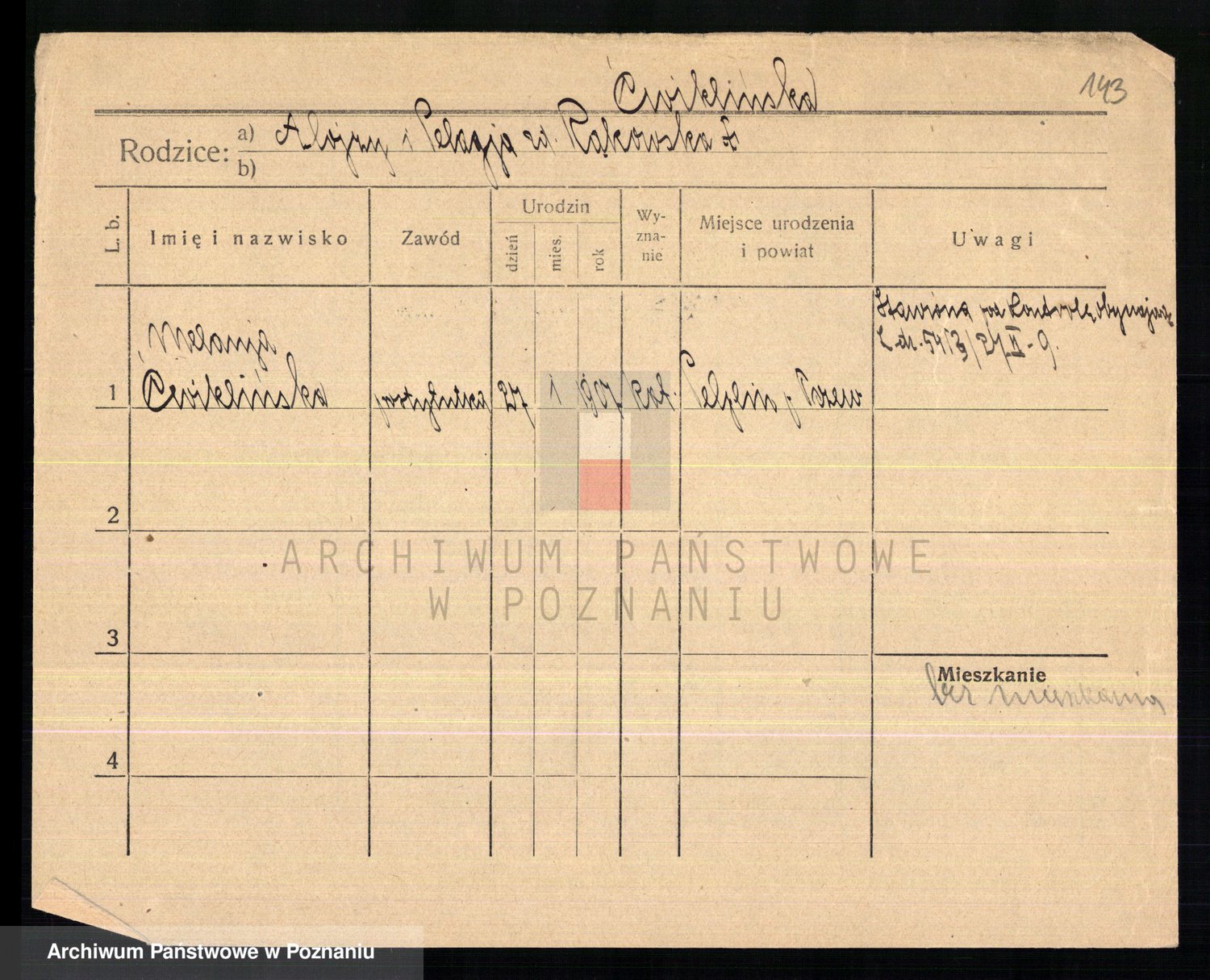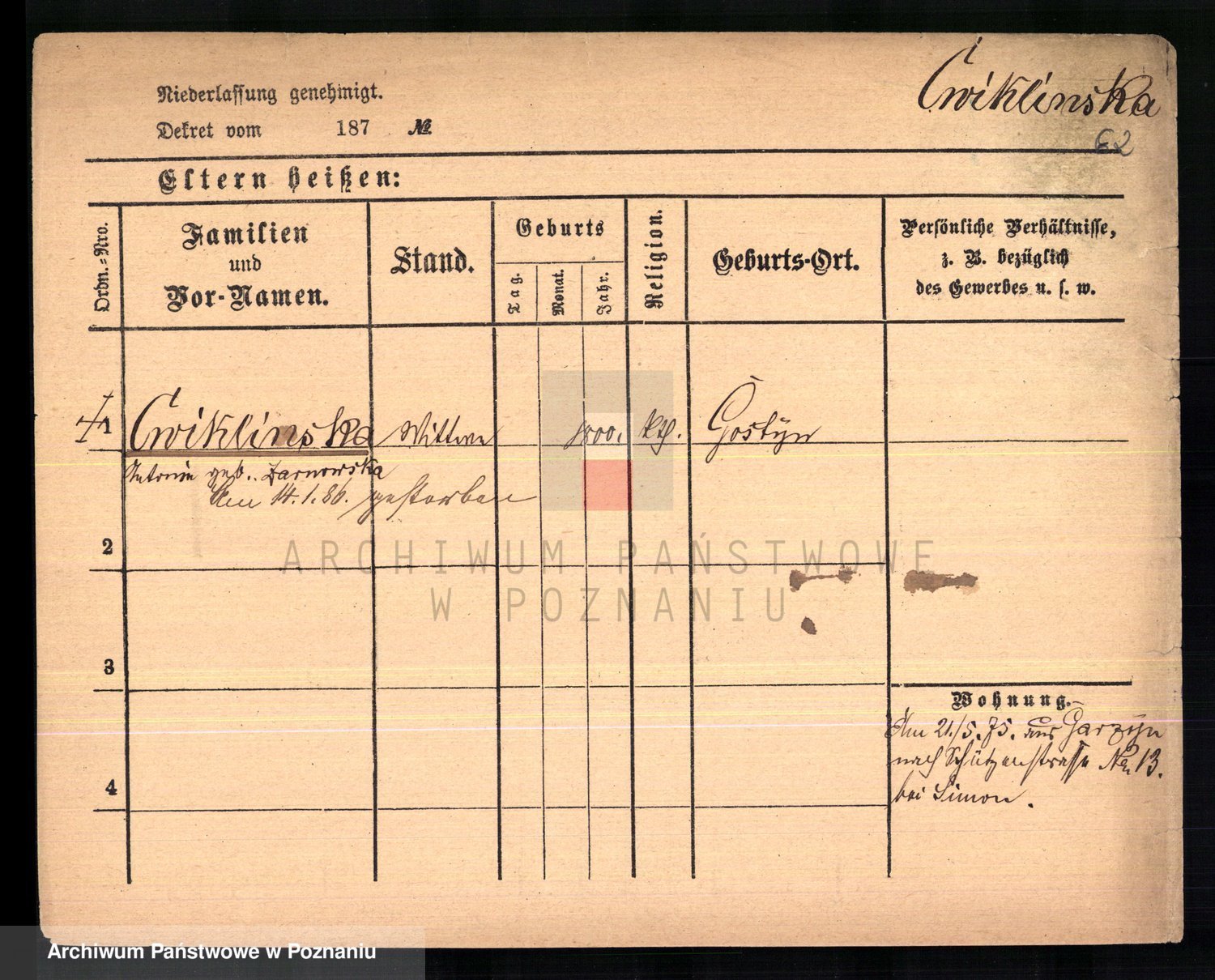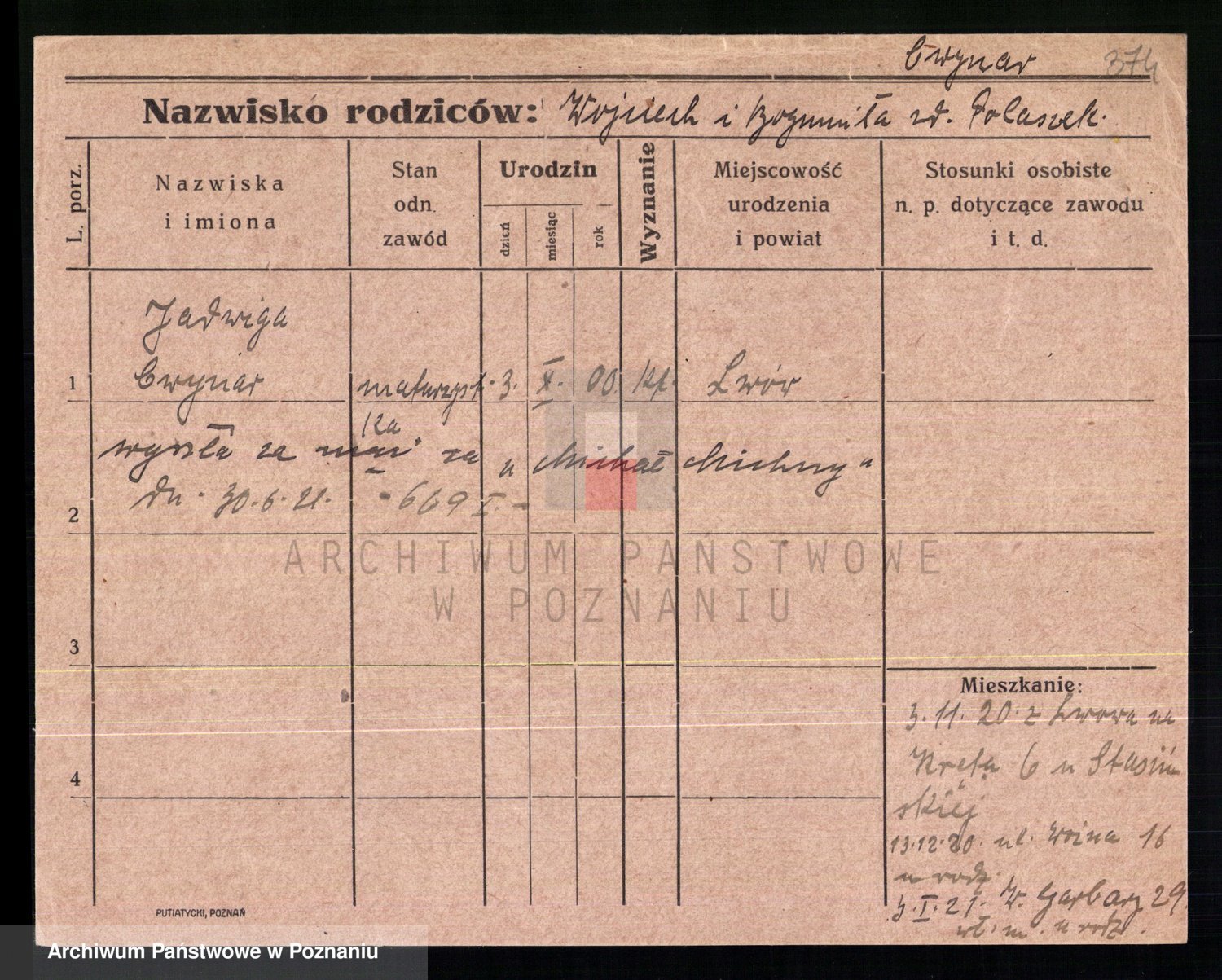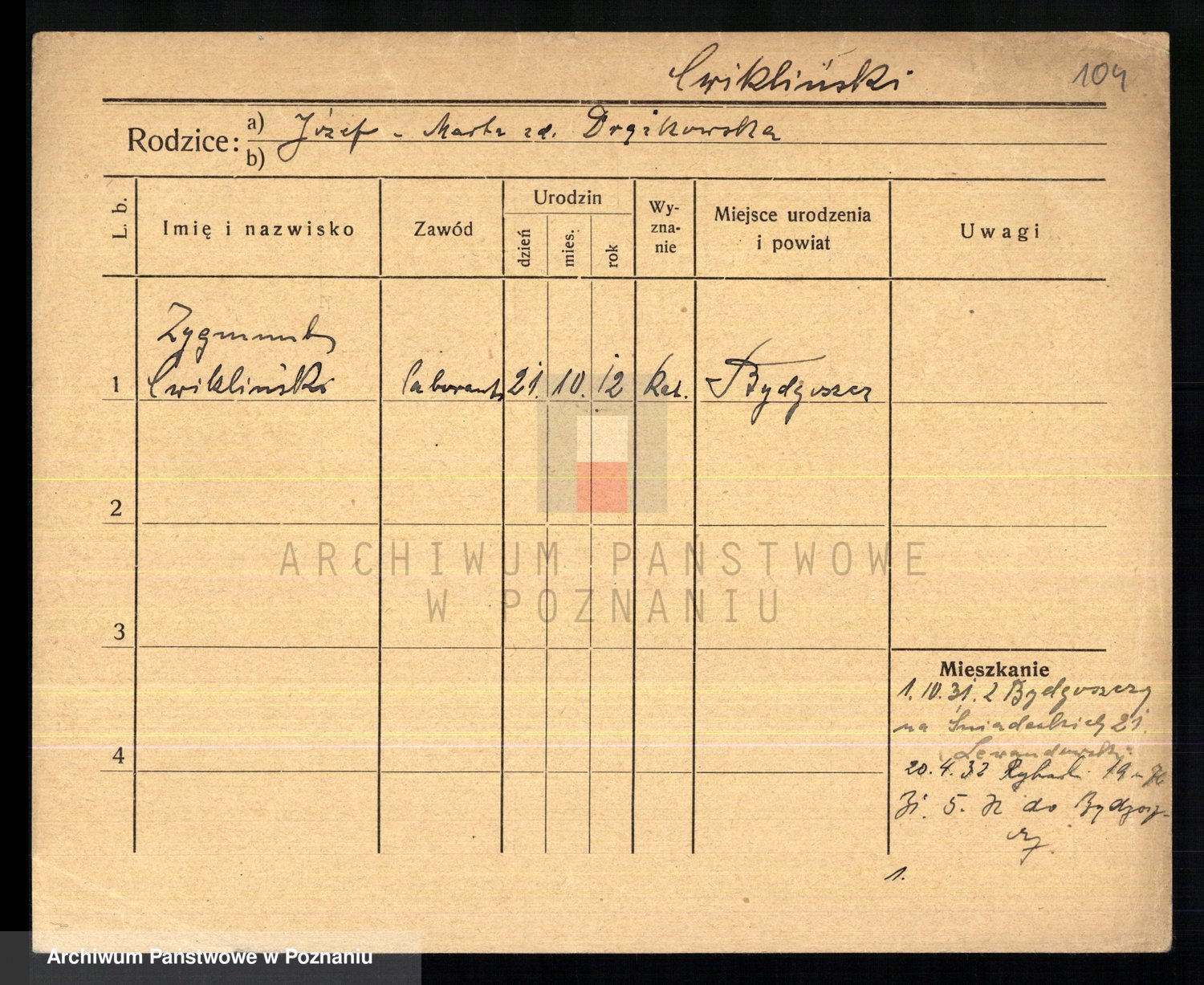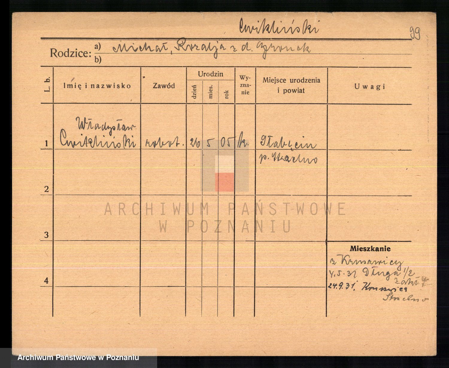 Cwikliński z.d. Przymuszińska, Marja