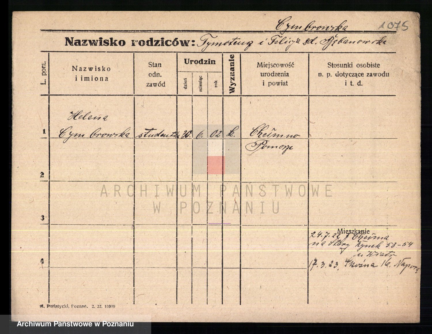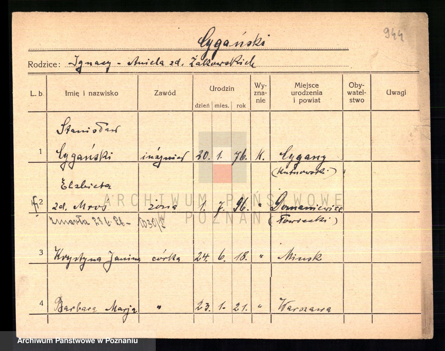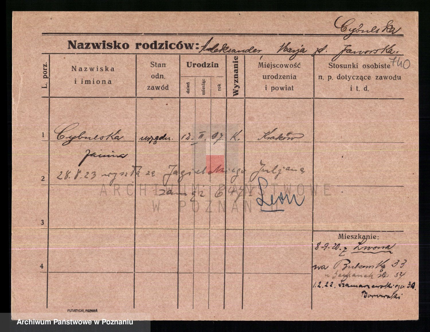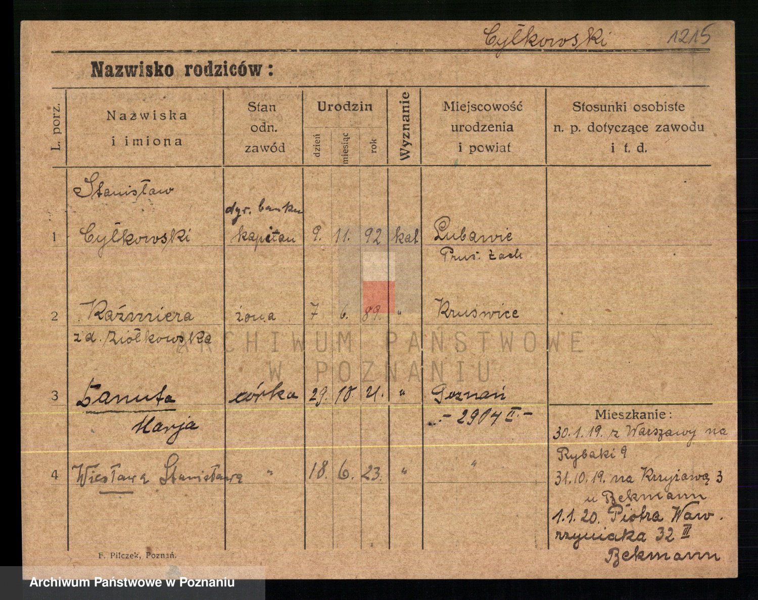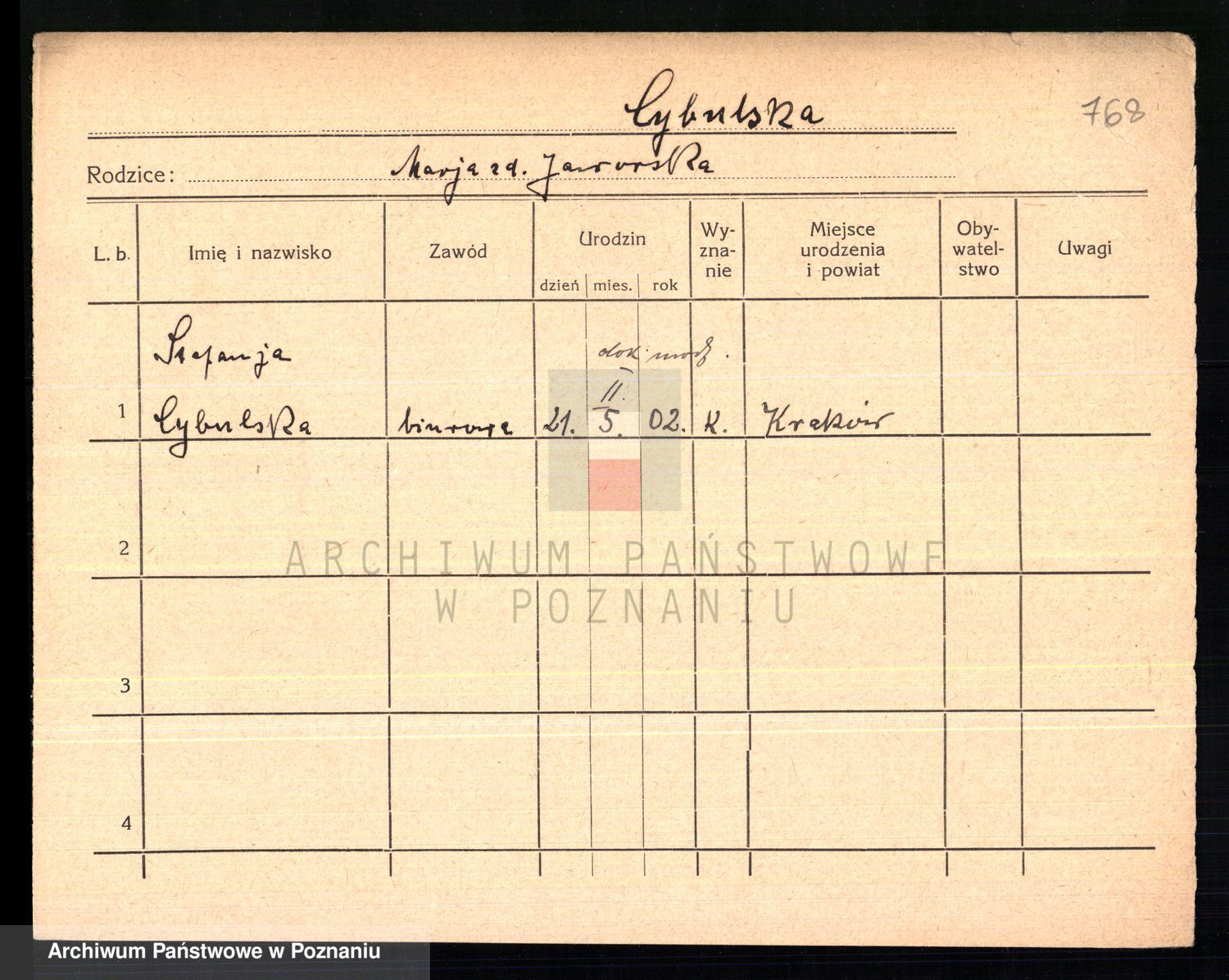 Cwikliński z.d. Przymuszińska, Marja
