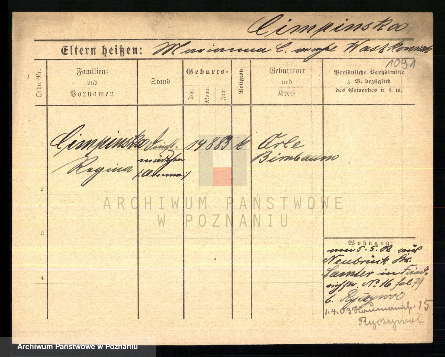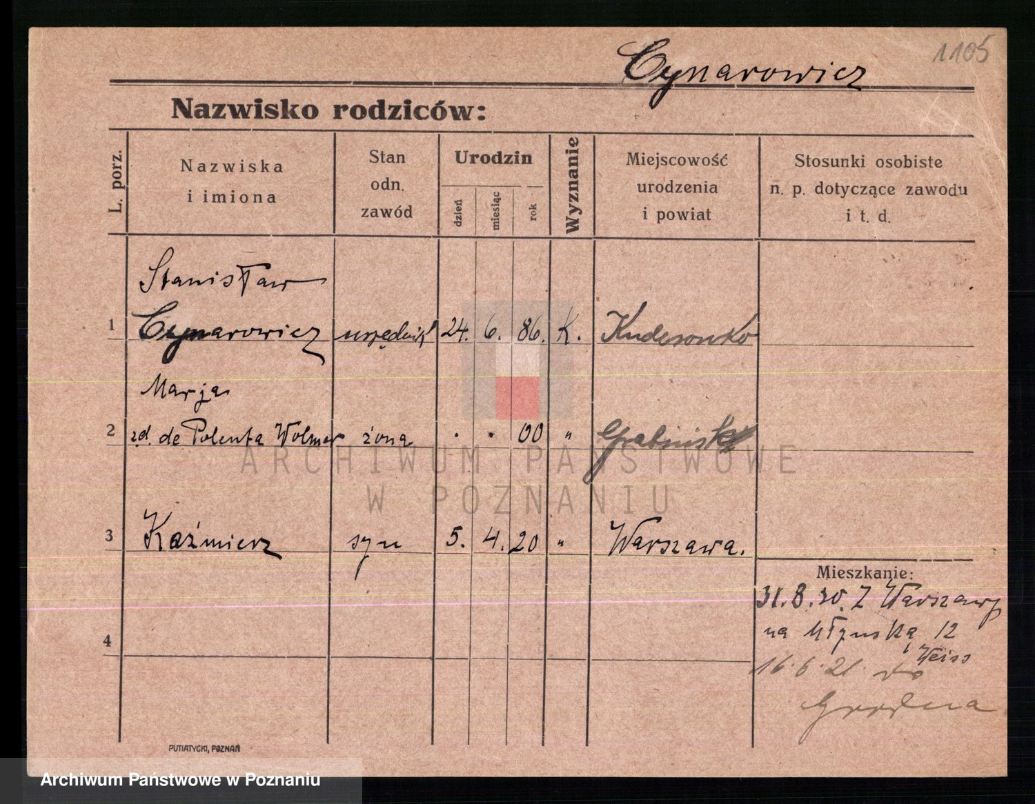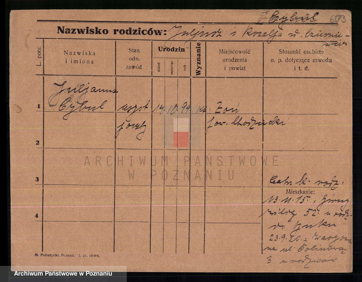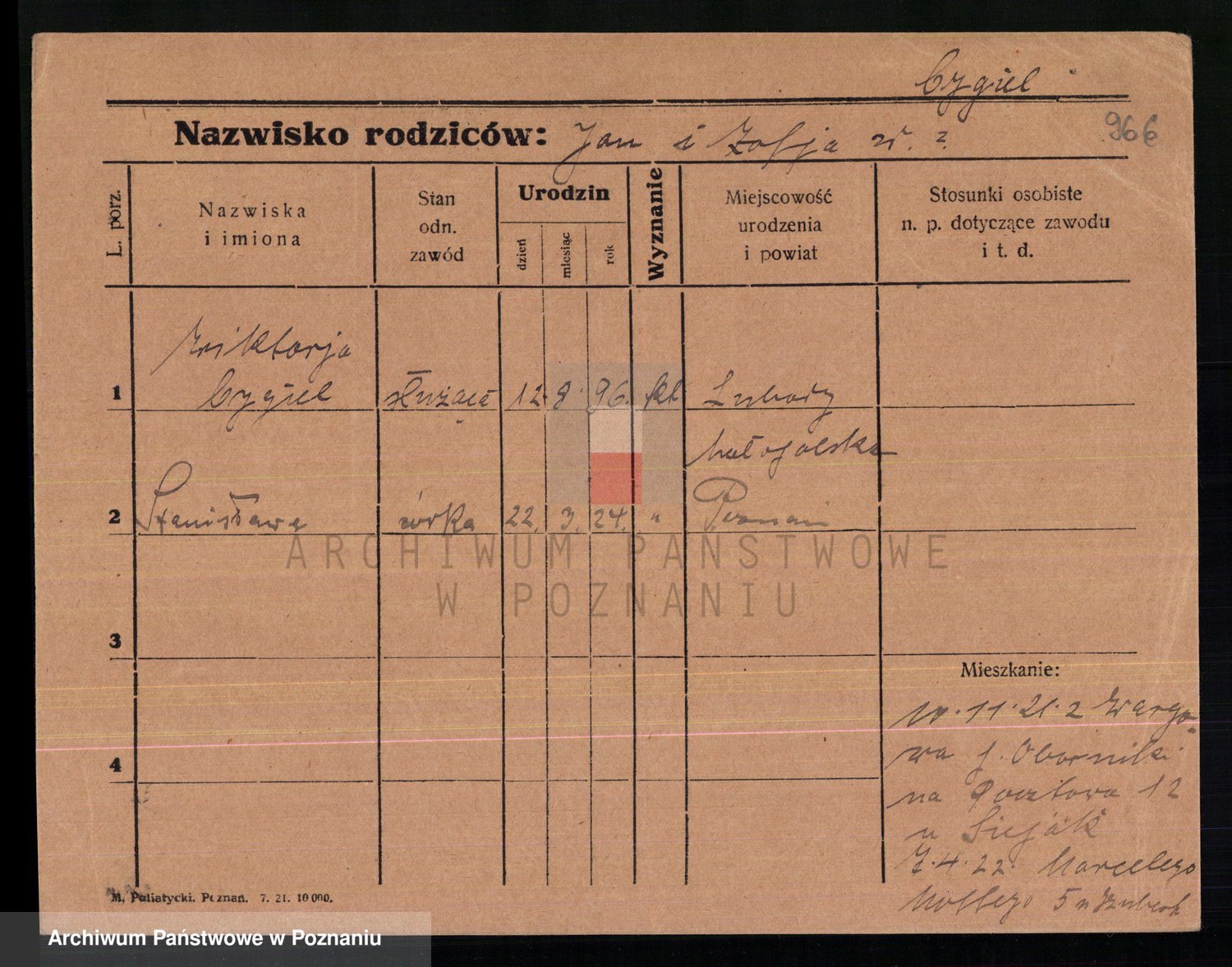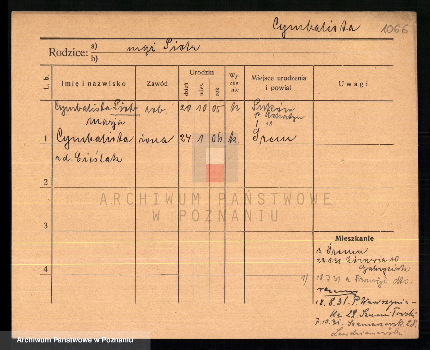 Cwikliński z.d. Przymuszińska, Marja