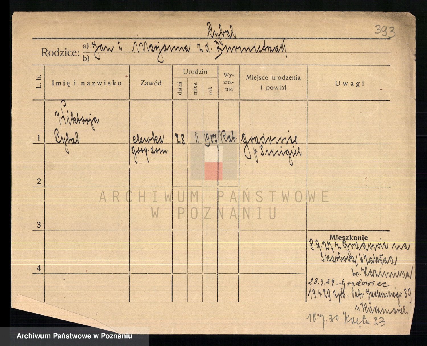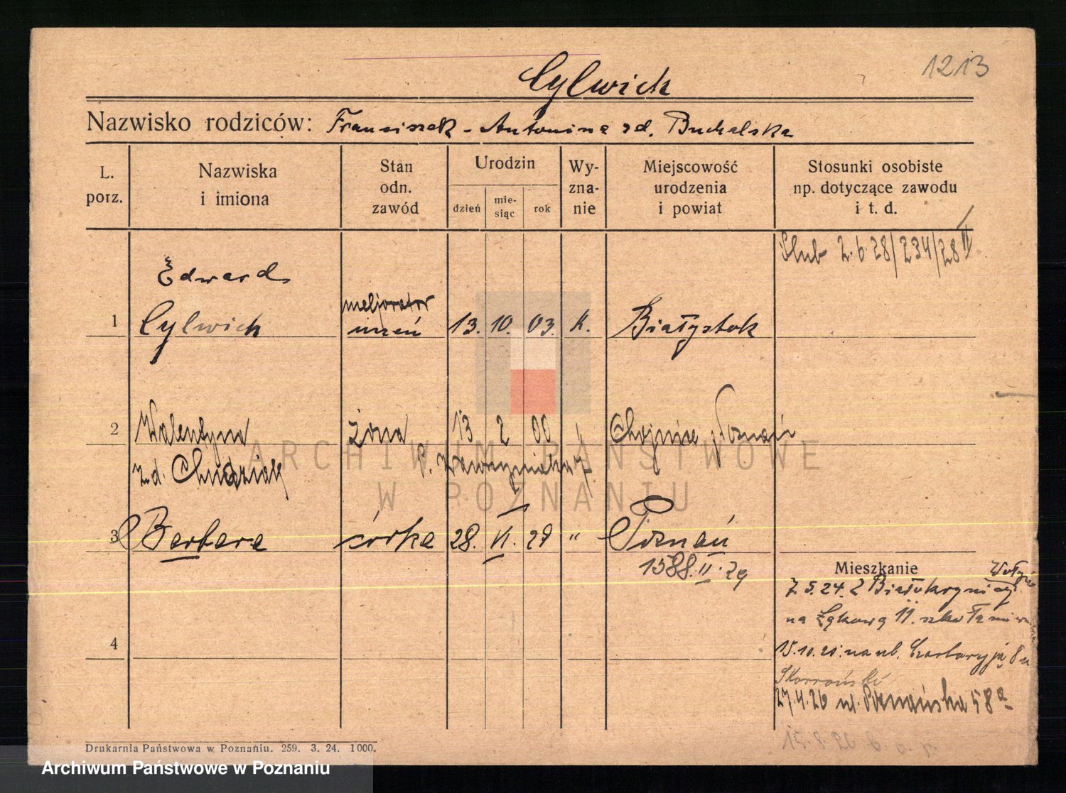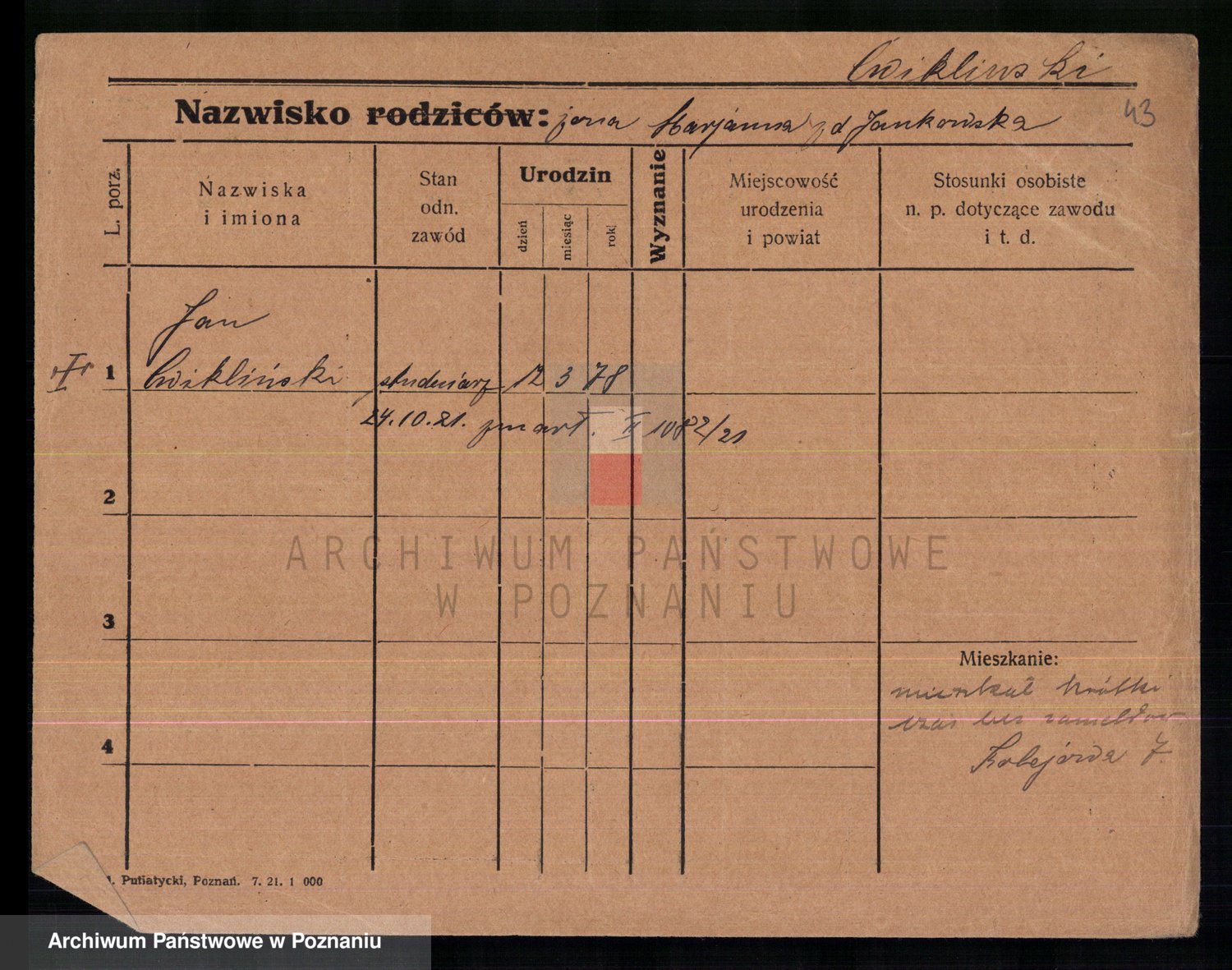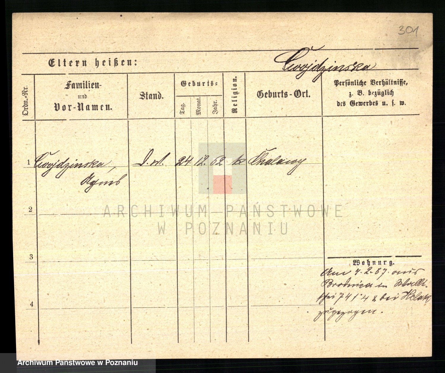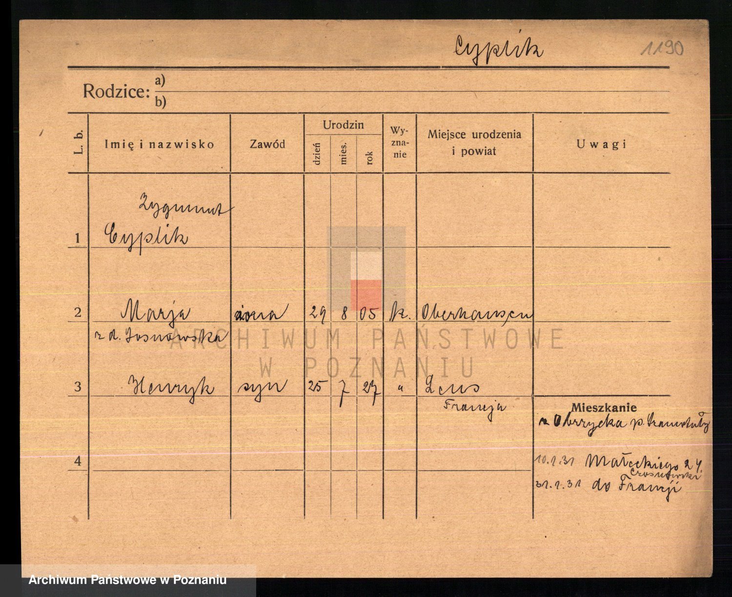 Cwikliński z.d. Przymuszińska, Marja