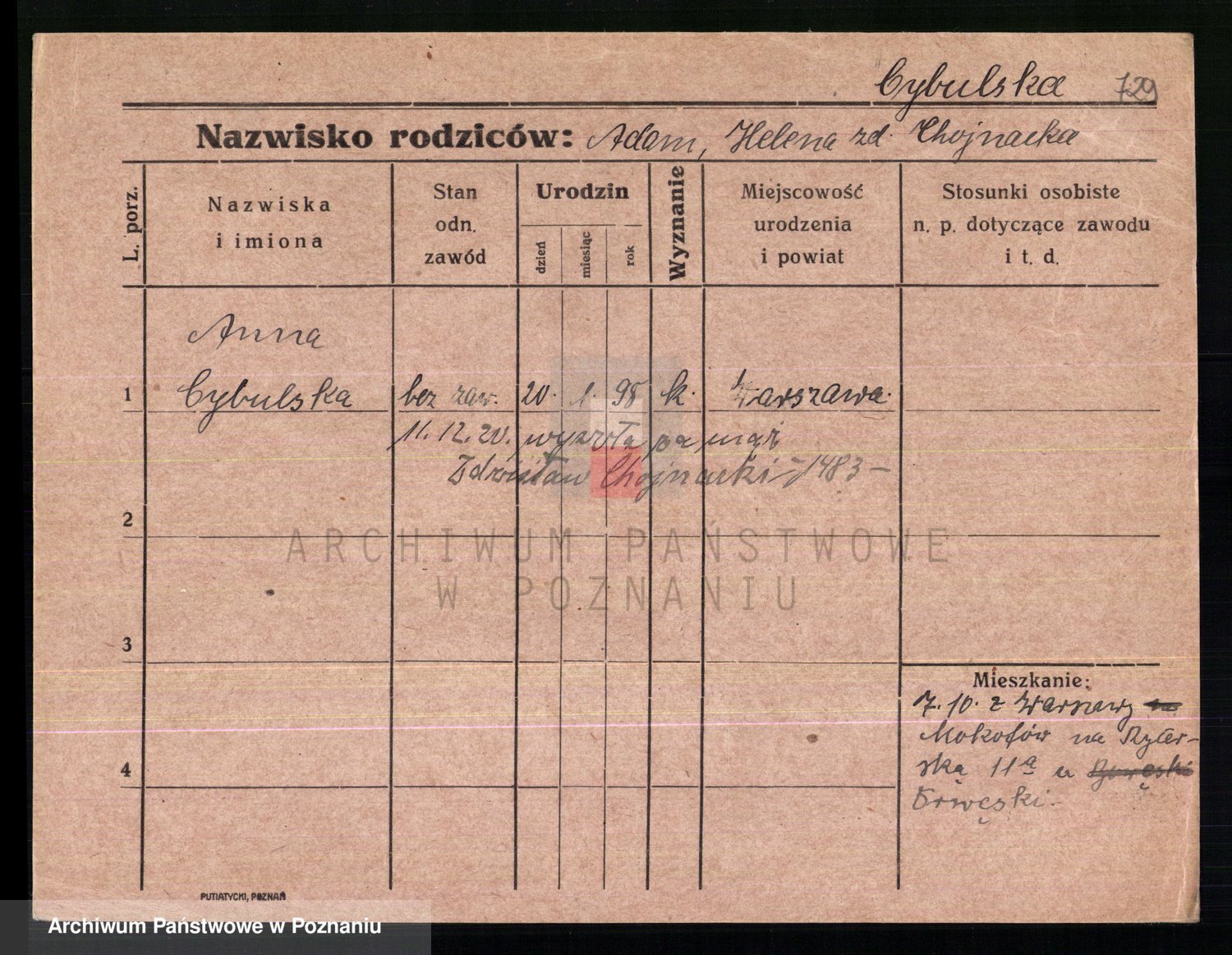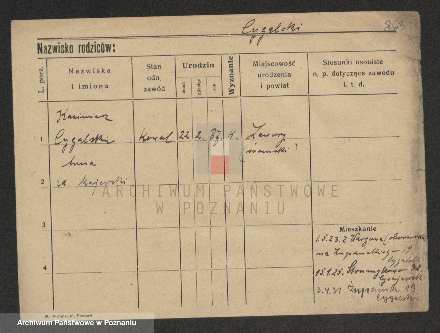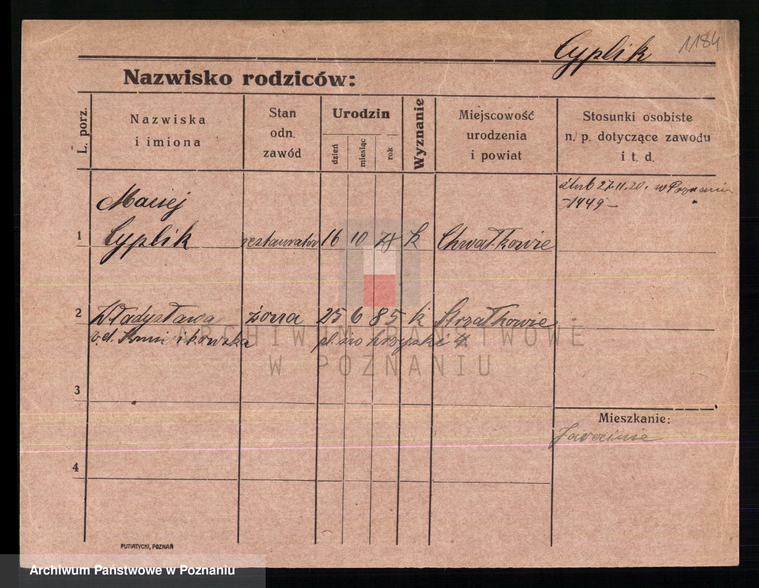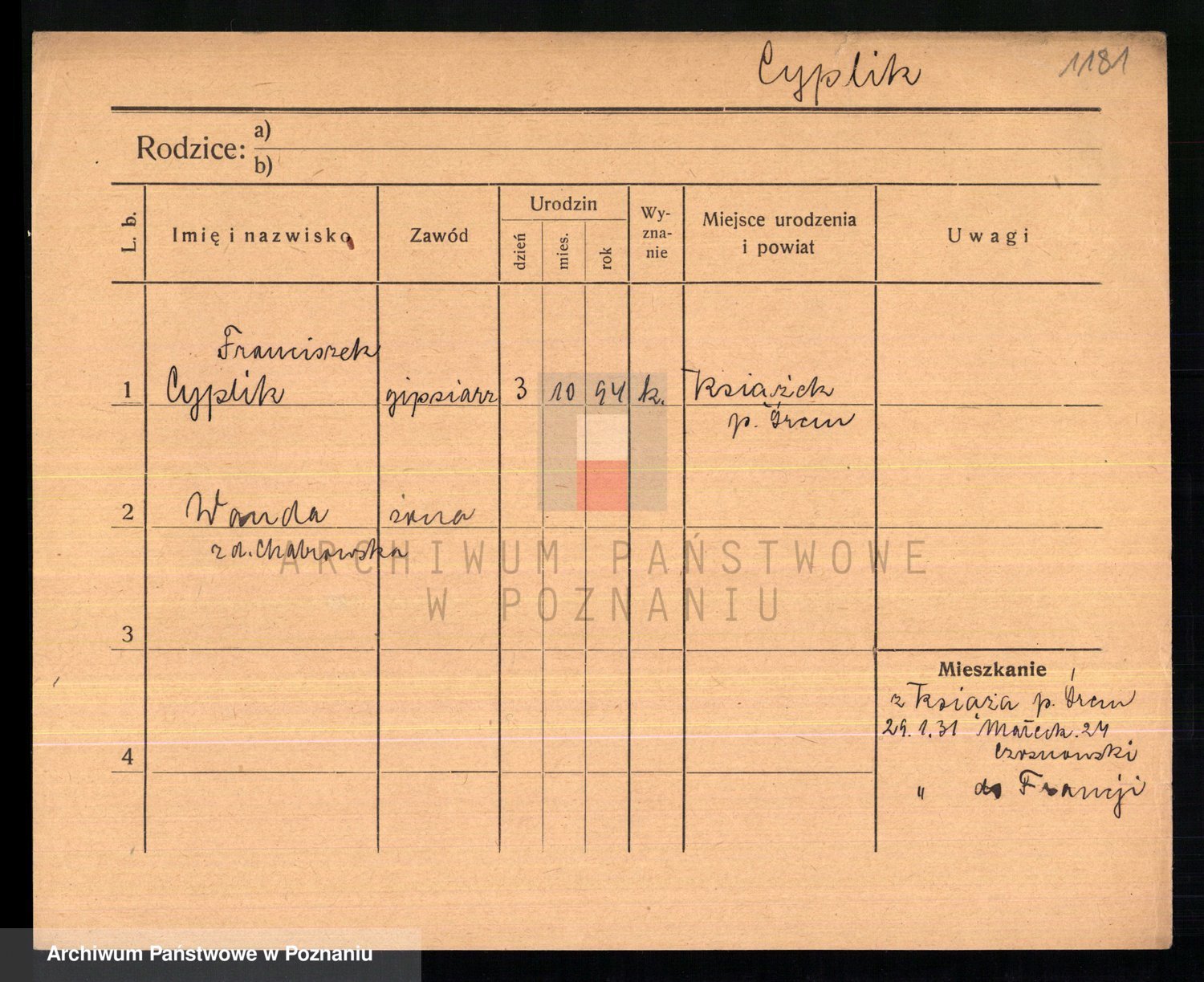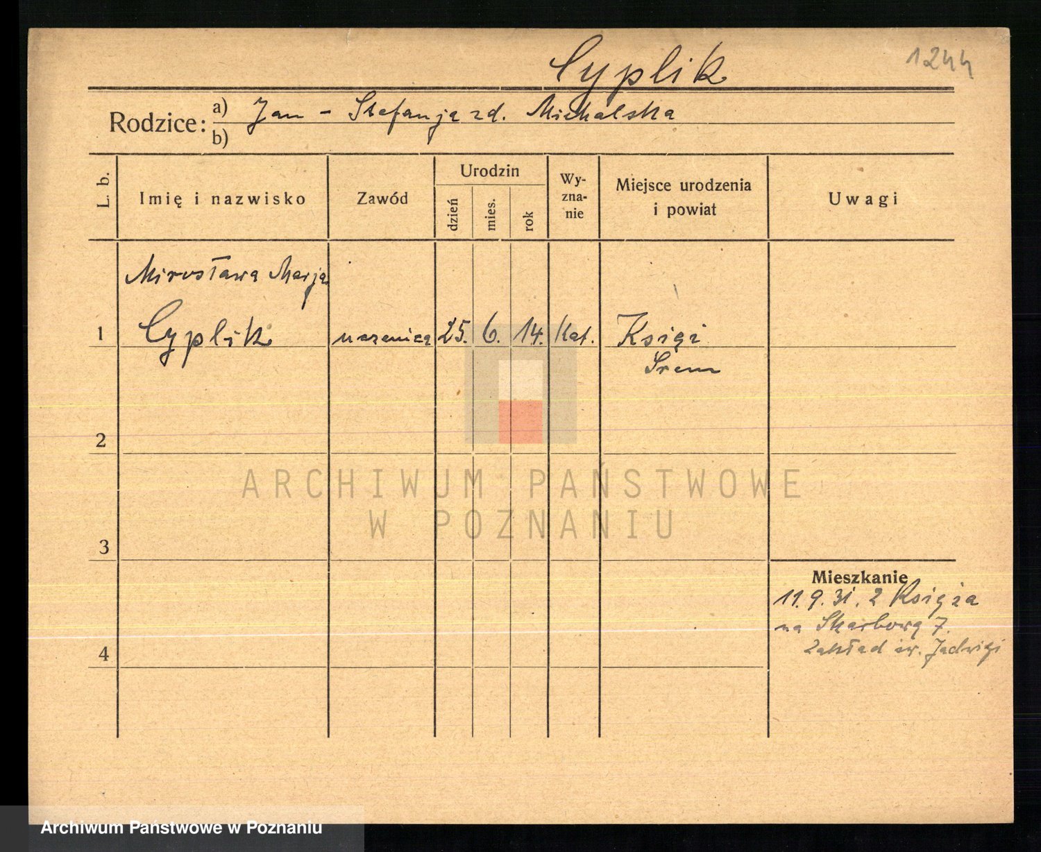 Cwikliński z.d. Przymuszińska, Marja