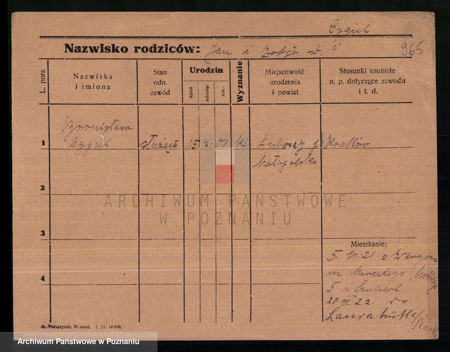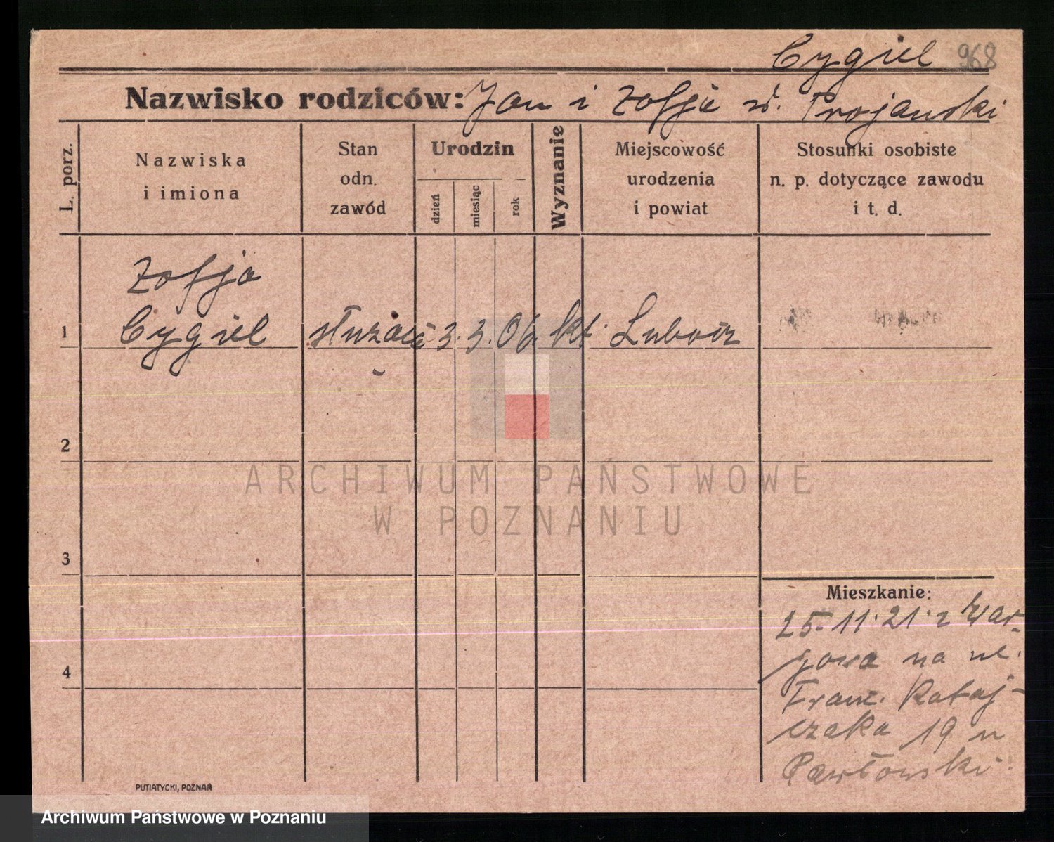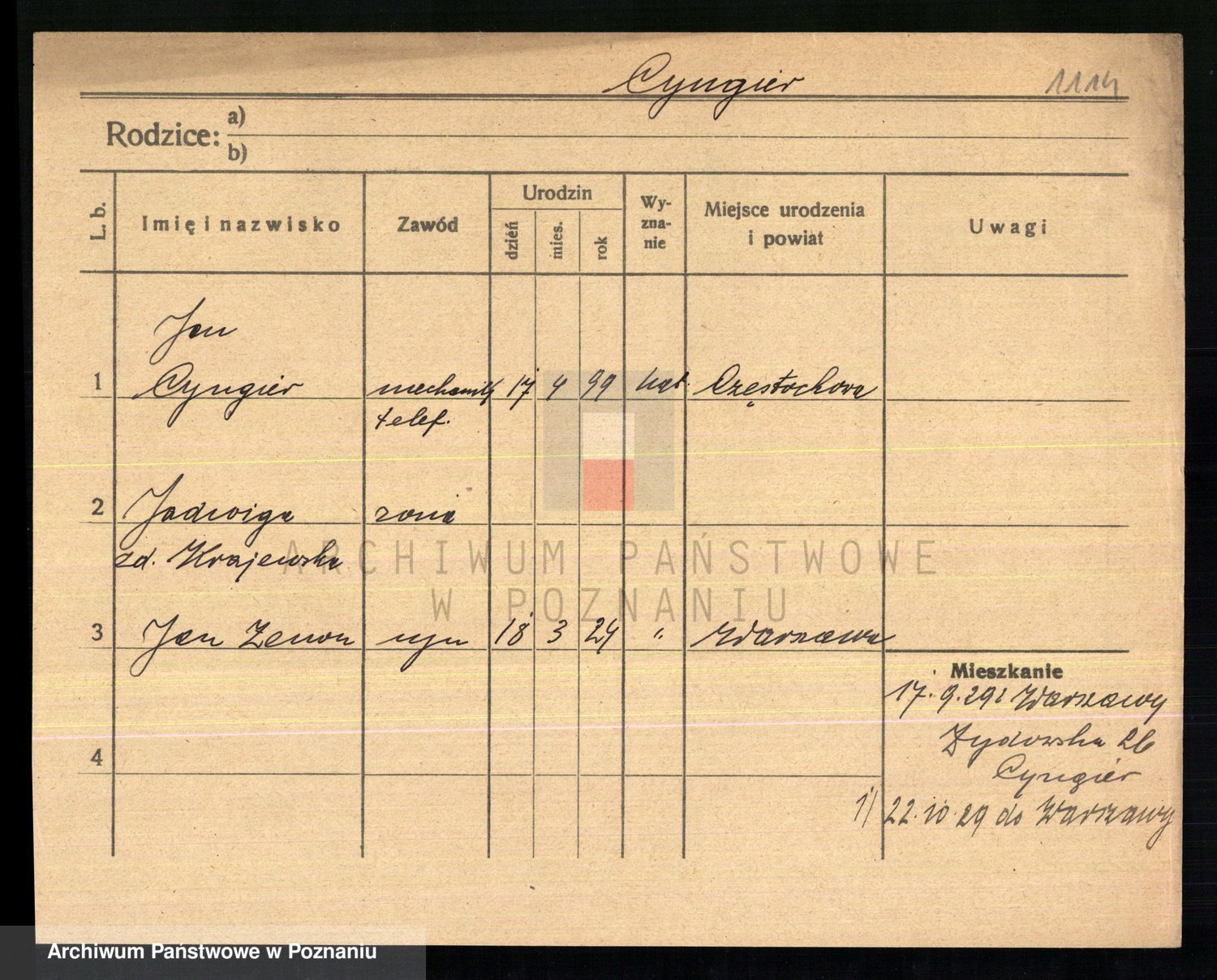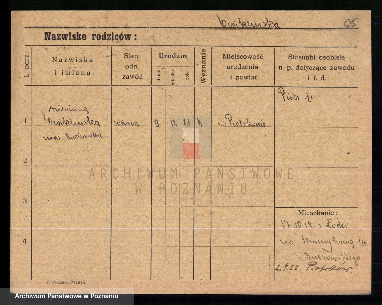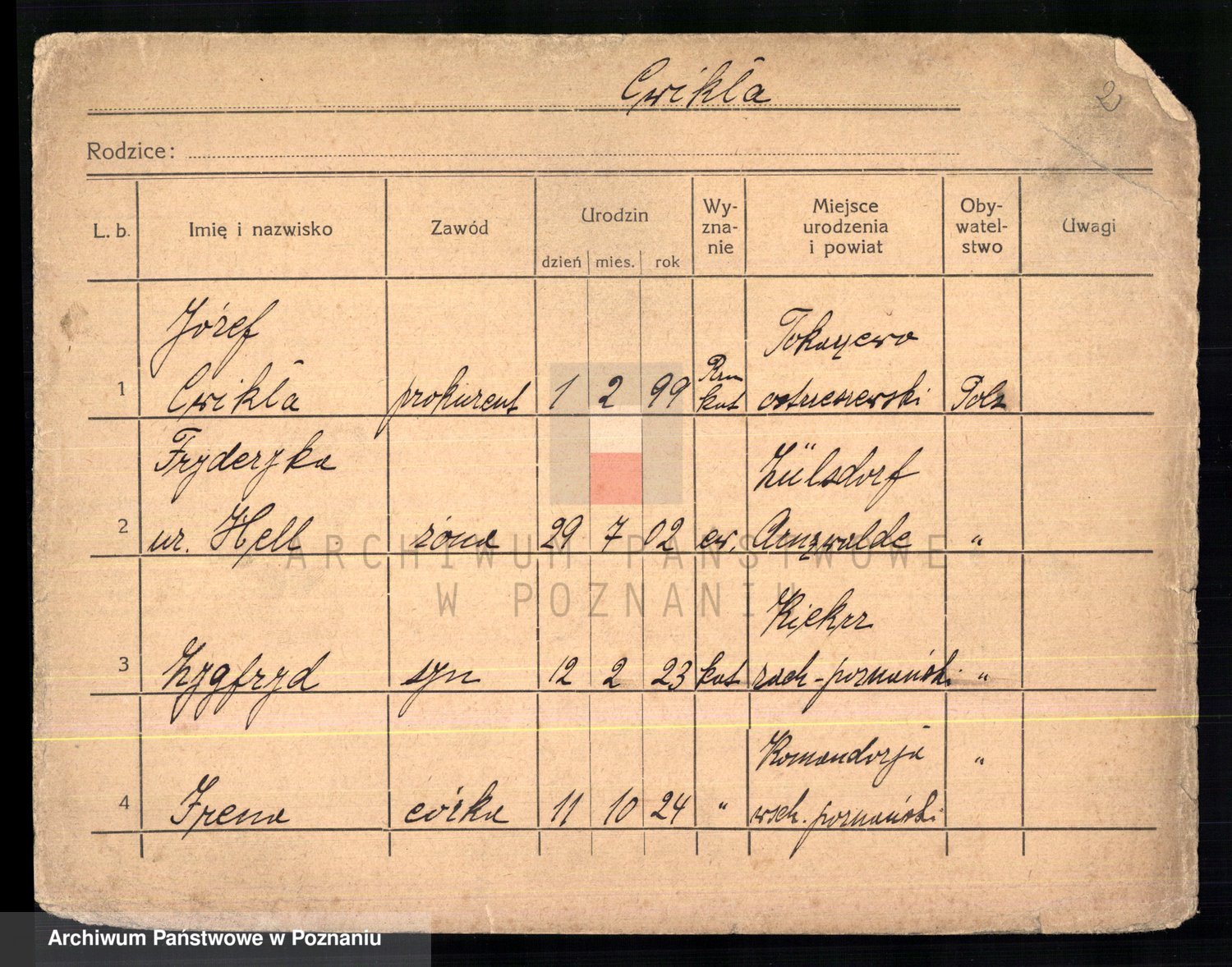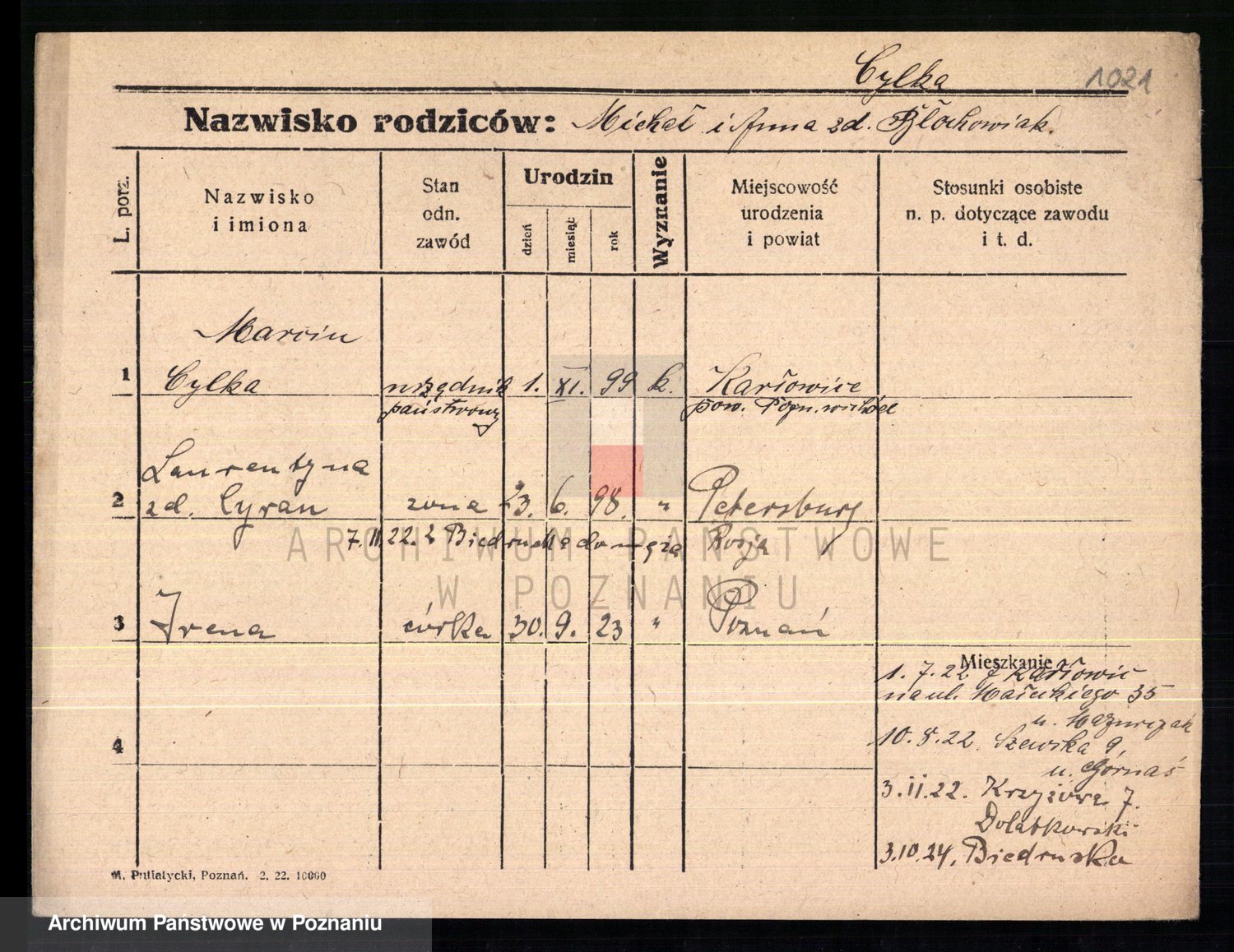 Cwikliński z.d. Przymuszińska, Marja