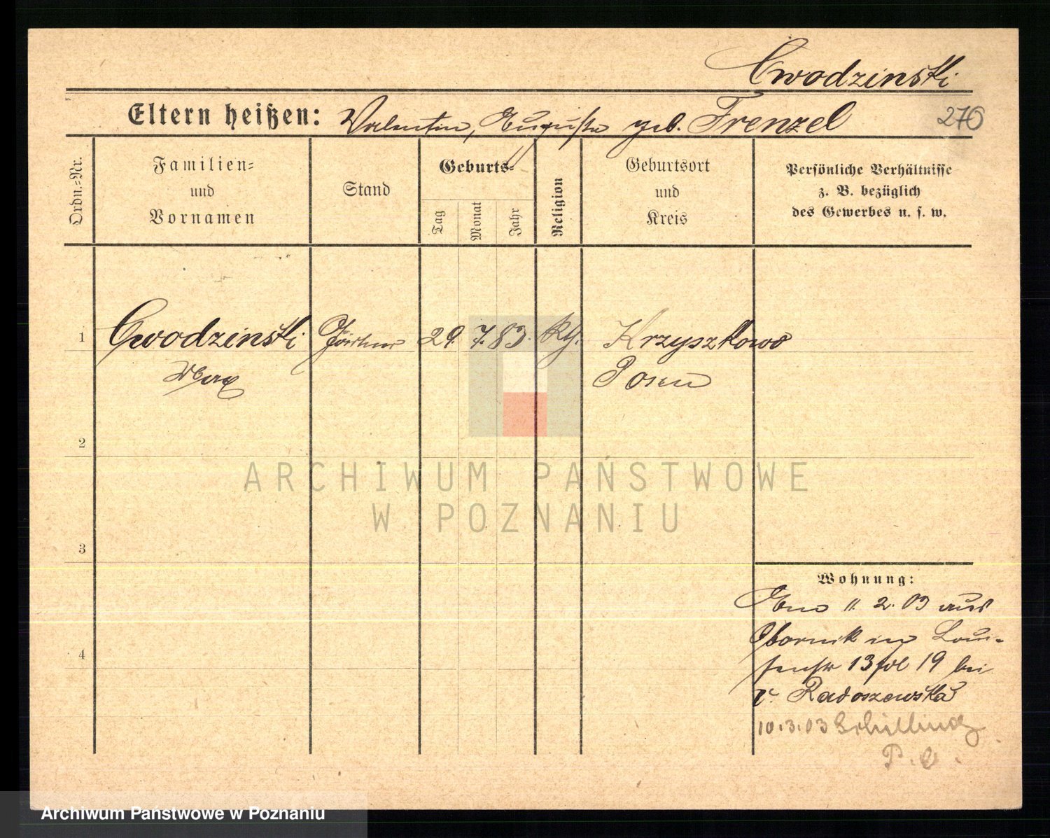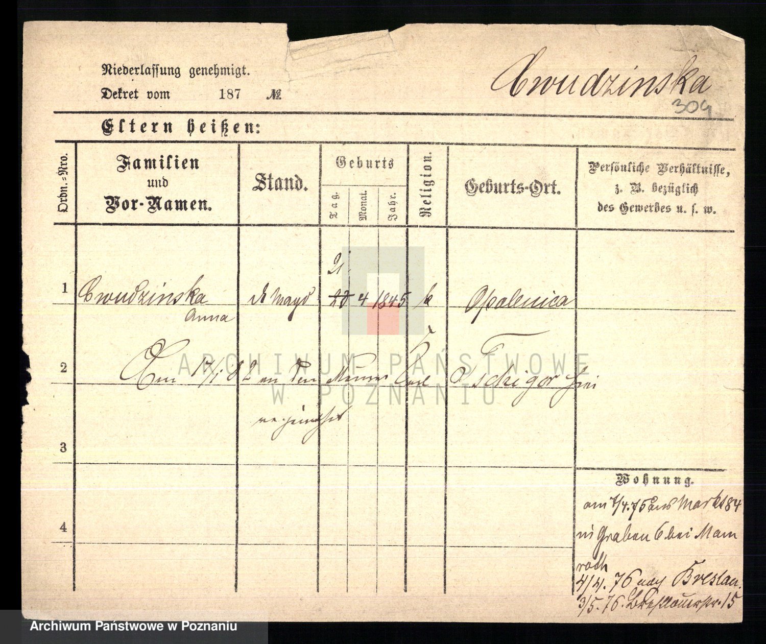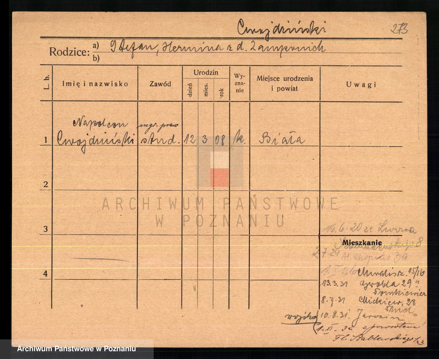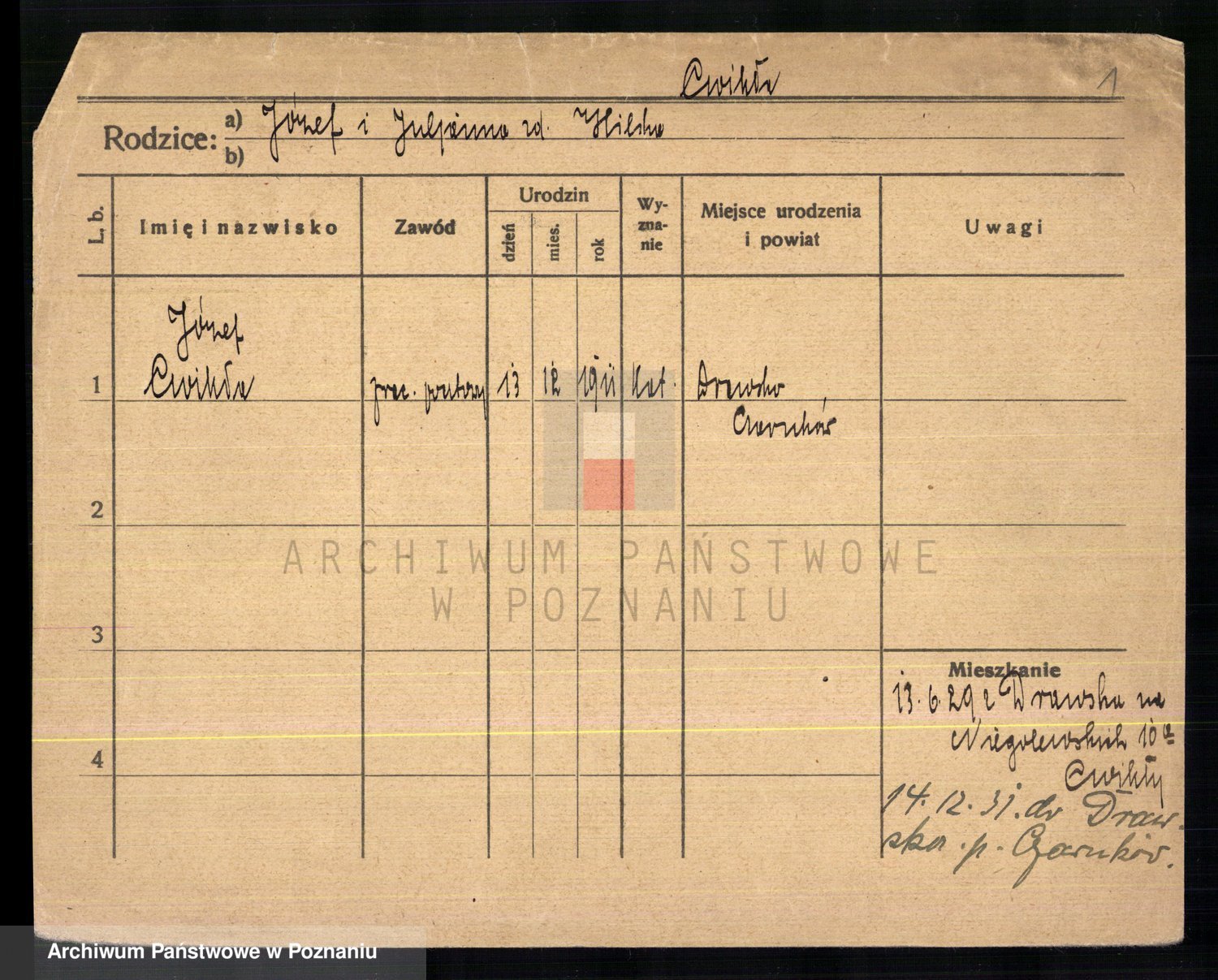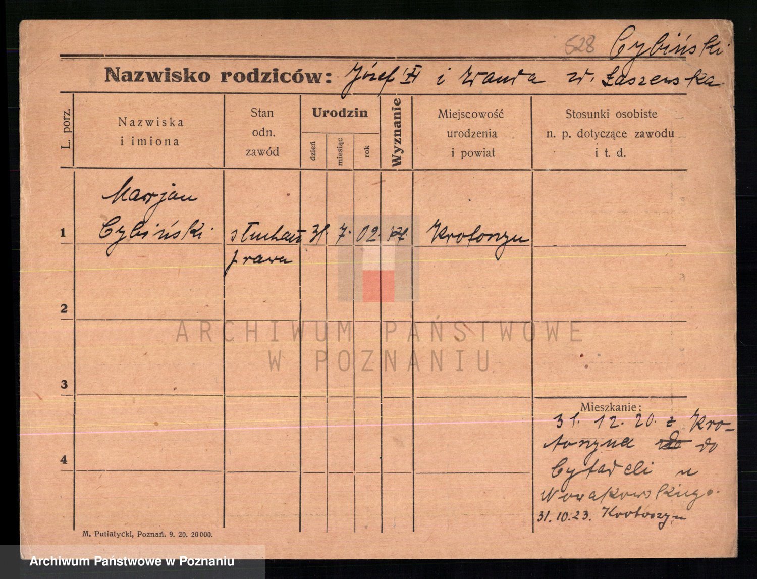 Cwikliński z.d. Przymuszińska, Marja