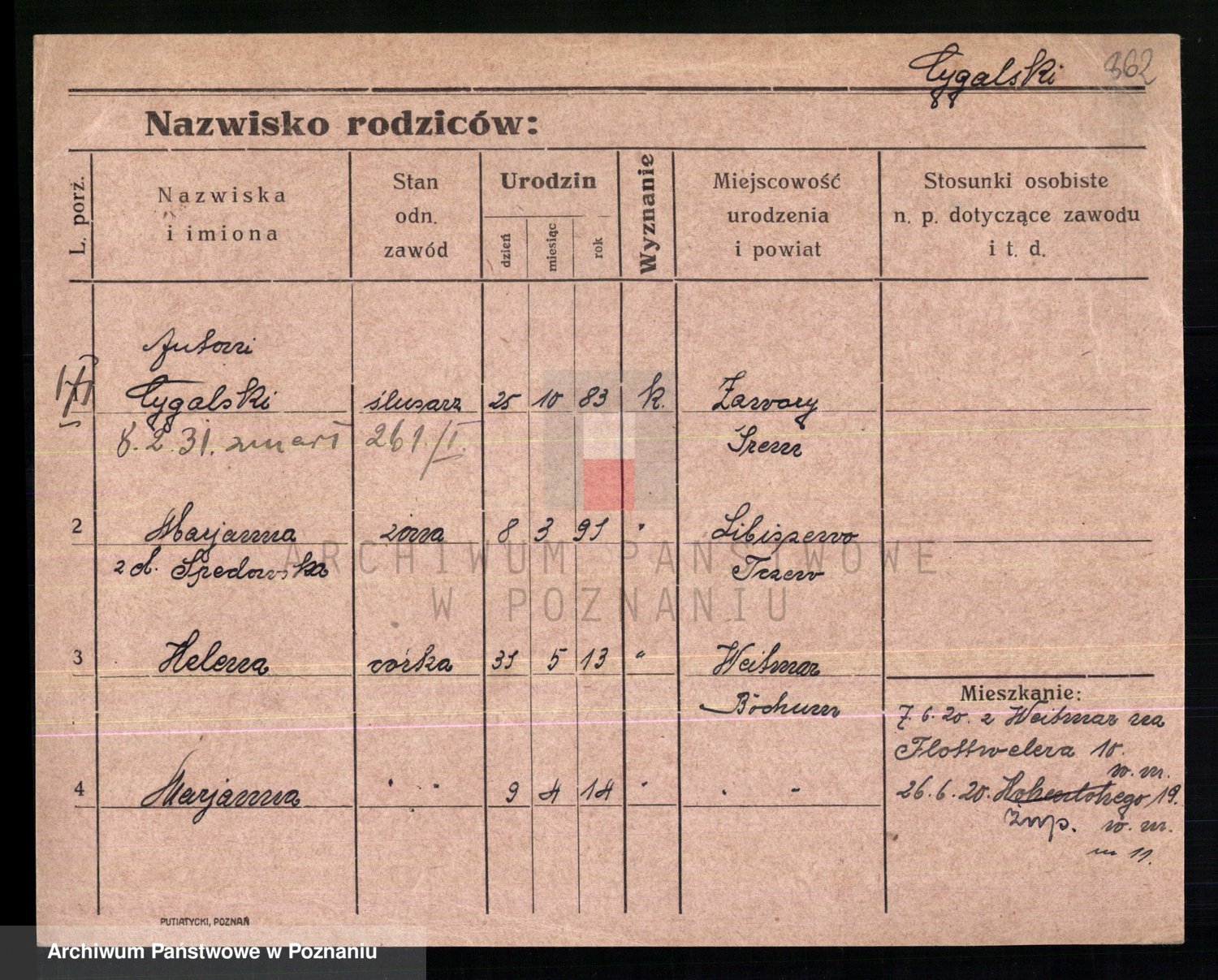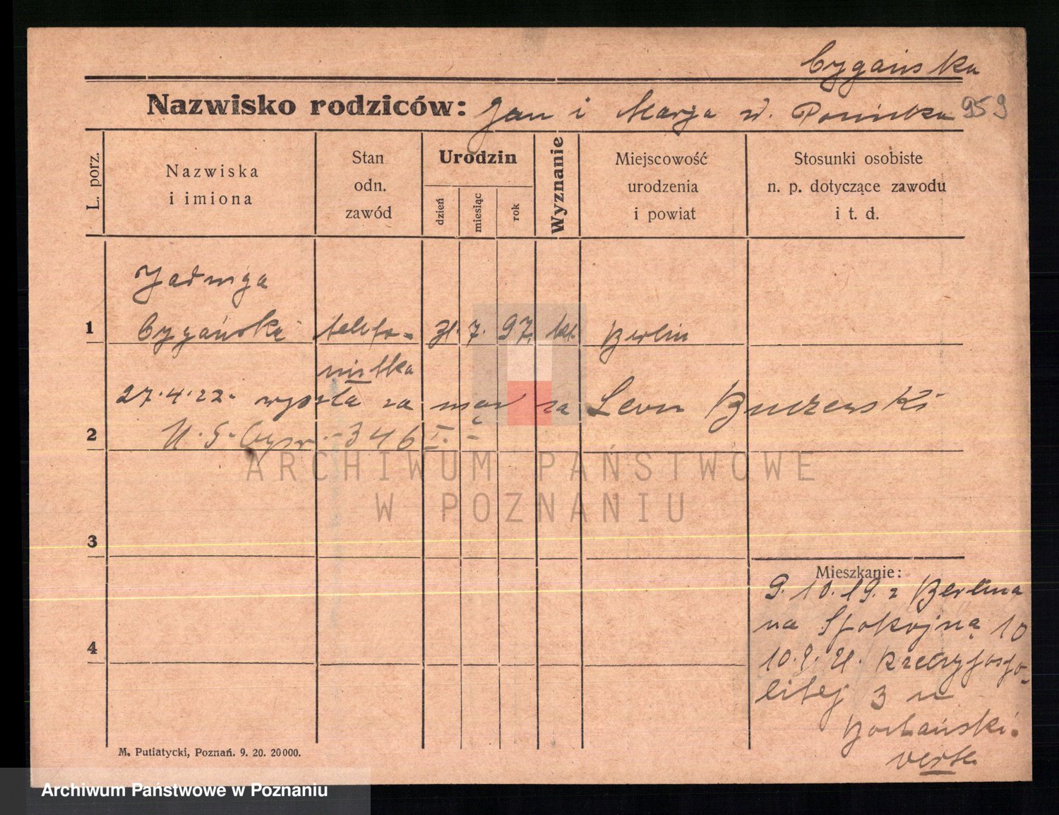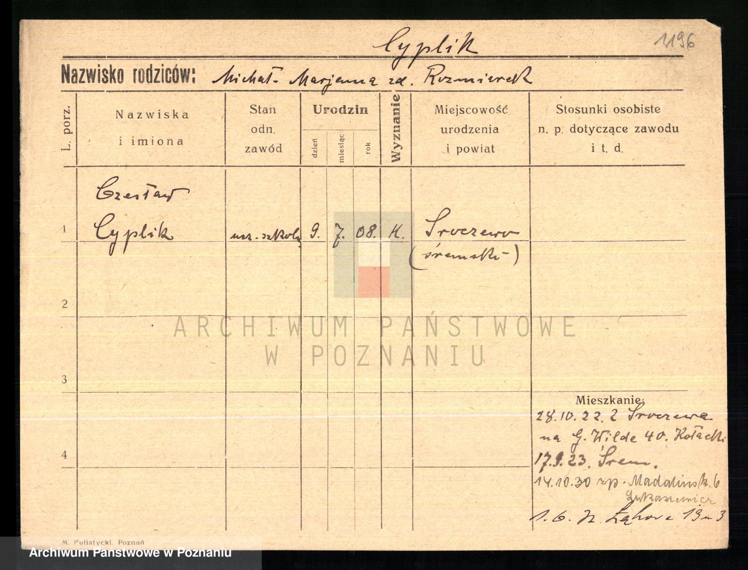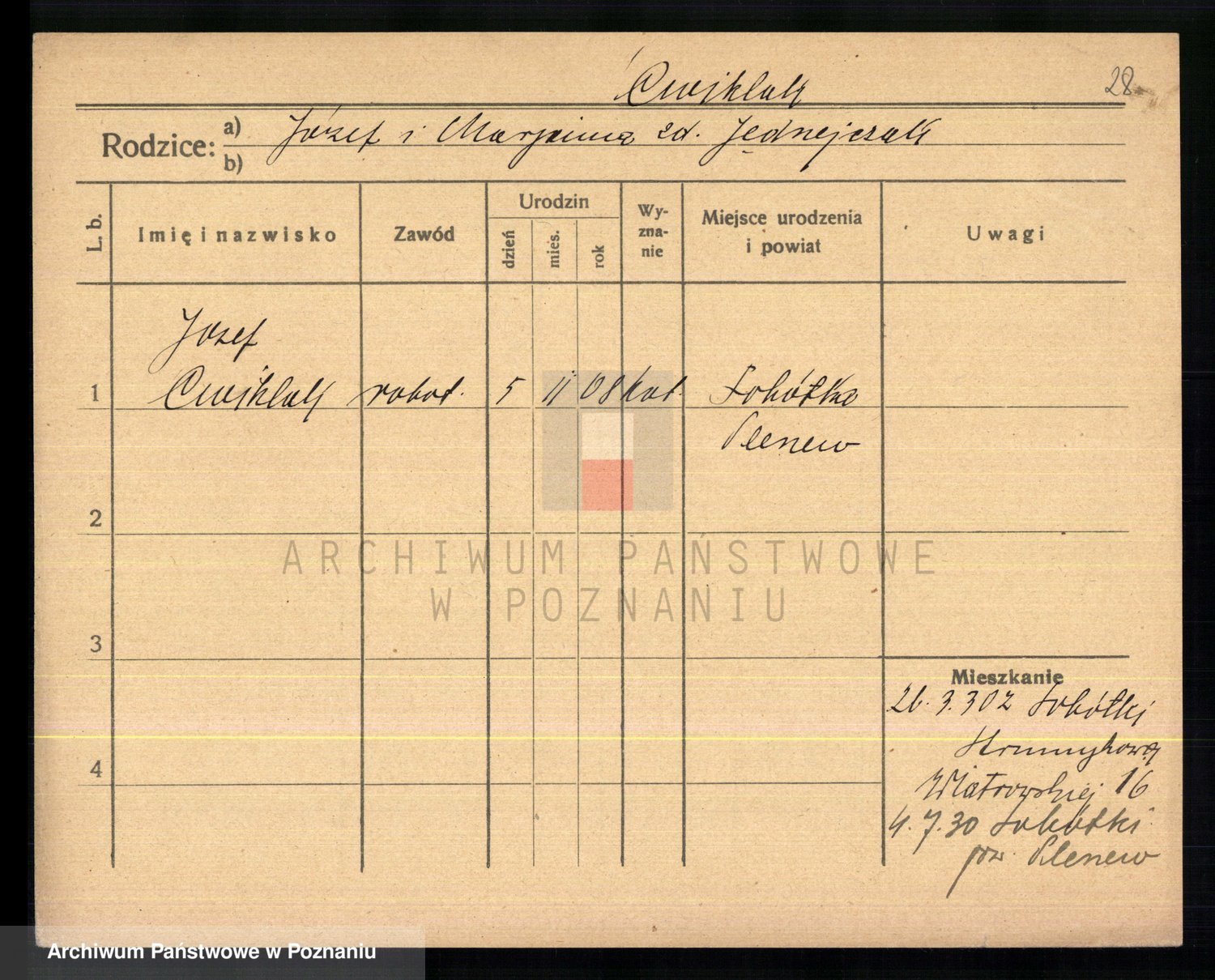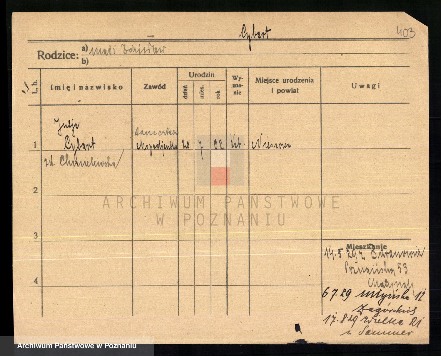 Cwikliński z.d. Przymuszińska, Marja