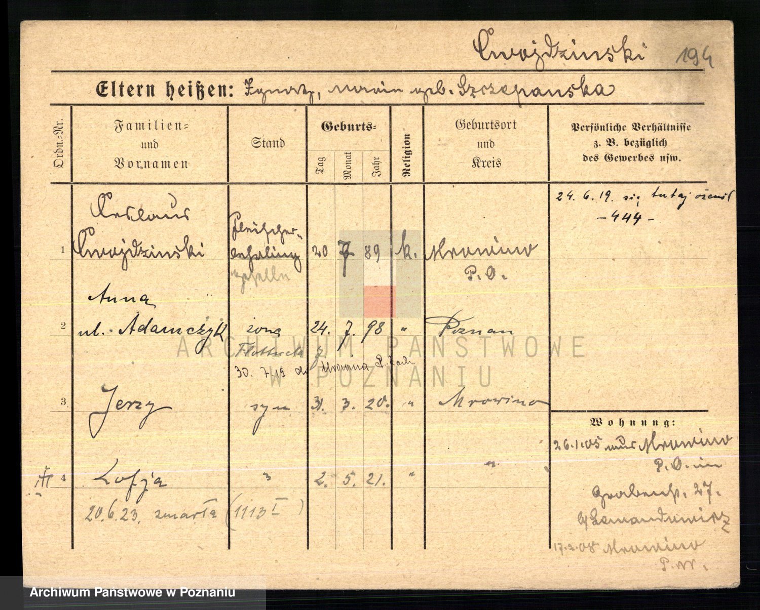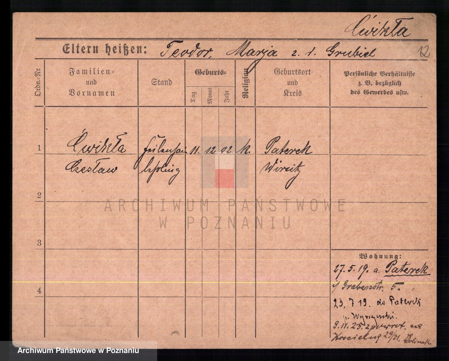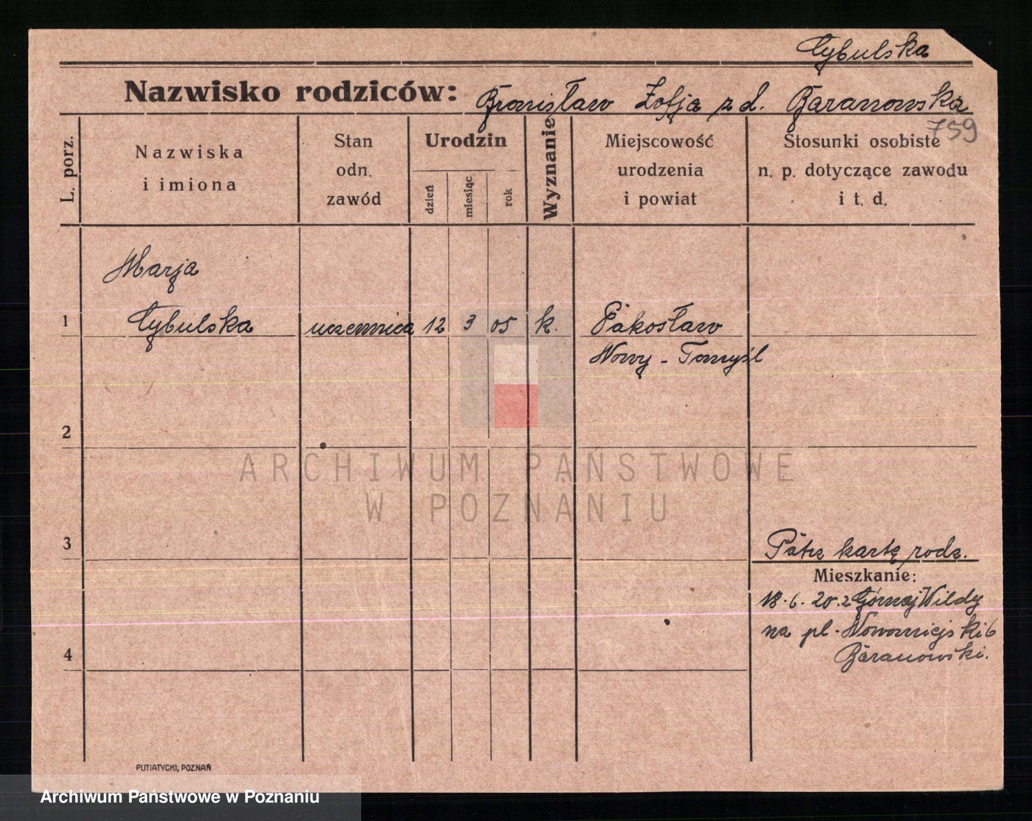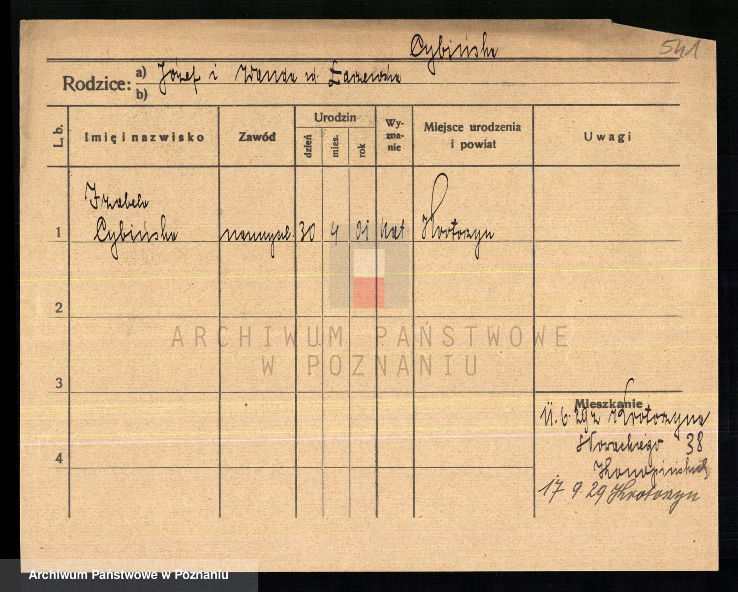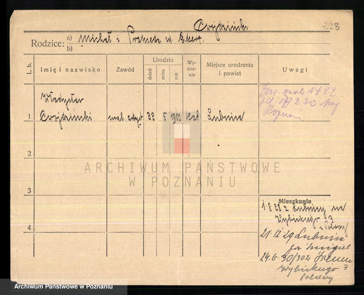 Cwikliński z.d. Przymuszińska, Marja