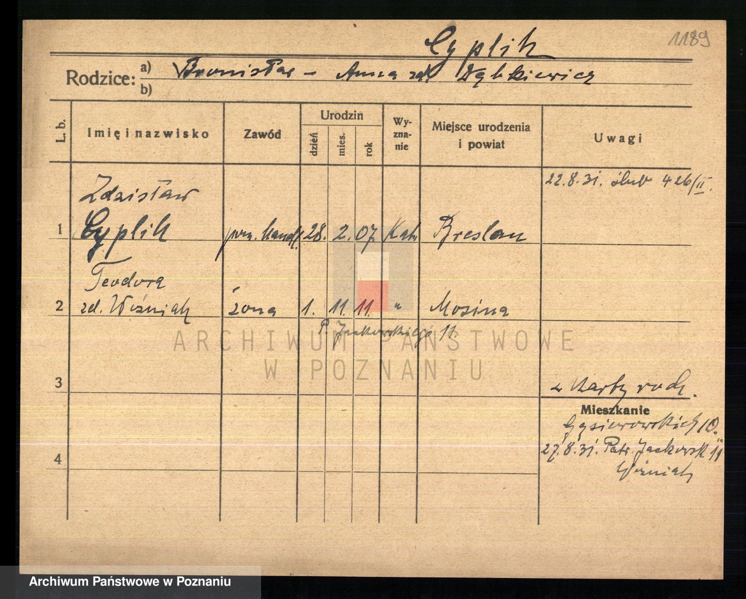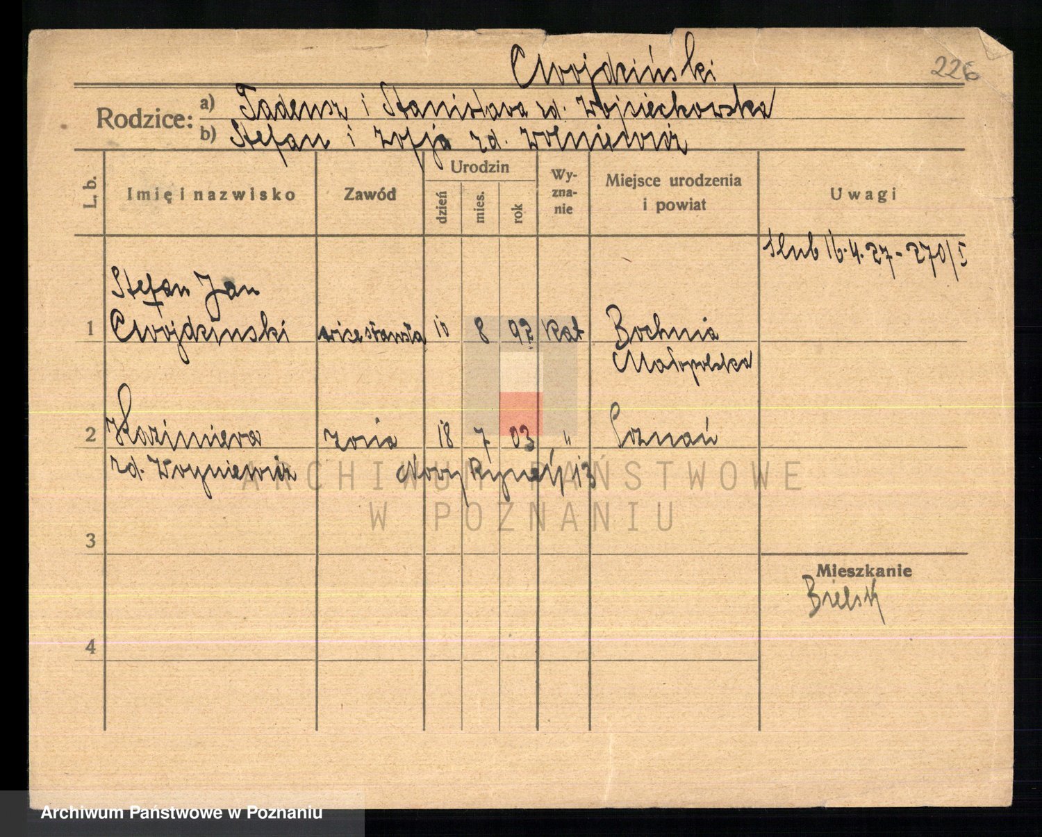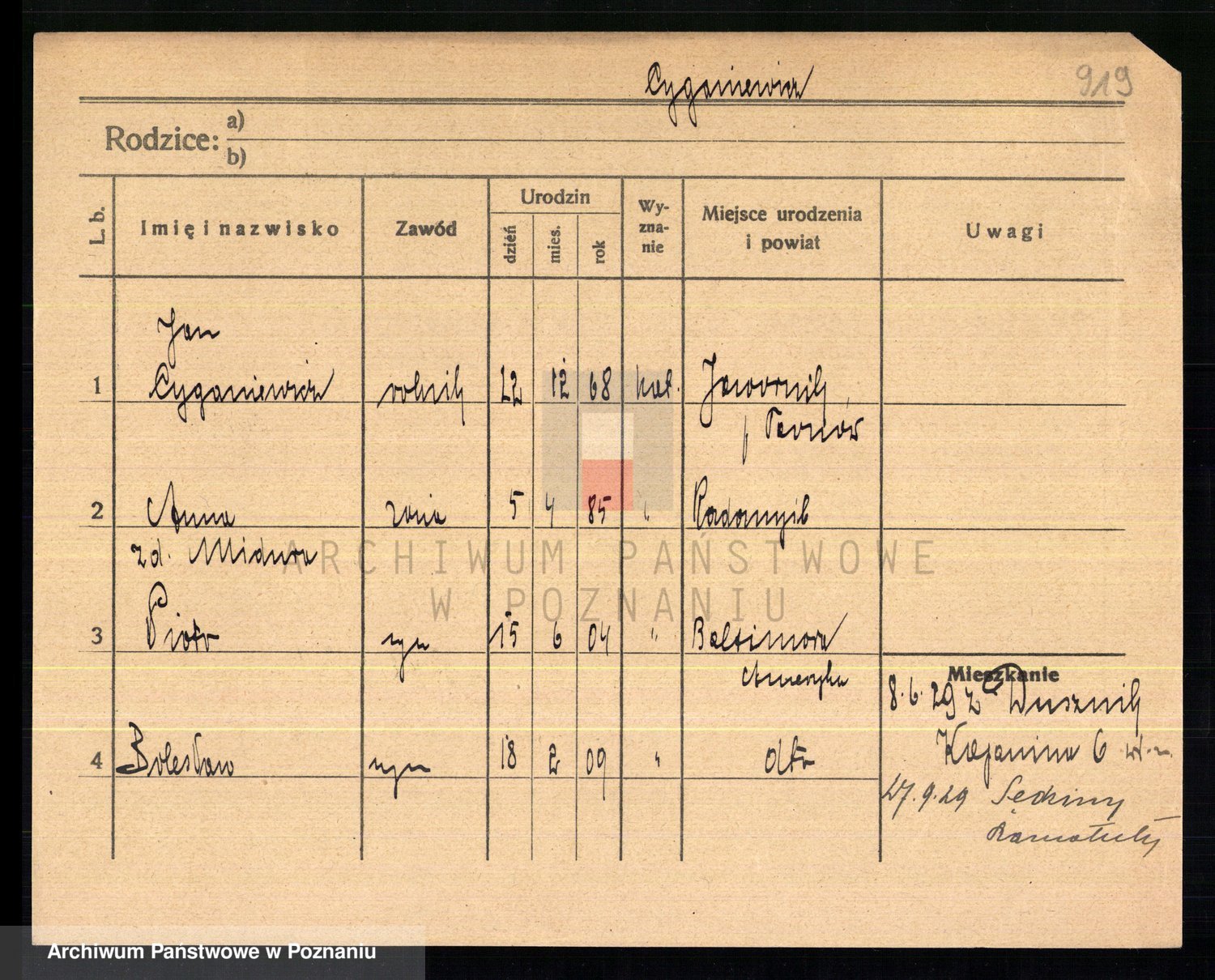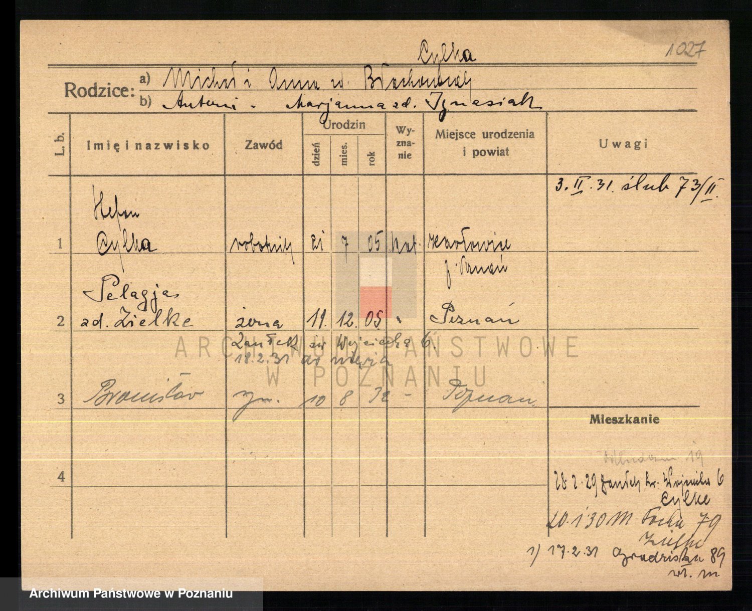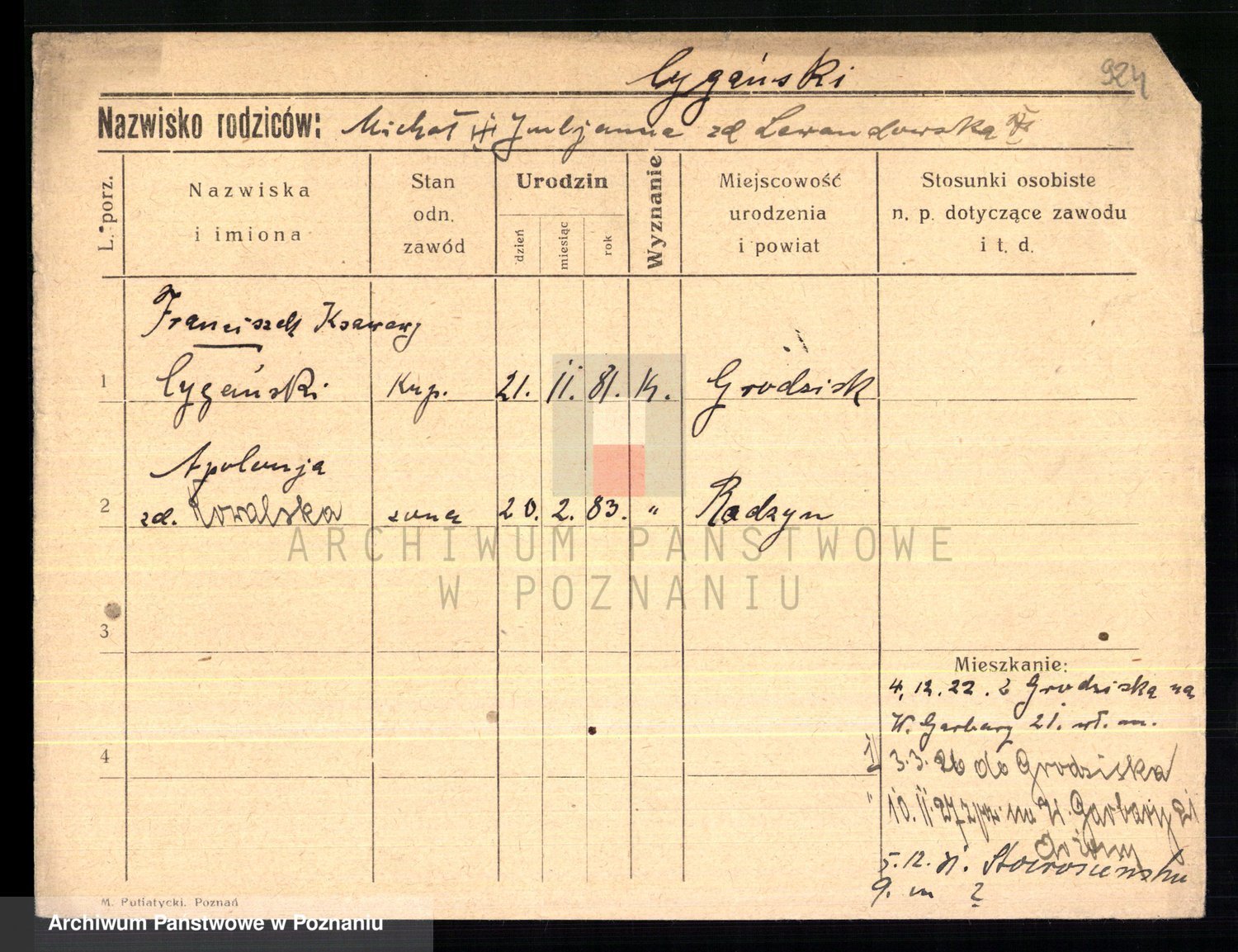 Cwikliński z.d. Przymuszińska, Marja